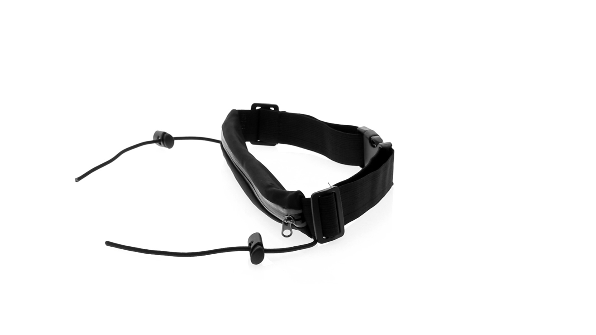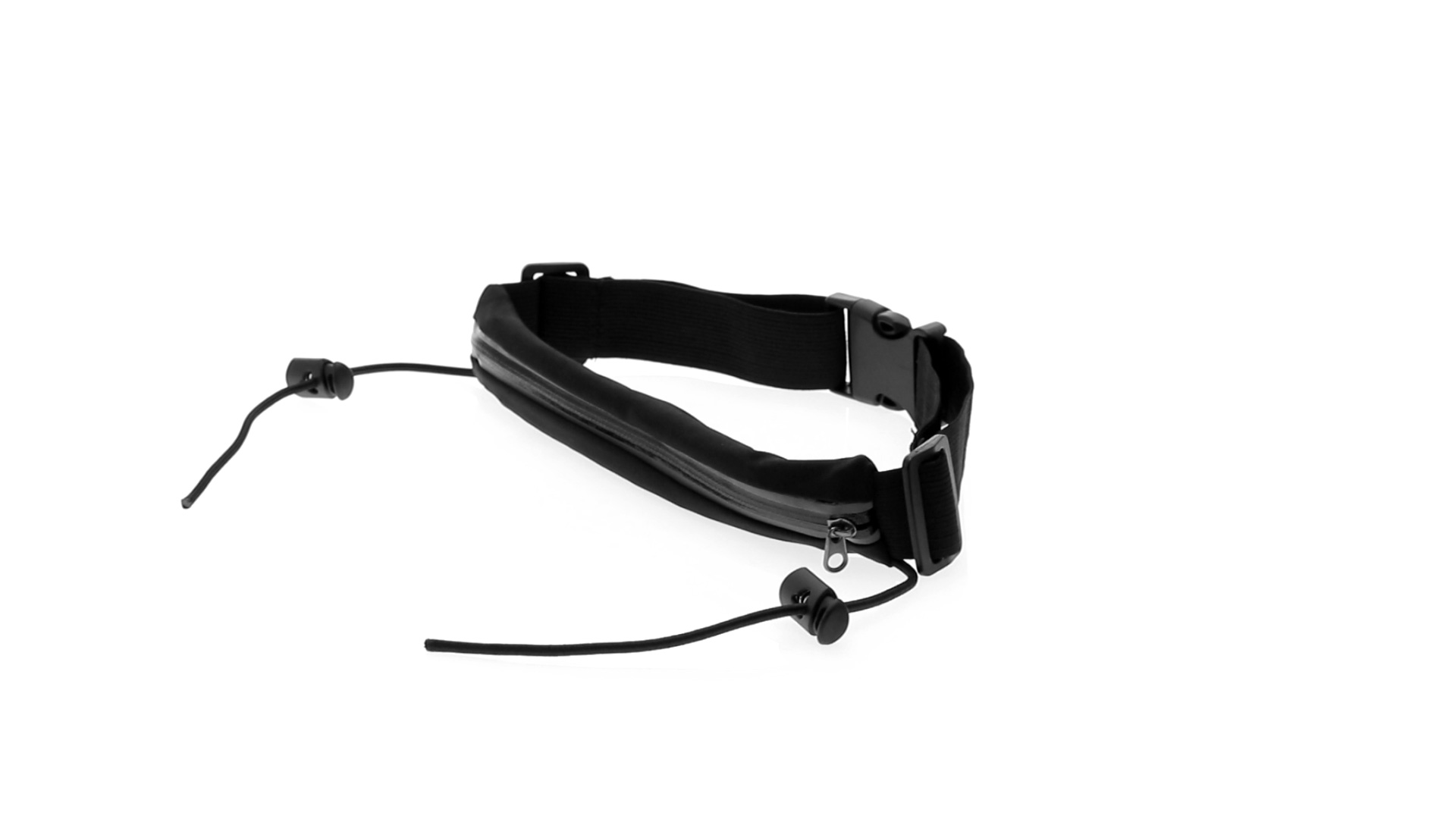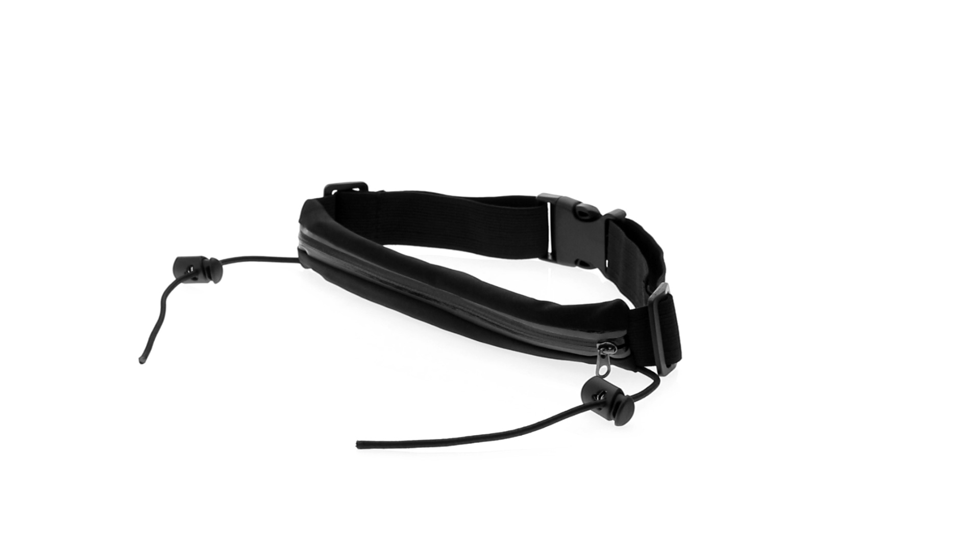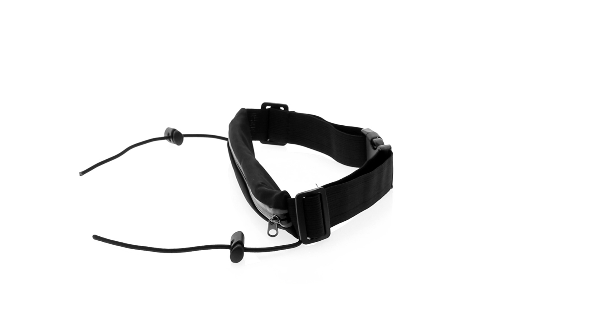 Hochwertige, spritzwasserresistente Gürteltasche mit speziellen Gummibändern zum Befestigen einer Startnummer. Hergestellt aus angenehm weichem Spandex-Material. Entwickelt für Sport- und Freizeitaktivitäten. Mit grauem Reissverschluss und Befestigungsgummis mit Stopper sowie verstellbarem, elastischem Gurt mit Schnallenverschluss.