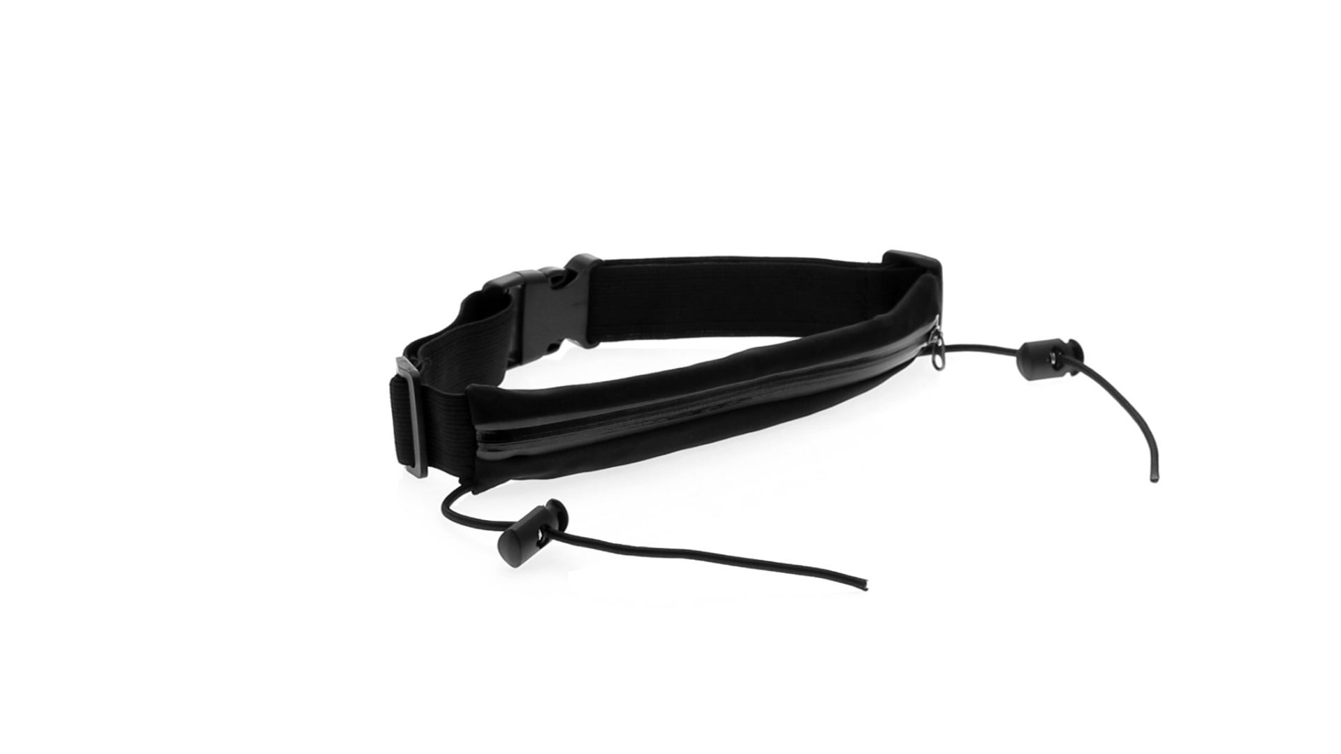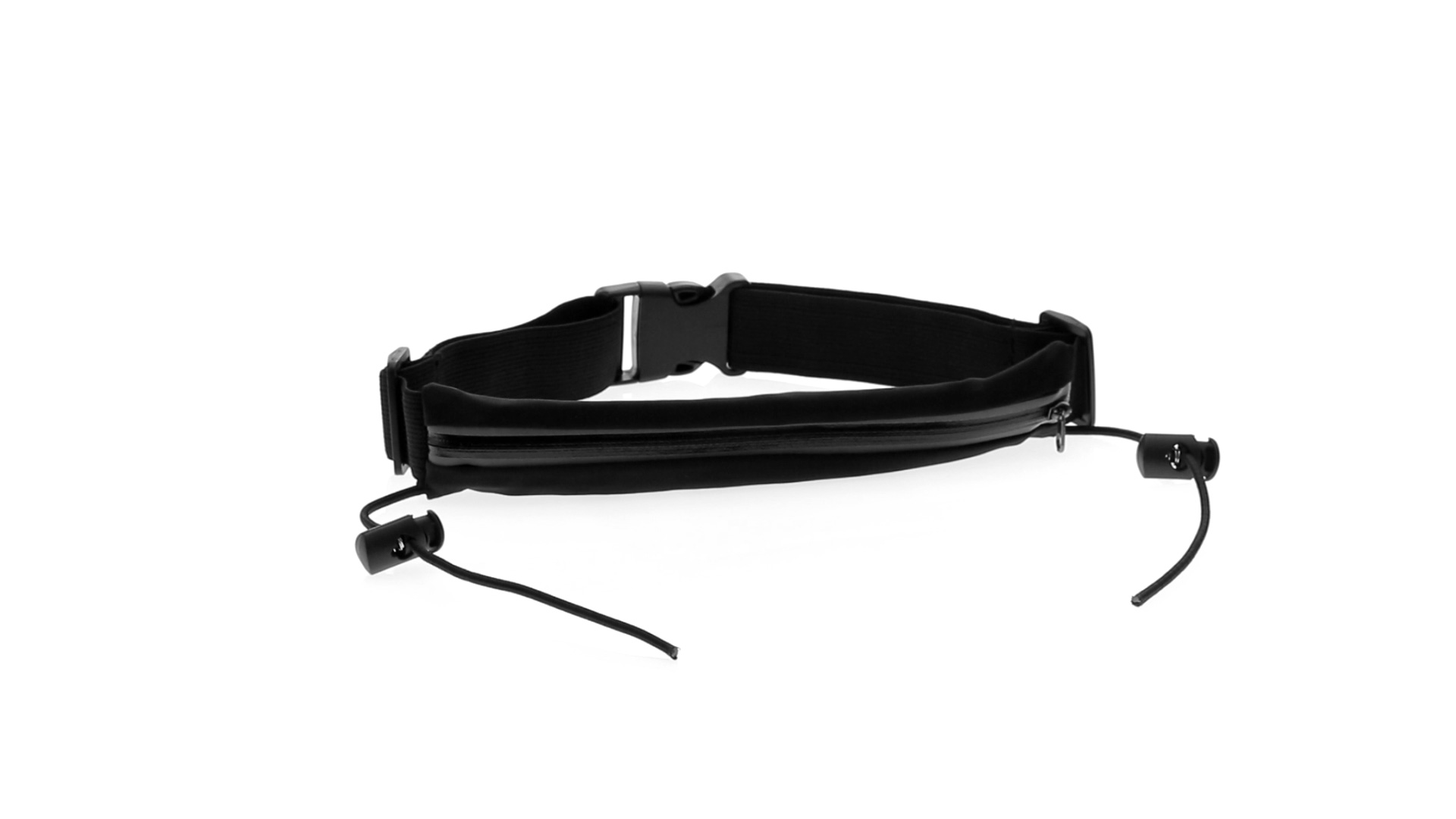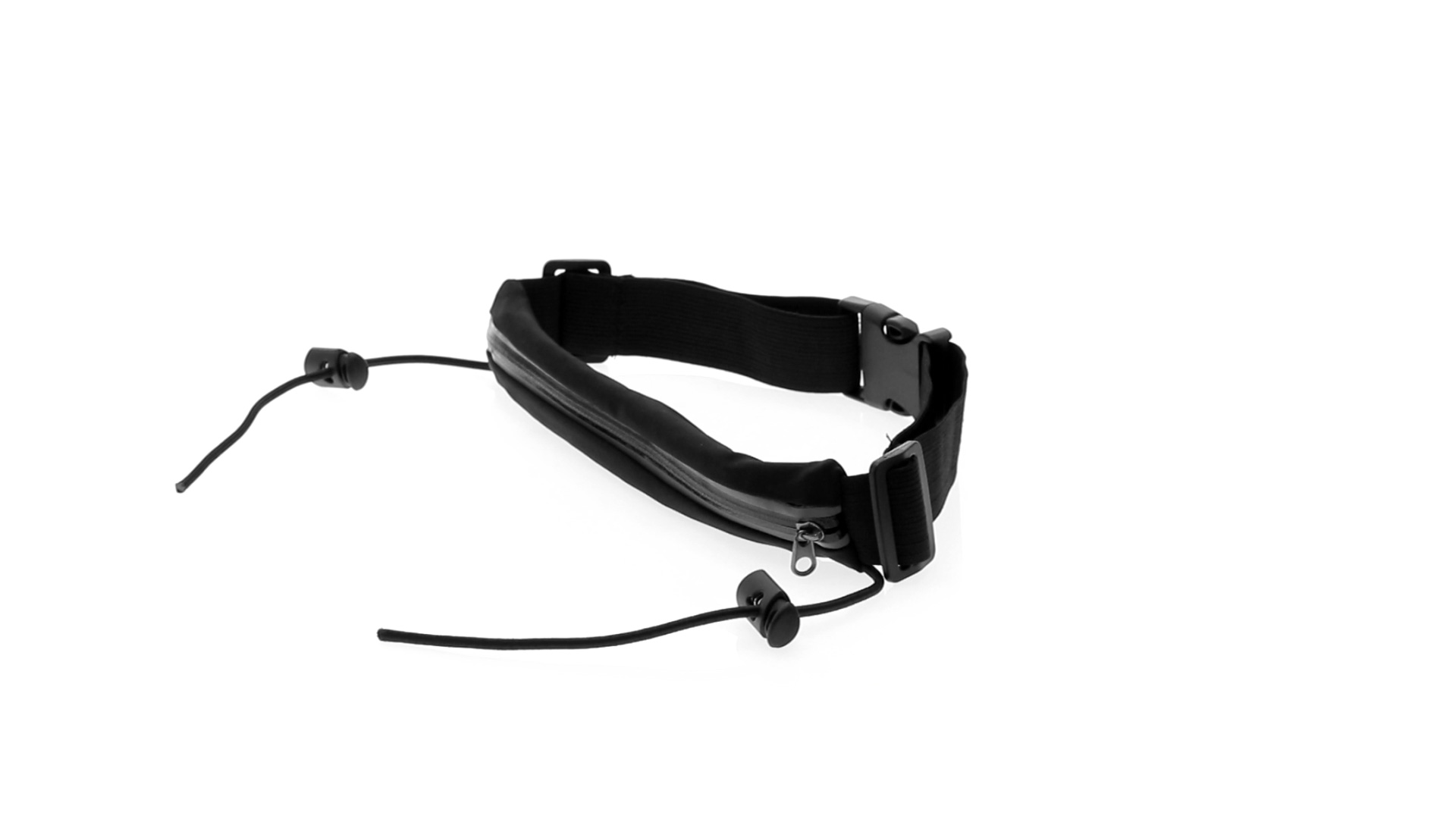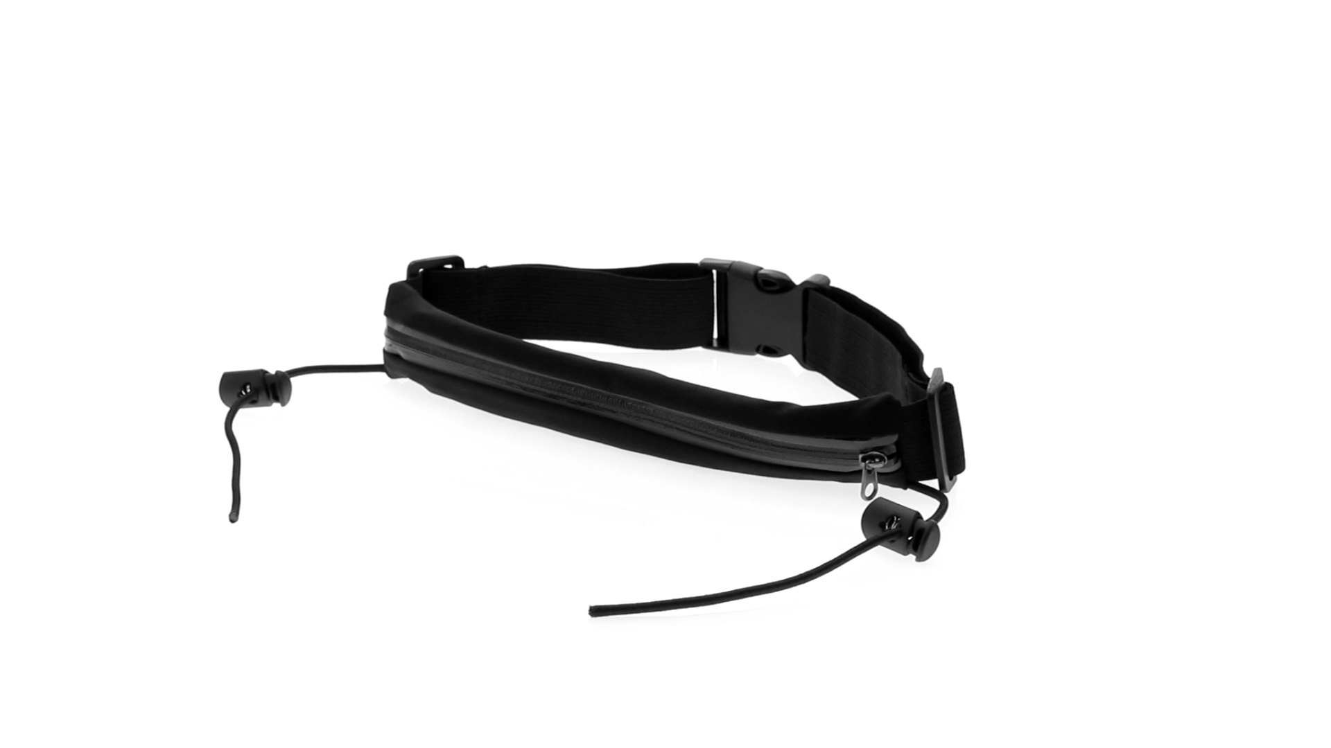 Hochwertige, spritzwasserresistente Gürteltasche mit speziellen Gummibändern zum Befestigen einer Startnummer. Hergestellt aus angenehm weichem Spandex-Material. Entwickelt für Sport- und Freizeitaktivitäten. Mit grauem Reissverschluss und Befestigungsgummis mit Stopper sowie verstellbarem, elastischem Gurt mit Schnallenverschluss.