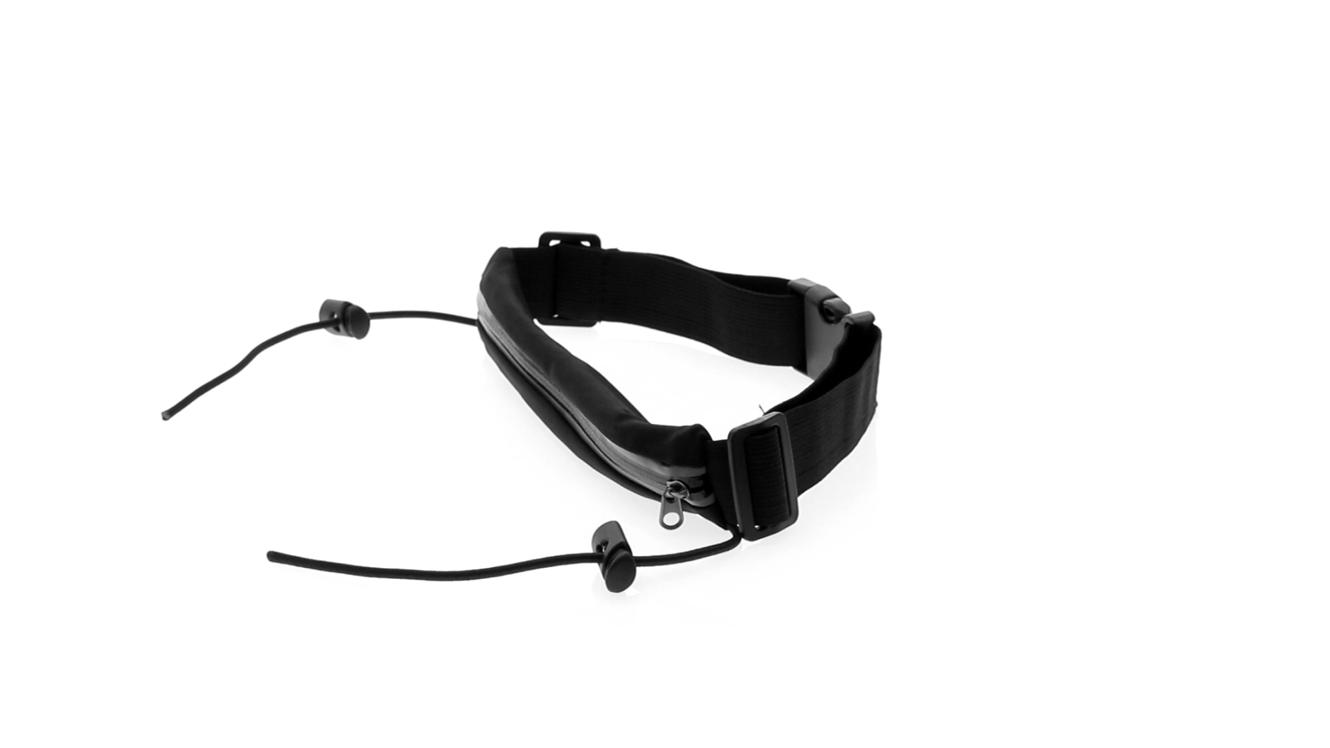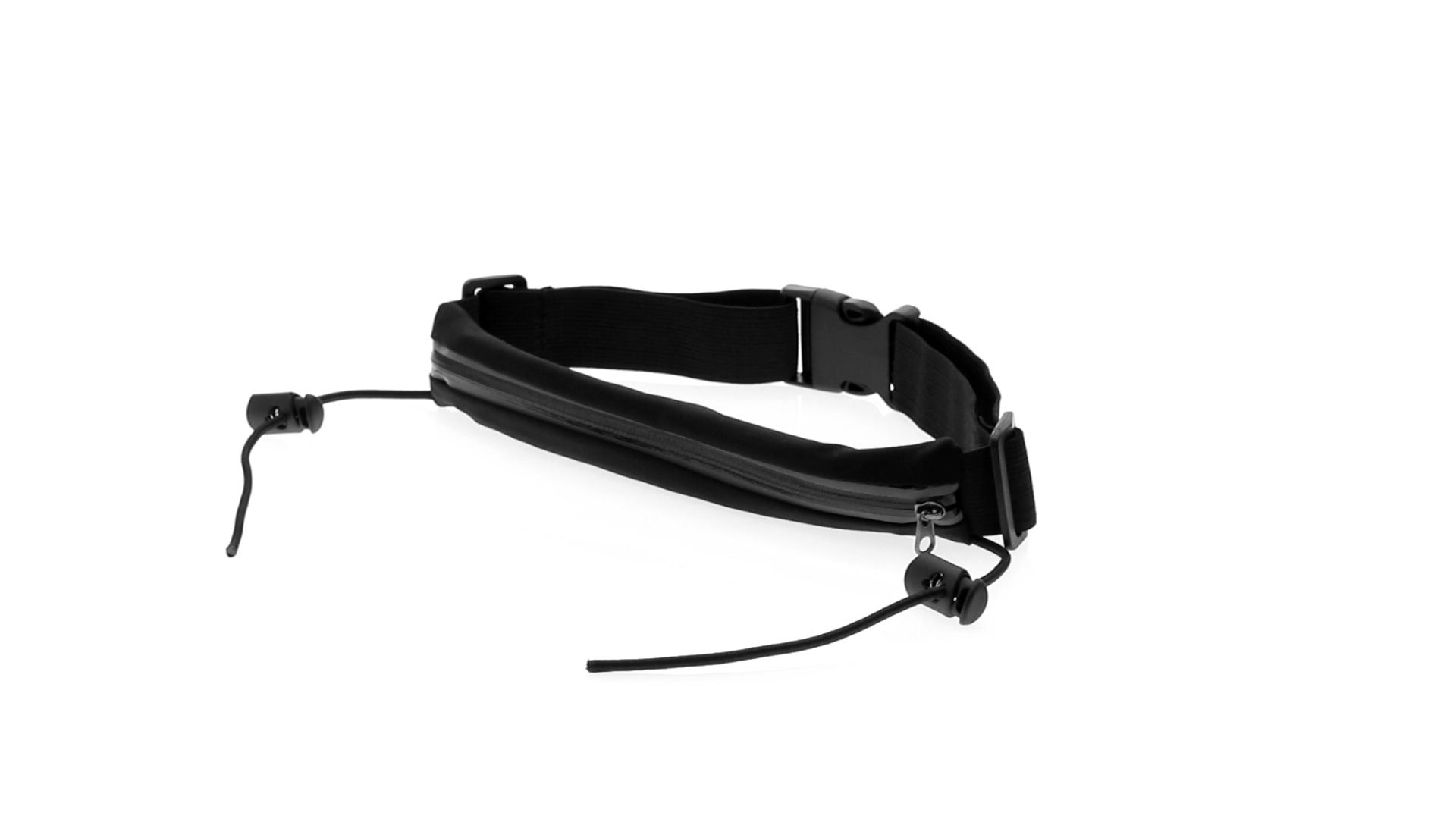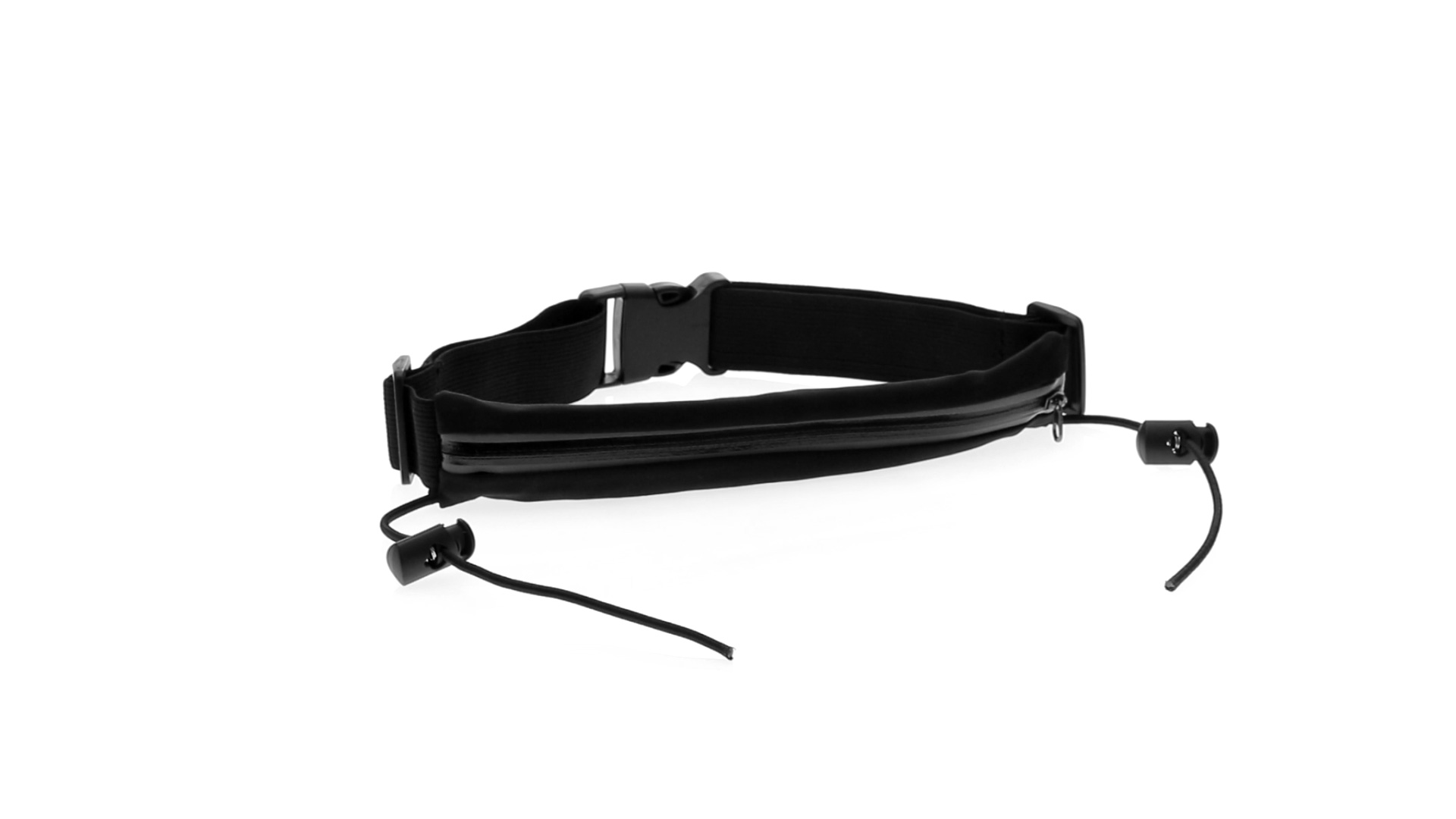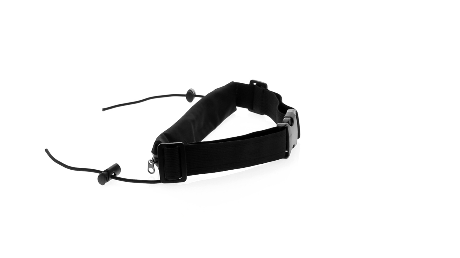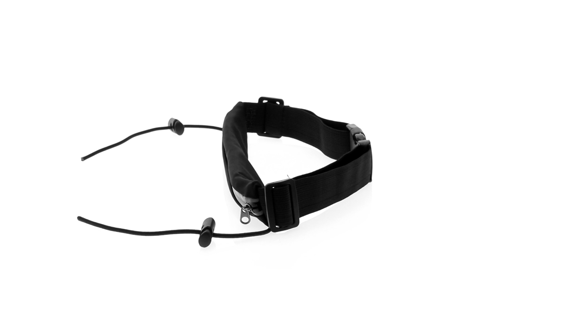 Hochwertige, spritzwasserresistente Gürteltasche mit speziellen Gummibändern zum Befestigen einer Startnummer. Hergestellt aus angenehm weichem Spandex-Material. Entwickelt für Sport- und Freizeitaktivitäten. Mit grauem Reissverschluss und Befestigungsgummis mit Stopper sowie verstellbarem, elastischem Gurt mit Schnallenverschluss.