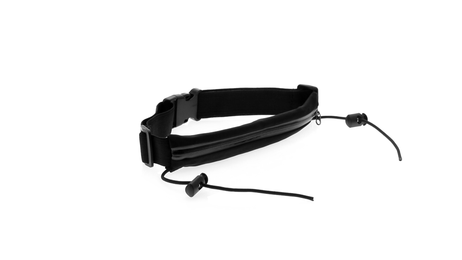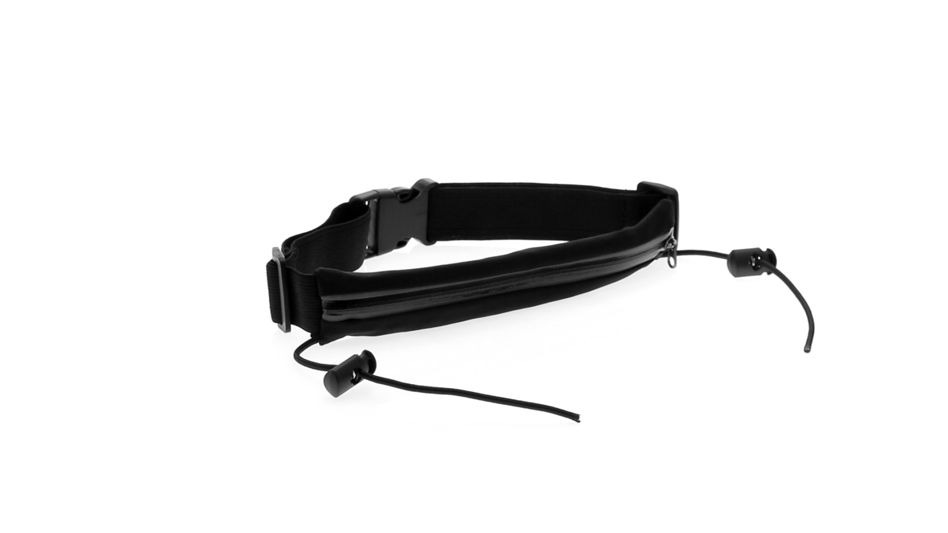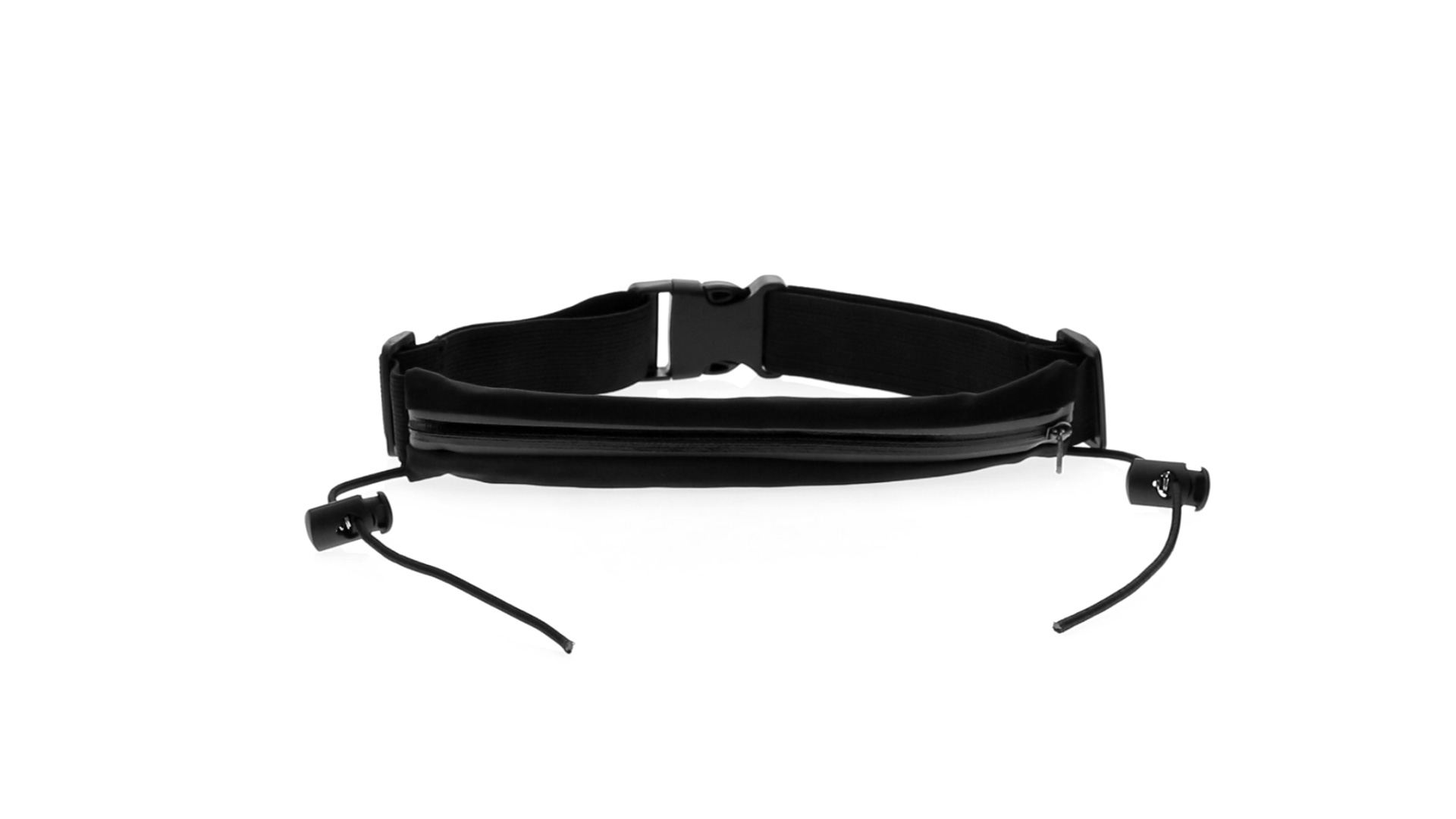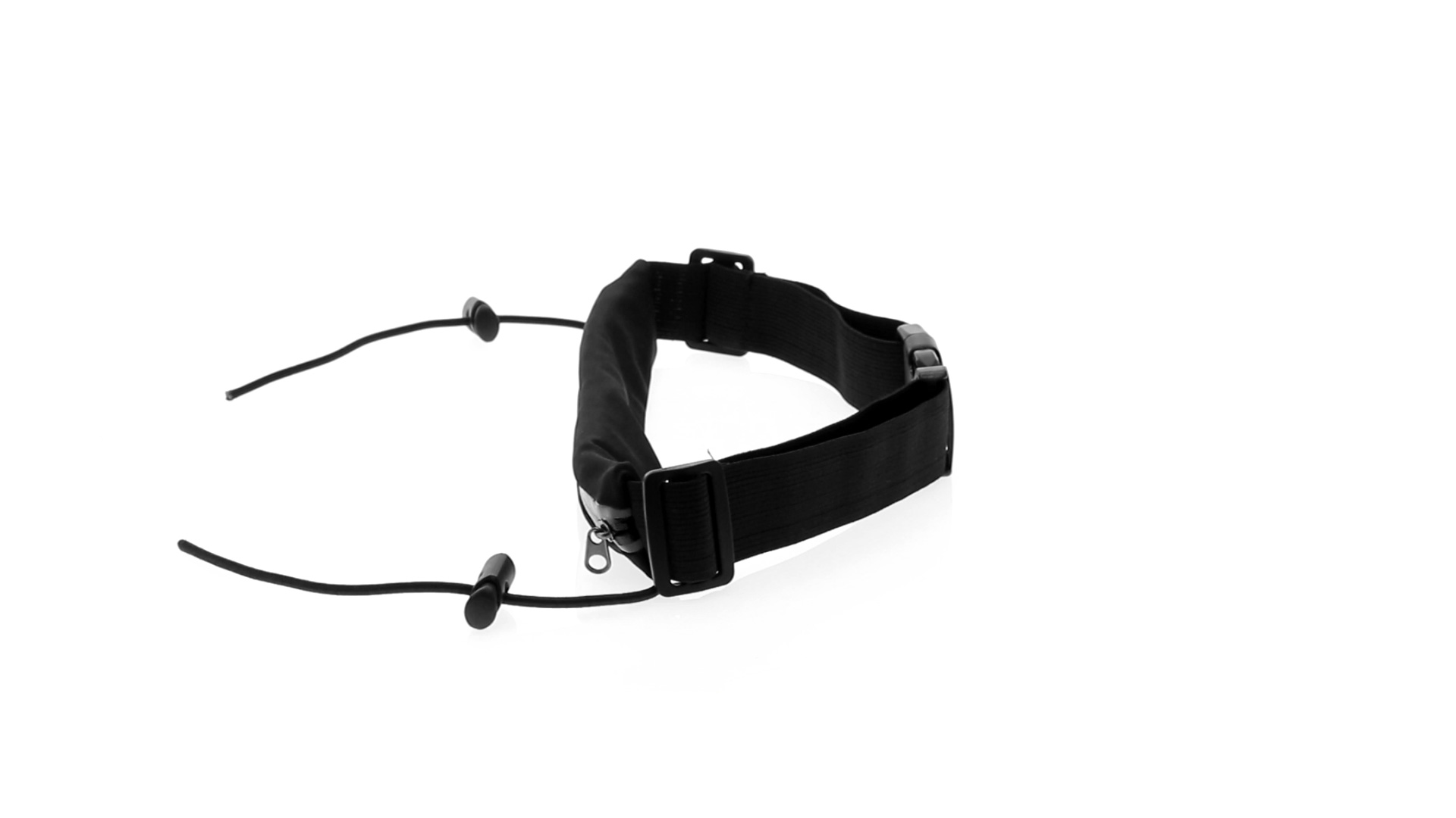 Hochwertige, spritzwasserresistente Gürteltasche mit speziellen Gummibändern zum Befestigen einer Startnummer. Hergestellt aus angenehm weichem Spandex-Material. Entwickelt für Sport- und Freizeitaktivitäten. Mit grauem Reissverschluss und Befestigungsgummis mit Stopper sowie verstellbarem, elastischem Gurt mit Schnallenverschluss.