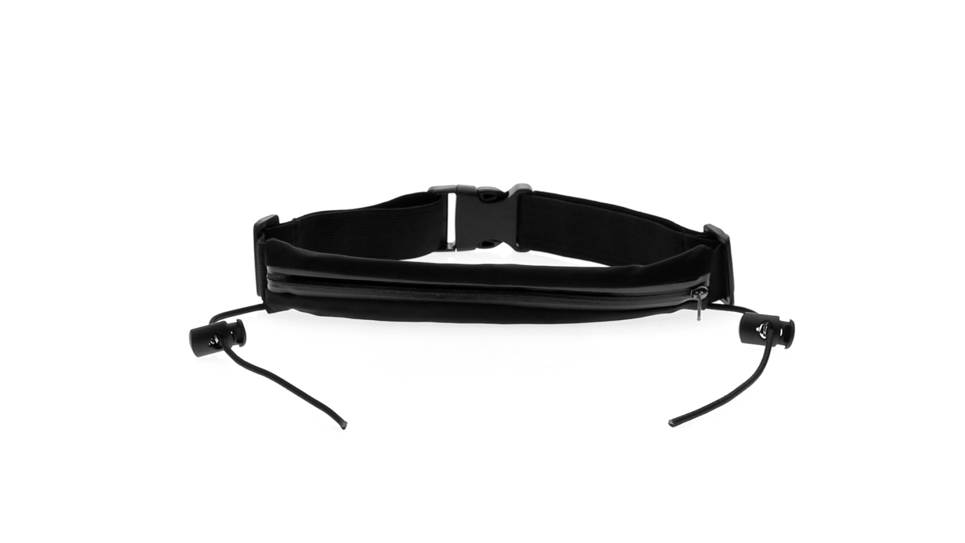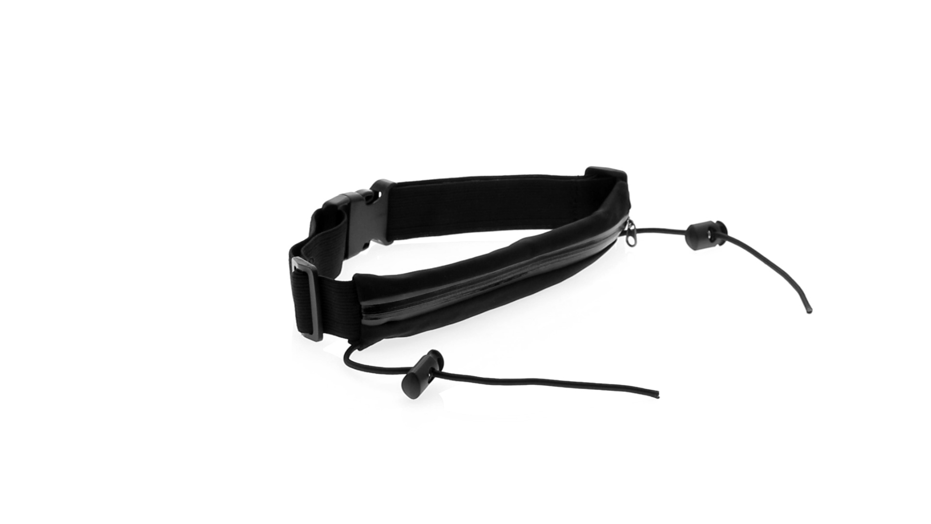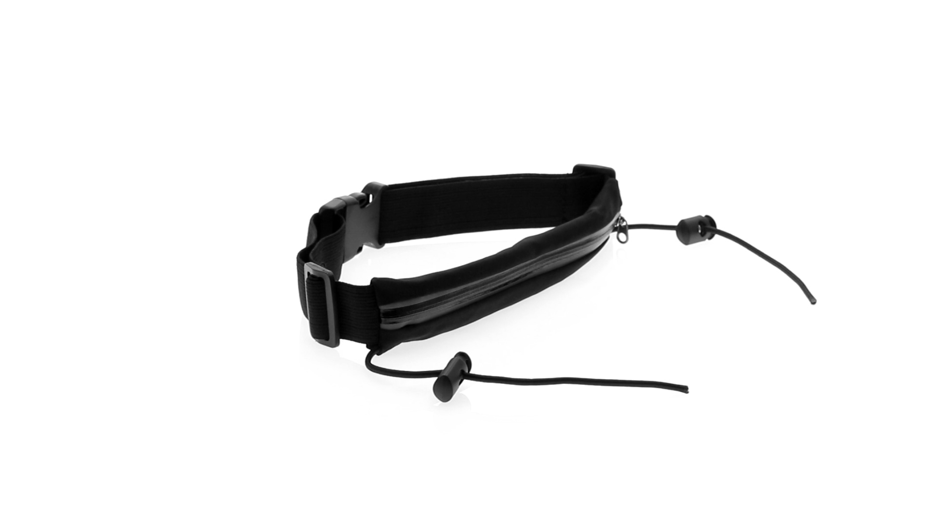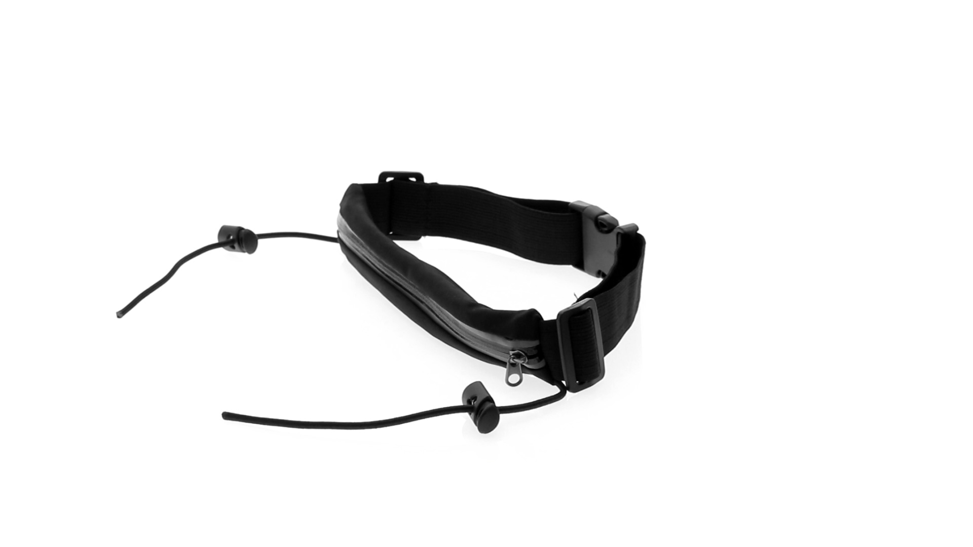 Hochwertige, spritzwasserresistente Gürteltasche mit speziellen Gummibändern zum Befestigen einer Startnummer. Hergestellt aus angenehm weichem Spandex-Material. Entwickelt für Sport- und Freizeitaktivitäten. Mit grauem Reissverschluss und Befestigungsgummis mit Stopper sowie verstellbarem, elastischem Gurt mit Schnallenverschluss.