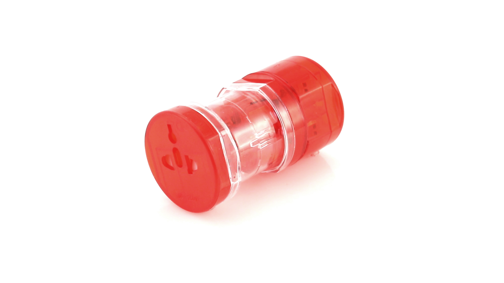 Kompaktes Adapterstecker-Set in kräftigen Farben. Besonders geeignet für Reisende. Unterschiedliche Adapter für die USA, Europa, Asien und Grossbritannien. Präsentiert in einer individuellen Box.