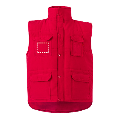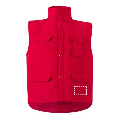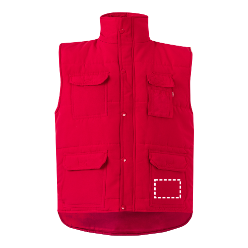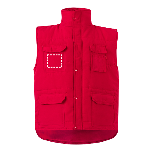Steppweste mit mehreren Taschen (220 g/m²), aus Polyester (100%). Verdeckter Reissverschluss mit Knopfleiste. Elastischer Seitenbund und Windfang im Armausschnitt. Mit sieben Taschen (1 Brusttasche, 2 Untertaschen, 2 Seitentaschen und 1 Brusttasche). Grösse: S, M, L, XL, 2XL, 3XL