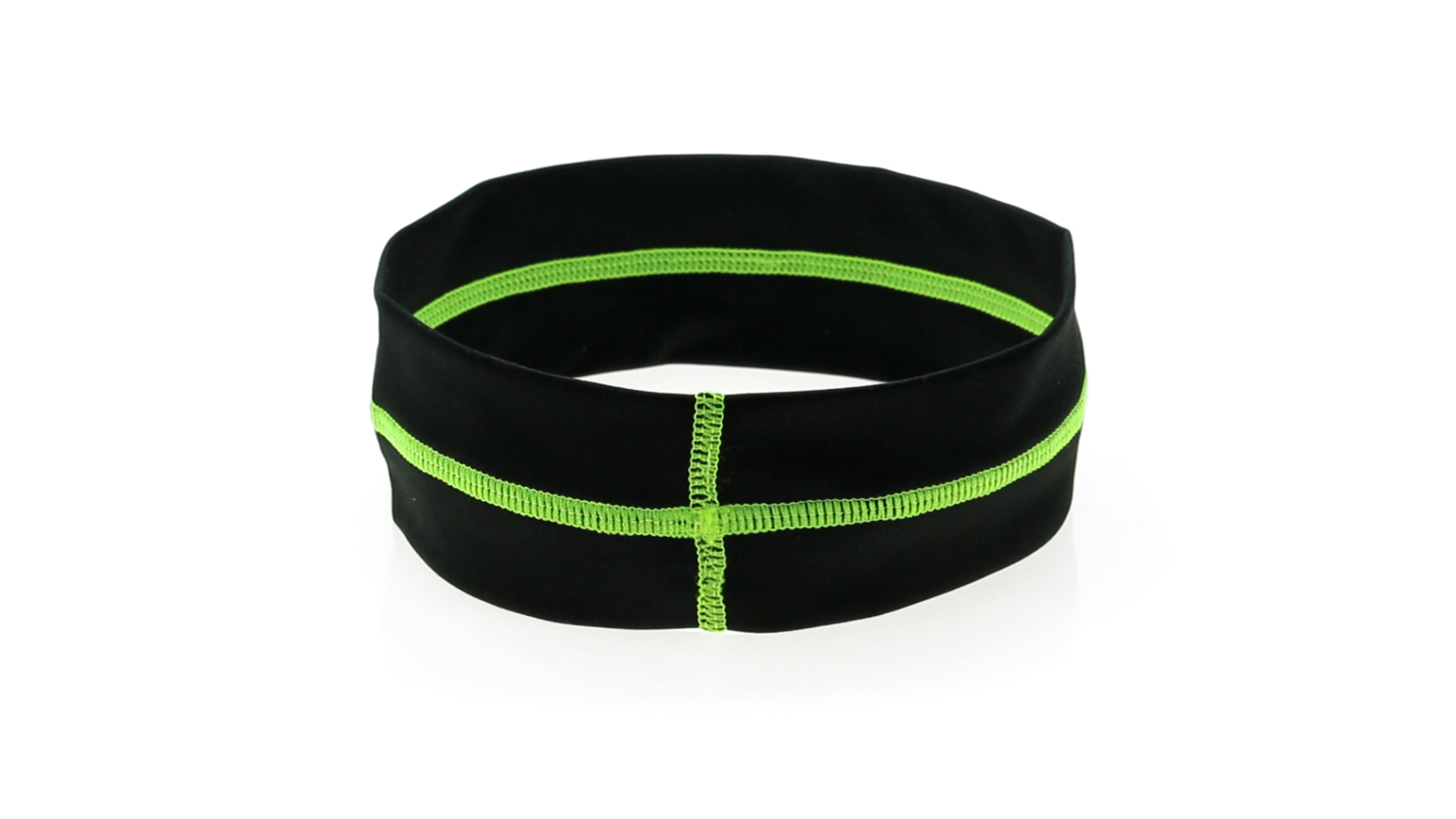 Elastisches Schweissband für den Kopf mit einer Breite von 5,7 cm und zweifarbigem Design mit Kontrastnähten. Hergestellt aus Spandex-Material für eine bequeme und feste Passform. Entwickelt für Sport- und Freizeitaktivitäten.