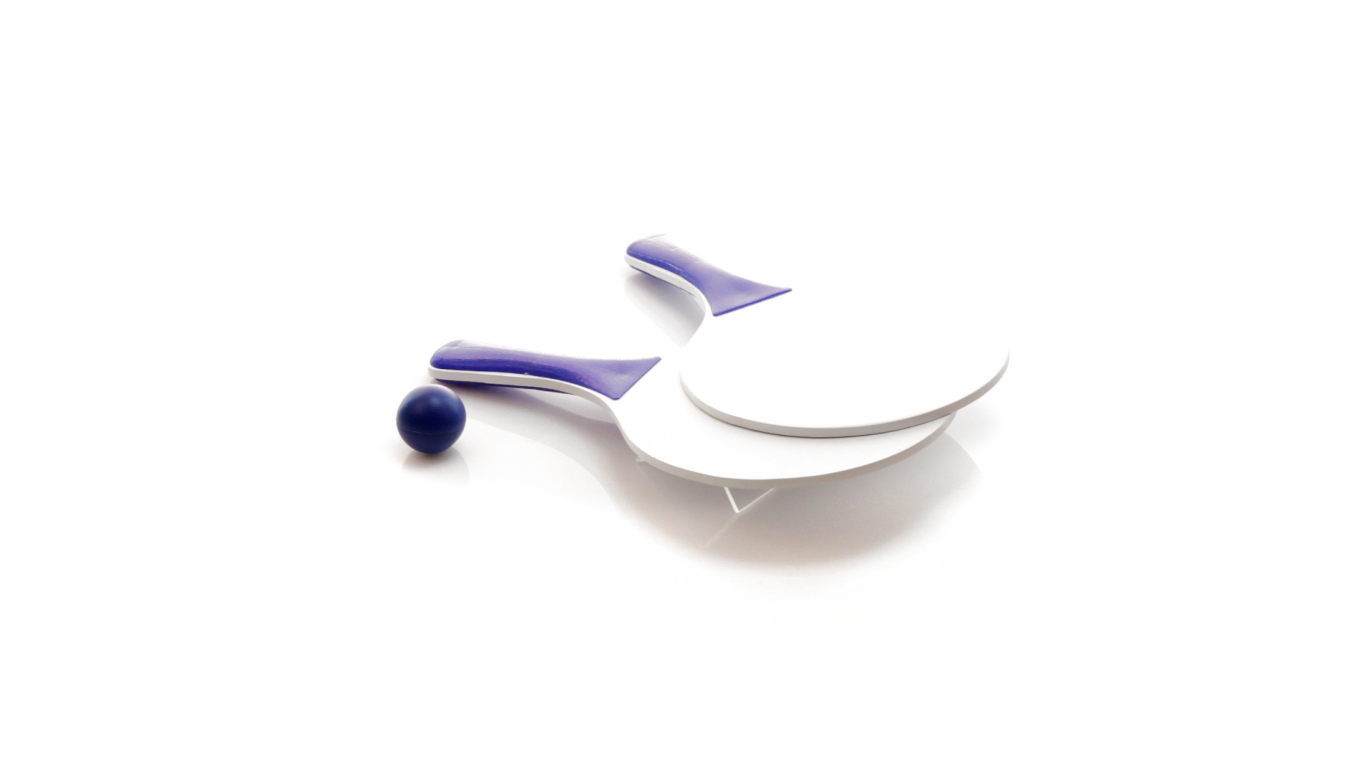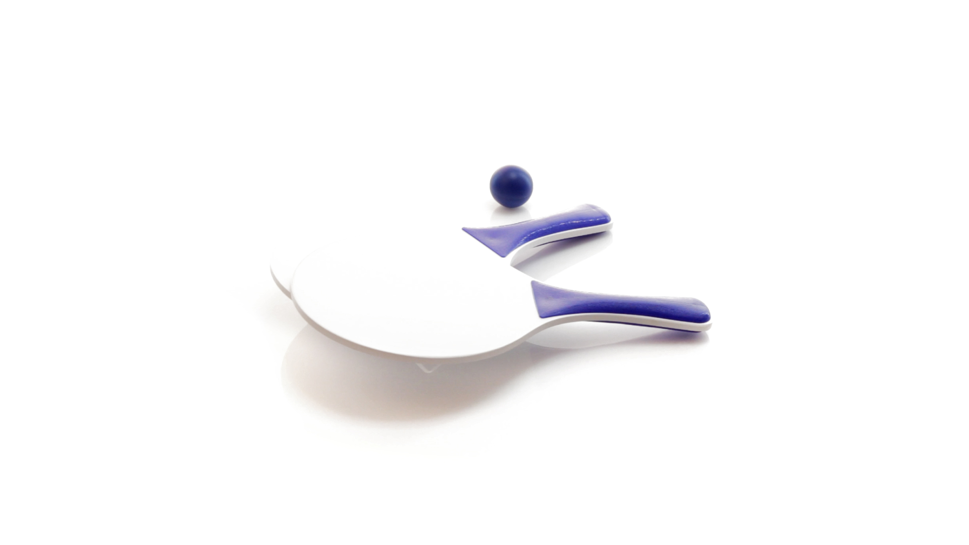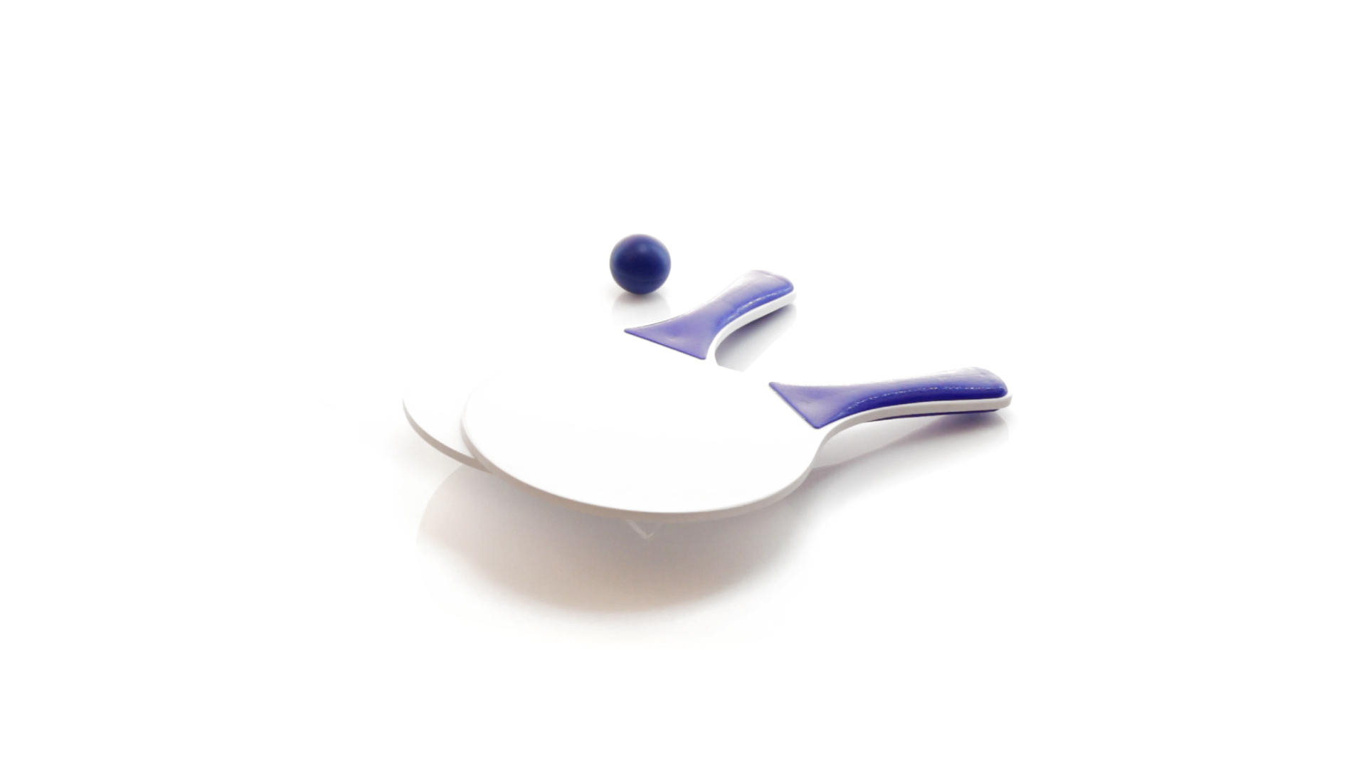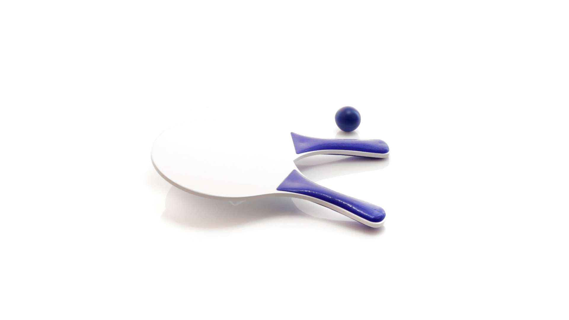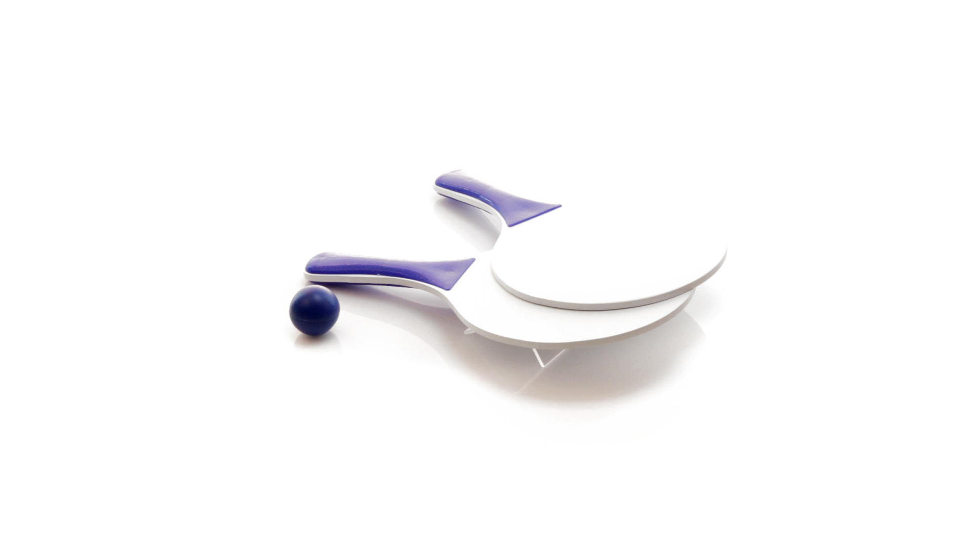 Beachball-Set mit zwei Schlägern aus Naturholz. Mit verstärkten Griffen in einer Vielzahl von lebendigen Farben. Präsentiert in einer Netztasche mit farblich passendem Ball.
