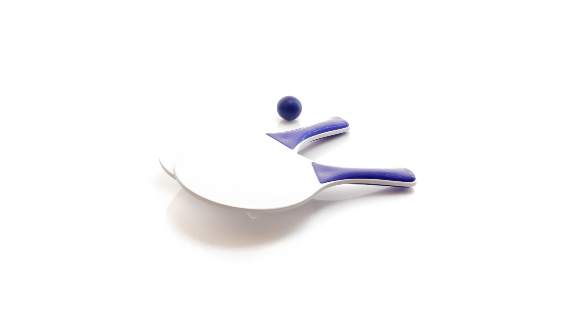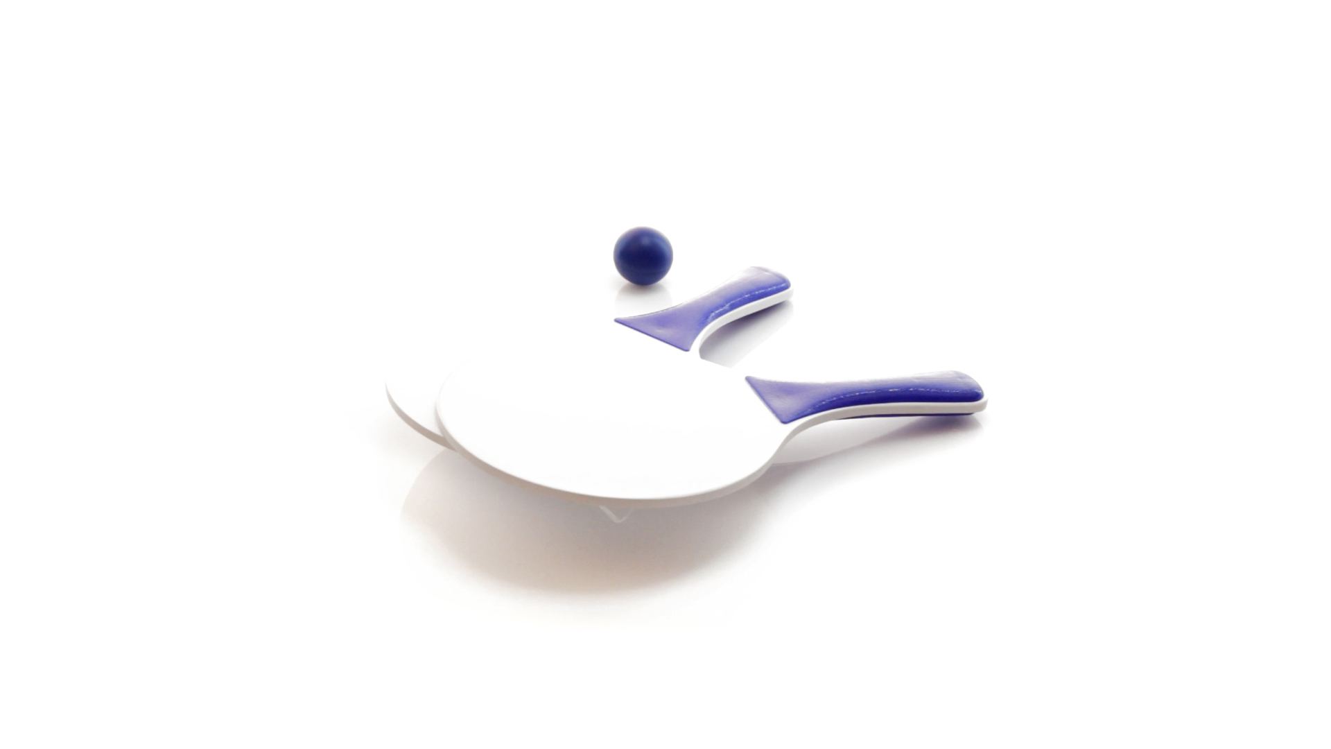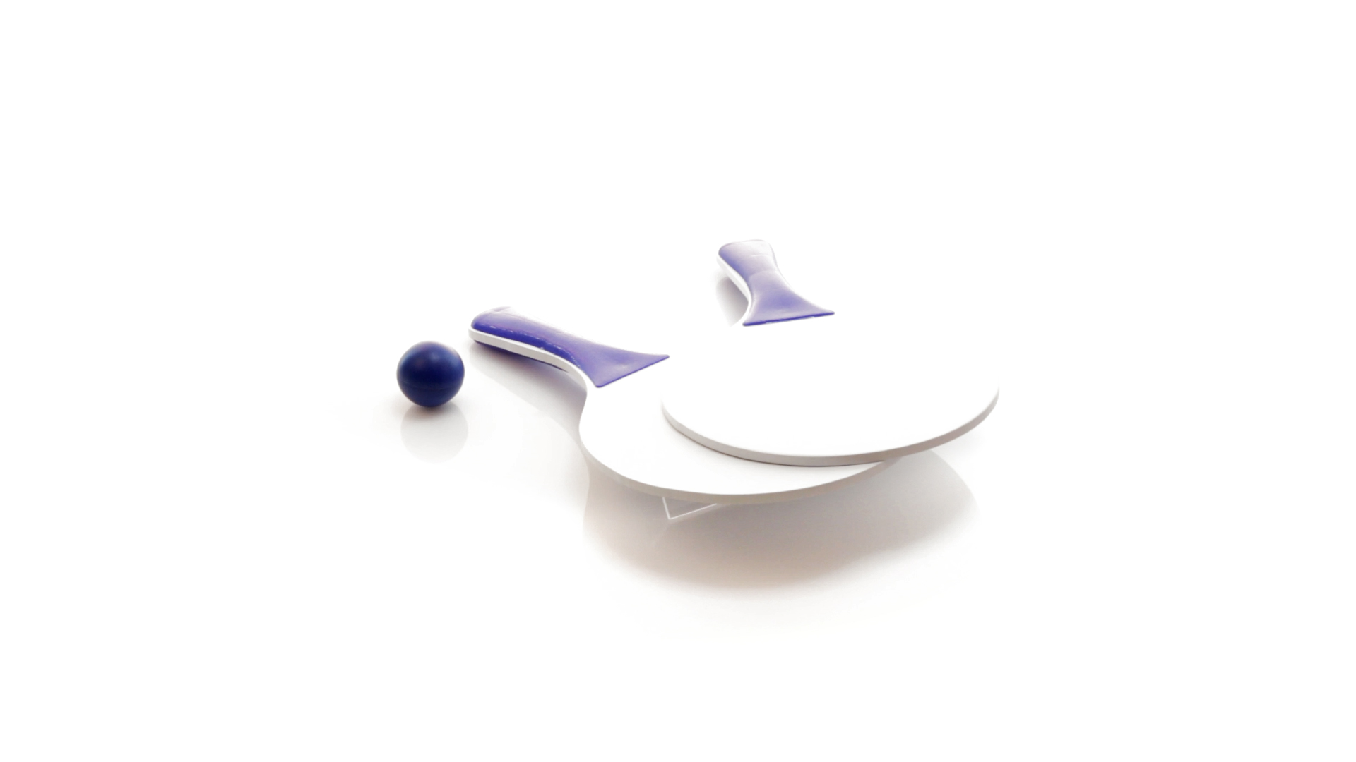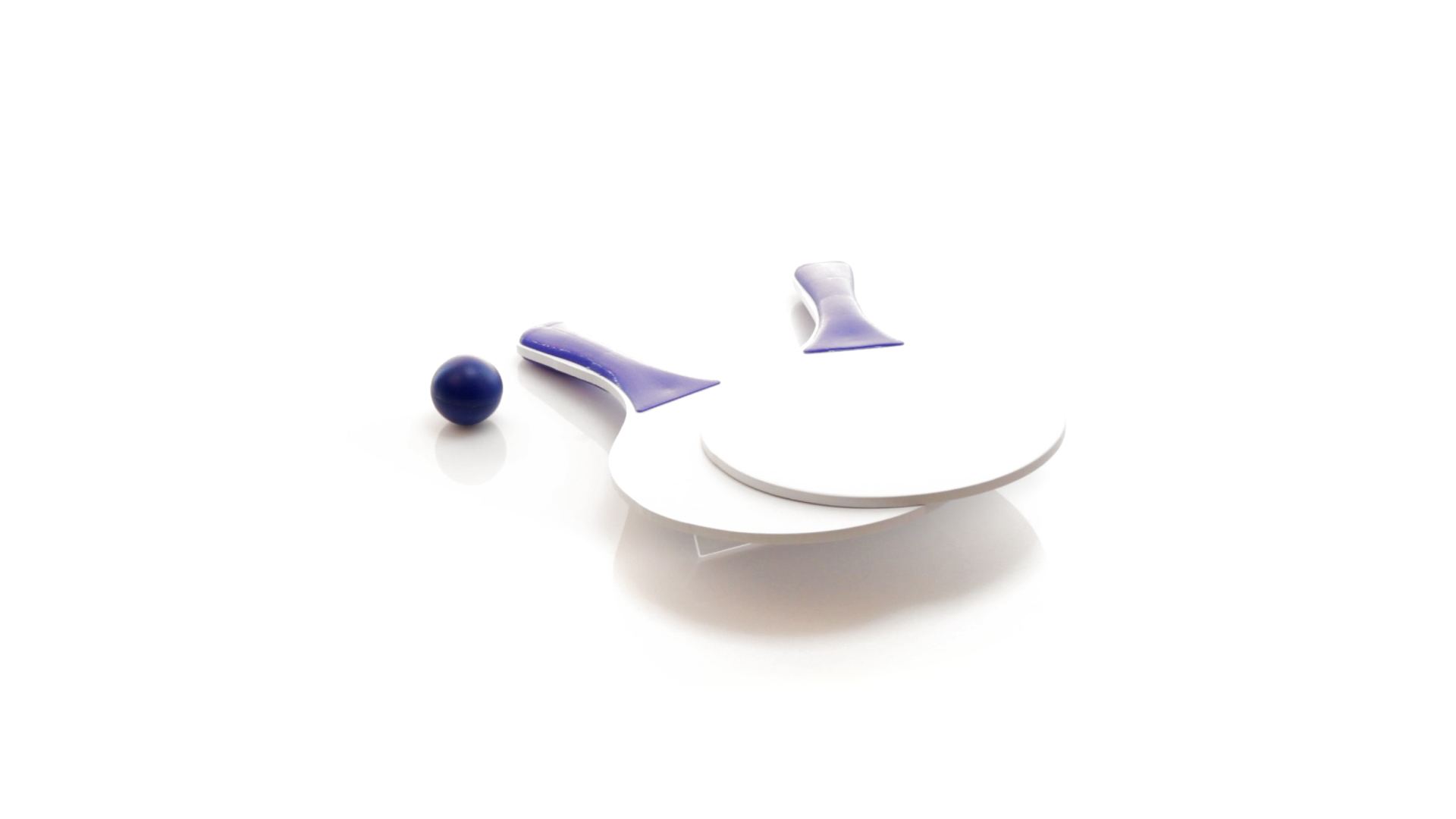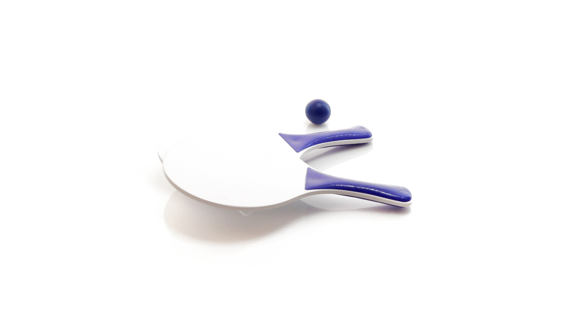 Beachball-Set mit zwei Schlägern aus Naturholz. Mit verstärkten Griffen in einer Vielzahl von lebendigen Farben. Präsentiert in einer Netztasche mit farblich passendem Ball.
