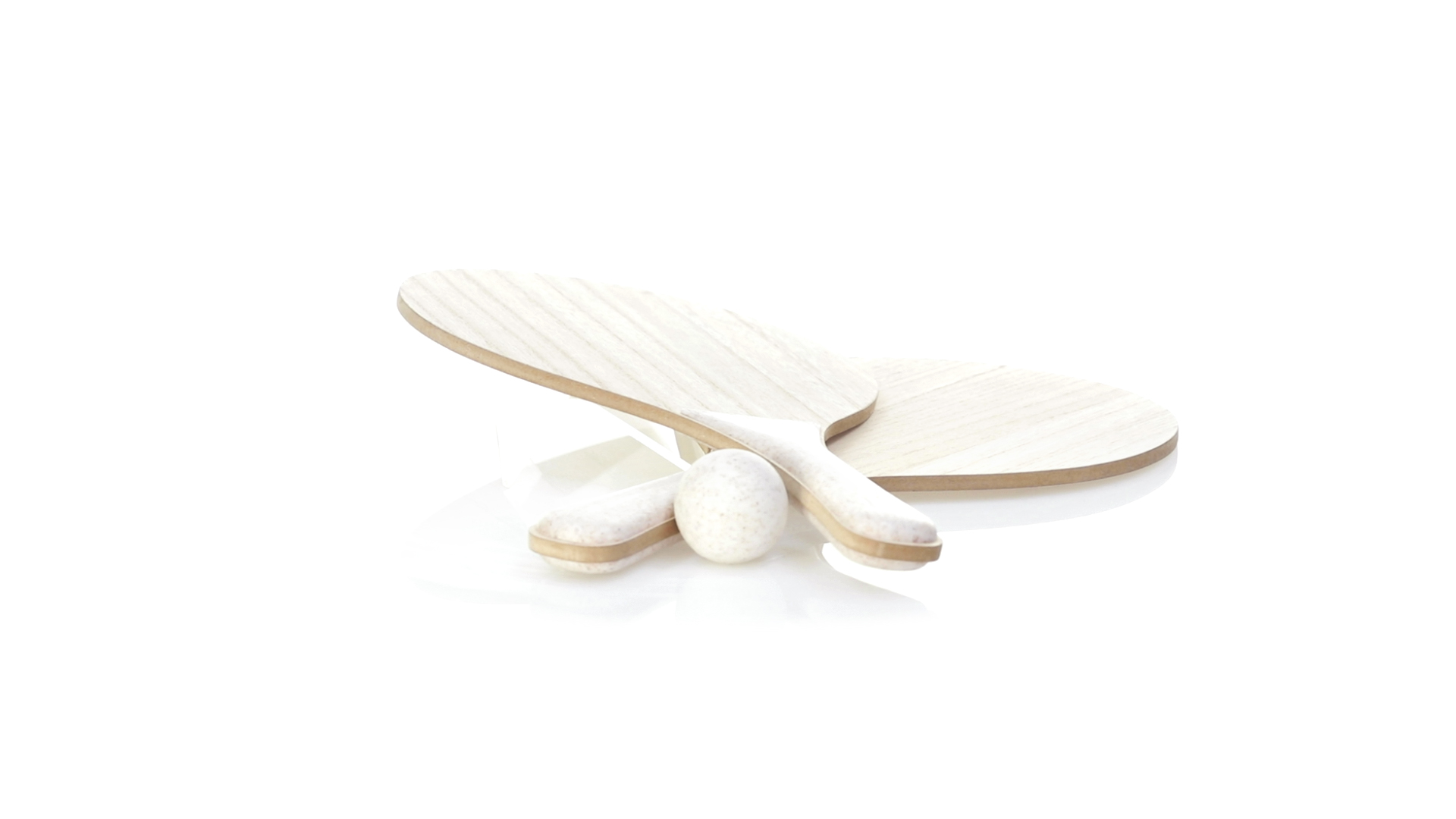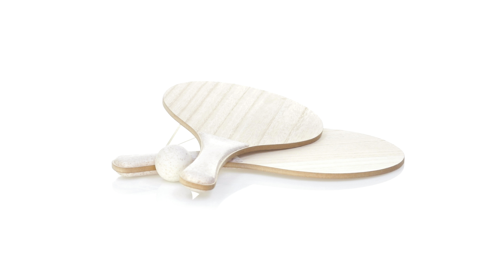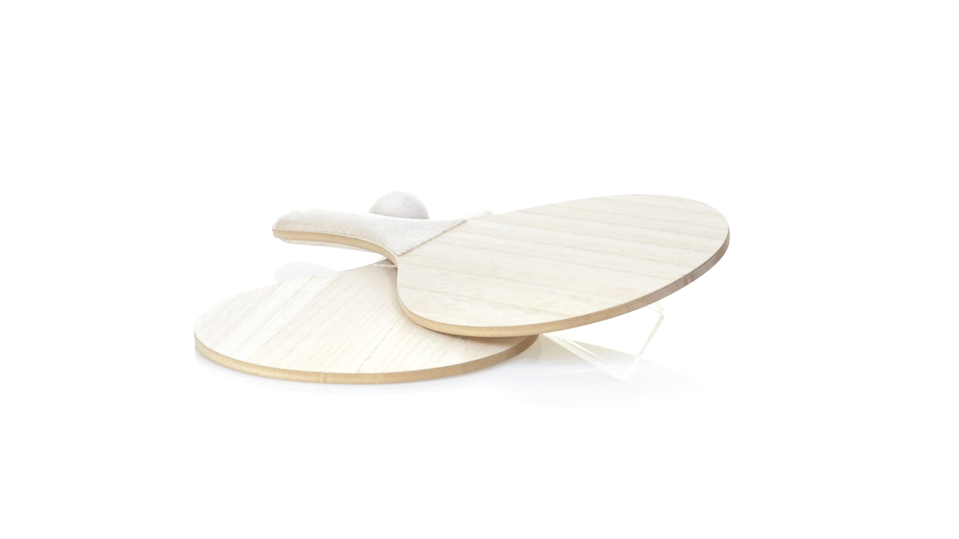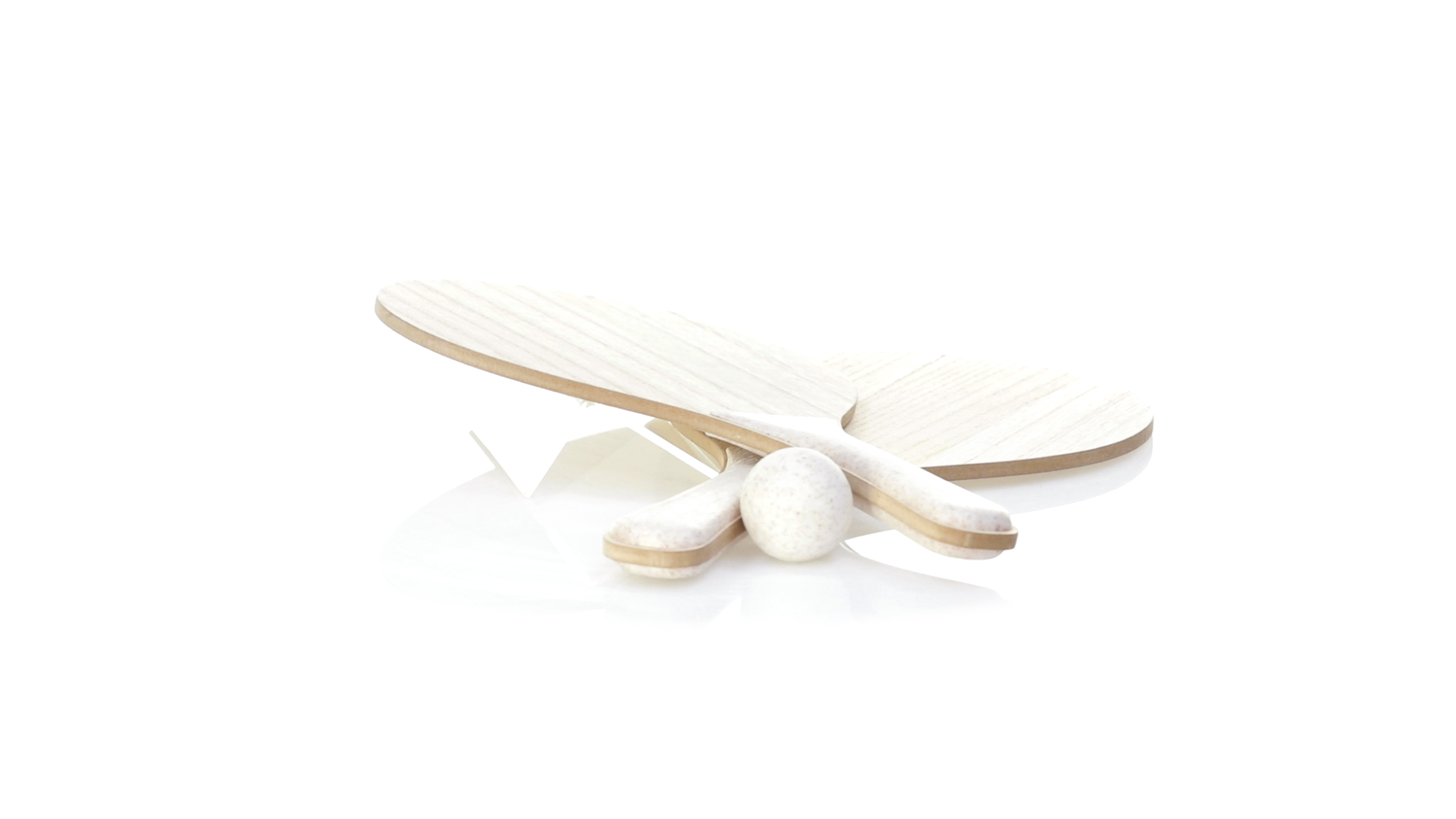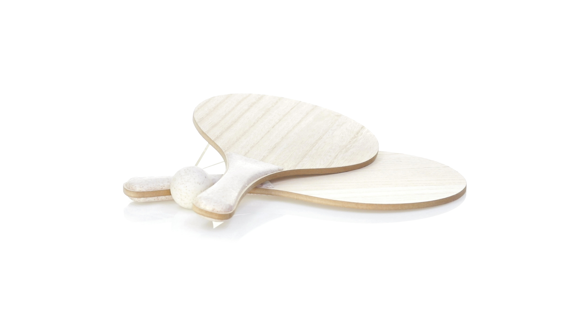 Linie "Natur" Ein Paar Beachschläger. Hergestellt aus Holz, mit verstärktem Weizenstrohgriff. Präsentiert in einer Netztasche, inkl. eines Weizenstrohballs. Emblem auf dem Griff.