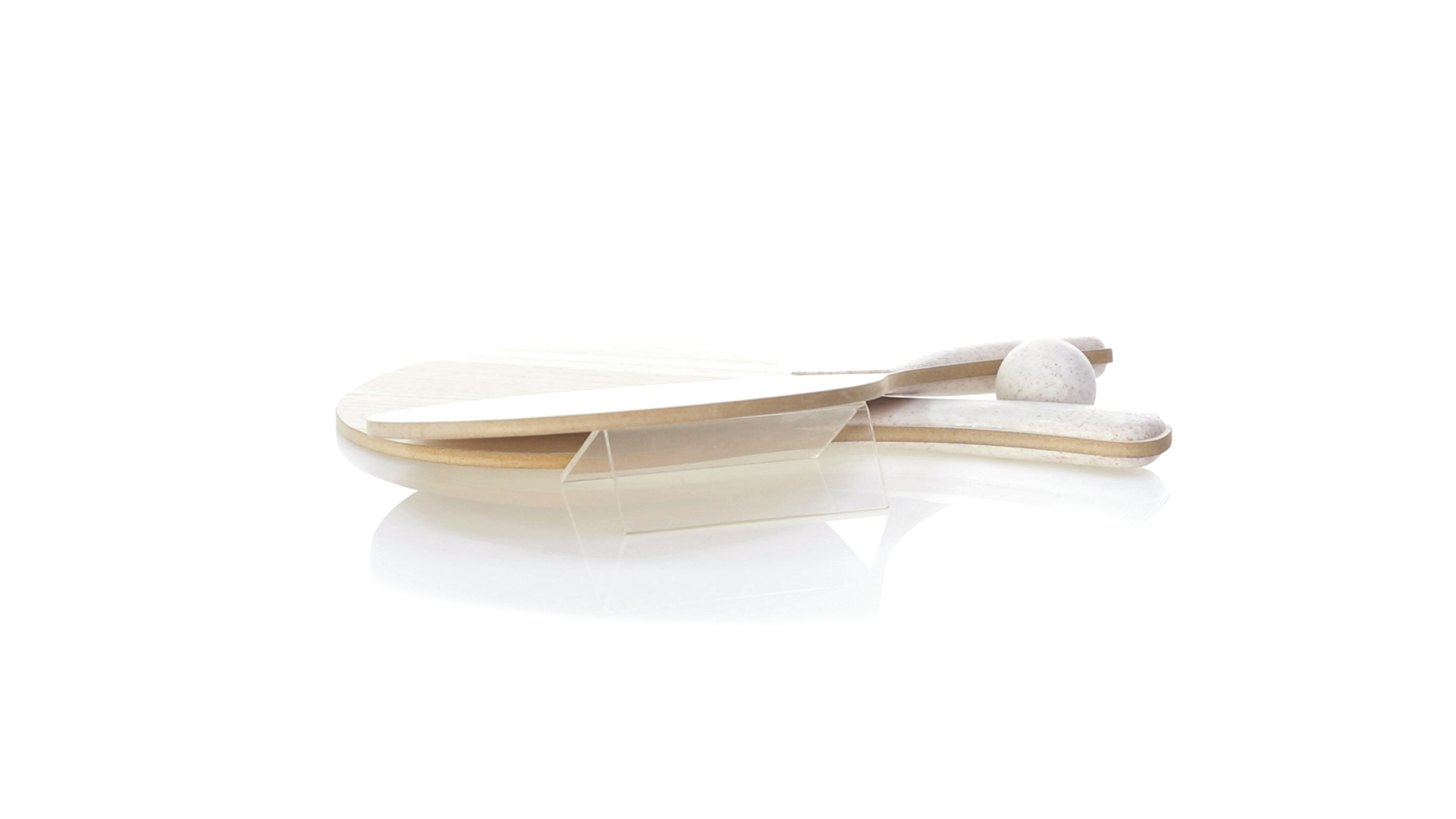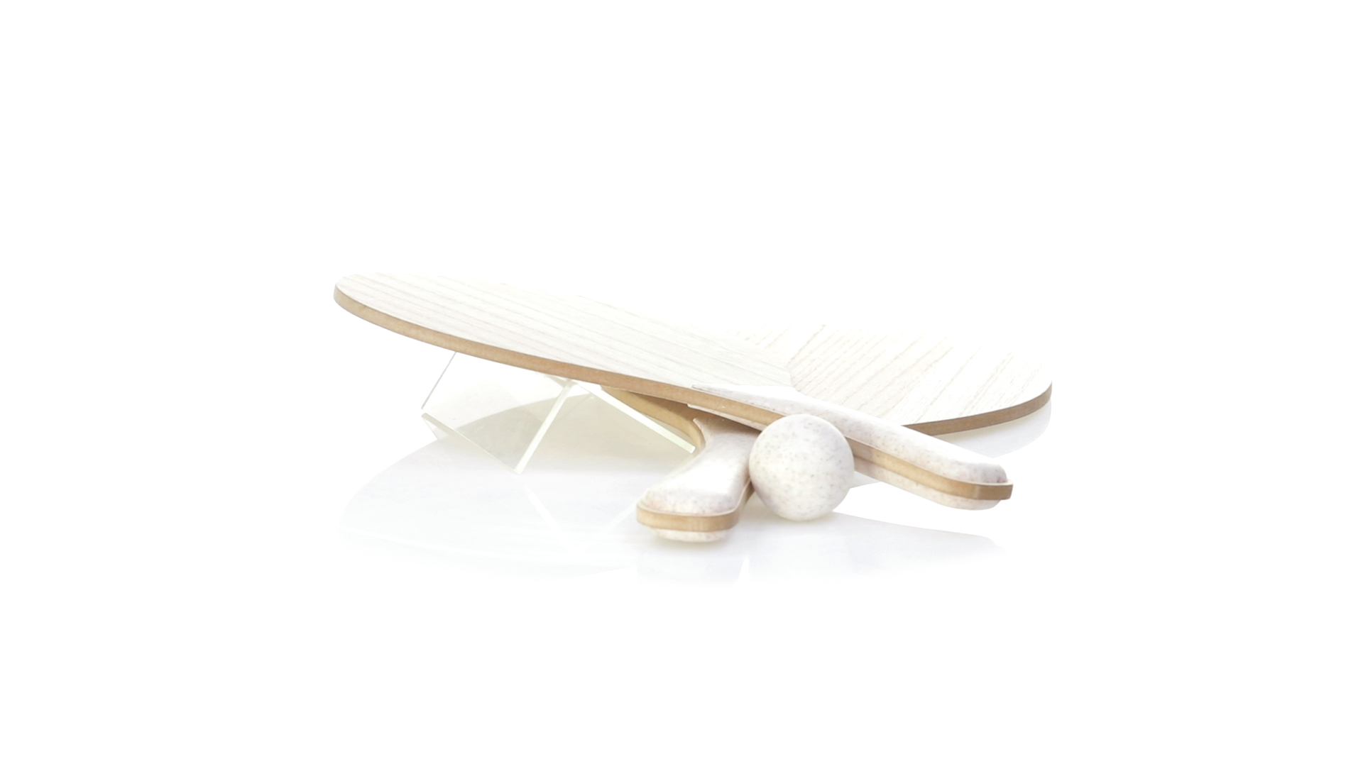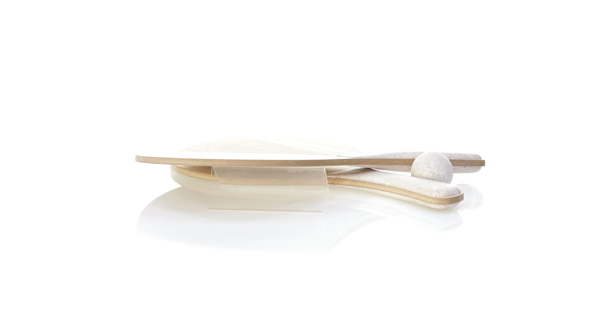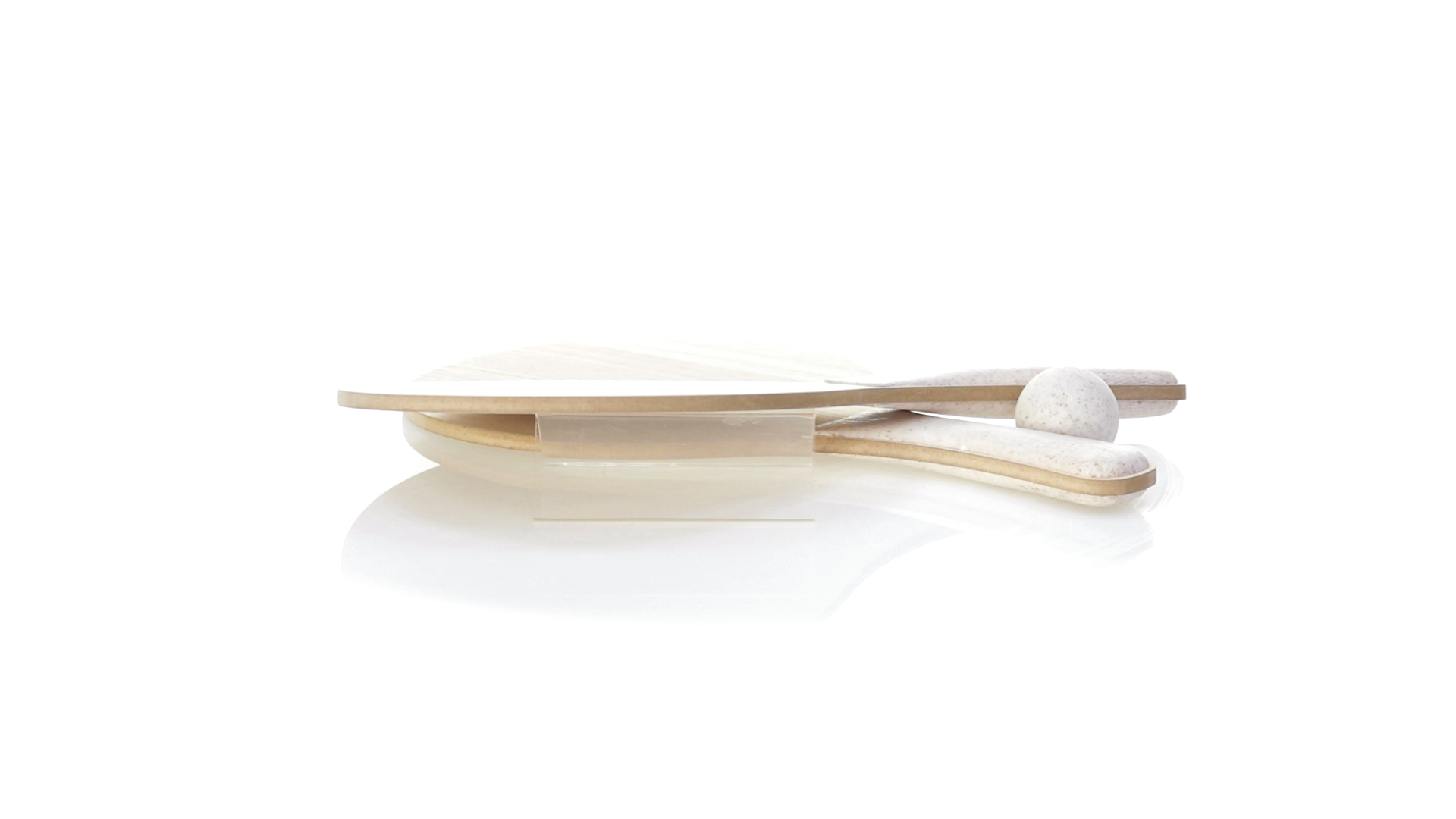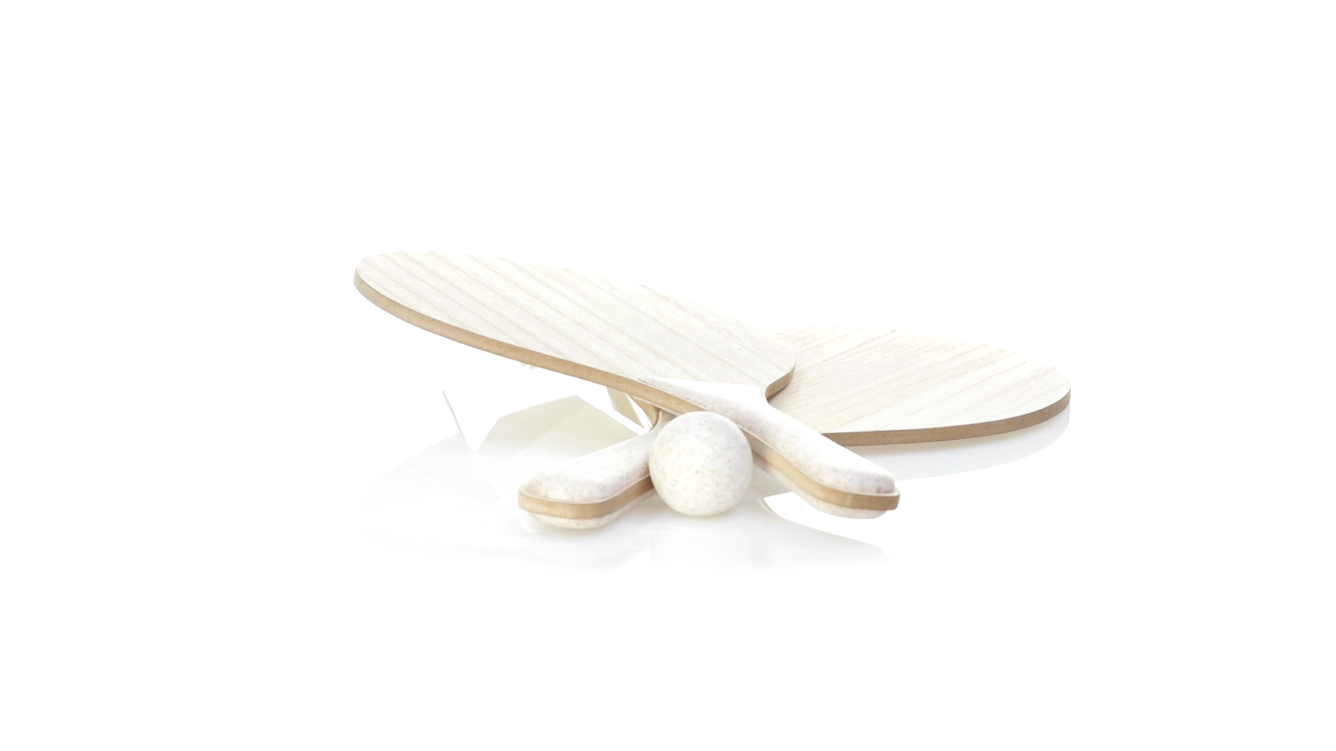 Linie "Natur" Ein Paar Beachschläger. Hergestellt aus Holz, mit verstärktem Weizenstrohgriff. Präsentiert in einer Netztasche, inkl. eines Weizenstrohballs. Emblem auf dem Griff.
