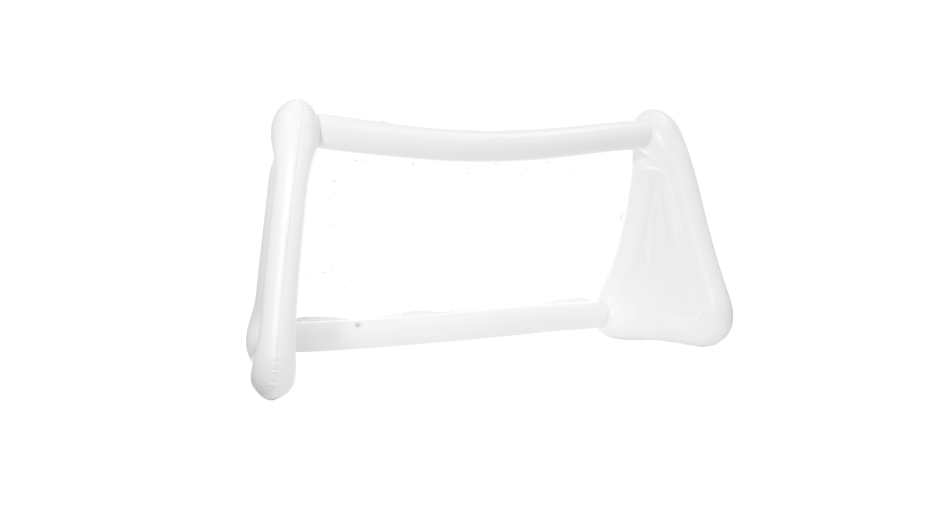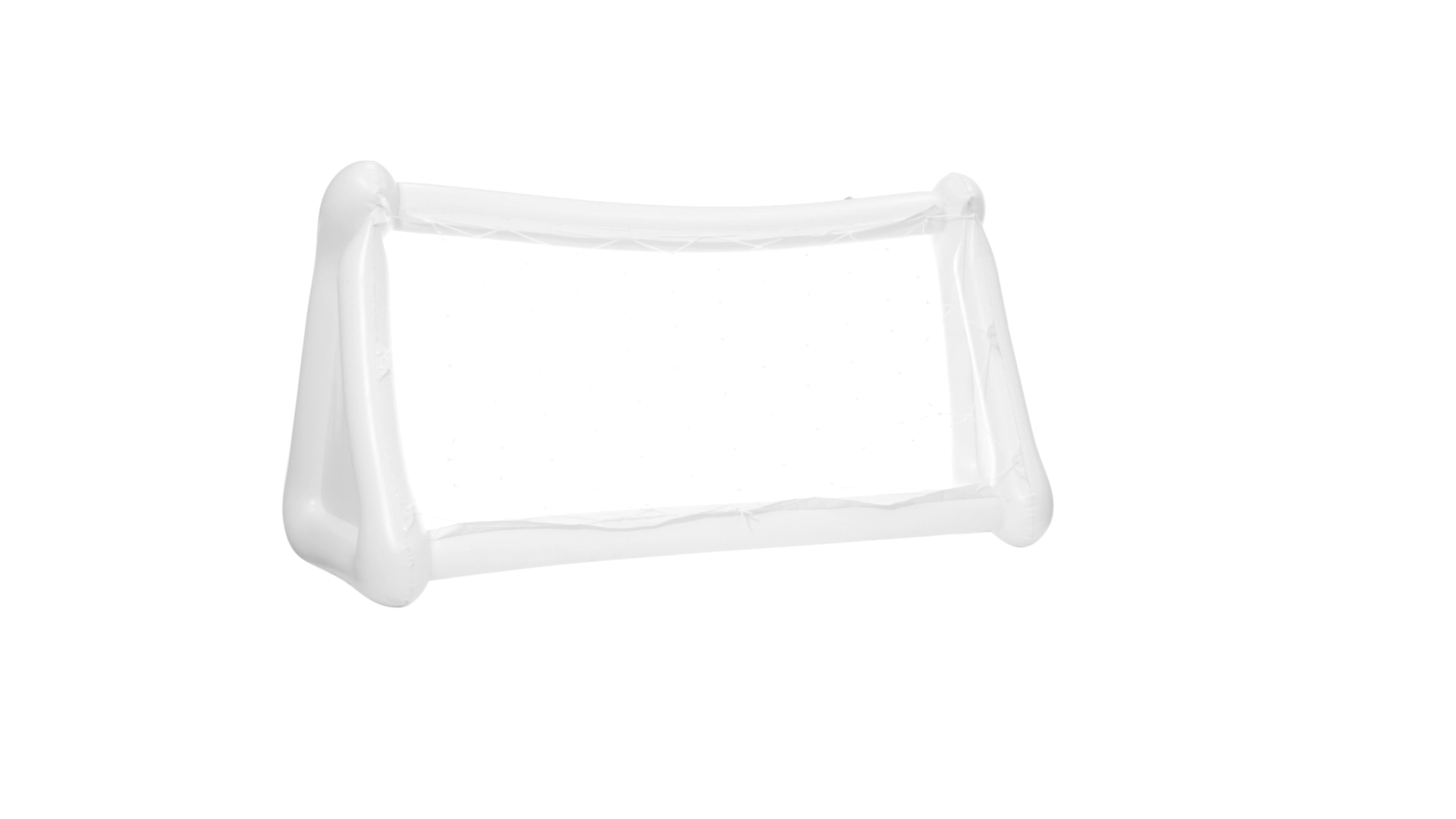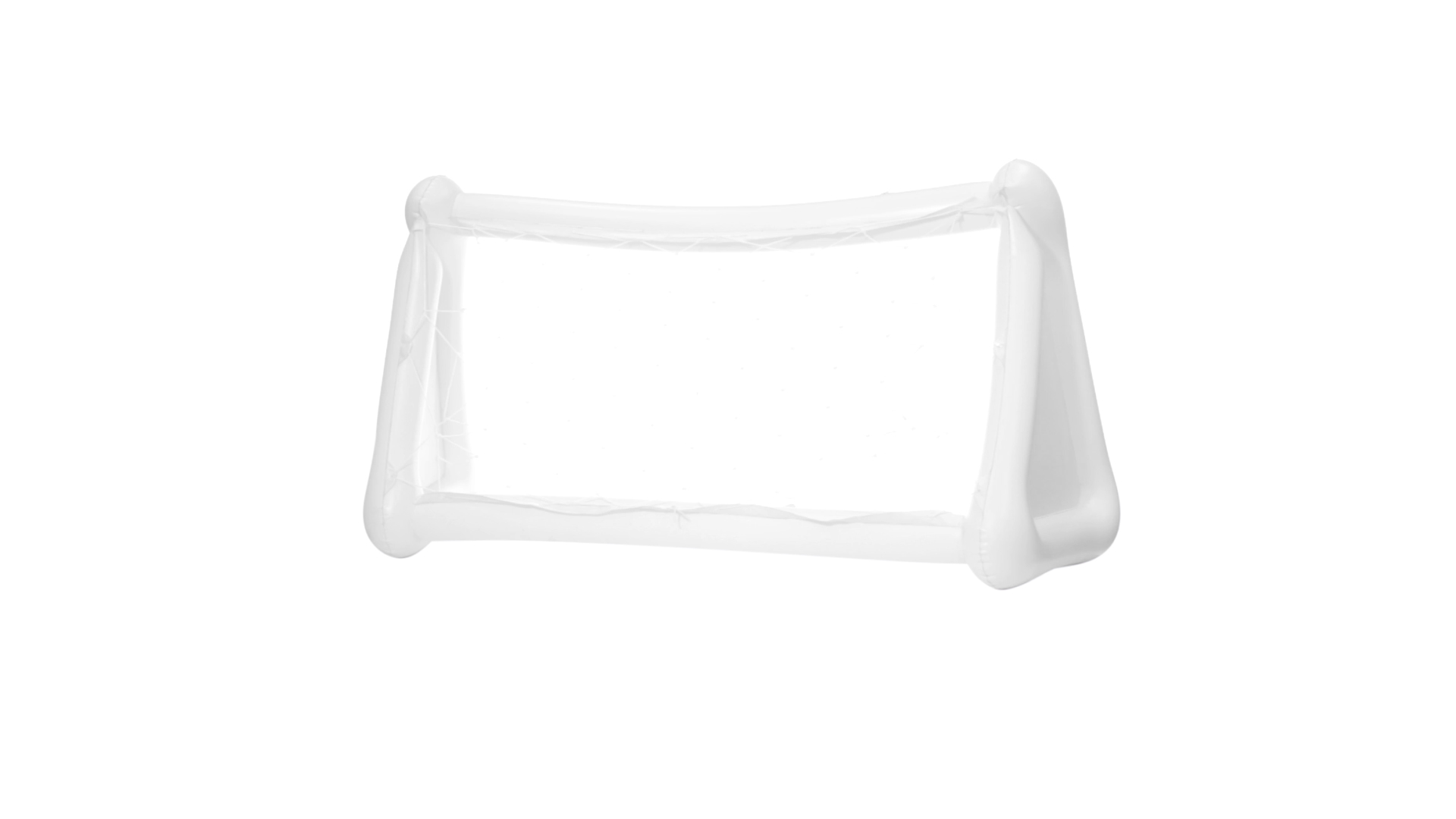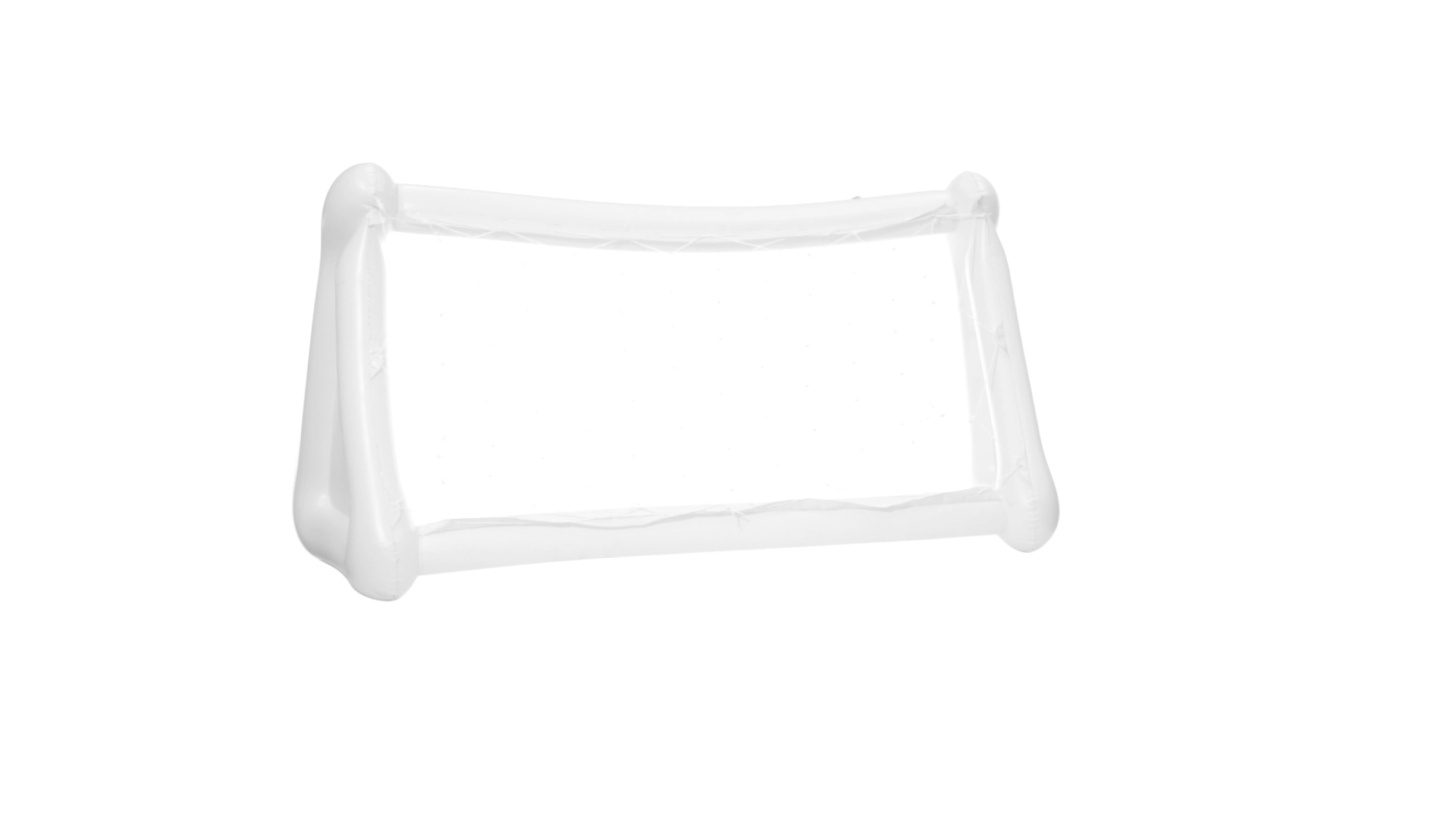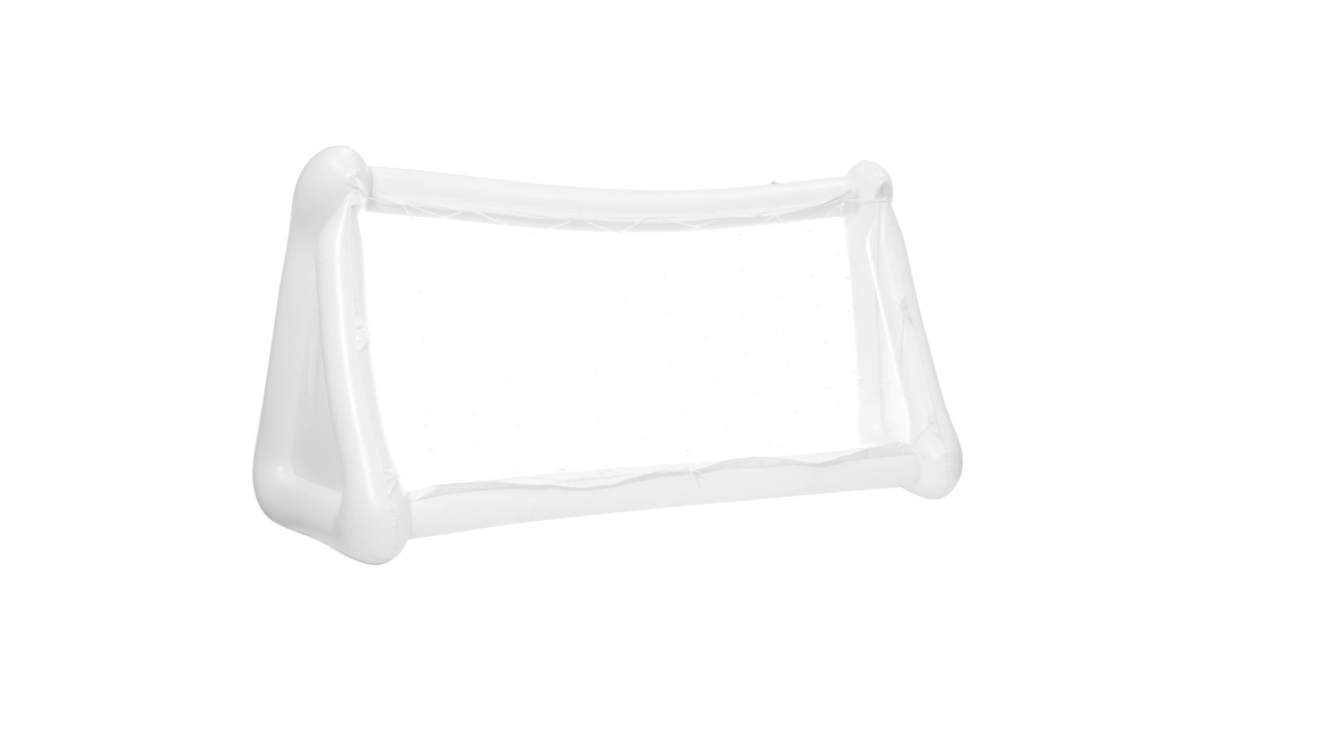 Witziges, aufblasbares Tor aus resistentem PVC in Weiss. Präsentiert mit spezieller Faltung für einfaches Bedrucken.