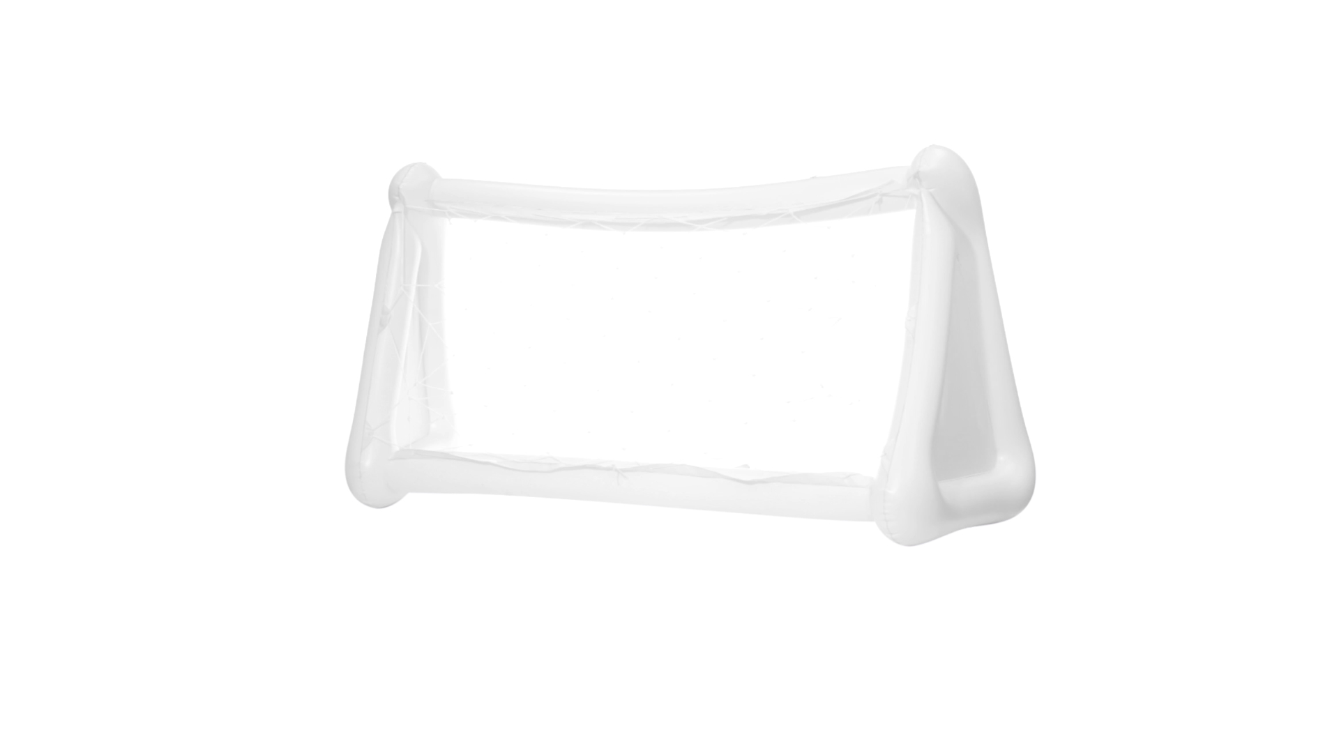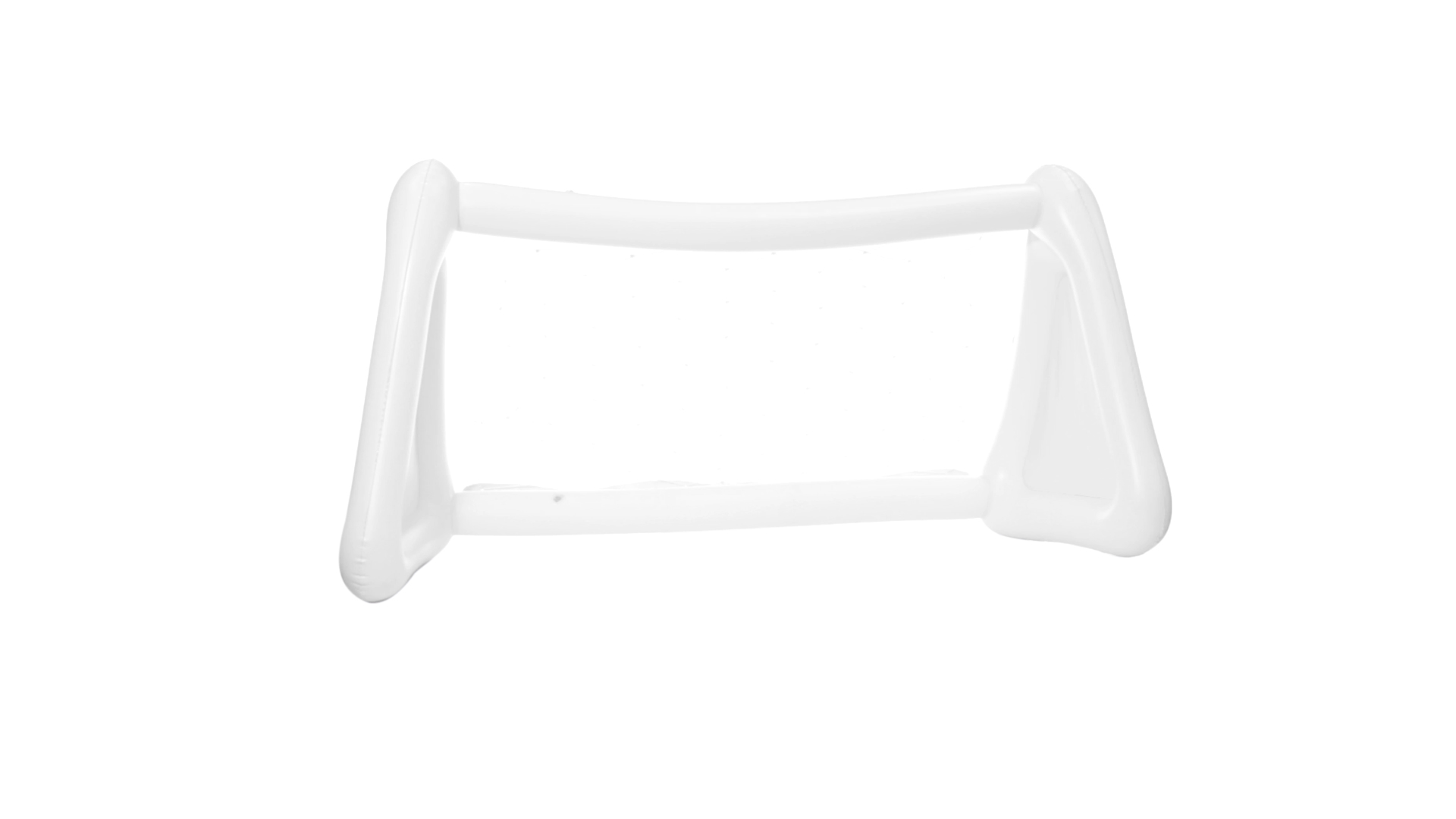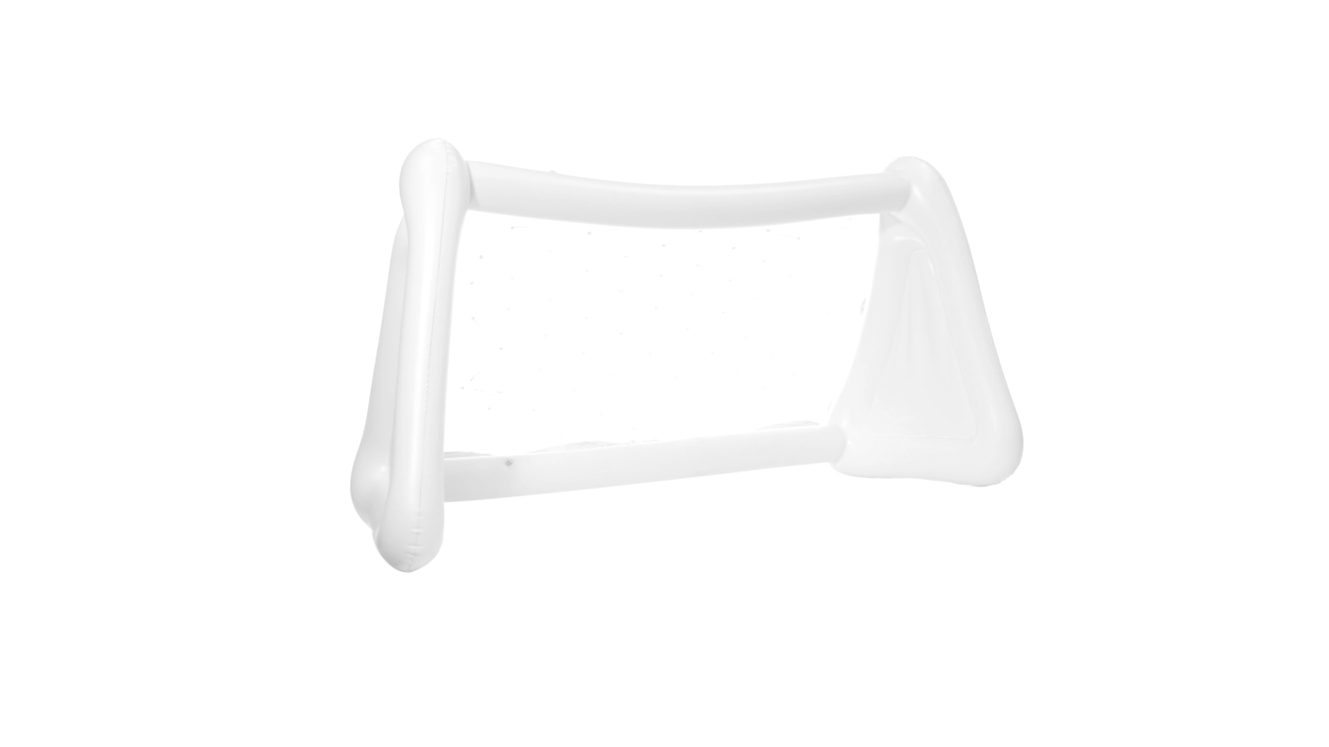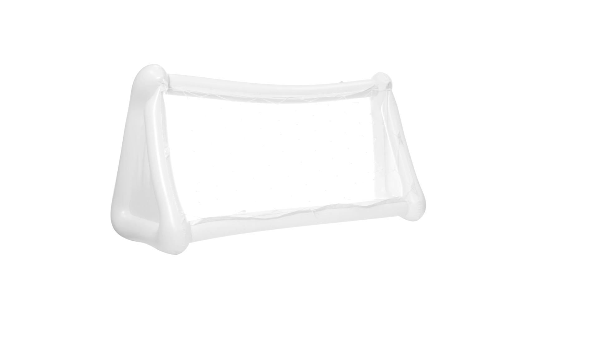 Witziges, aufblasbares Tor aus resistentem PVC in Weiss. Präsentiert mit spezieller Faltung für einfaches Bedrucken.