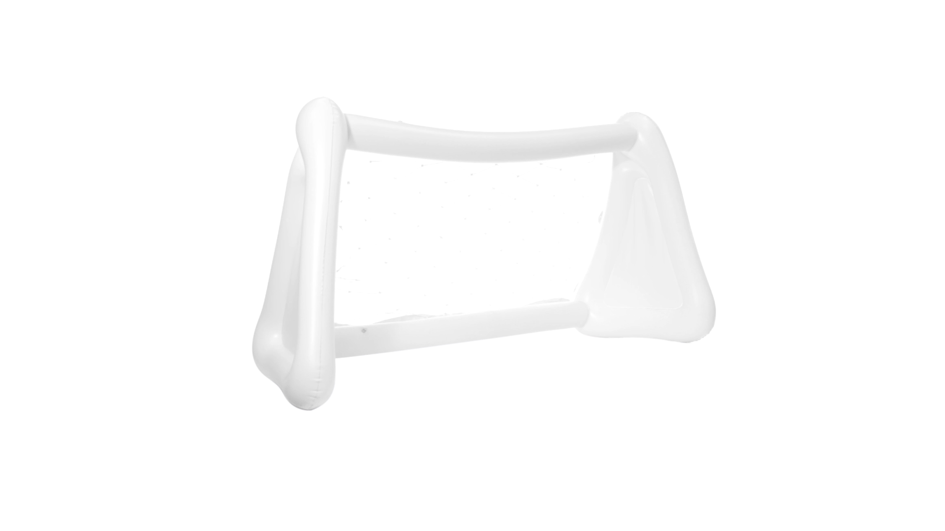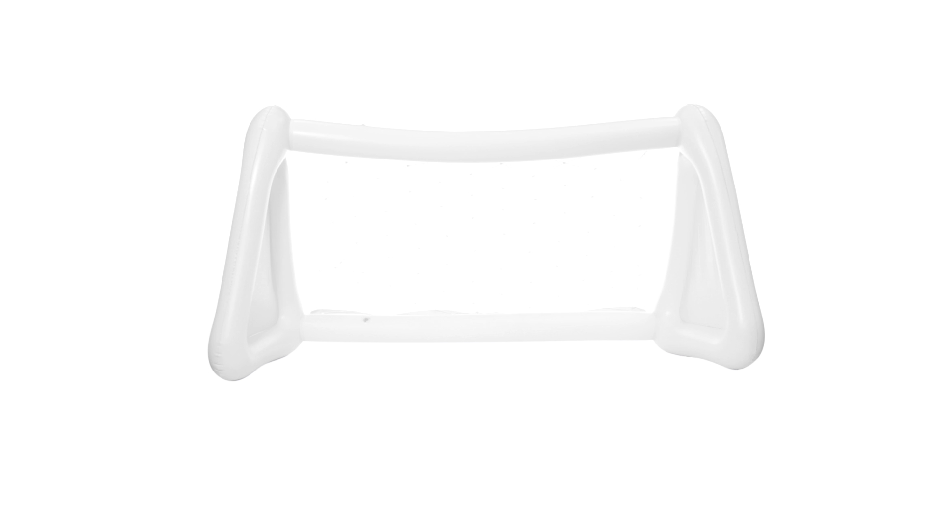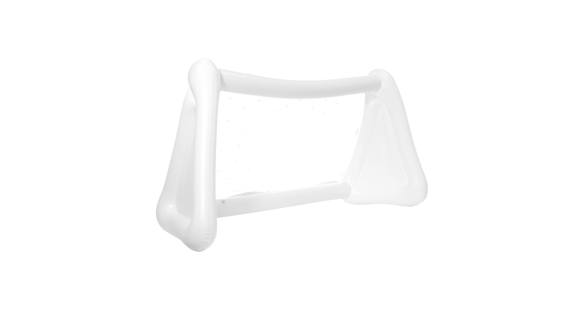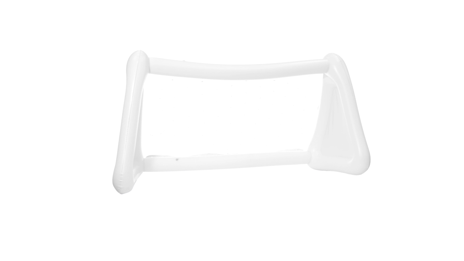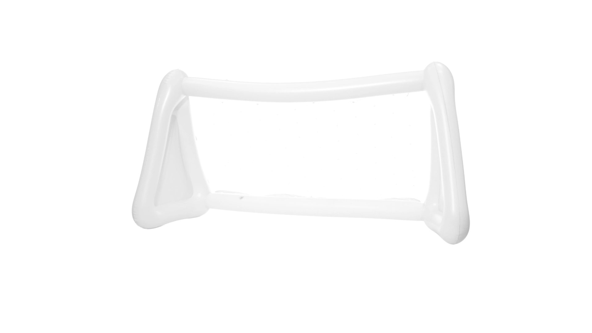 Witziges, aufblasbares Tor aus resistentem PVC in Weiss. Präsentiert mit spezieller Faltung für einfaches Bedrucken.