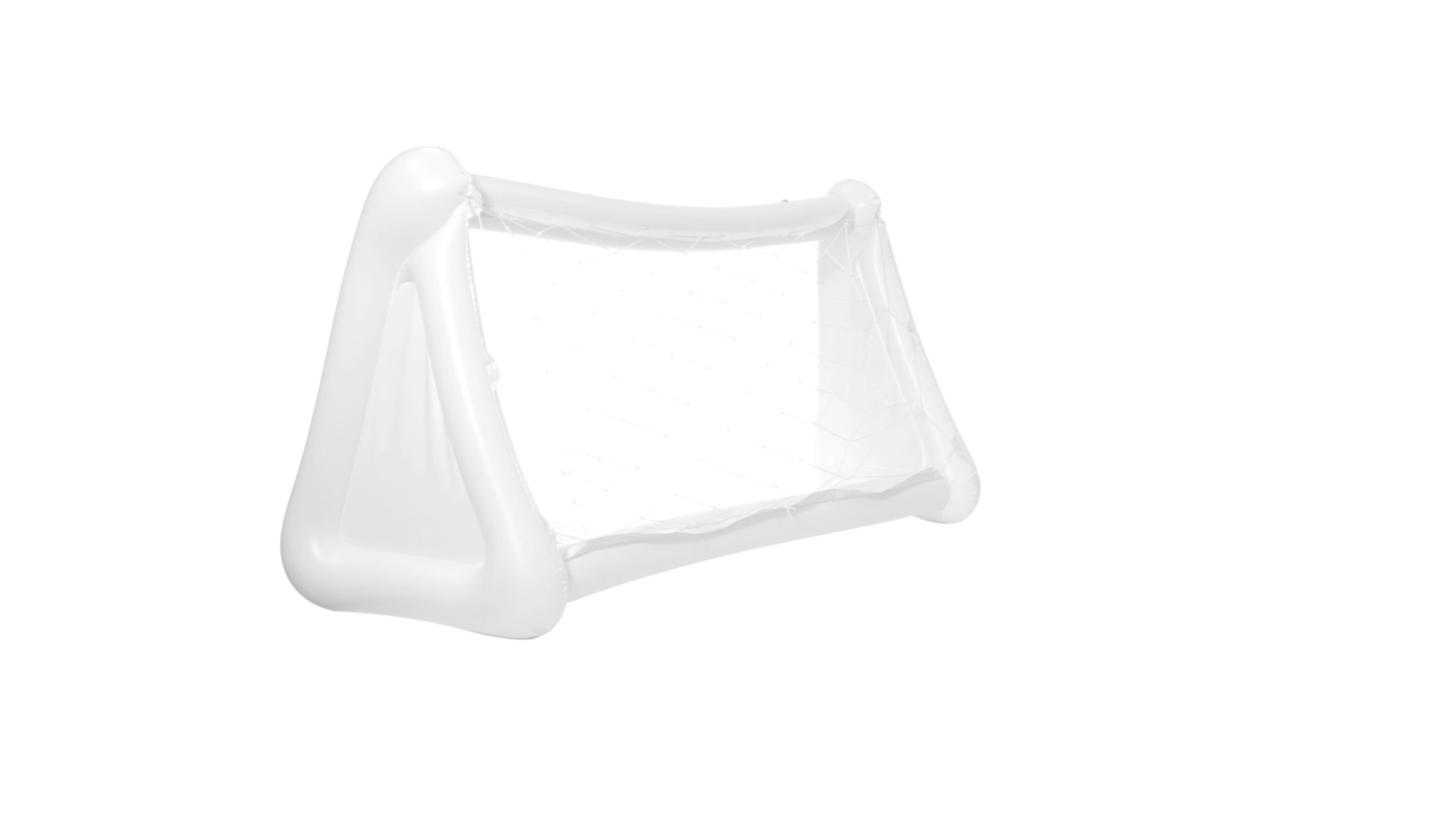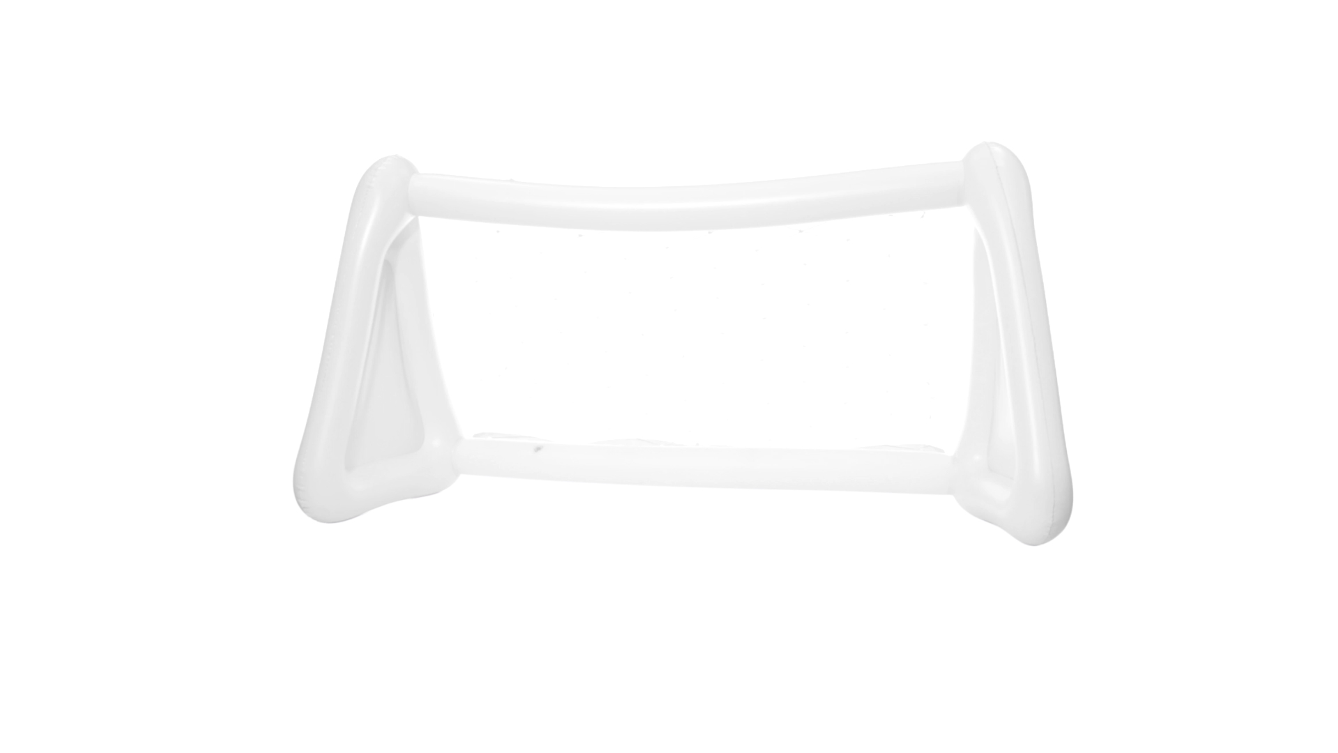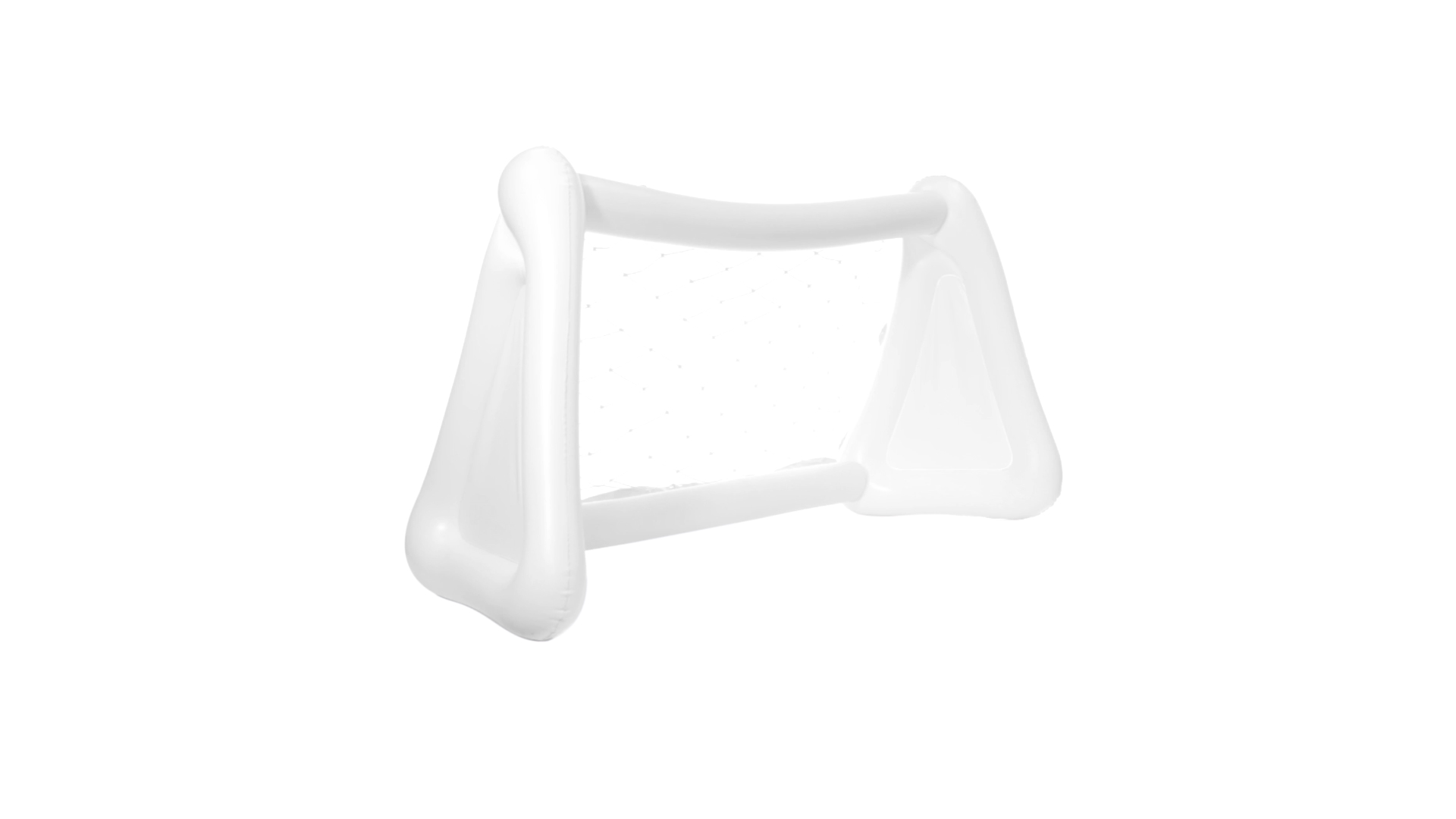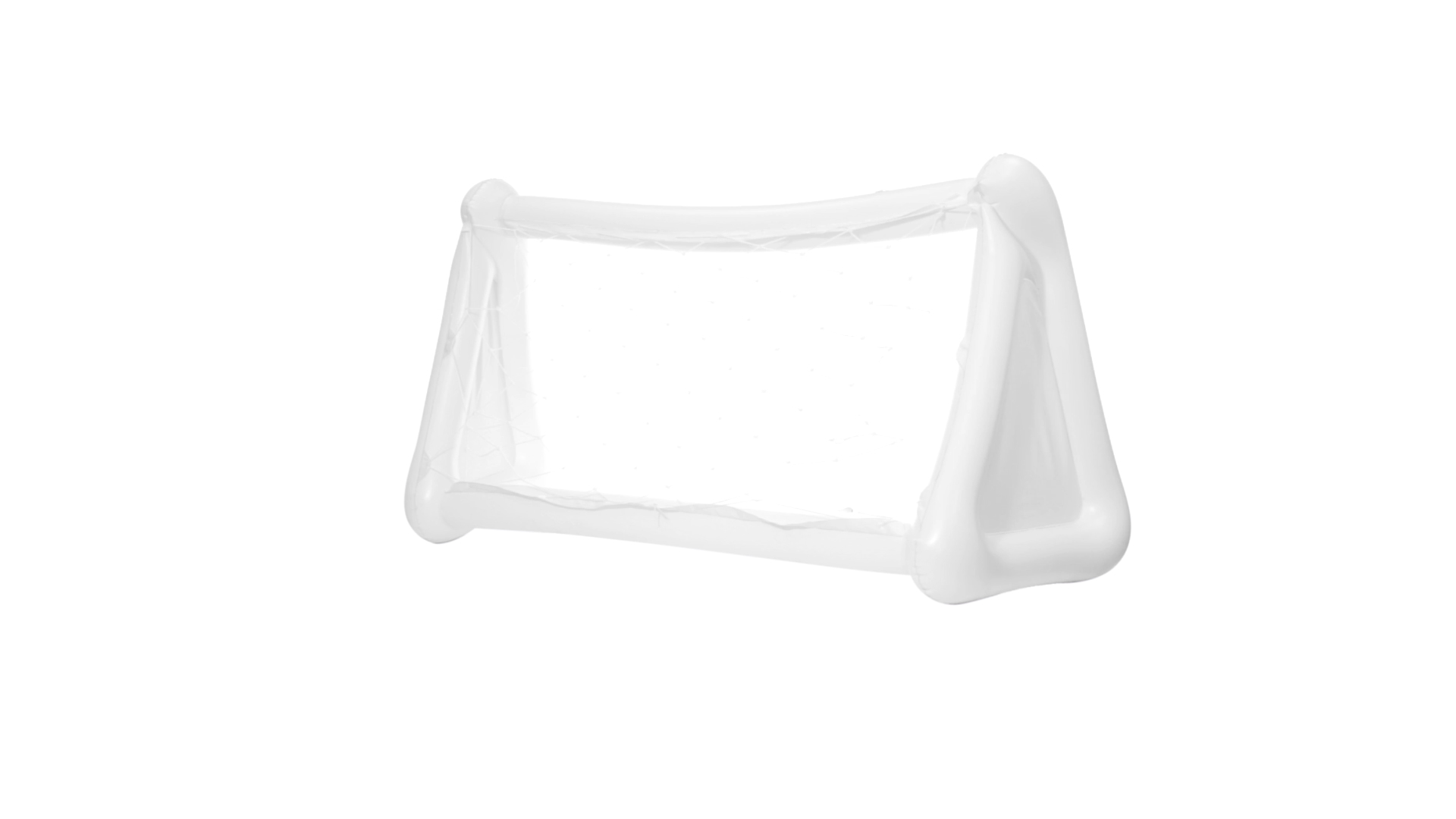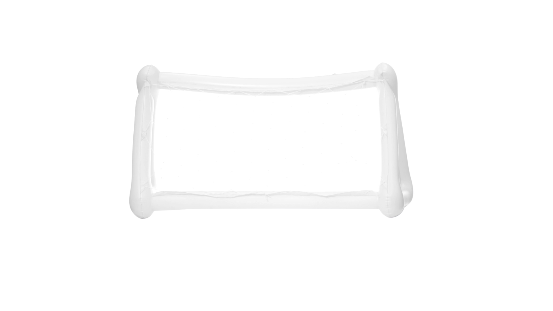 Witziges, aufblasbares Tor aus resistentem PVC in Weiss. Präsentiert mit spezieller Faltung für einfaches Bedrucken.
