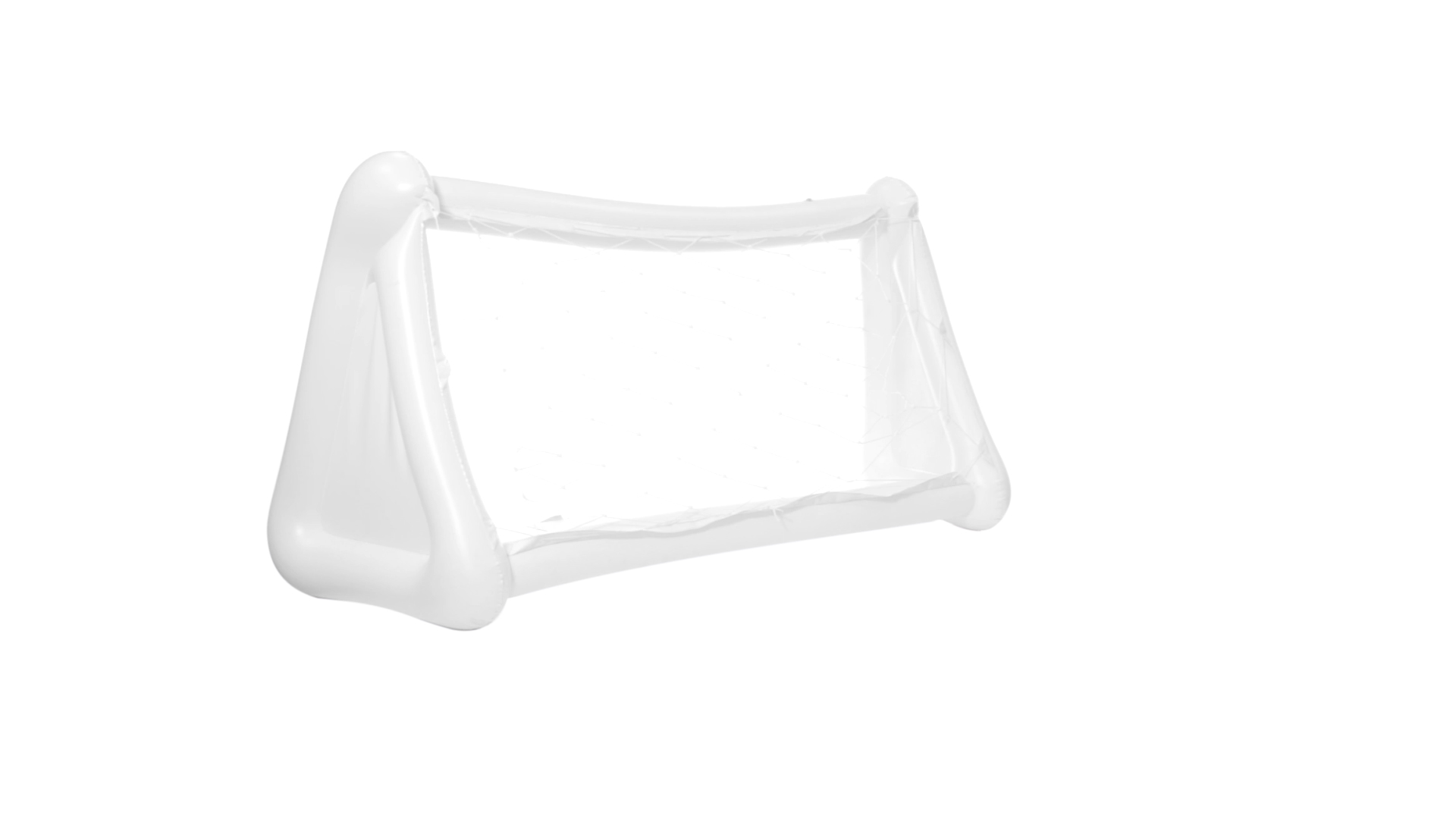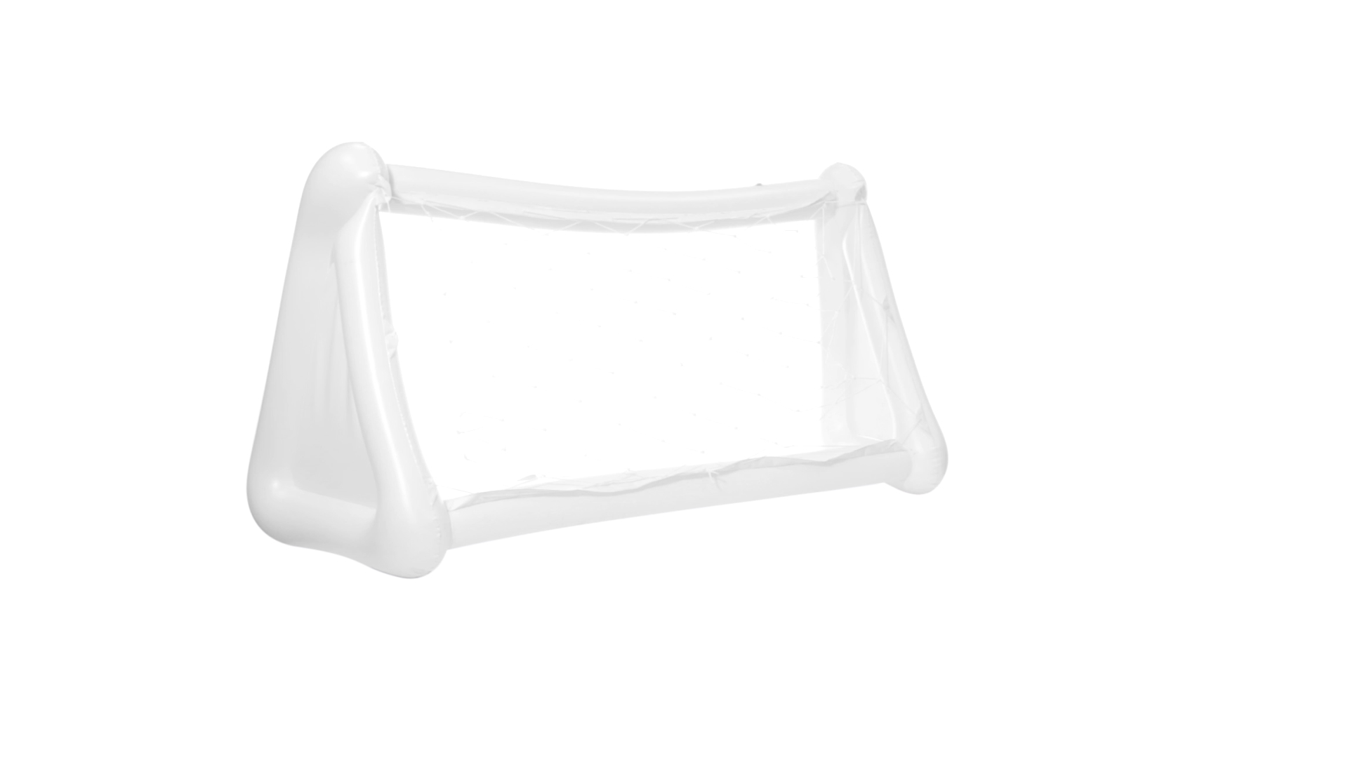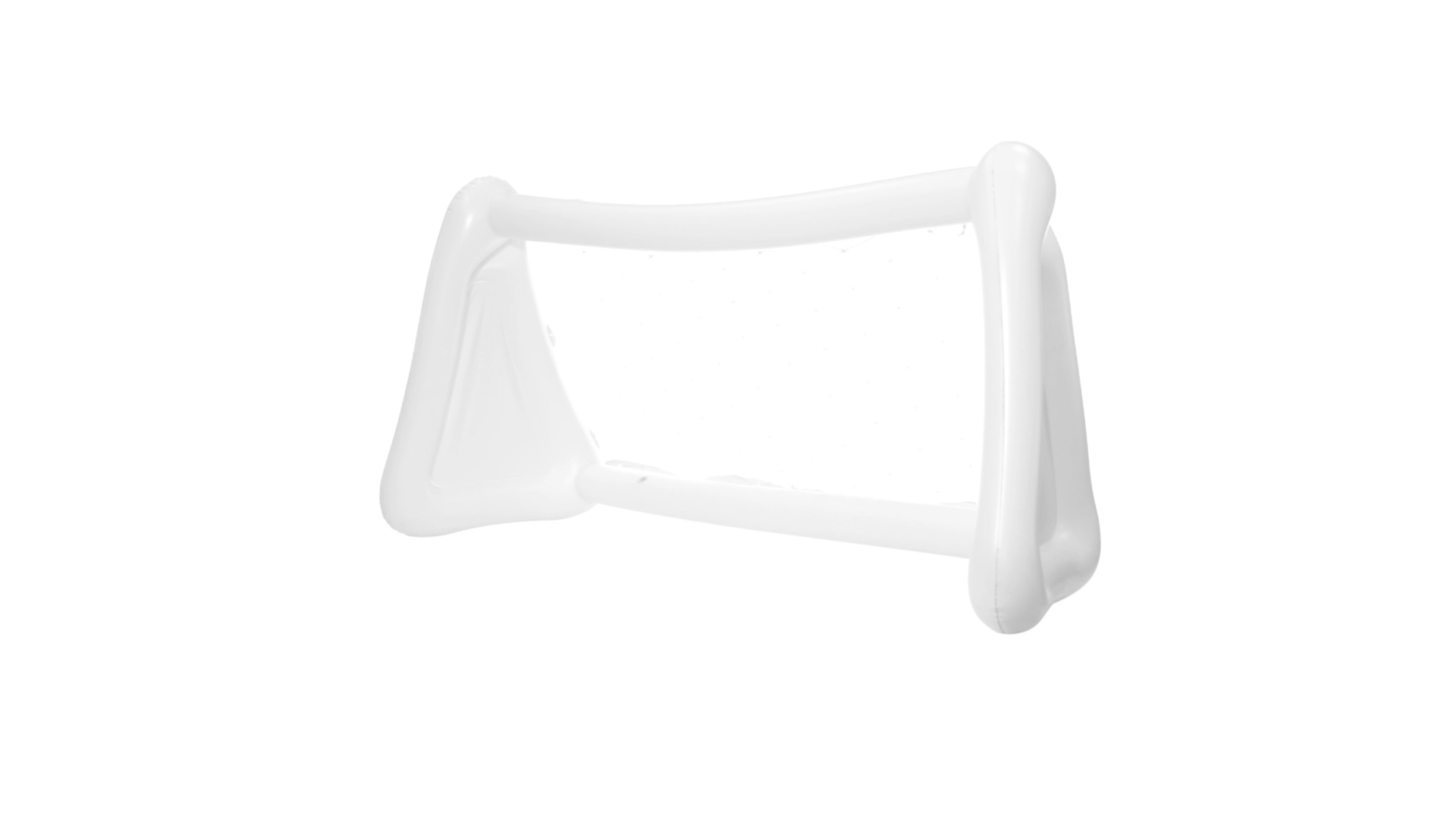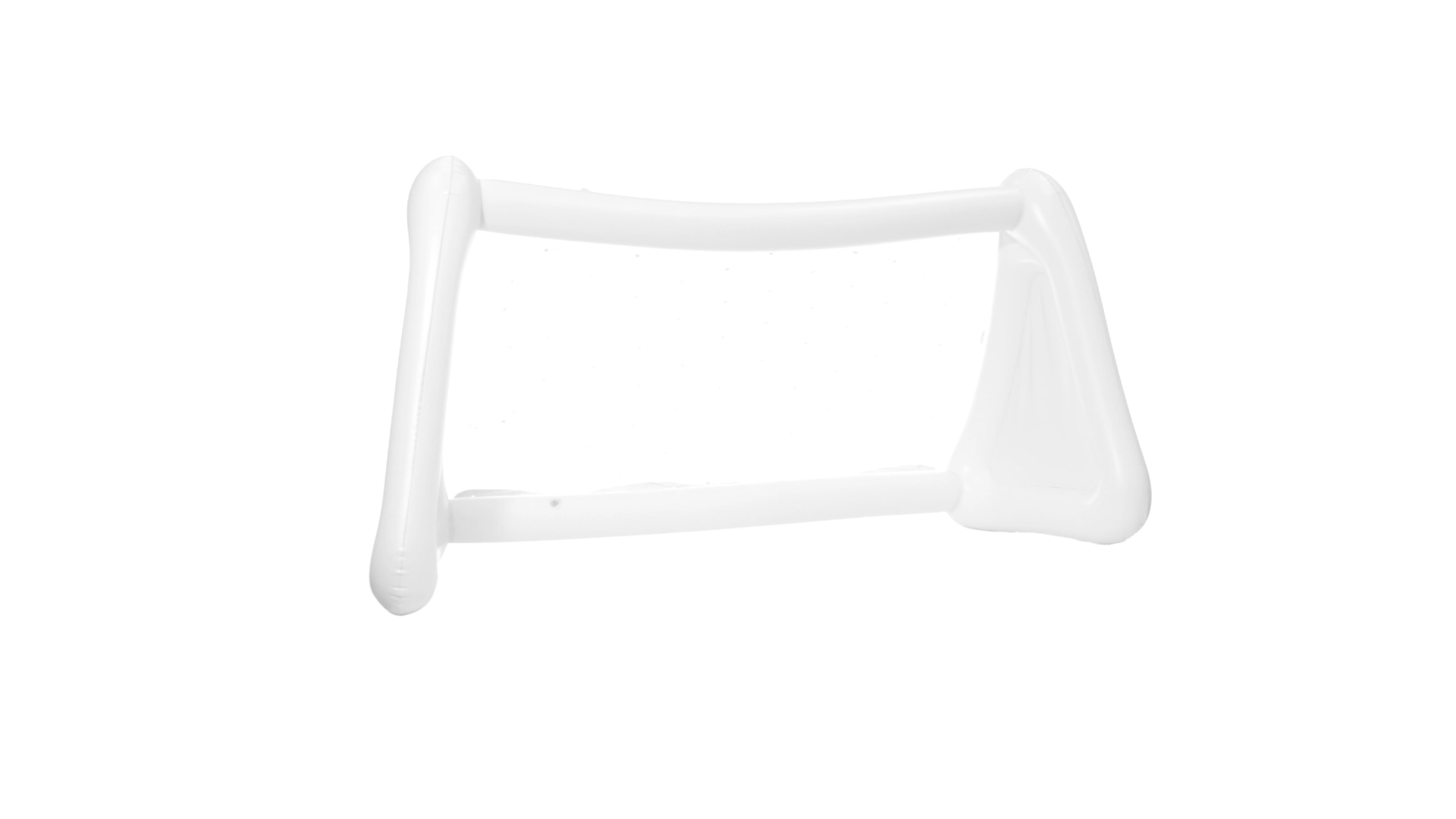 Witziges, aufblasbares Tor aus resistentem PVC in Weiss. Präsentiert mit spezieller Faltung für einfaches Bedrucken.