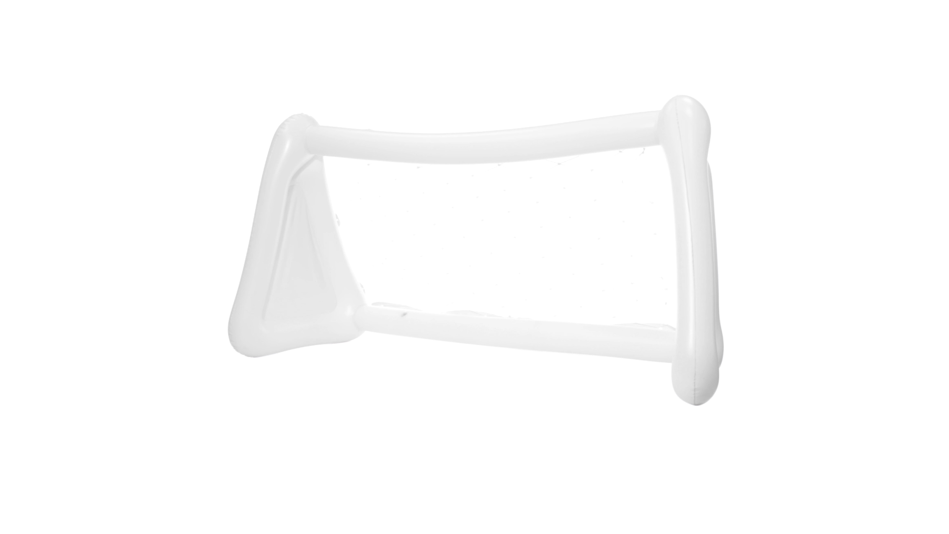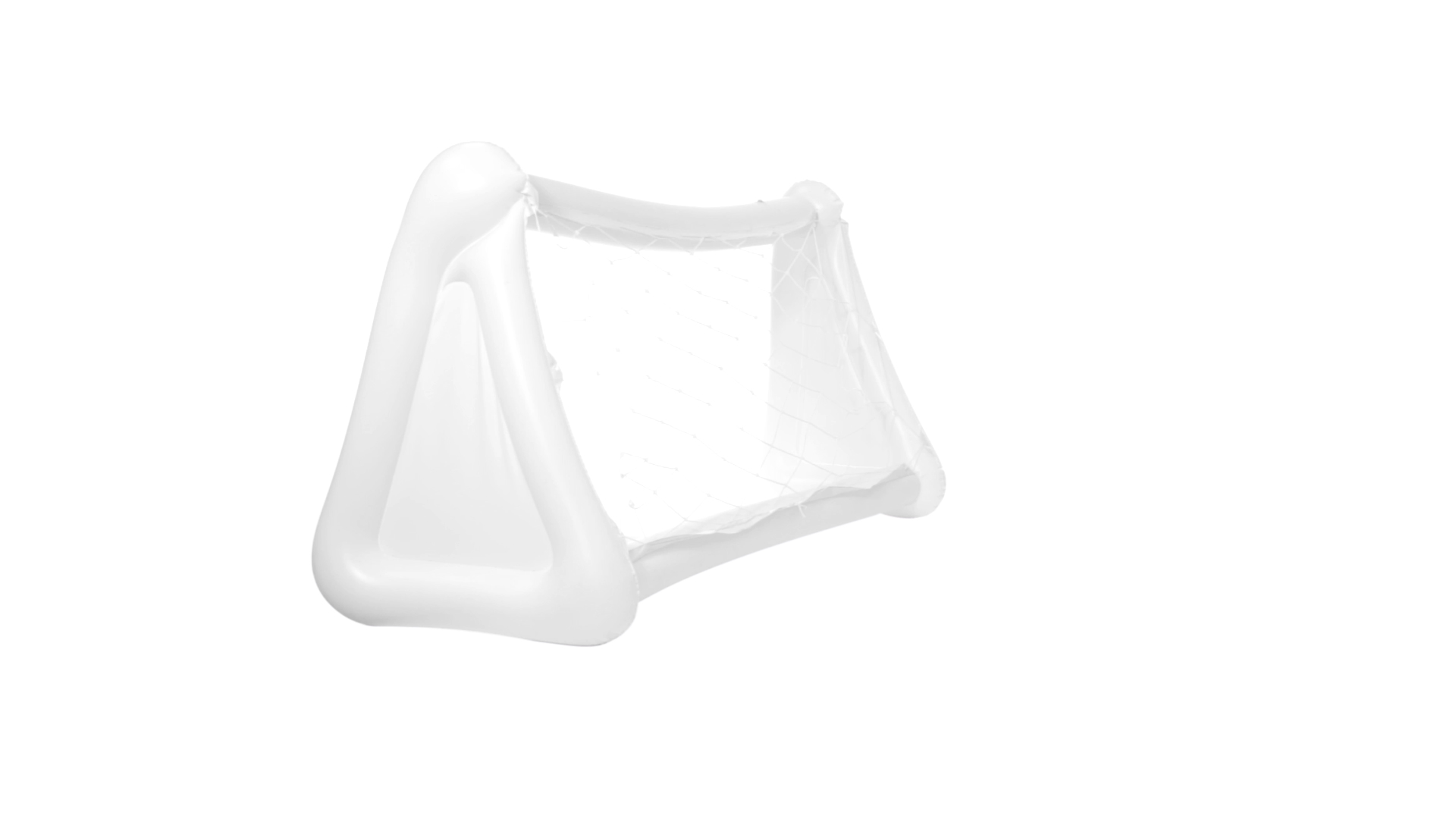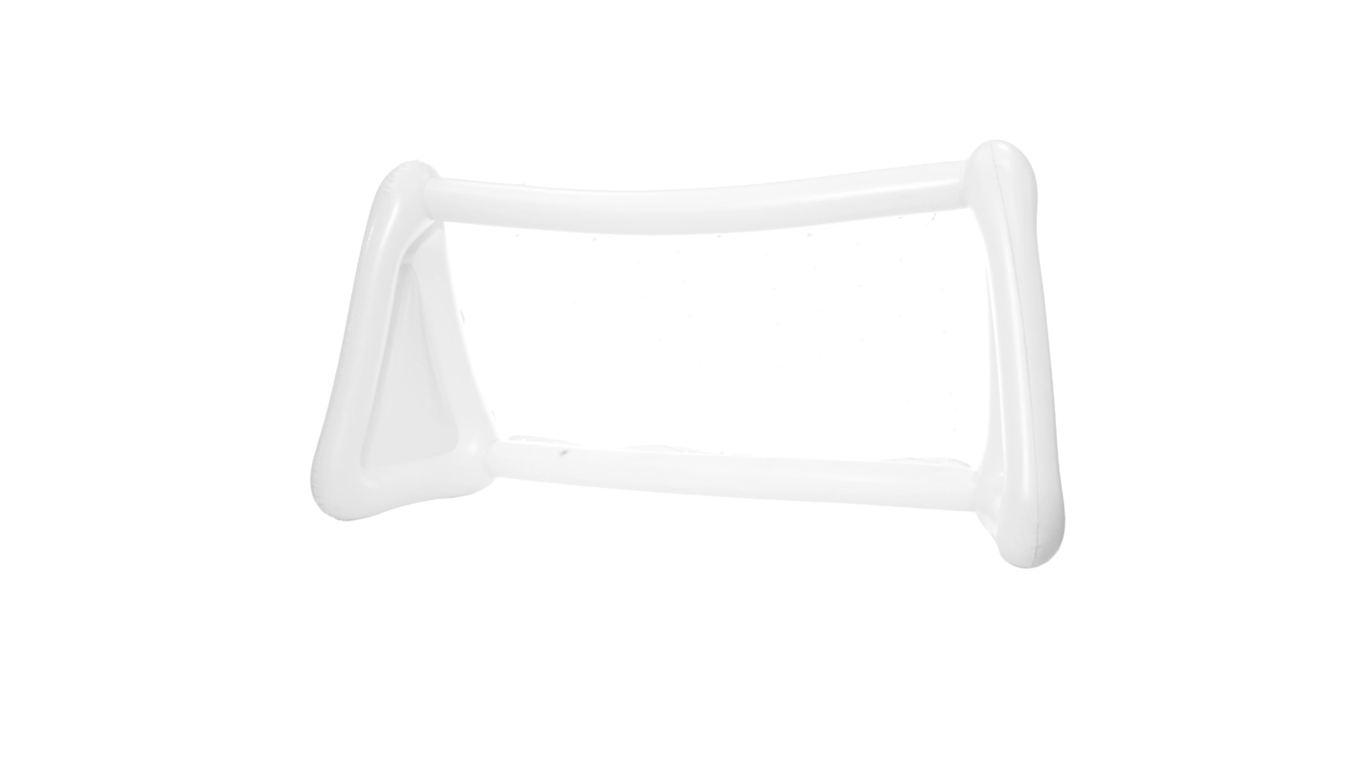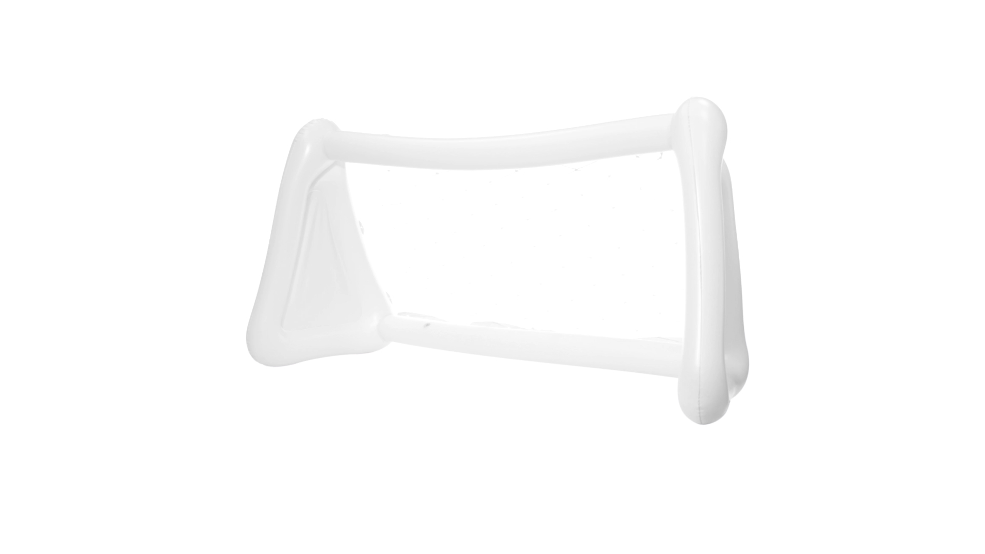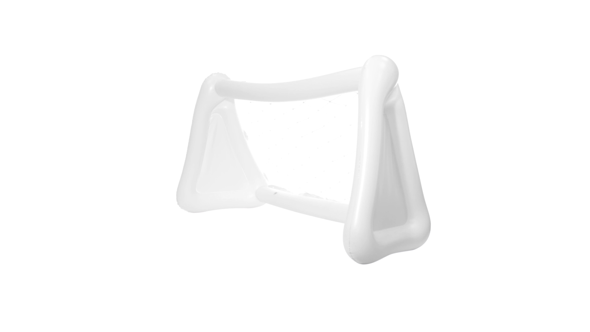 Witziges, aufblasbares Tor aus resistentem PVC in Weiss. Präsentiert mit spezieller Faltung für einfaches Bedrucken.