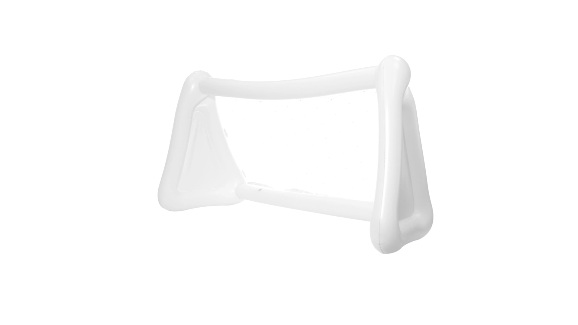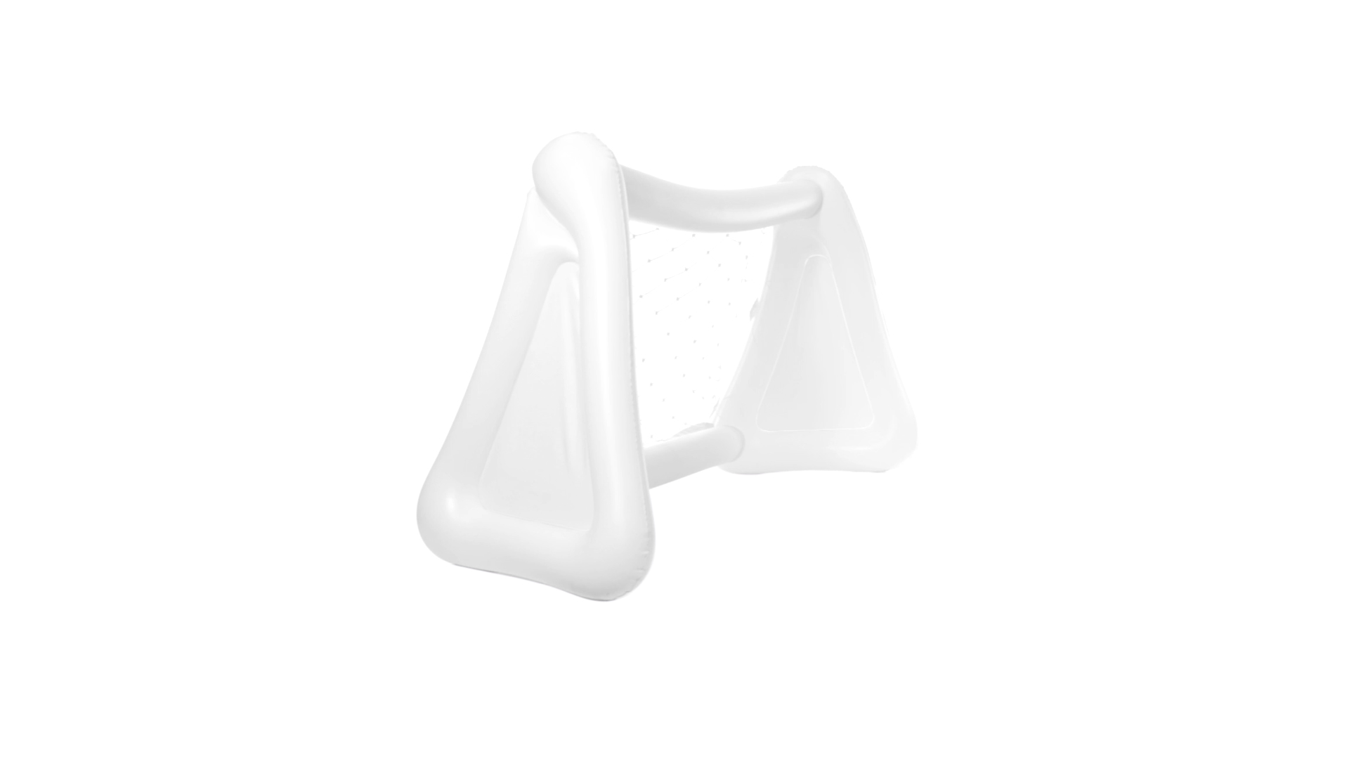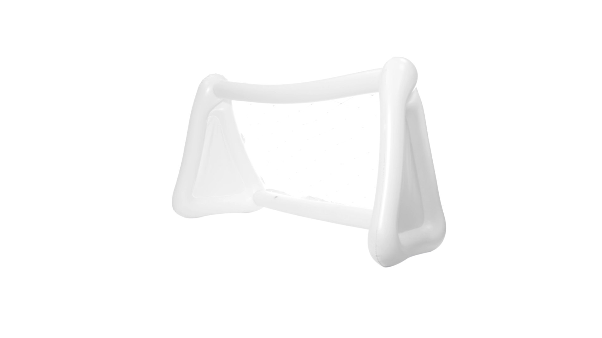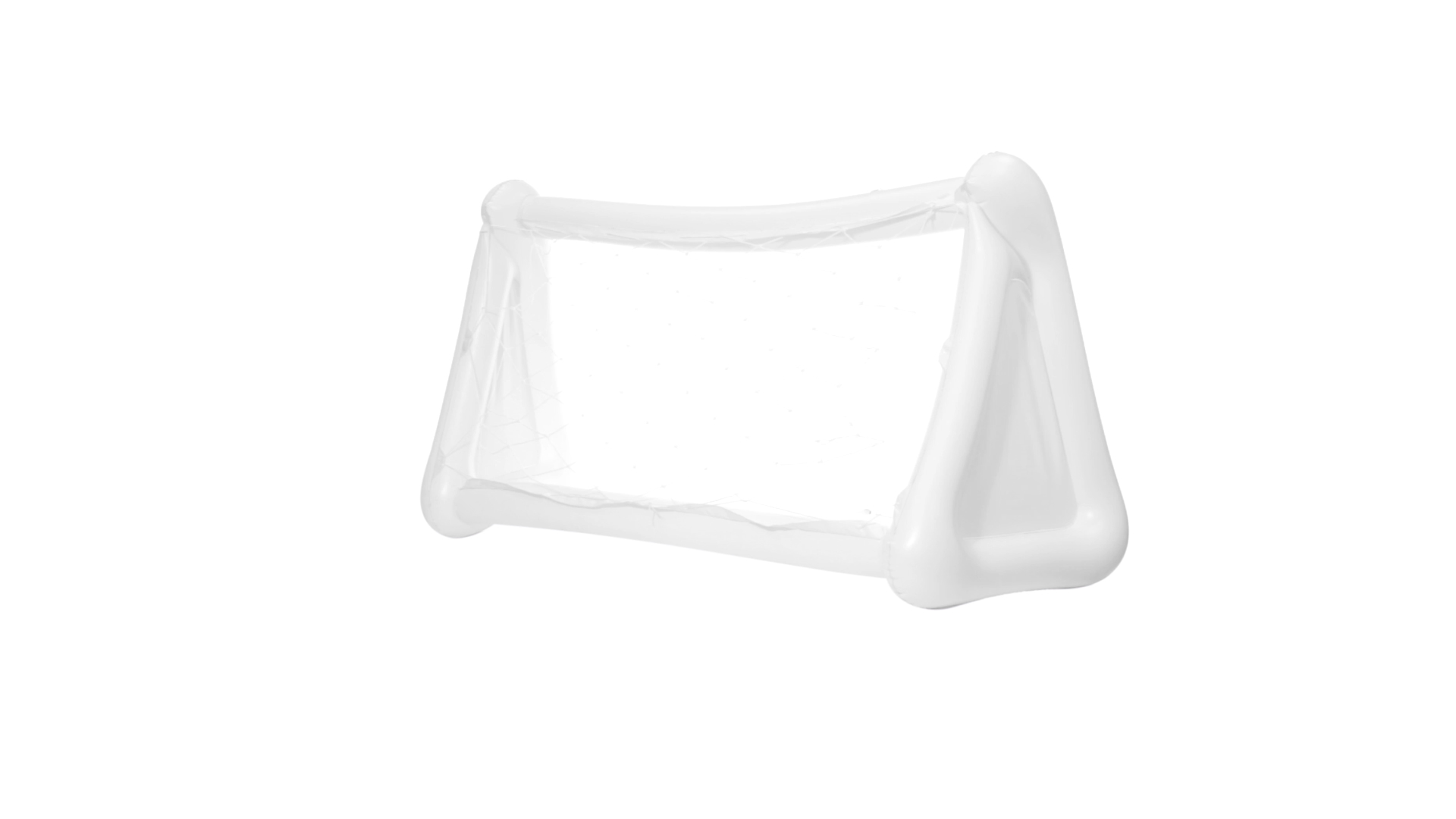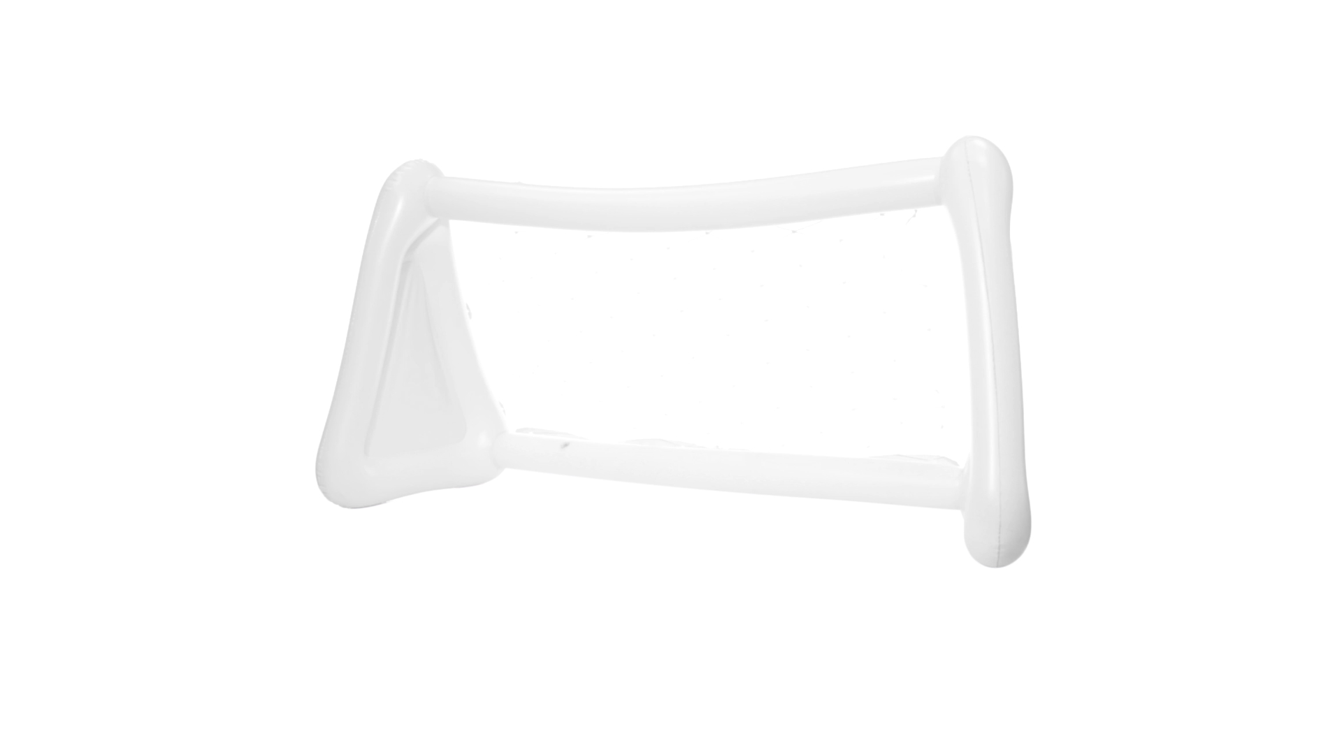 Witziges, aufblasbares Tor aus resistentem PVC in Weiss. Präsentiert mit spezieller Faltung für einfaches Bedrucken.