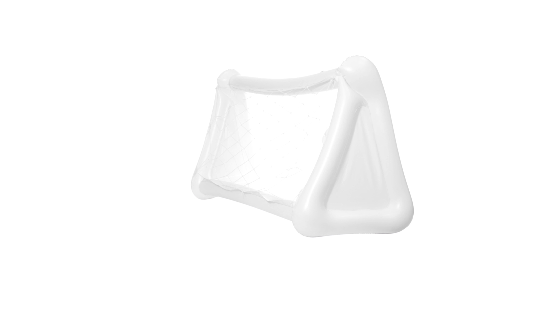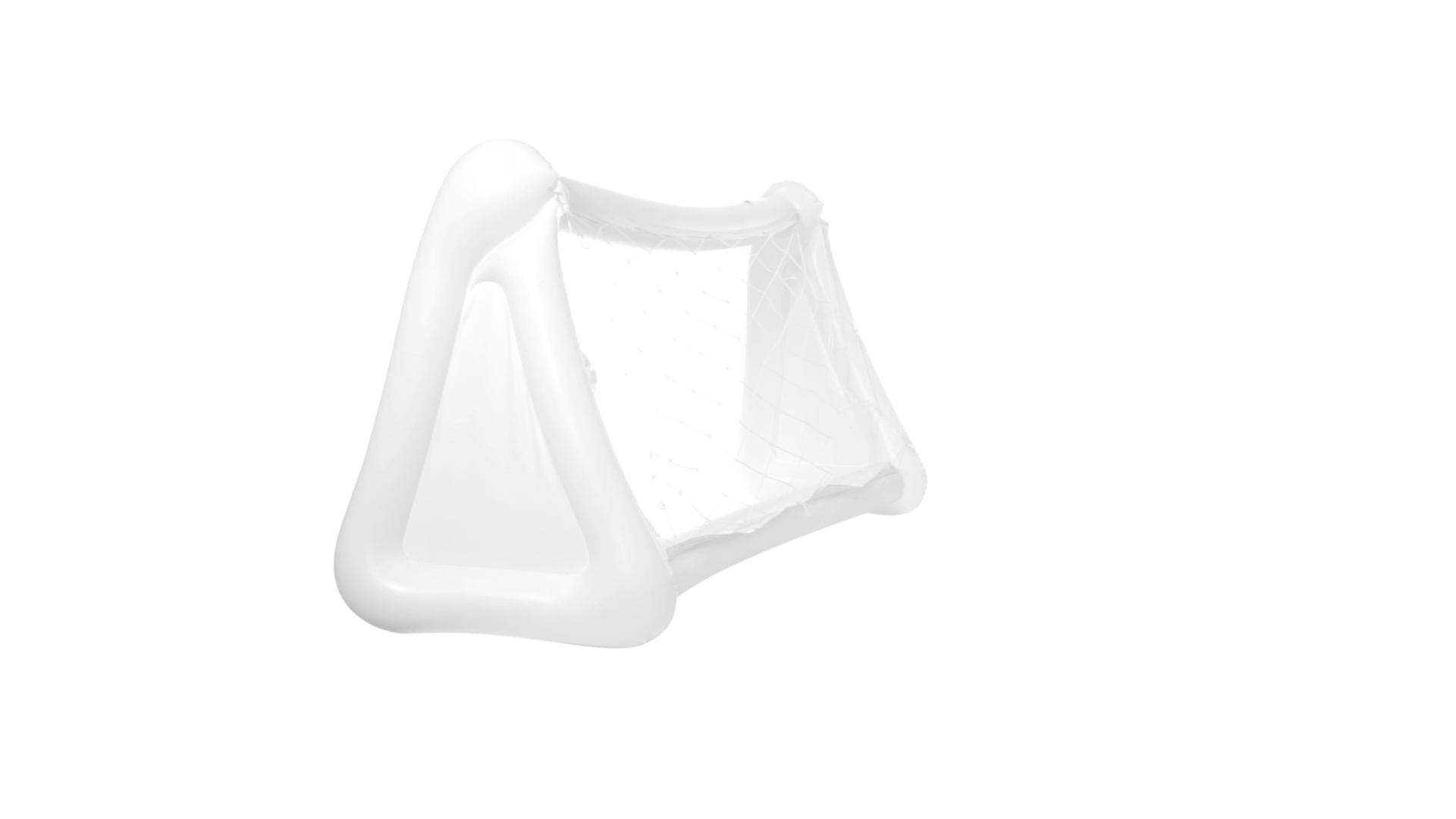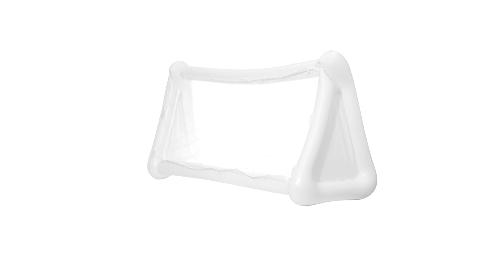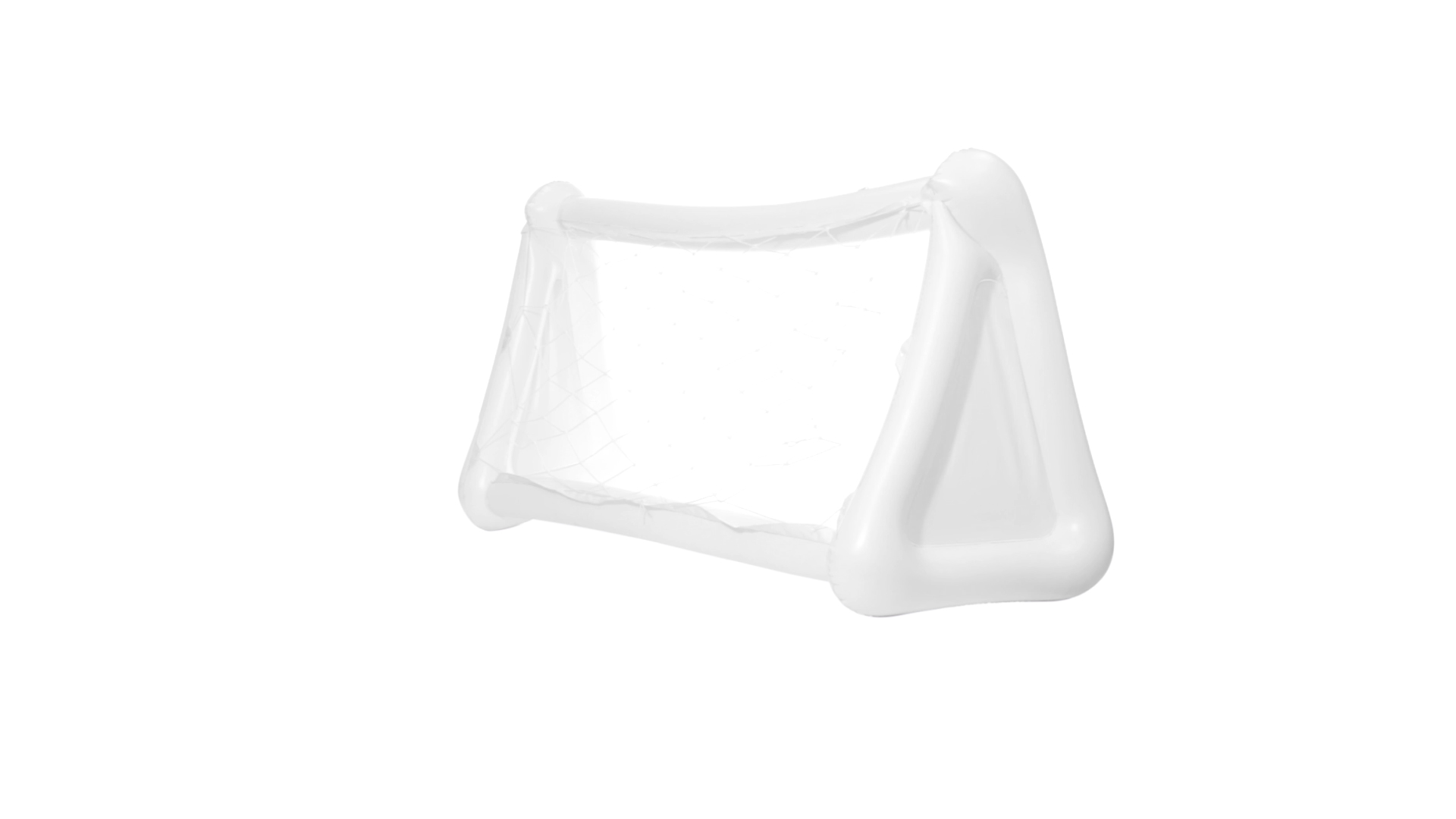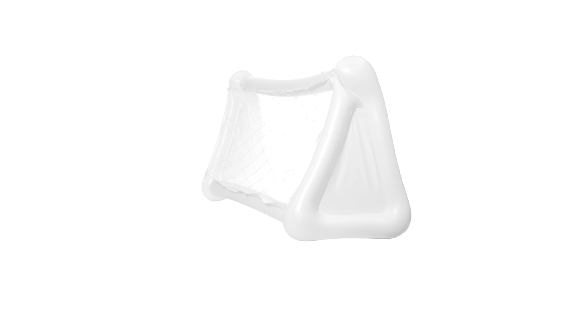 Witziges, aufblasbares Tor aus resistentem PVC in Weiss. Präsentiert mit spezieller Faltung für einfaches Bedrucken.