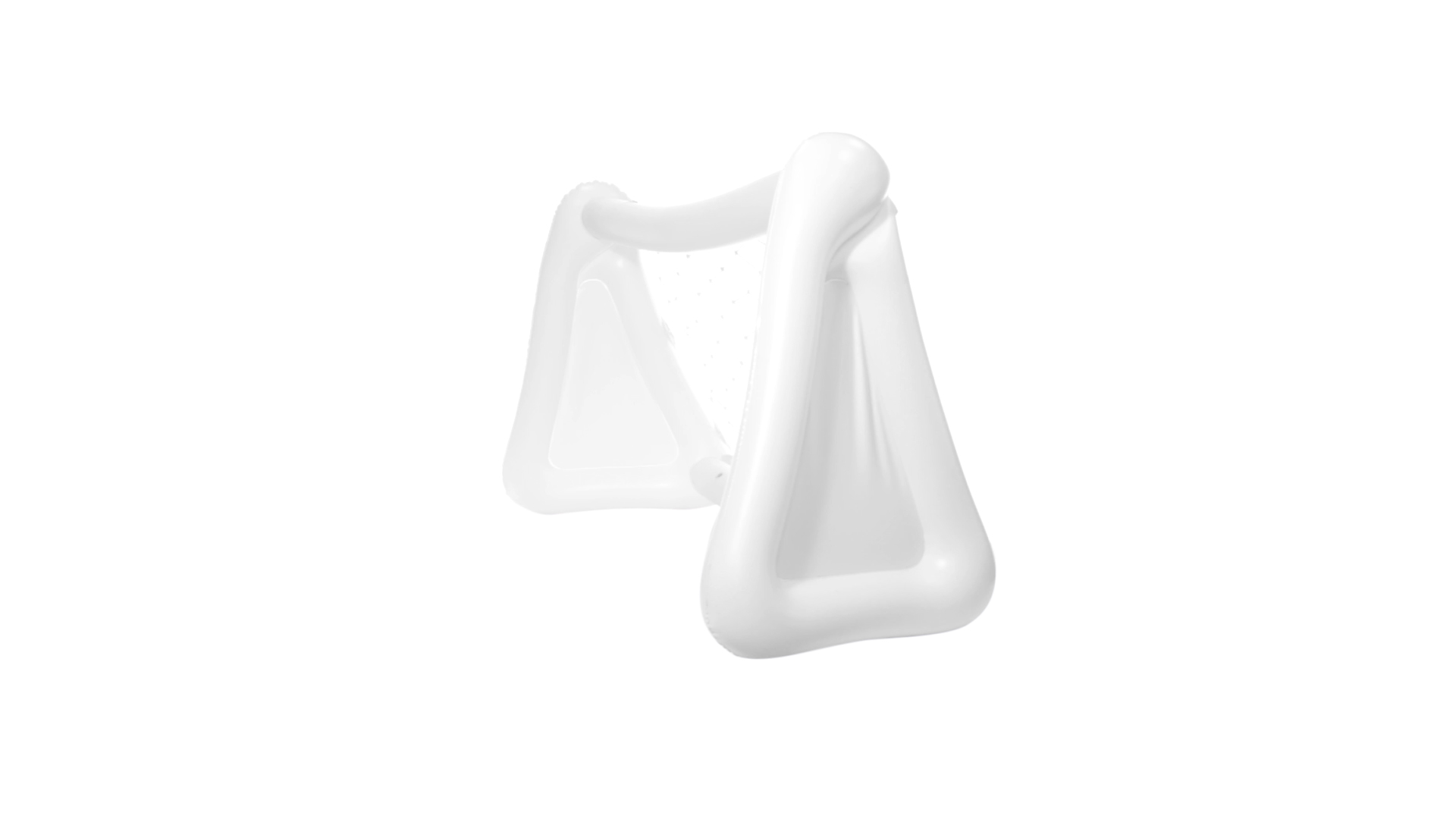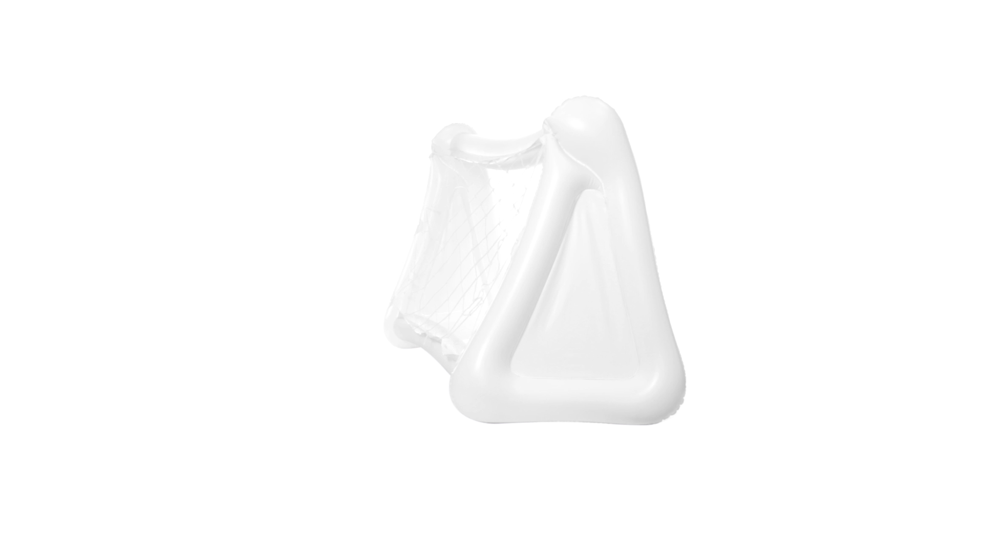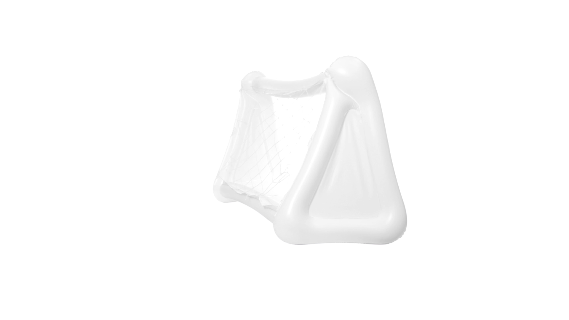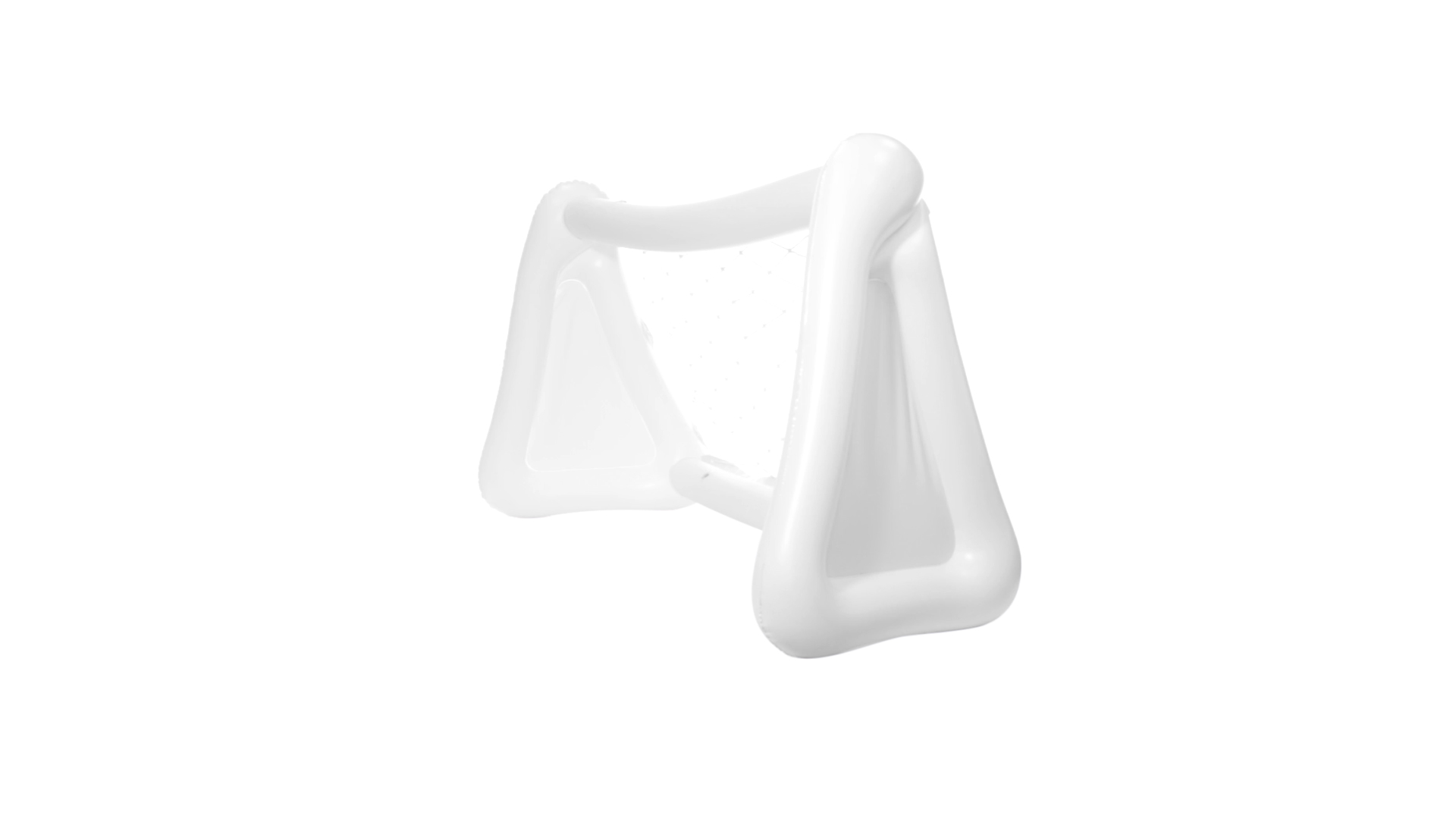 Witziges, aufblasbares Tor aus resistentem PVC in Weiss. Präsentiert mit spezieller Faltung für einfaches Bedrucken.