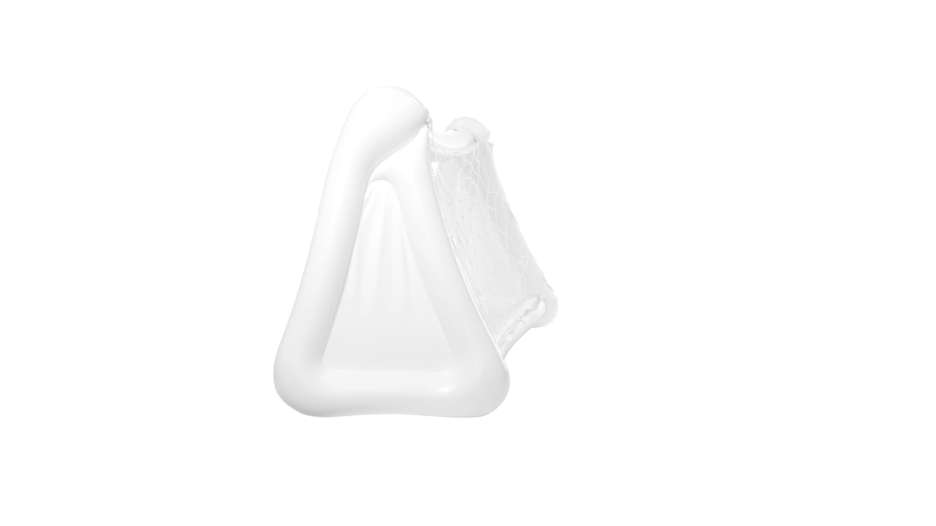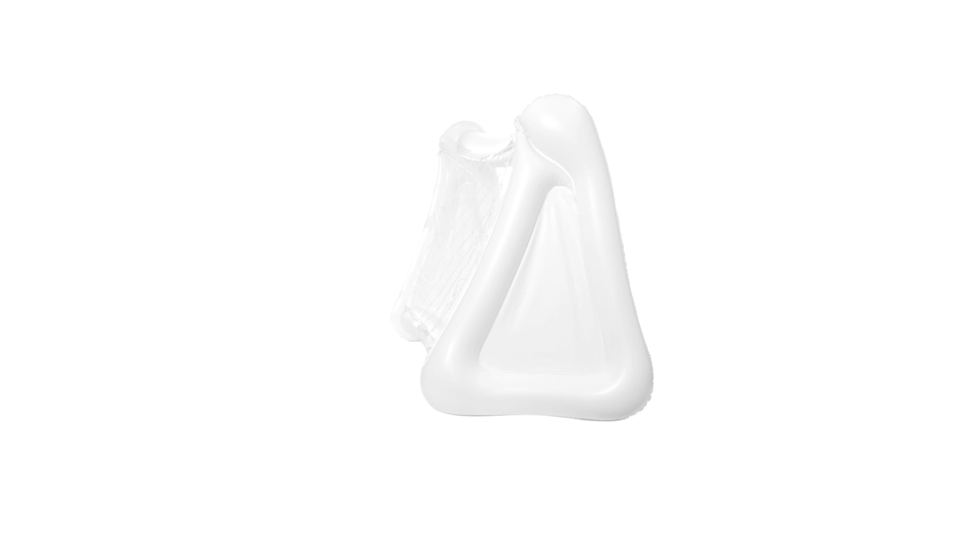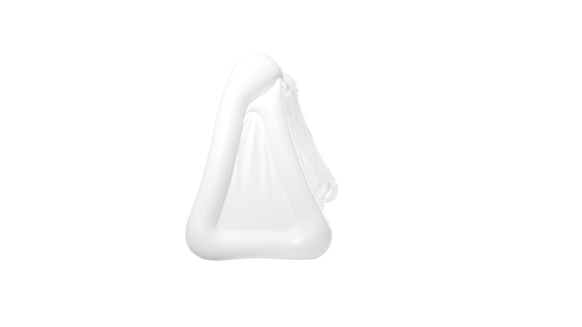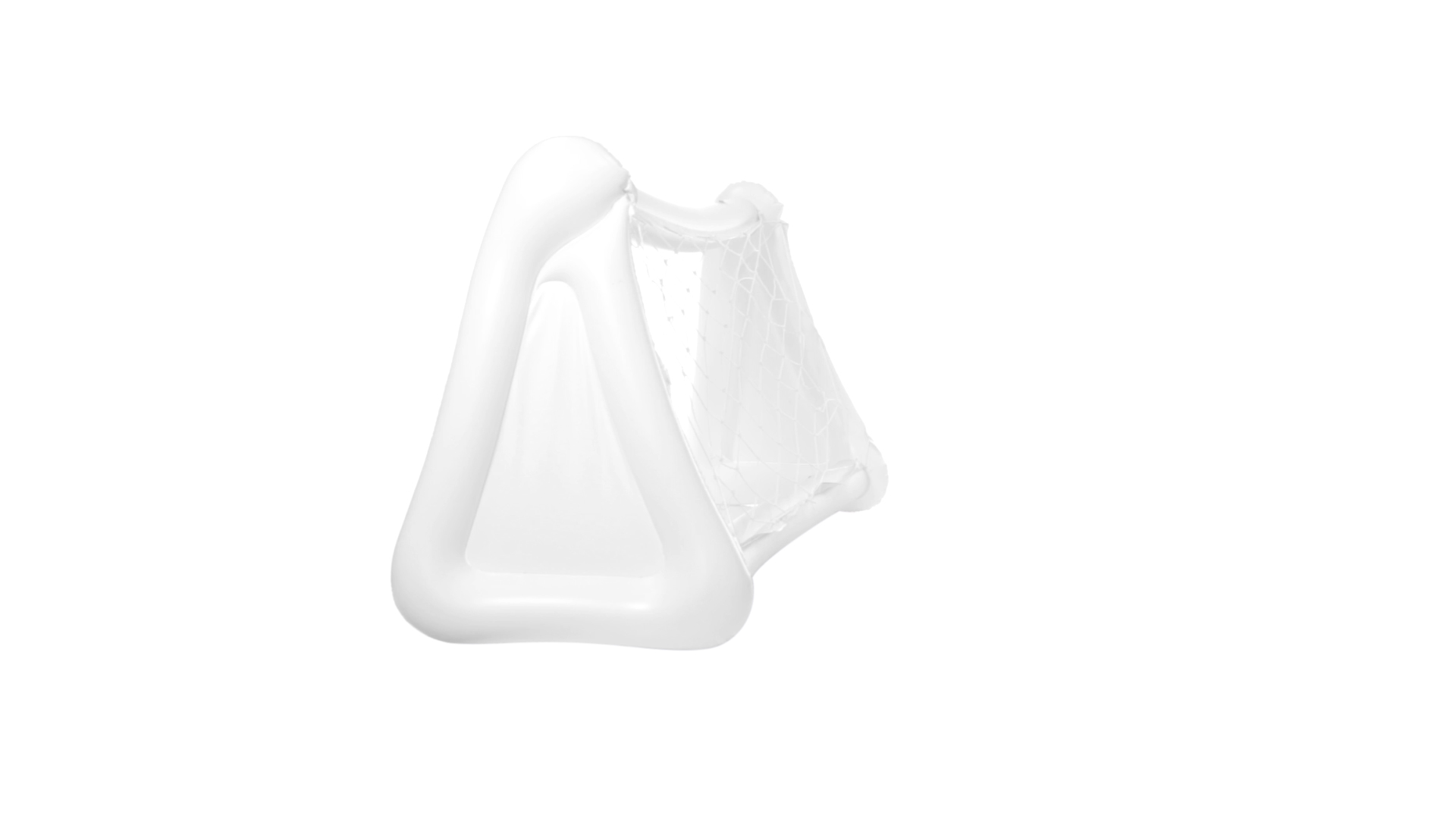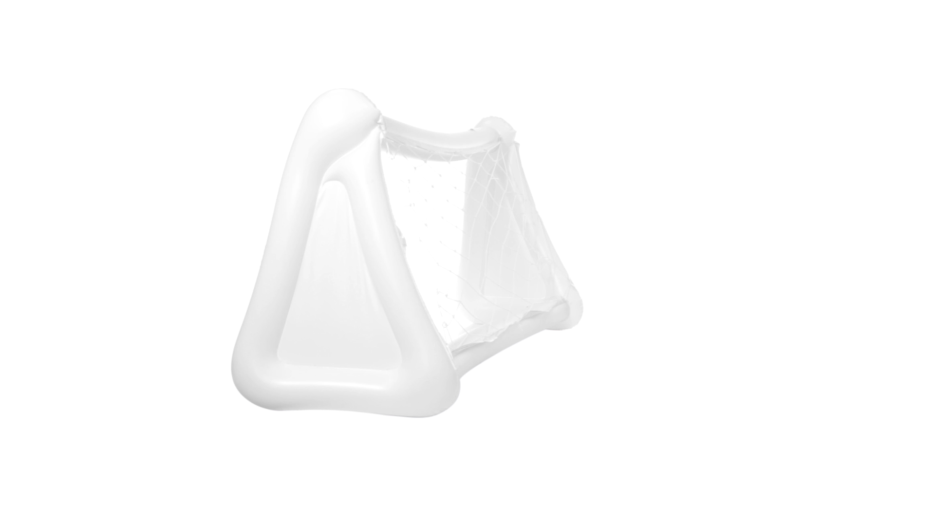 Witziges, aufblasbares Tor aus resistentem PVC in Weiss. Präsentiert mit spezieller Faltung für einfaches Bedrucken.