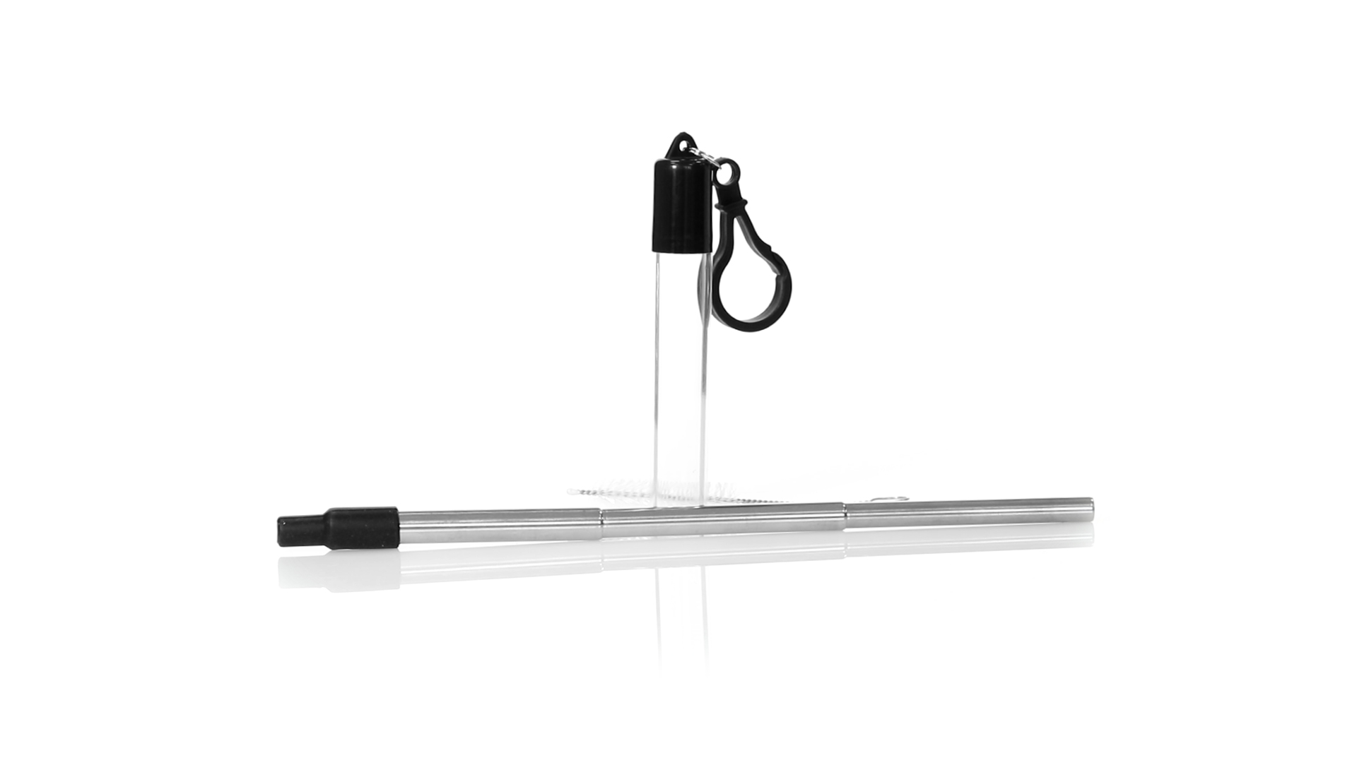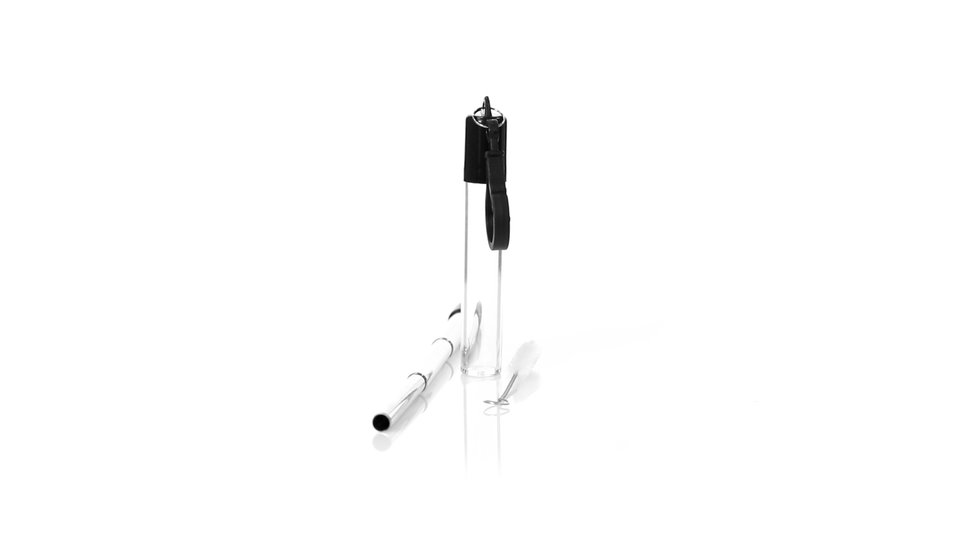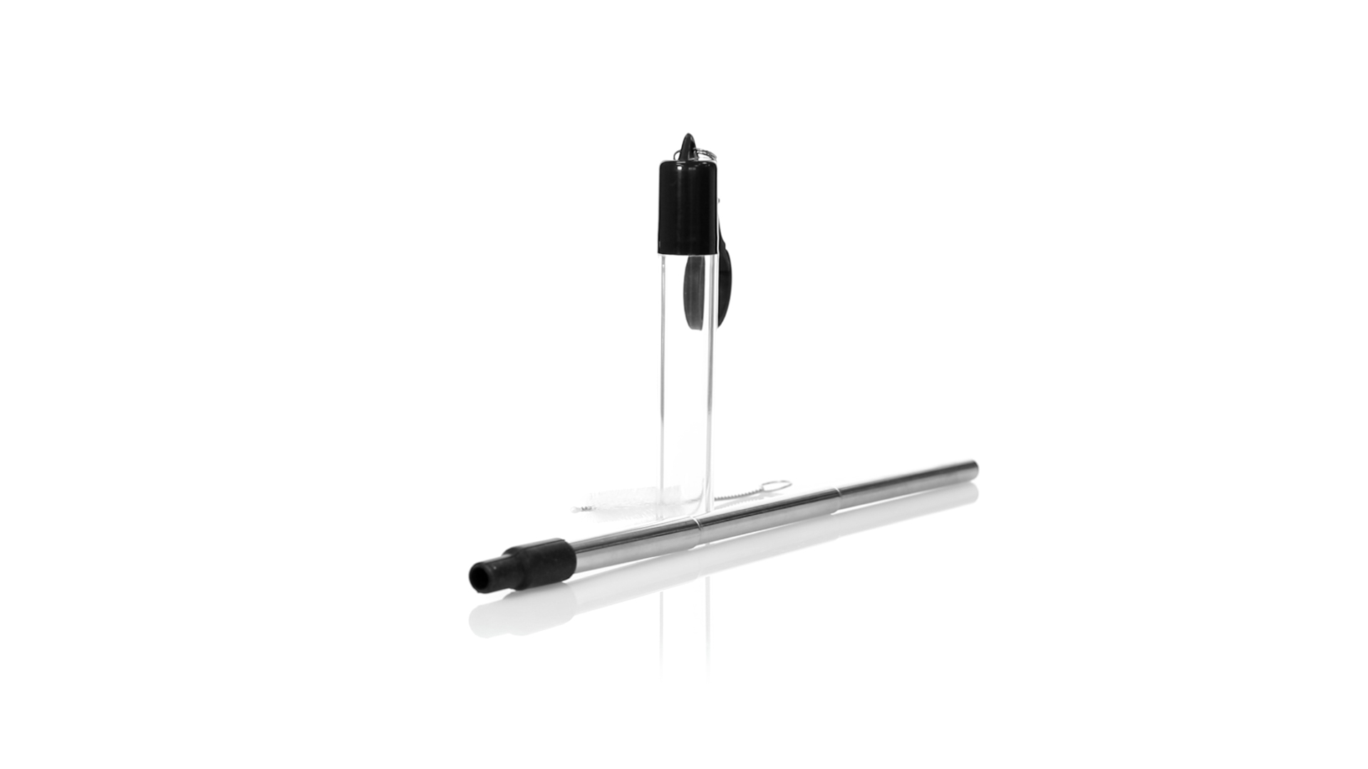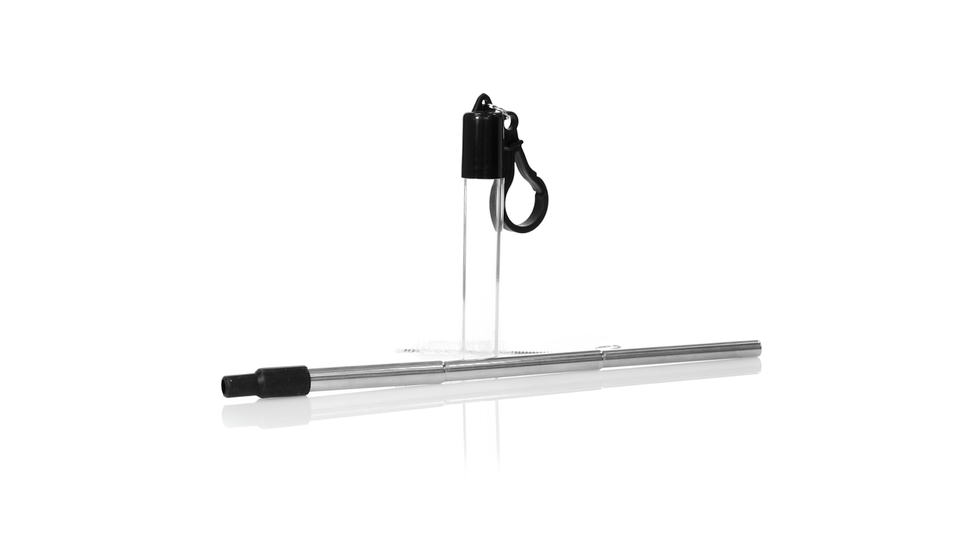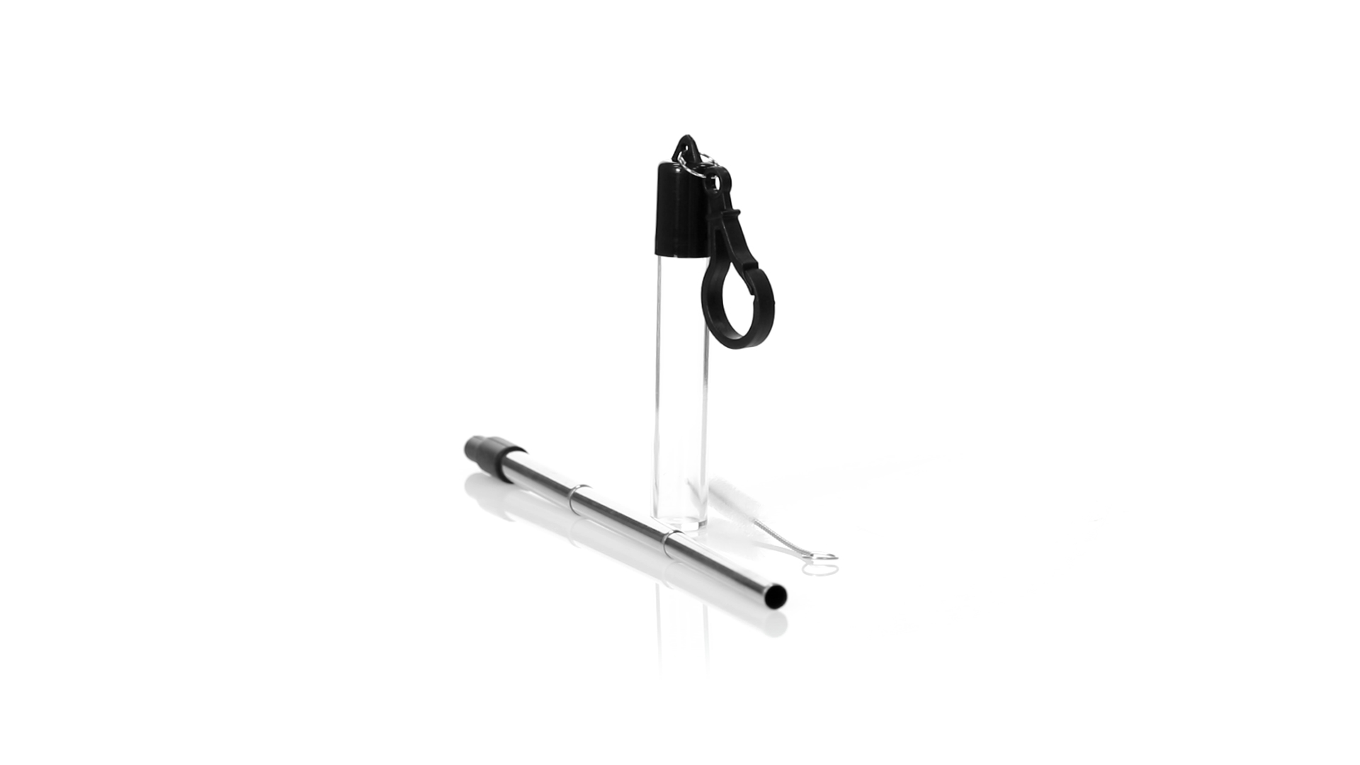 Wiederverwendbarer und ausziehbarer Strohhalm aus Edelstahl mit Silikonspitze. Inklusive Reinigungszubehör und präsentiert in einem transparenten Koffer mit Tragezubehör.