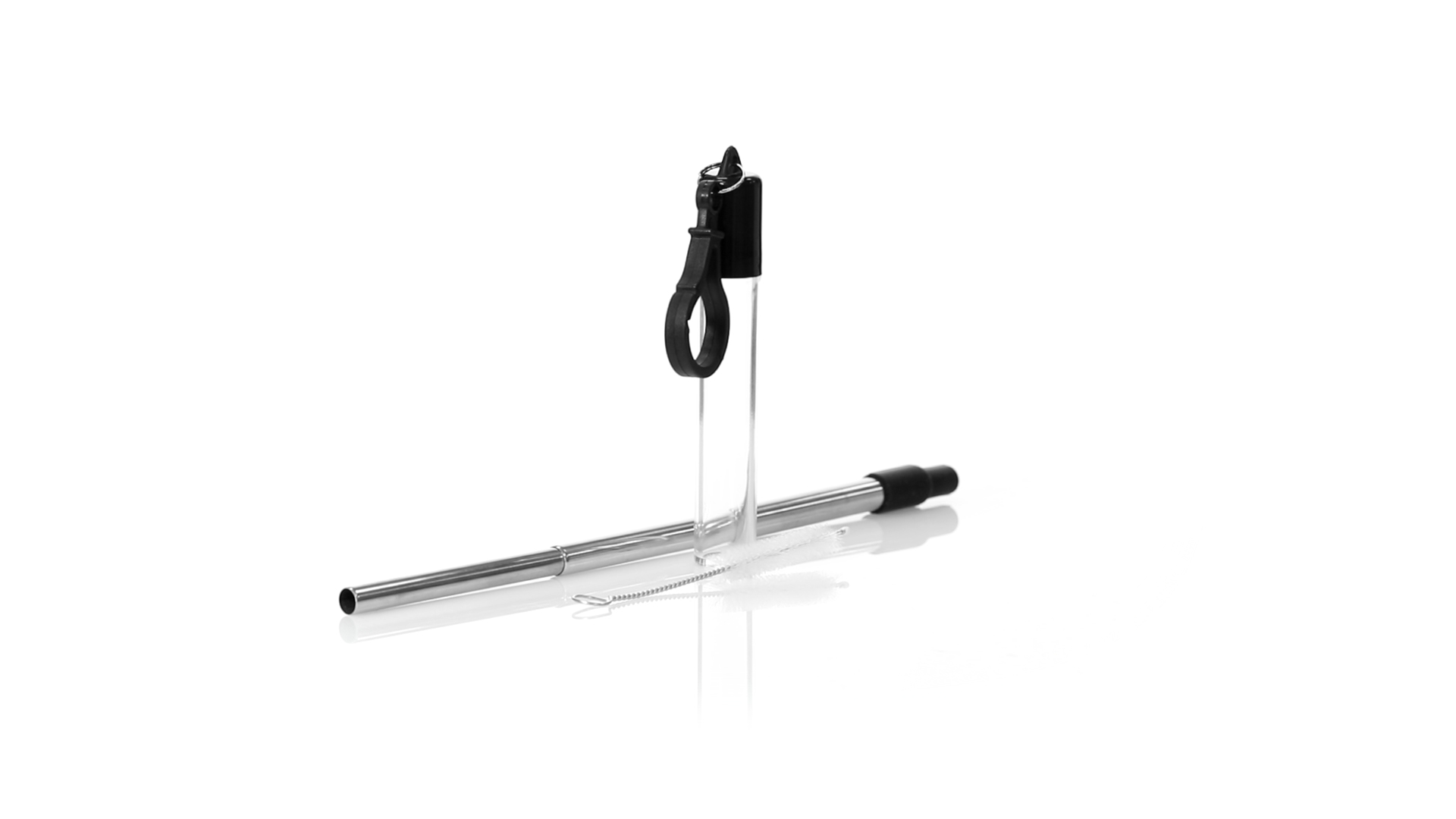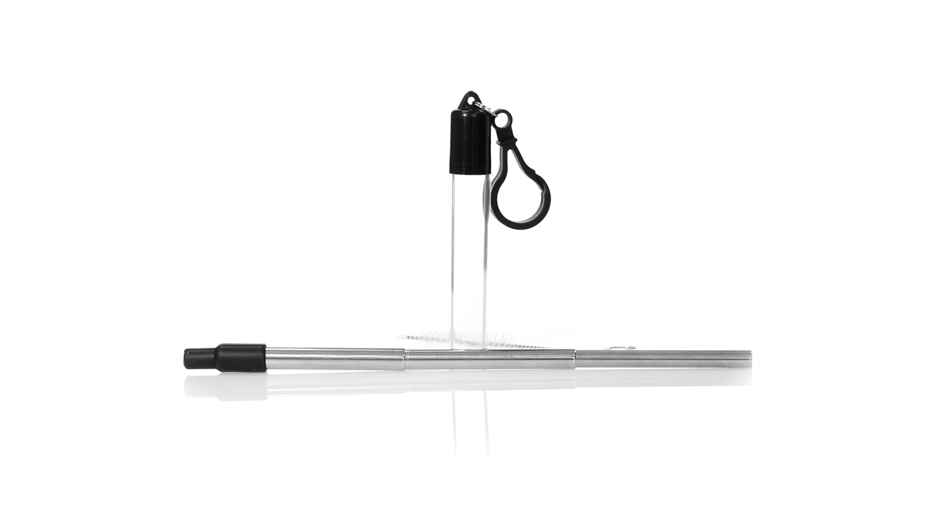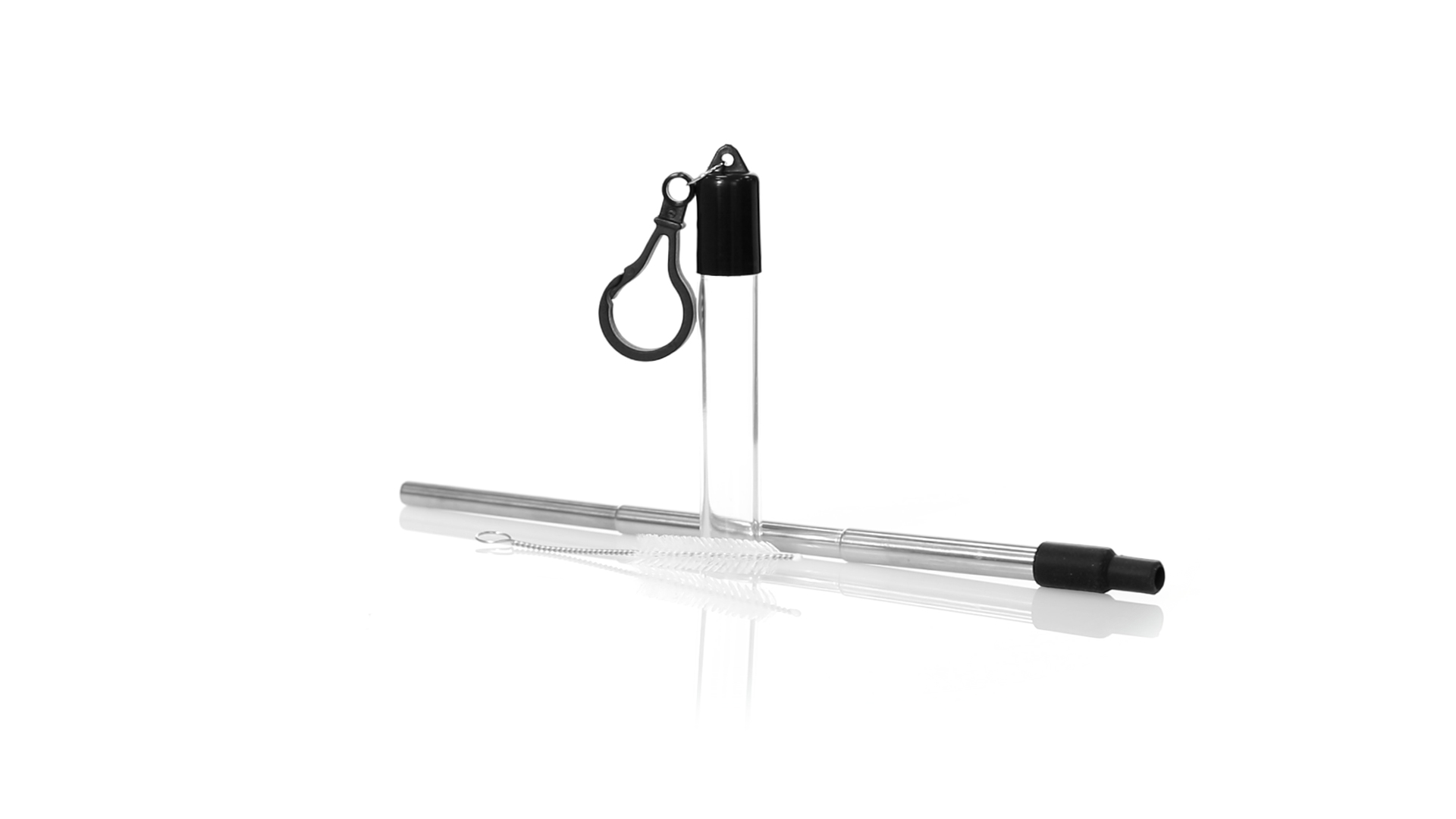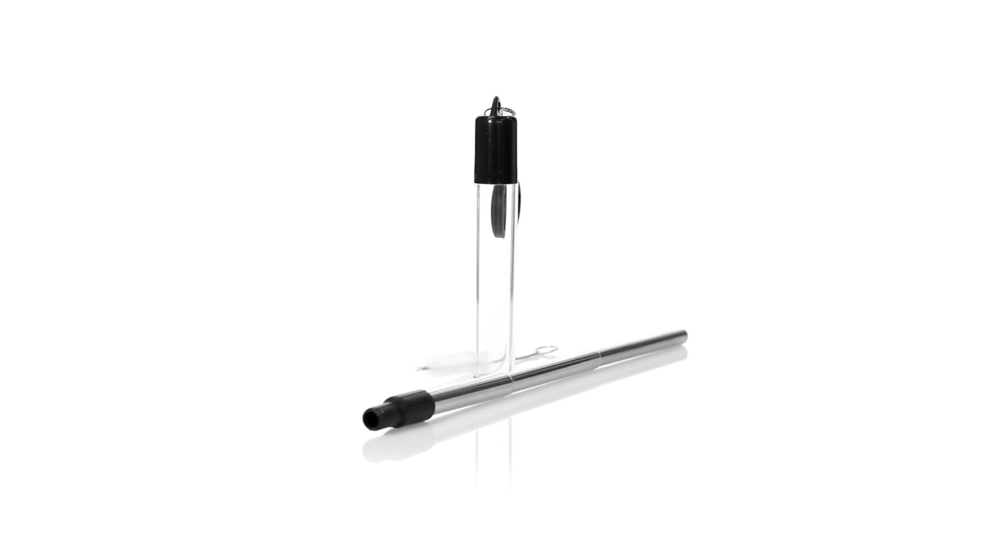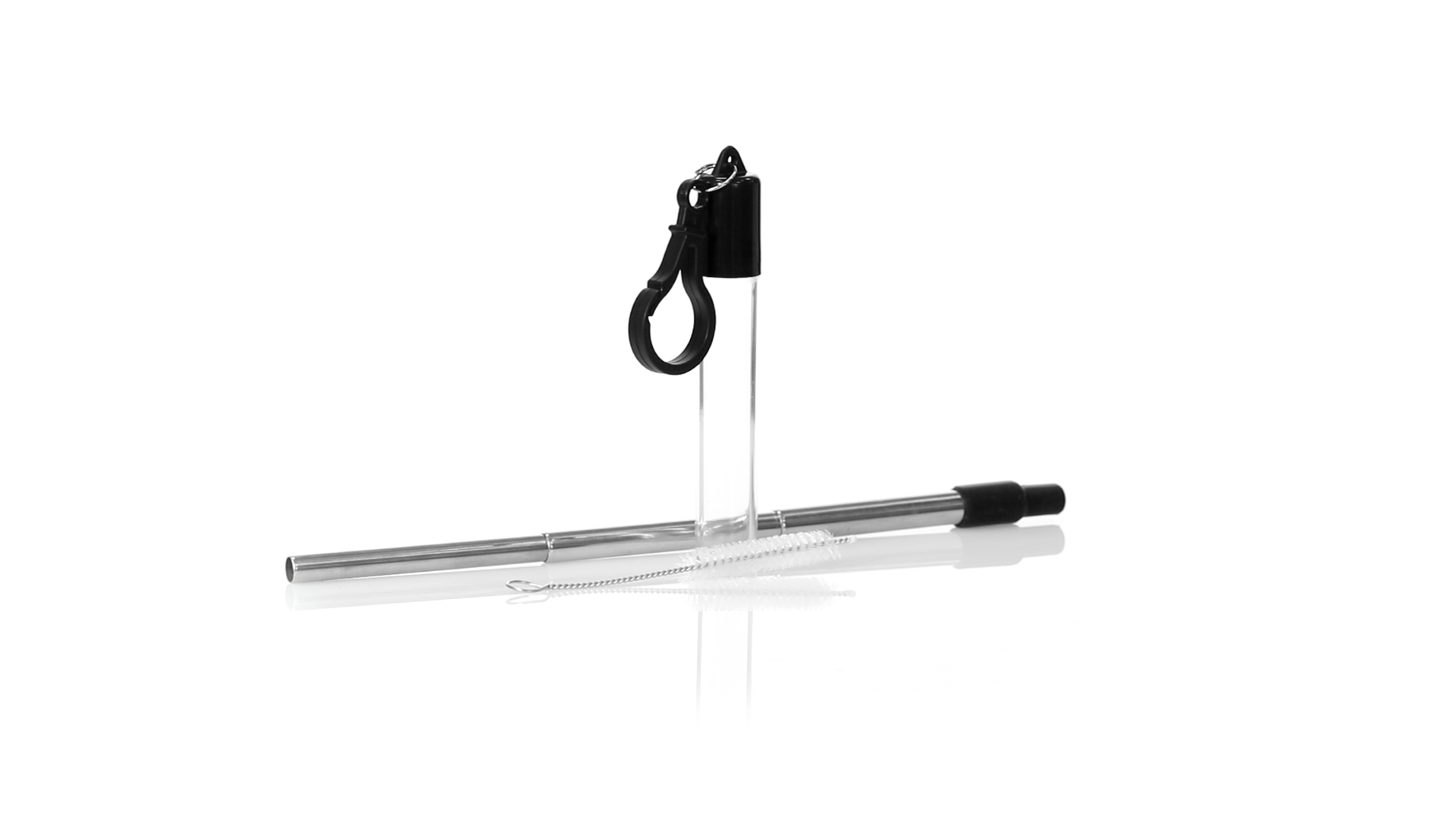 Wiederverwendbarer und ausziehbarer Strohhalm aus Edelstahl mit Silikonspitze. Inklusive Reinigungszubehör und präsentiert in einem transparenten Koffer mit Tragezubehör.