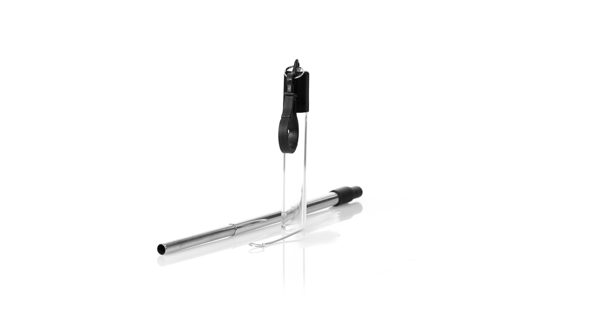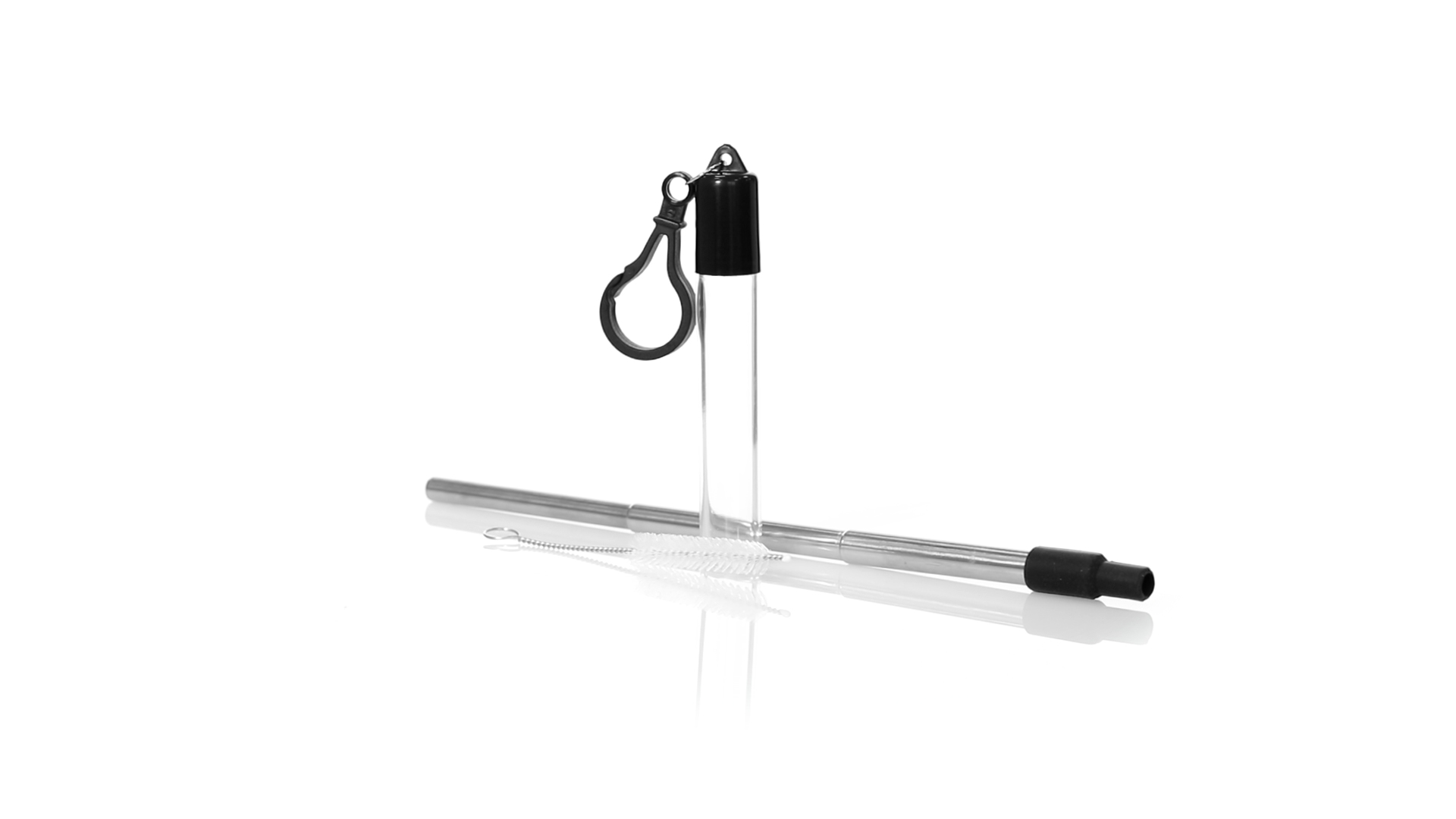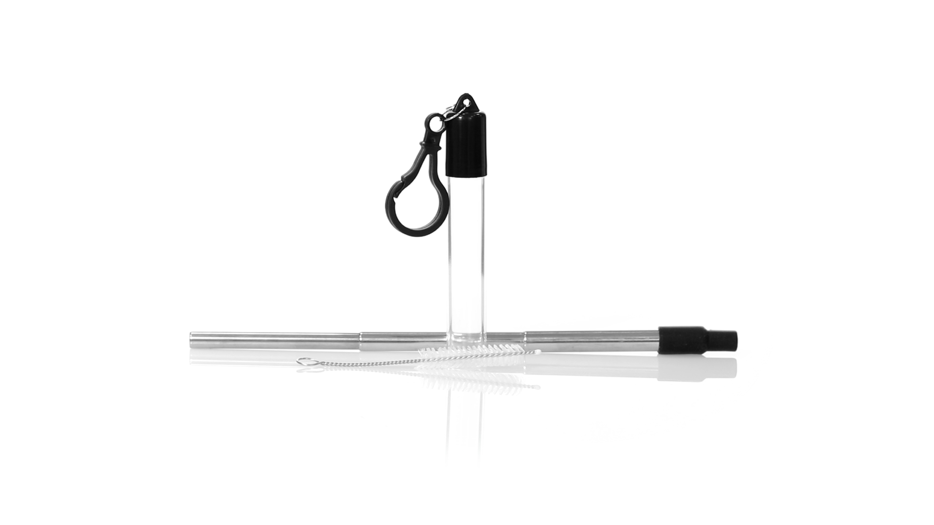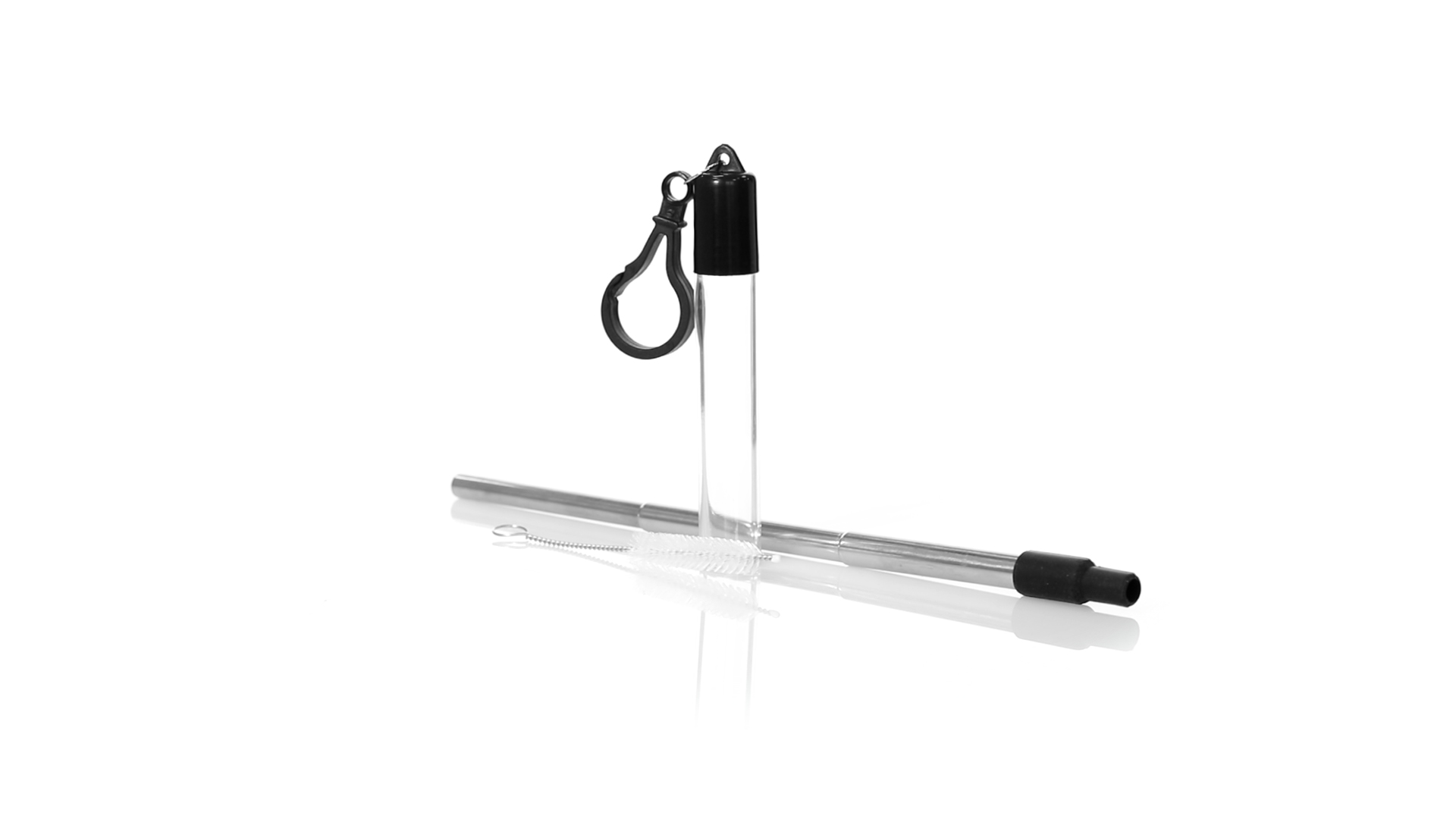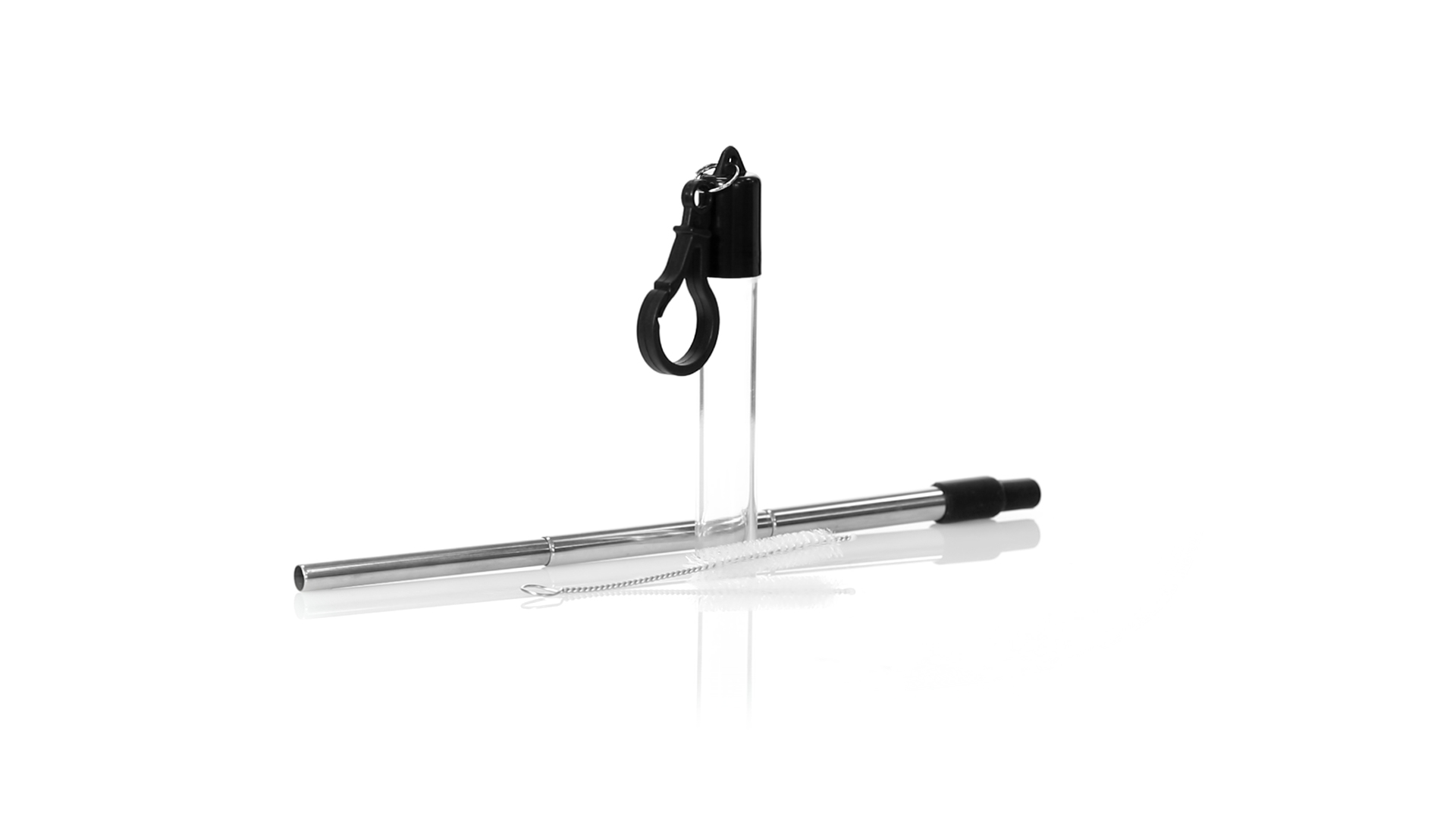 Wiederverwendbarer und ausziehbarer Strohhalm aus Edelstahl mit Silikonspitze. Inklusive Reinigungszubehör und präsentiert in einem transparenten Koffer mit Tragezubehör.