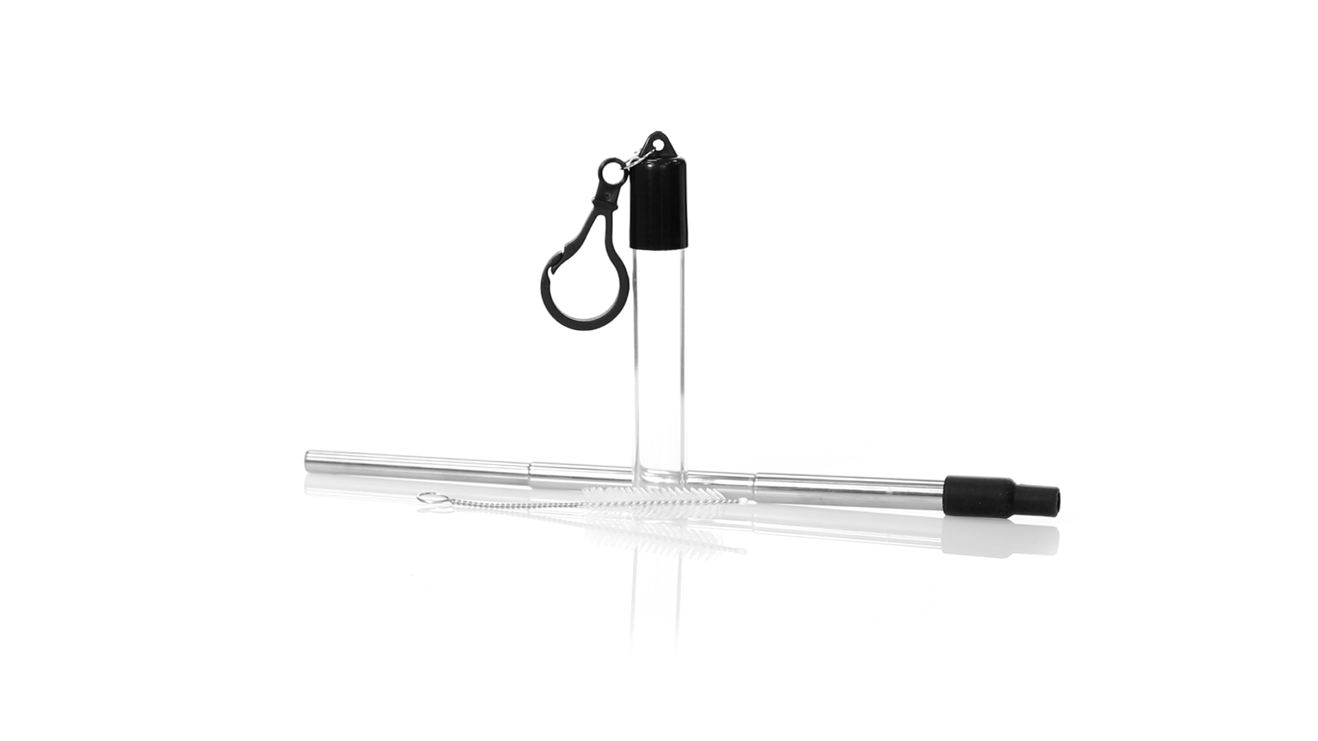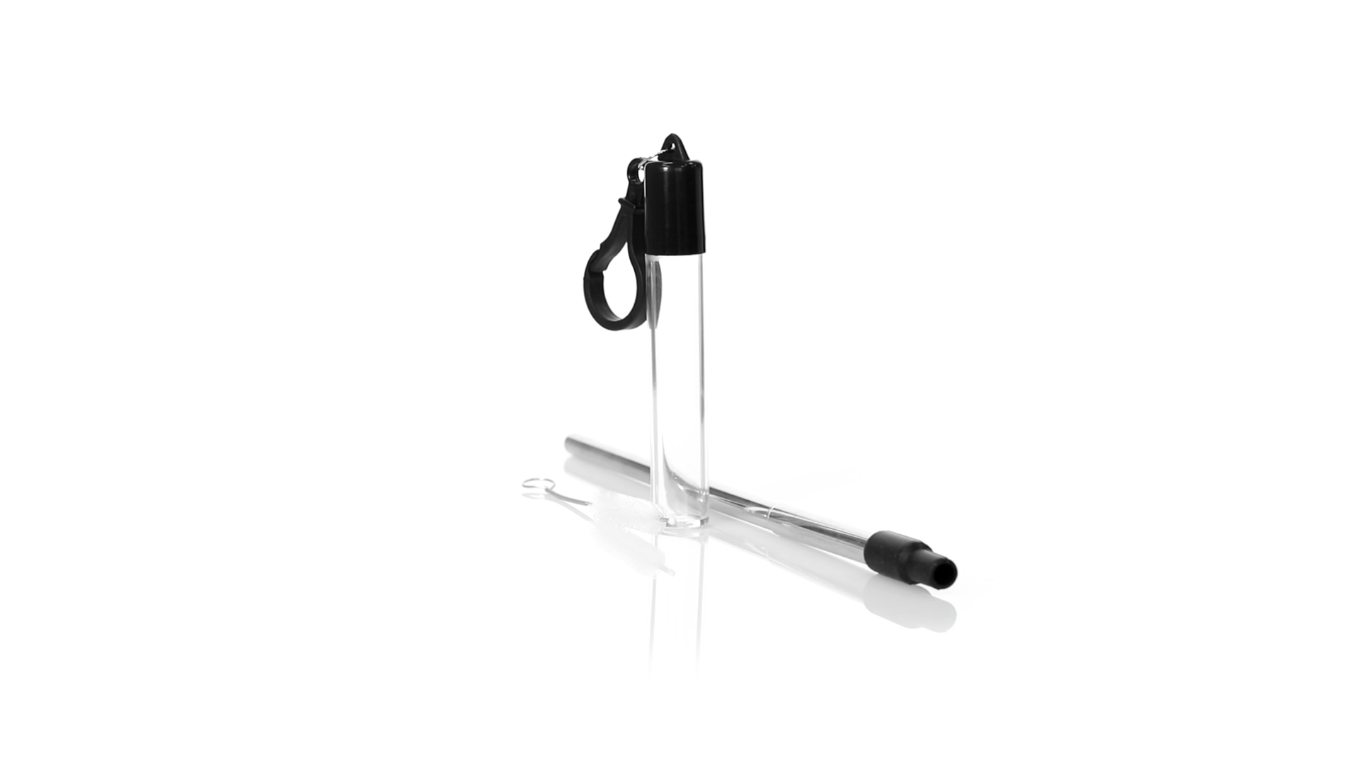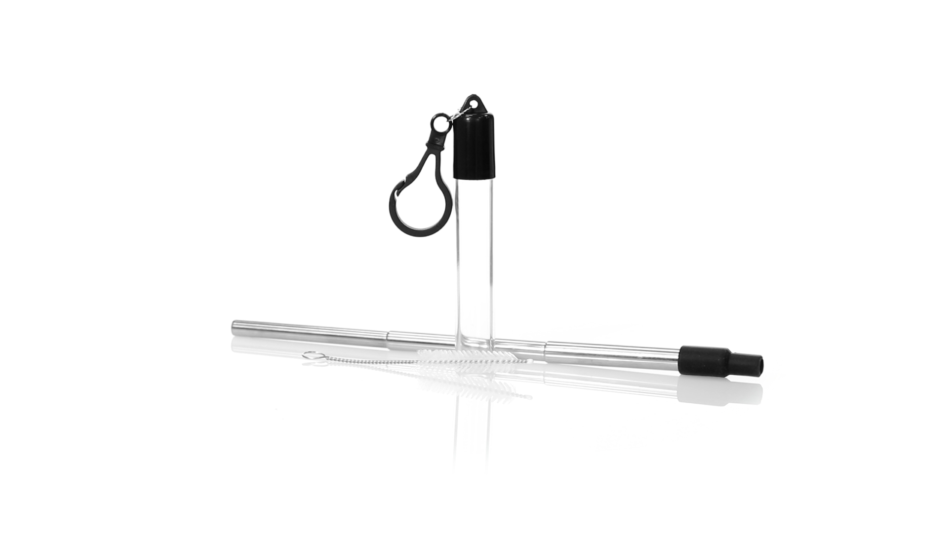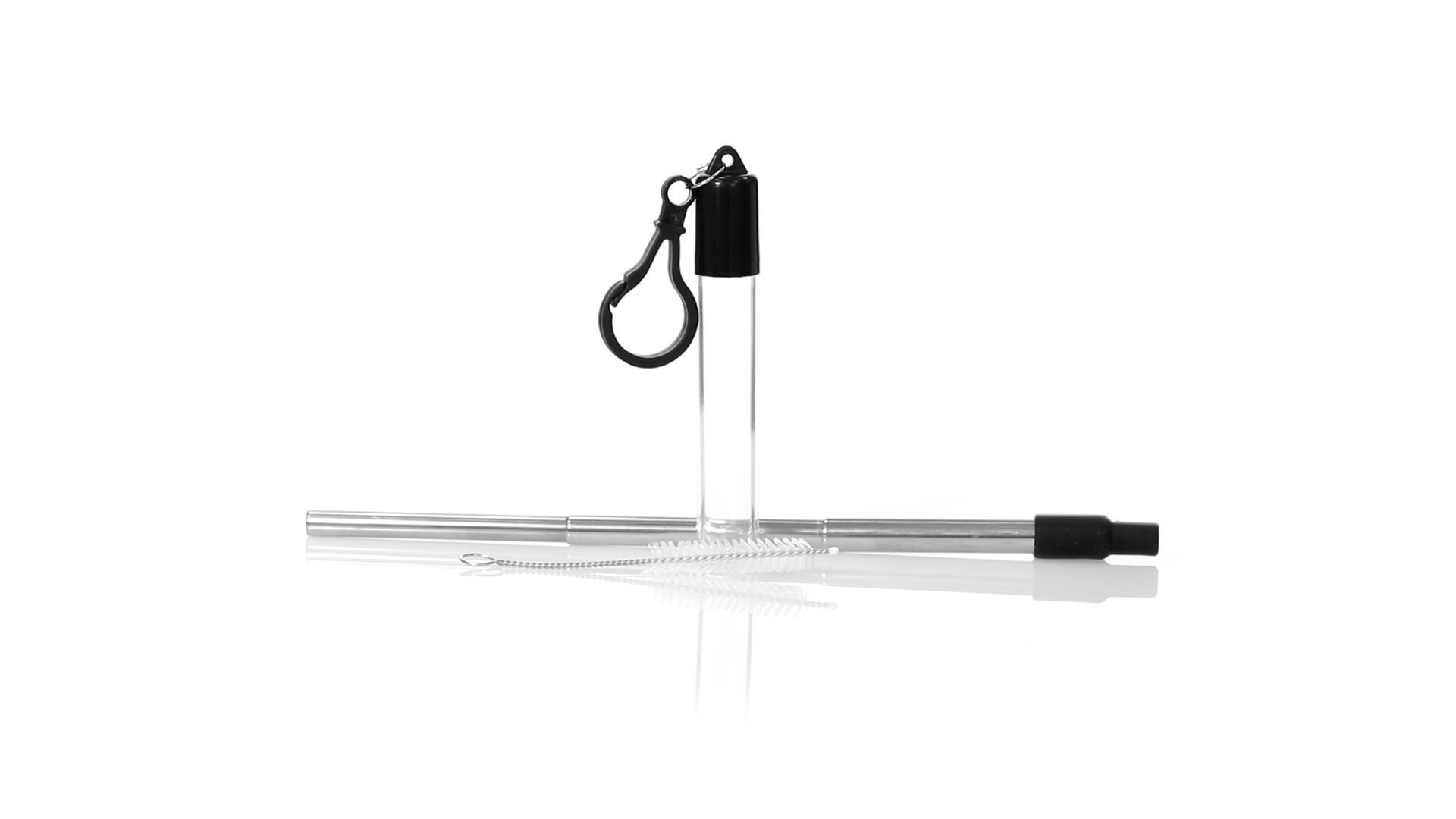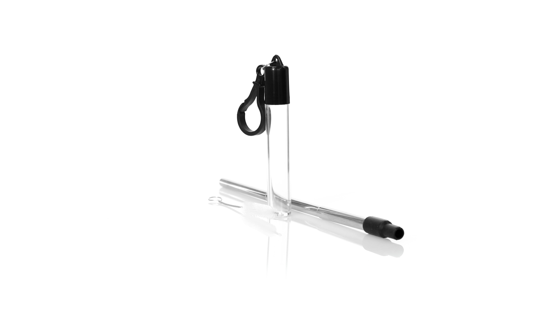 Wiederverwendbarer und ausziehbarer Strohhalm aus Edelstahl mit Silikonspitze. Inklusive Reinigungszubehör und präsentiert in einem transparenten Koffer mit Tragezubehör.
