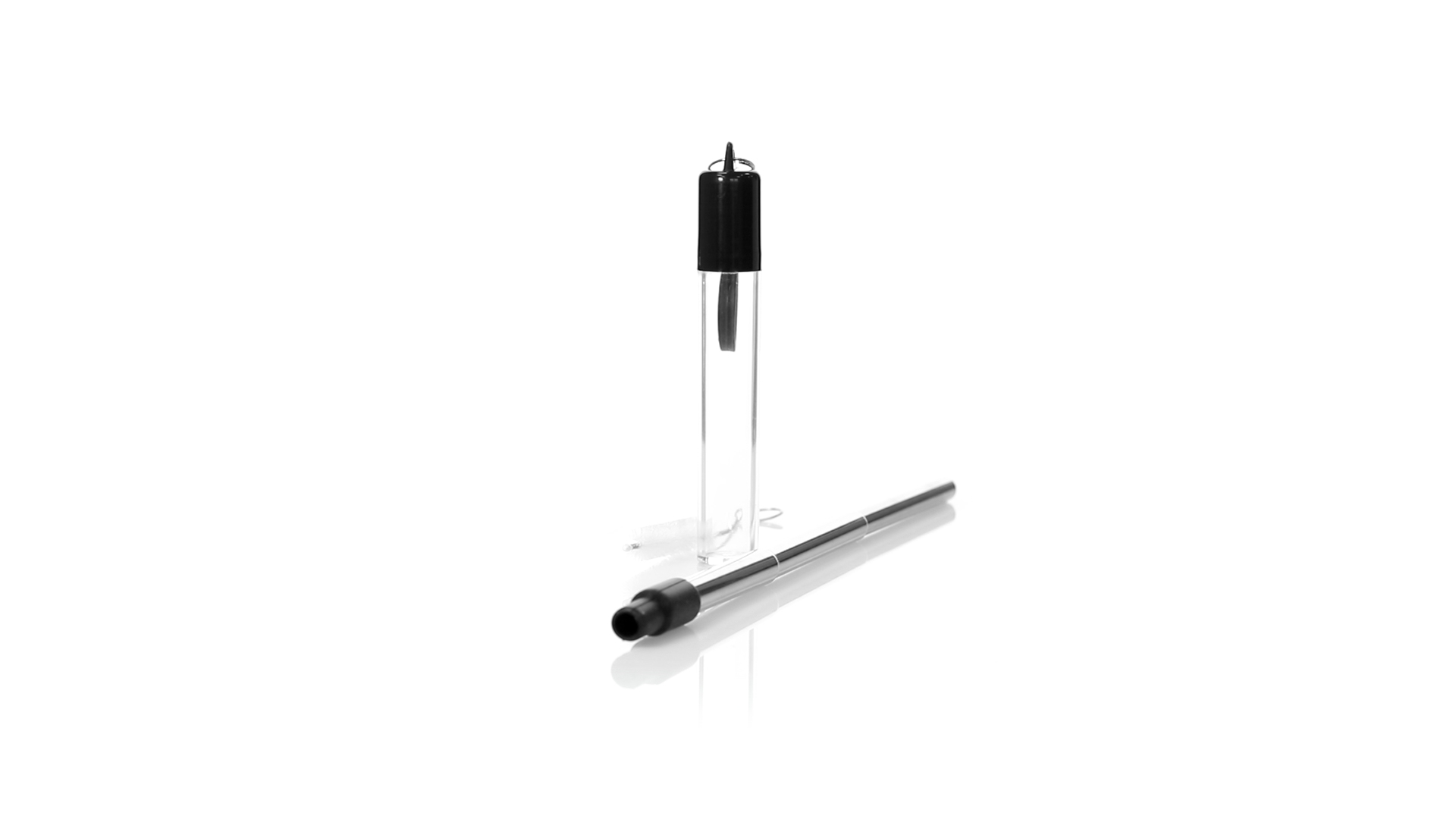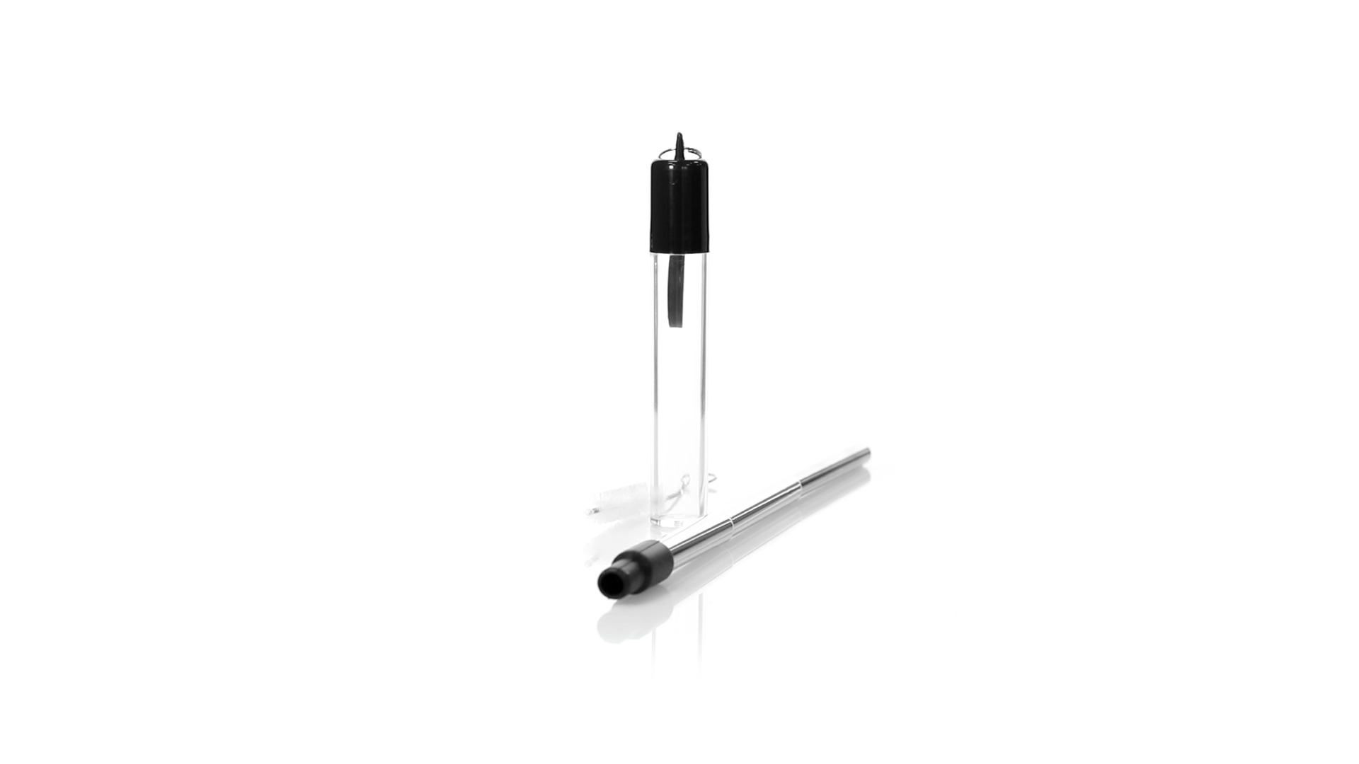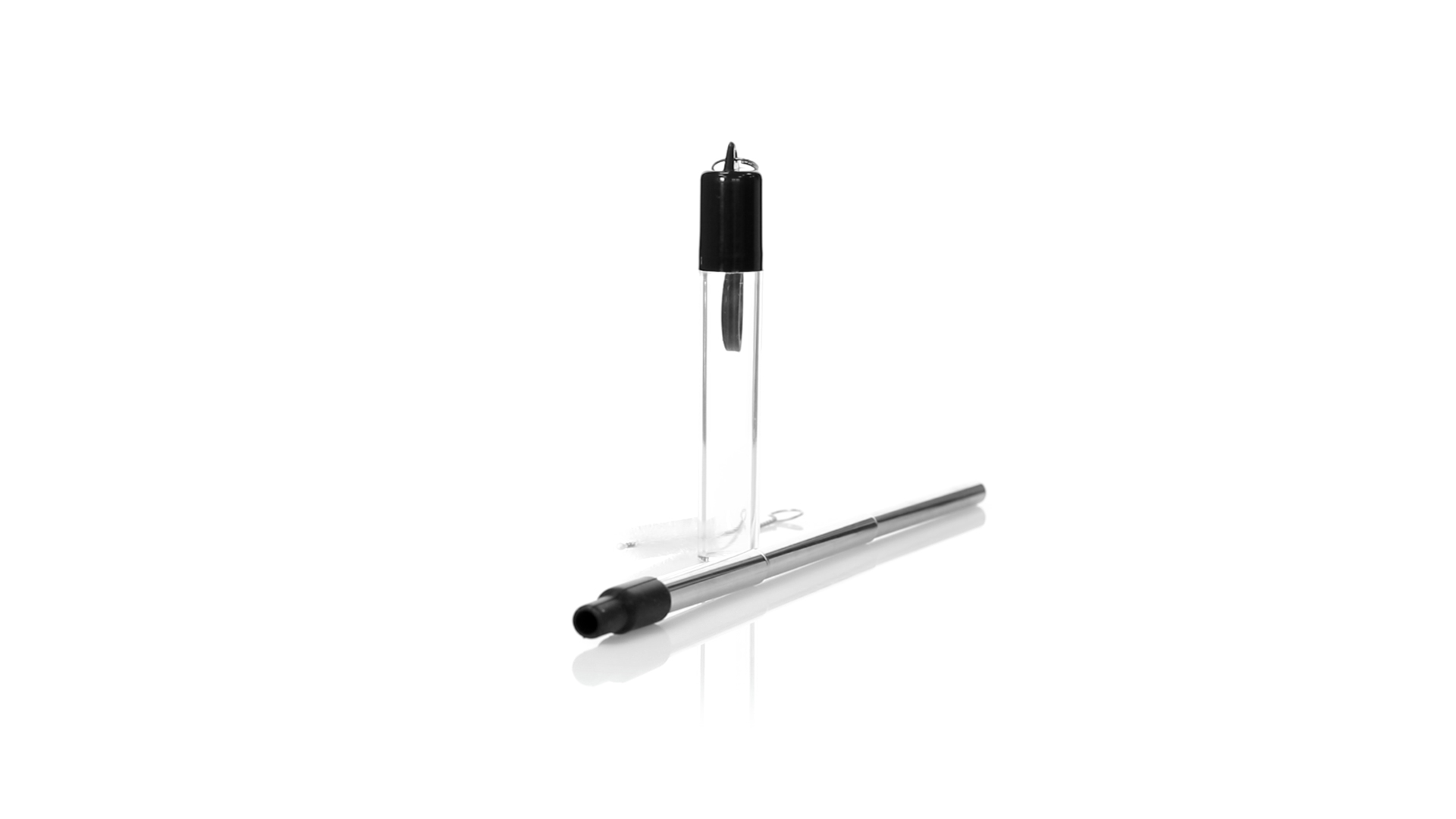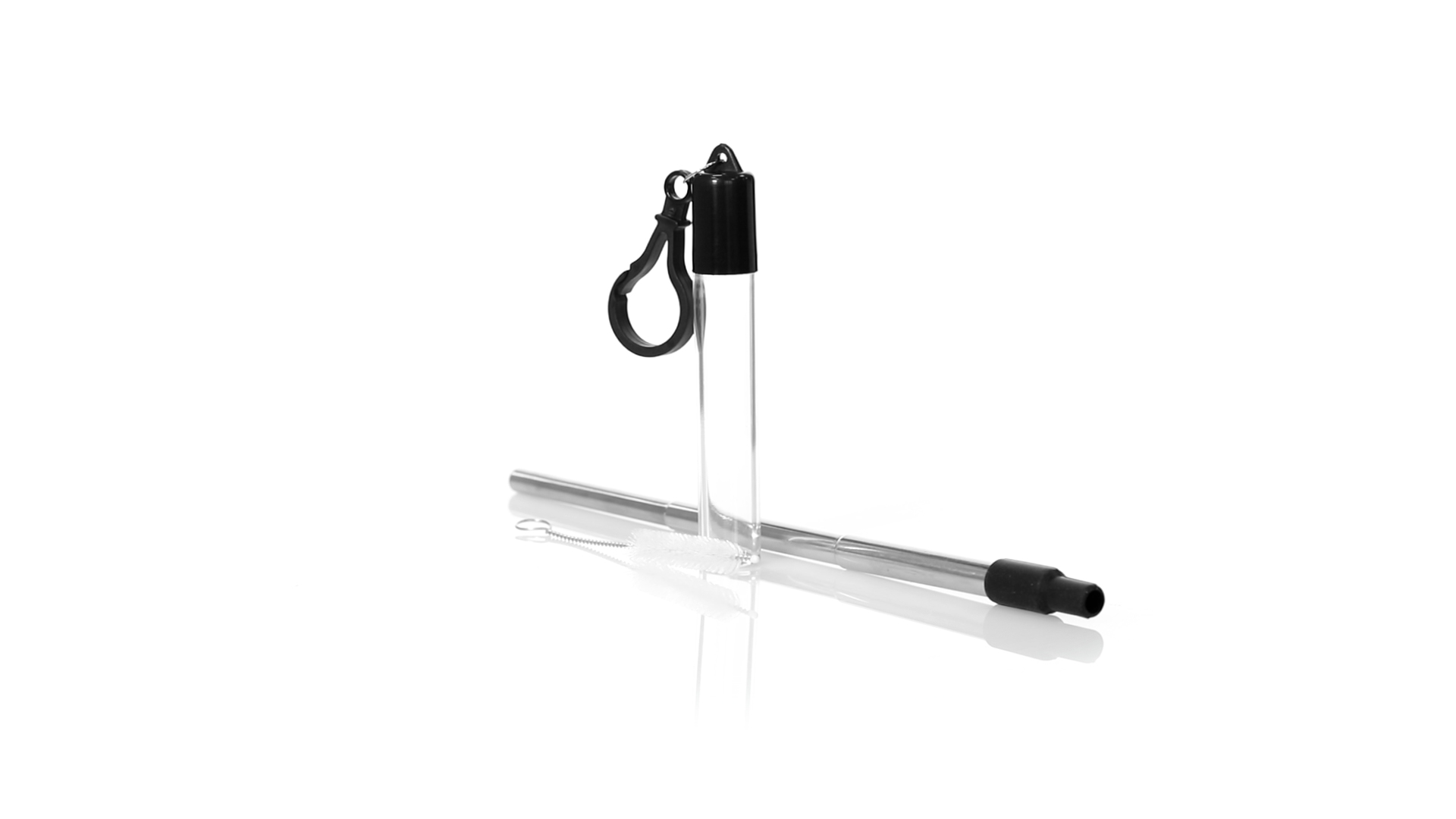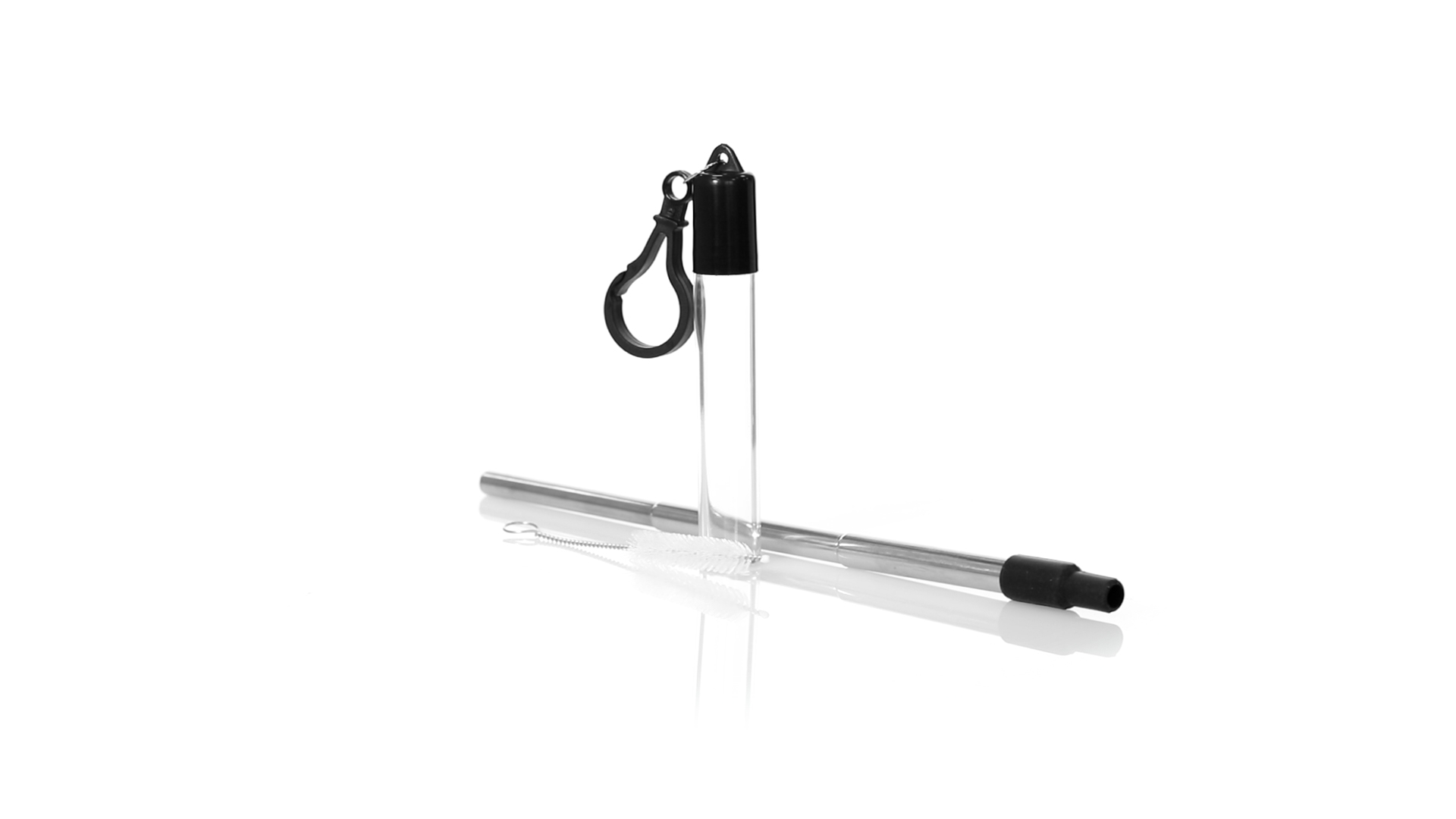 Wiederverwendbarer und ausziehbarer Strohhalm aus Edelstahl mit Silikonspitze. Inklusive Reinigungszubehör und präsentiert in einem transparenten Koffer mit Tragezubehör.