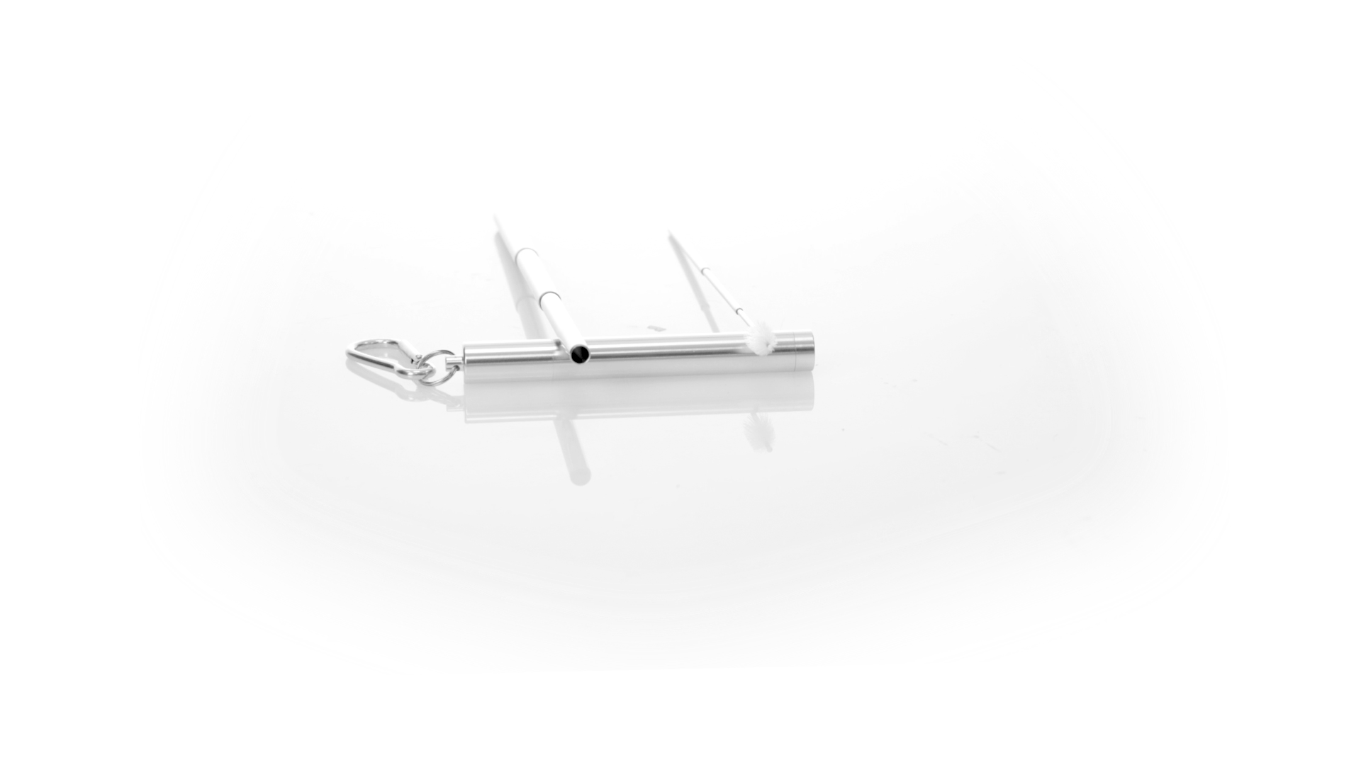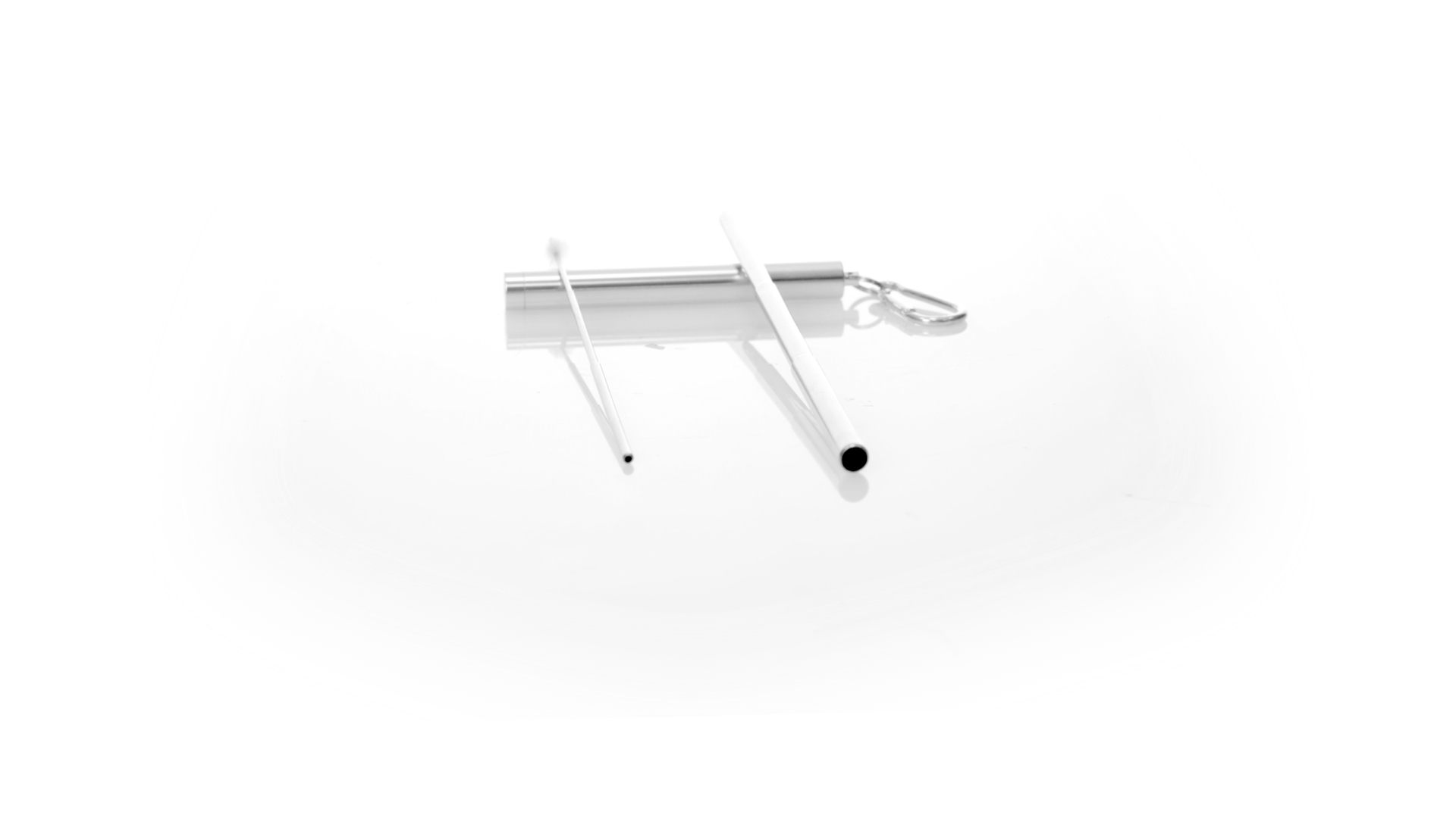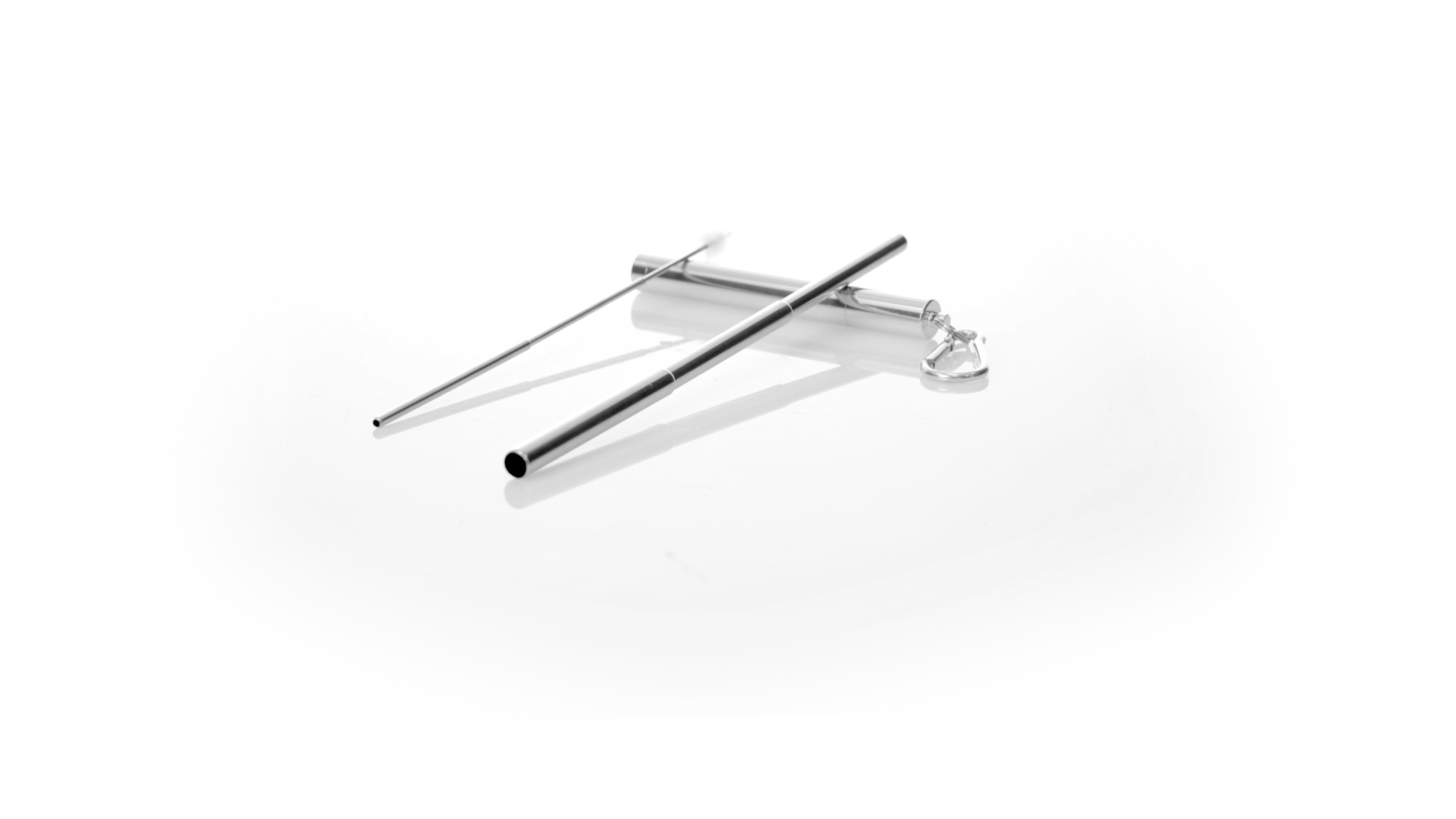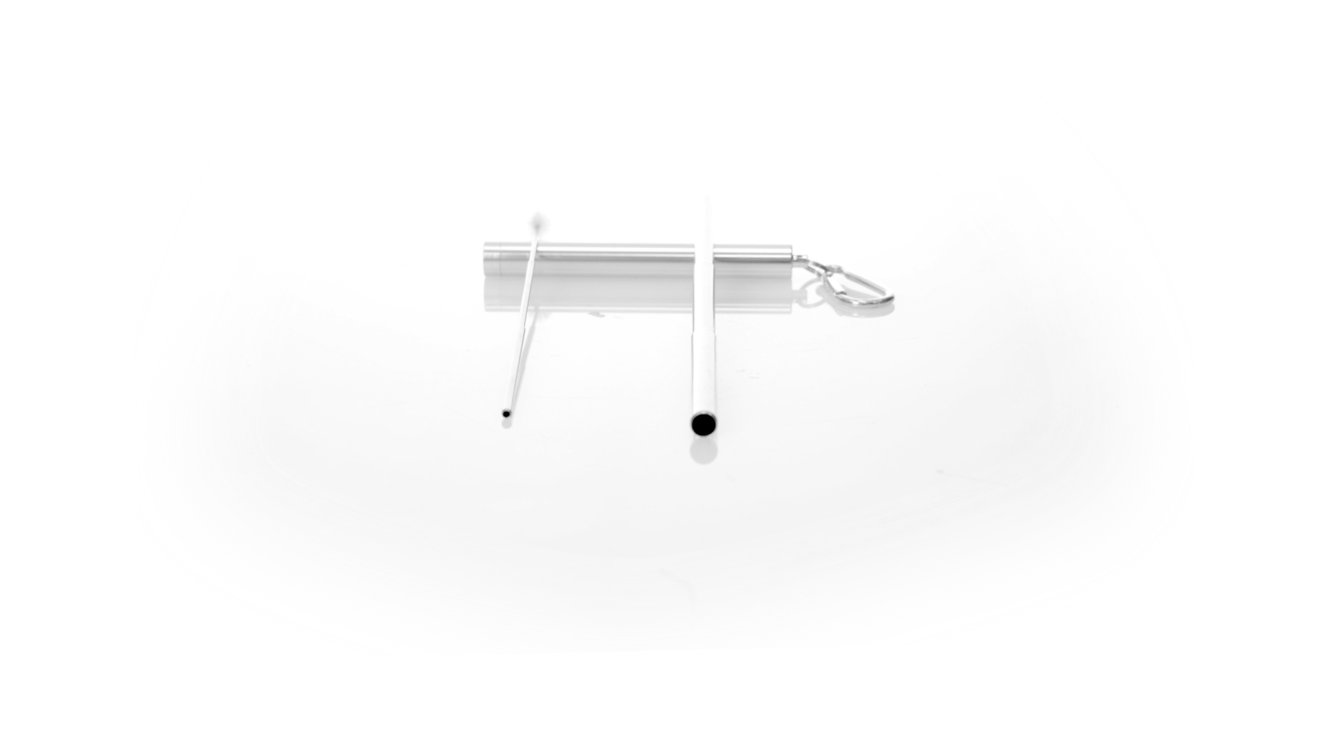 Wiederverwendbarer und ausziehbarer Edelstahlstrohhalm mit Silikonmundstück. Mit Reinigungszubehör im Lieferumfang enthalten und im passenden Koffer mit Karabiner zum Transport präsentiert.