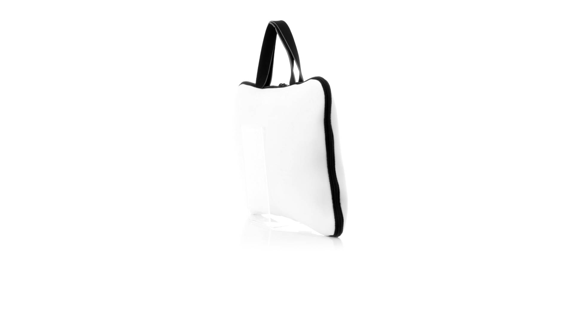 Praktische Hülle für Laptops bis 15 Zoll, hergestellt aus Softshell. Speziell für den beidseitigen Sublimationsdruck entwickelt. Reissverschluss mit Doppelschieber in schwarzer Farbe und zwei Tragegriffen. Präsentiert in einer einzeln recycelten Tasche.