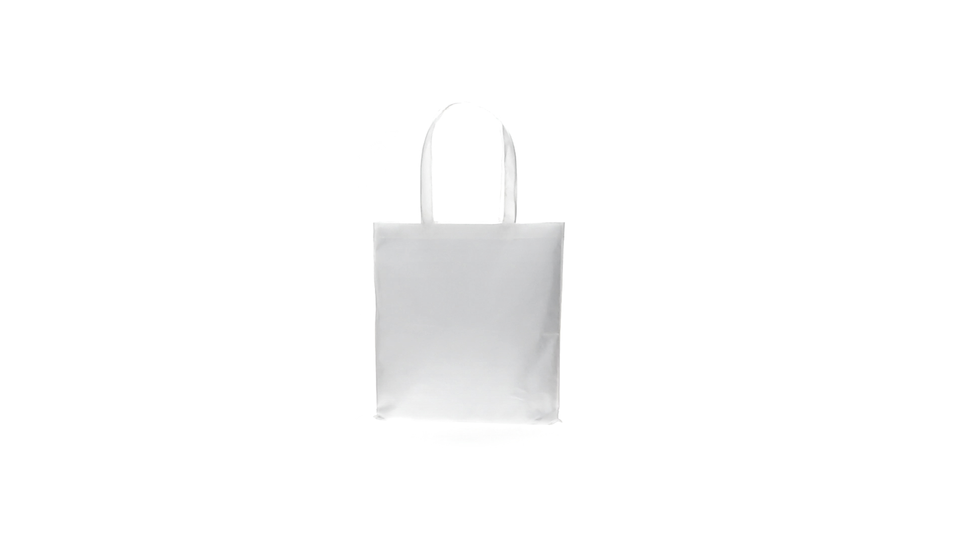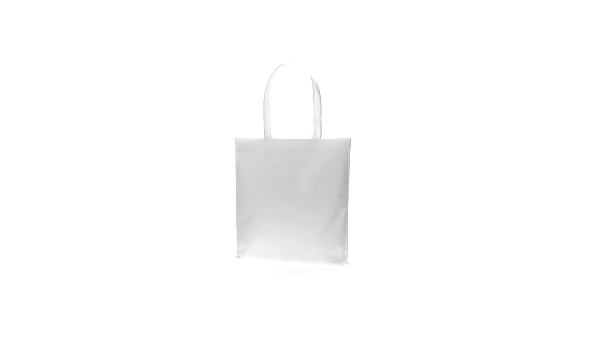 Non-Woven-Tasche aus Faservlies (80 g/m2) in Weiss - speziell für den Sublimationsdruck entwickelt. Mit 60 cm langen Henkeln und Steppnähten.