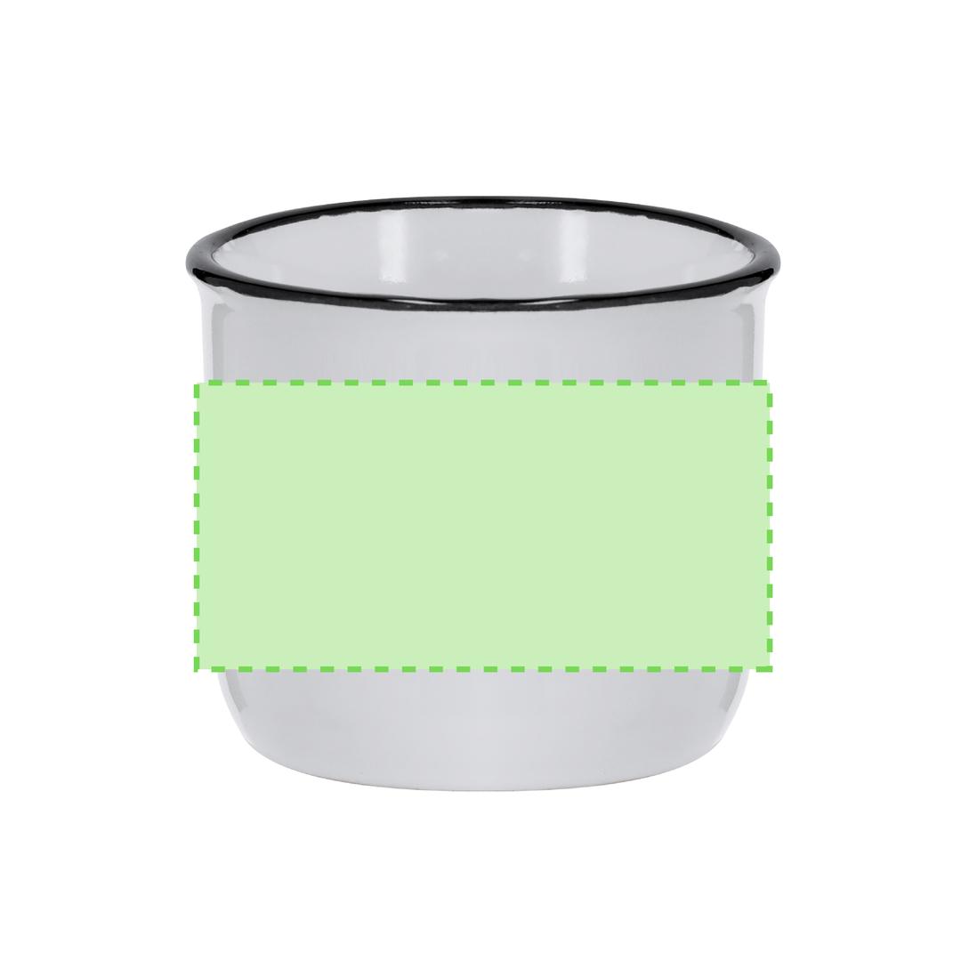 Keramiktasse mit 85 ml Kapazität und Vintage-Design. In elegantem bicolor Design, mit schwarzem Rand und weissem Körper. Besonders geeignet zum Bedrucken durch Sublimation.