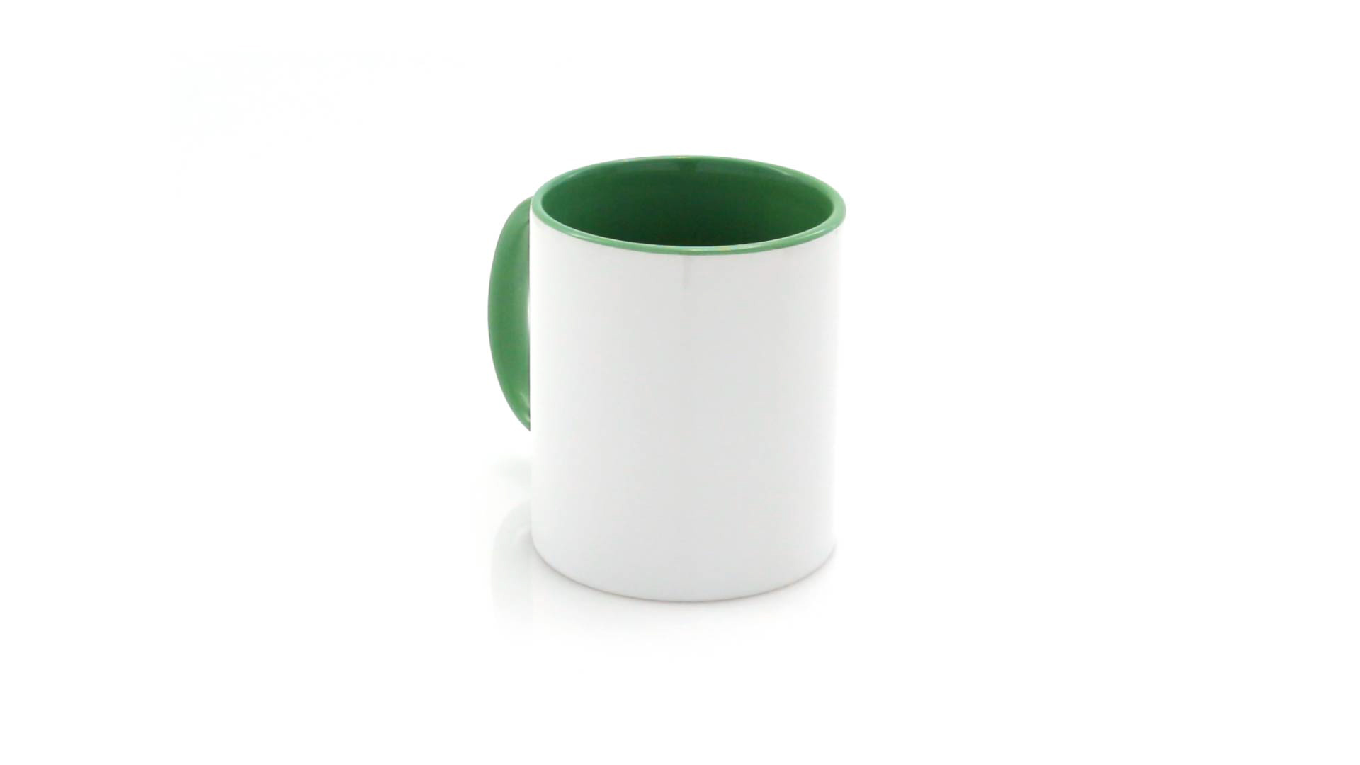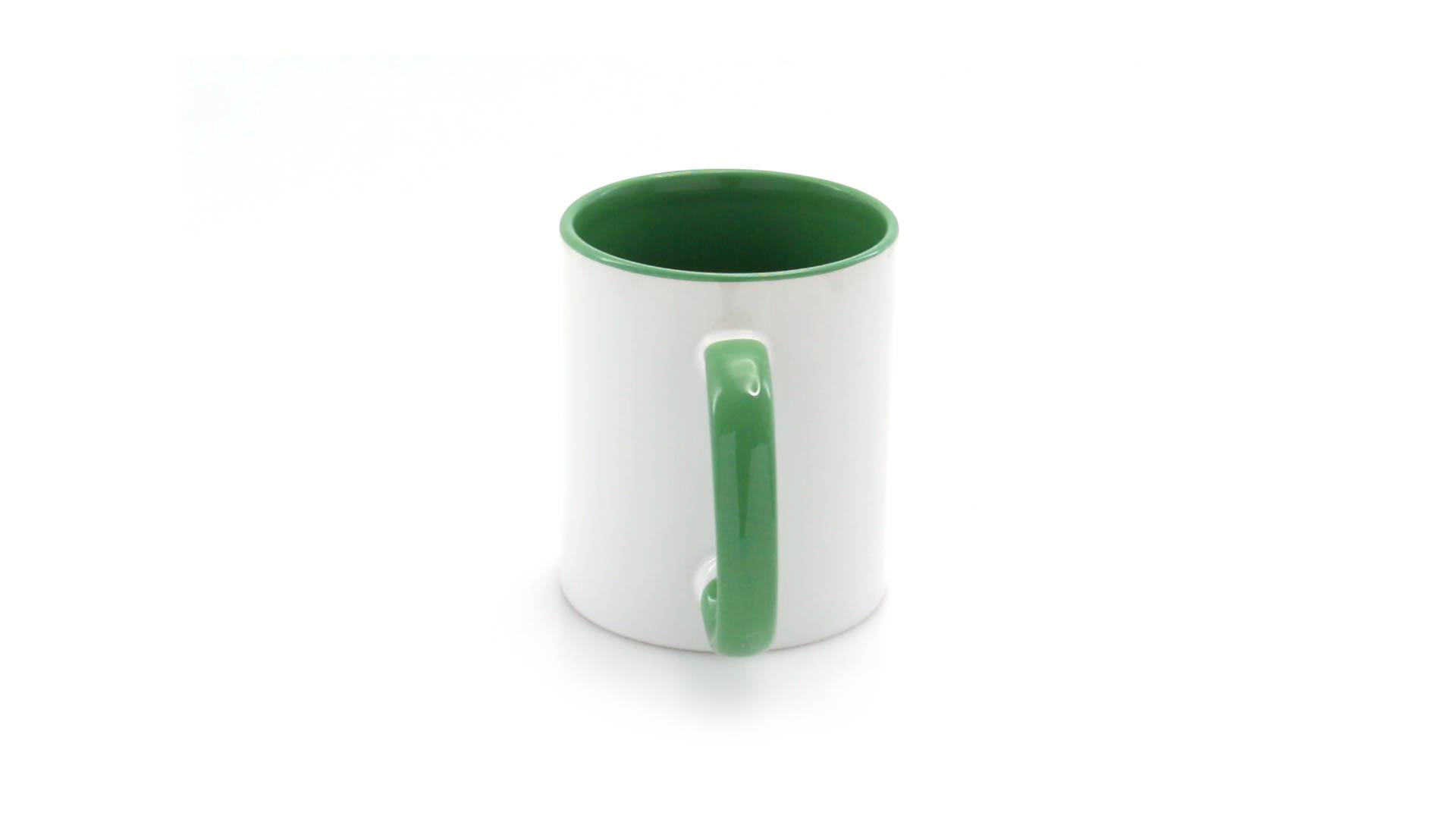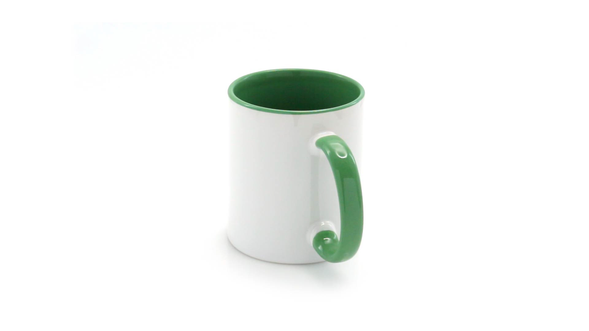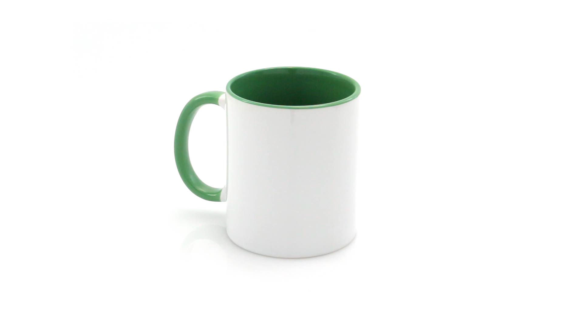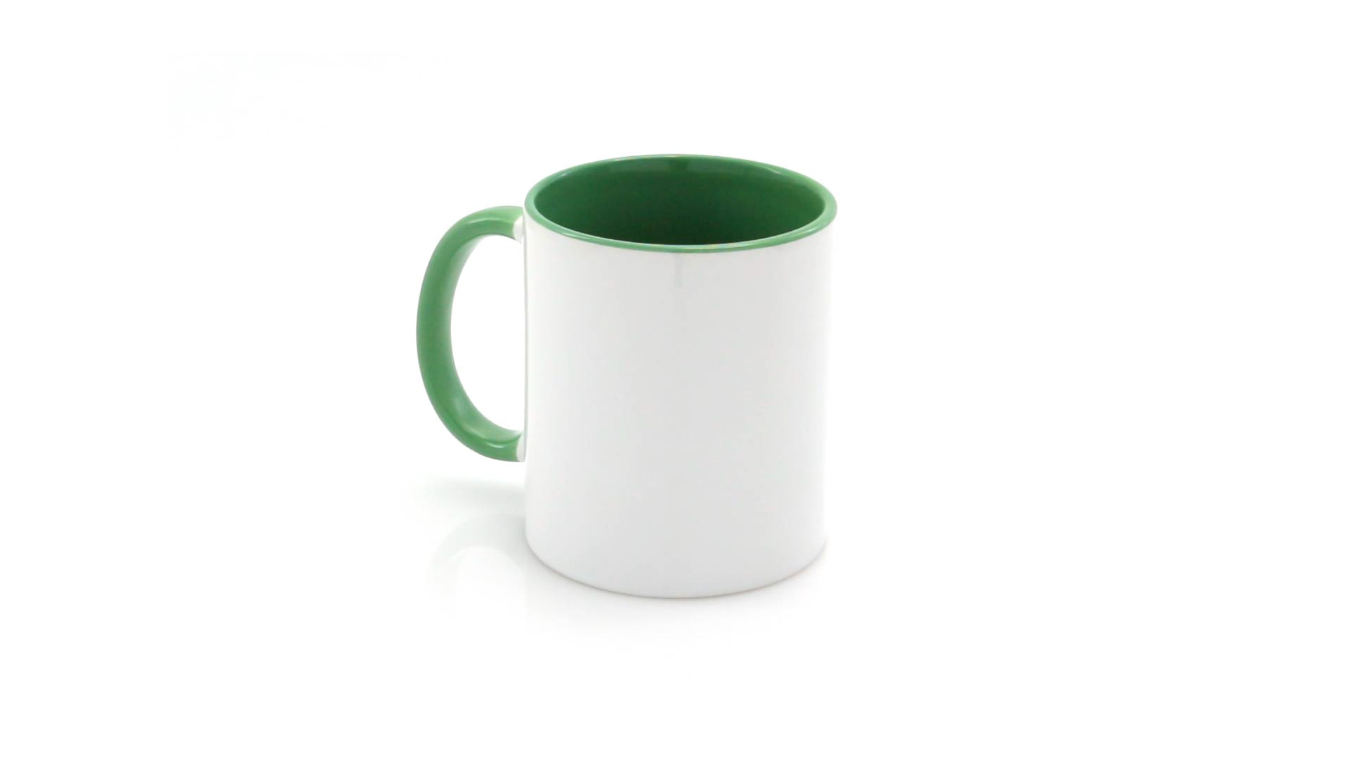 Keramiktasse mit 350 ml Fassungsvermögen. Weisses Aussendesign, das speziell für die Sublimation entwickelt wurde, um alle Arten von Designs in voller Farbe übertragen zu können, und mit einem originellen Griff und einer Innenseite in leuchtenden Farben. Jede Tasse wird in einer individuellen Kraftbox geliefert.