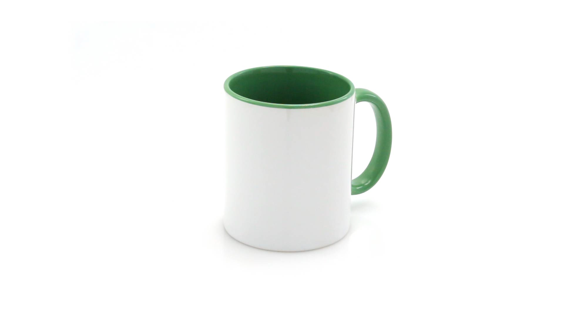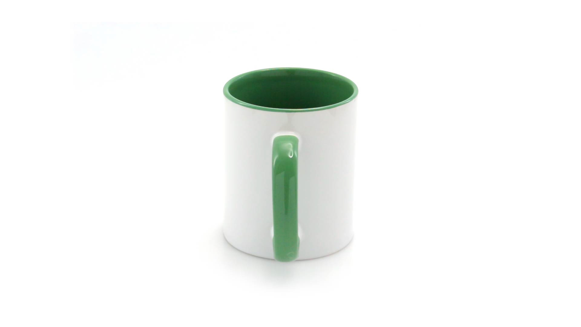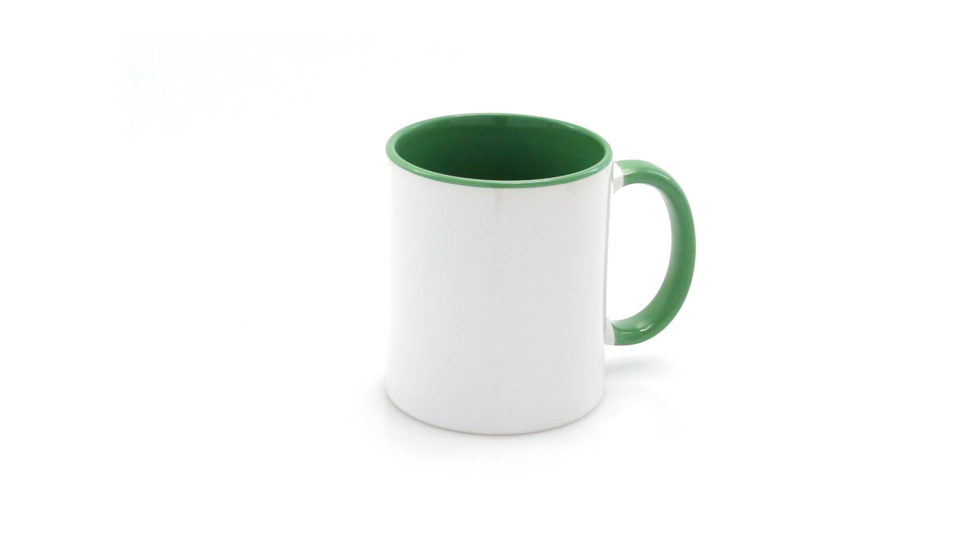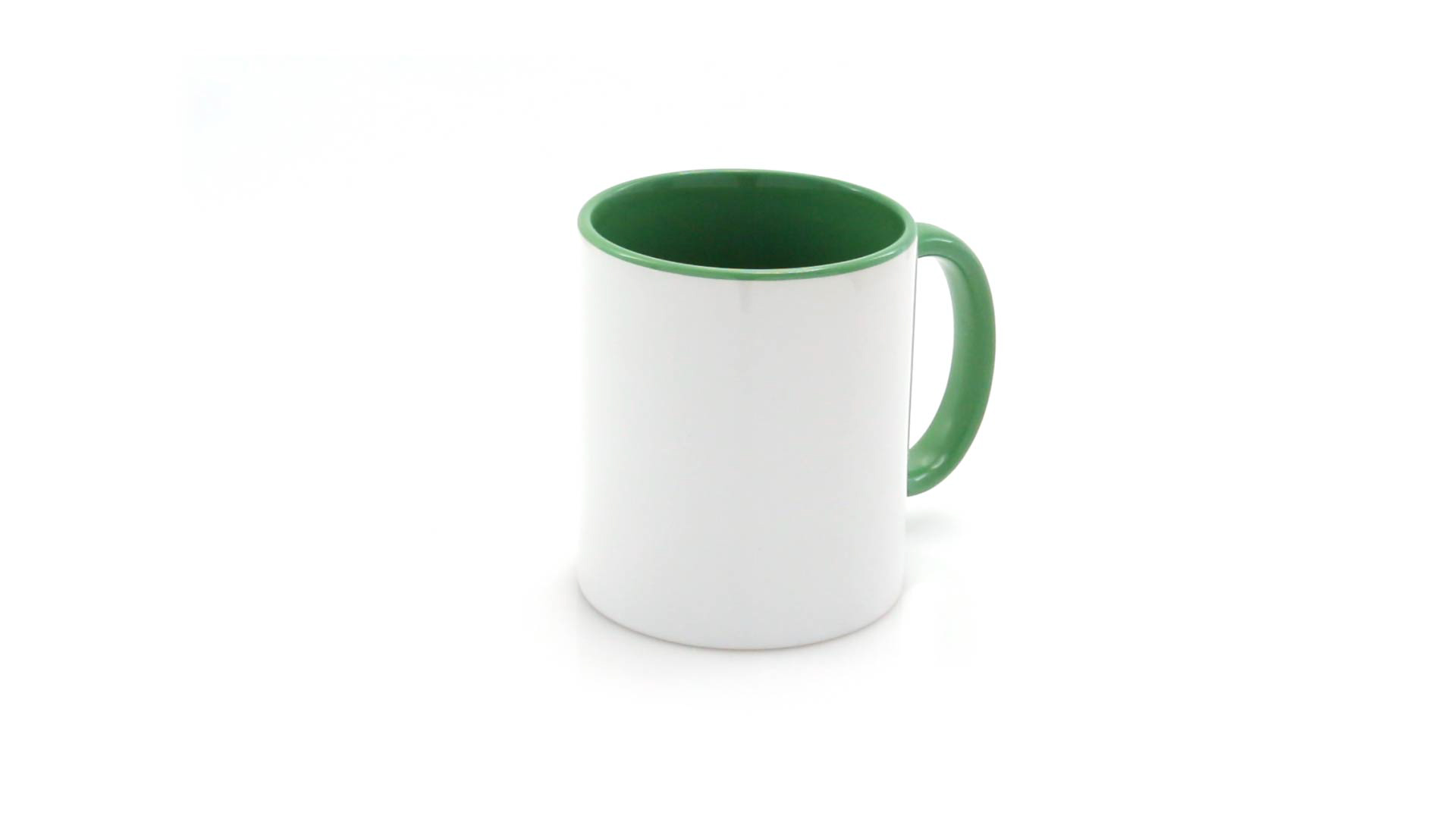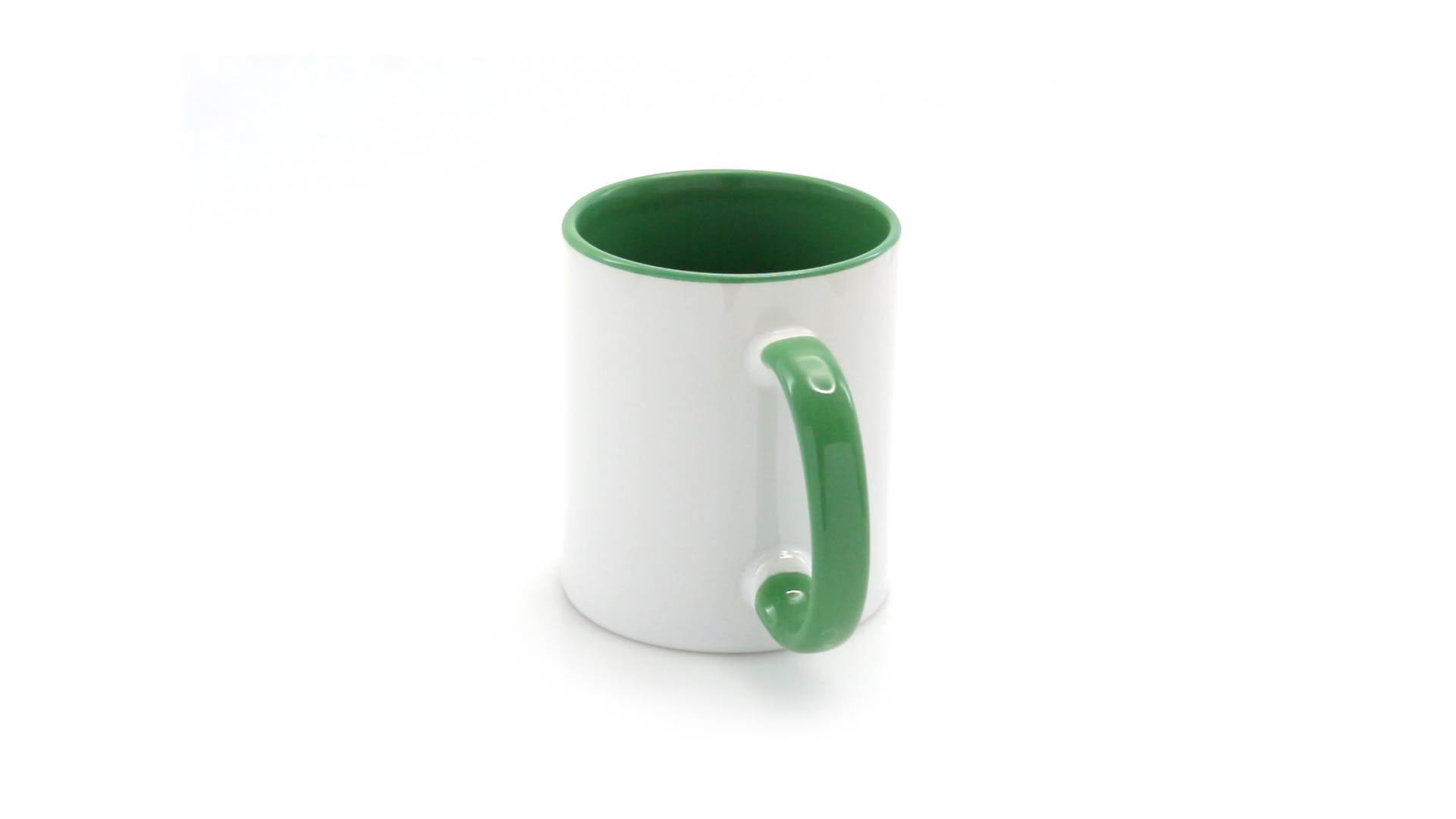 Keramiktasse mit 350 ml Fassungsvermögen. Weisses Aussendesign, das speziell für die Sublimation entwickelt wurde, um alle Arten von Designs in voller Farbe übertragen zu können, und mit einem originellen Griff und einer Innenseite in leuchtenden Farben. Jede Tasse wird in einer individuellen Kraftbox geliefert.