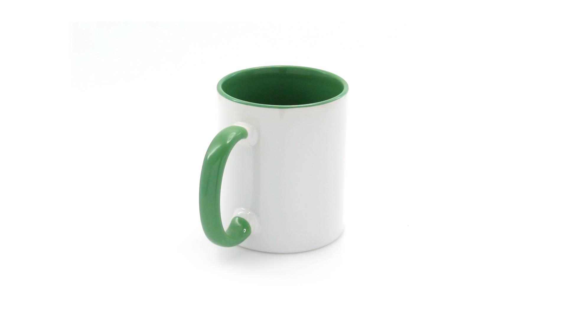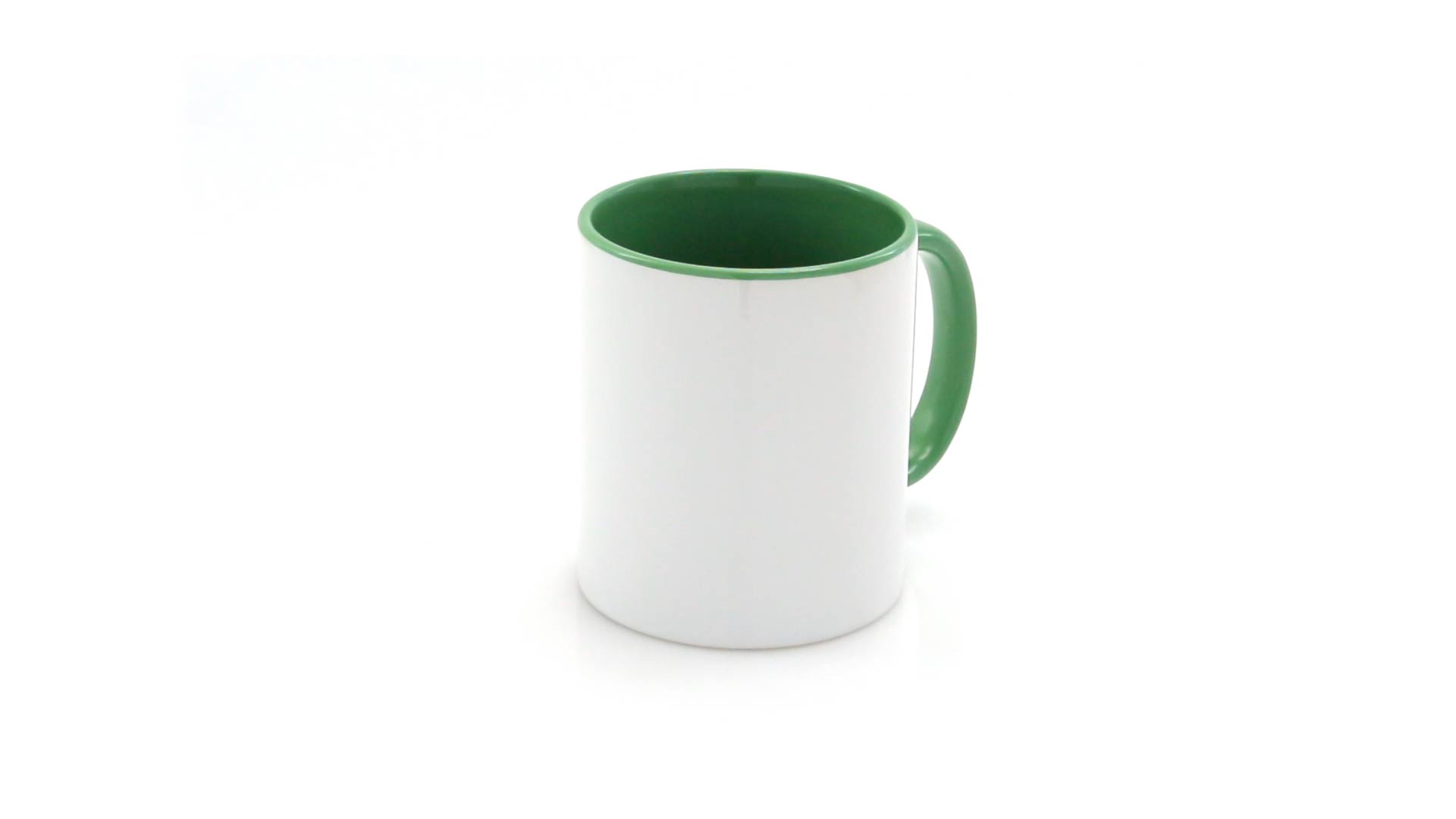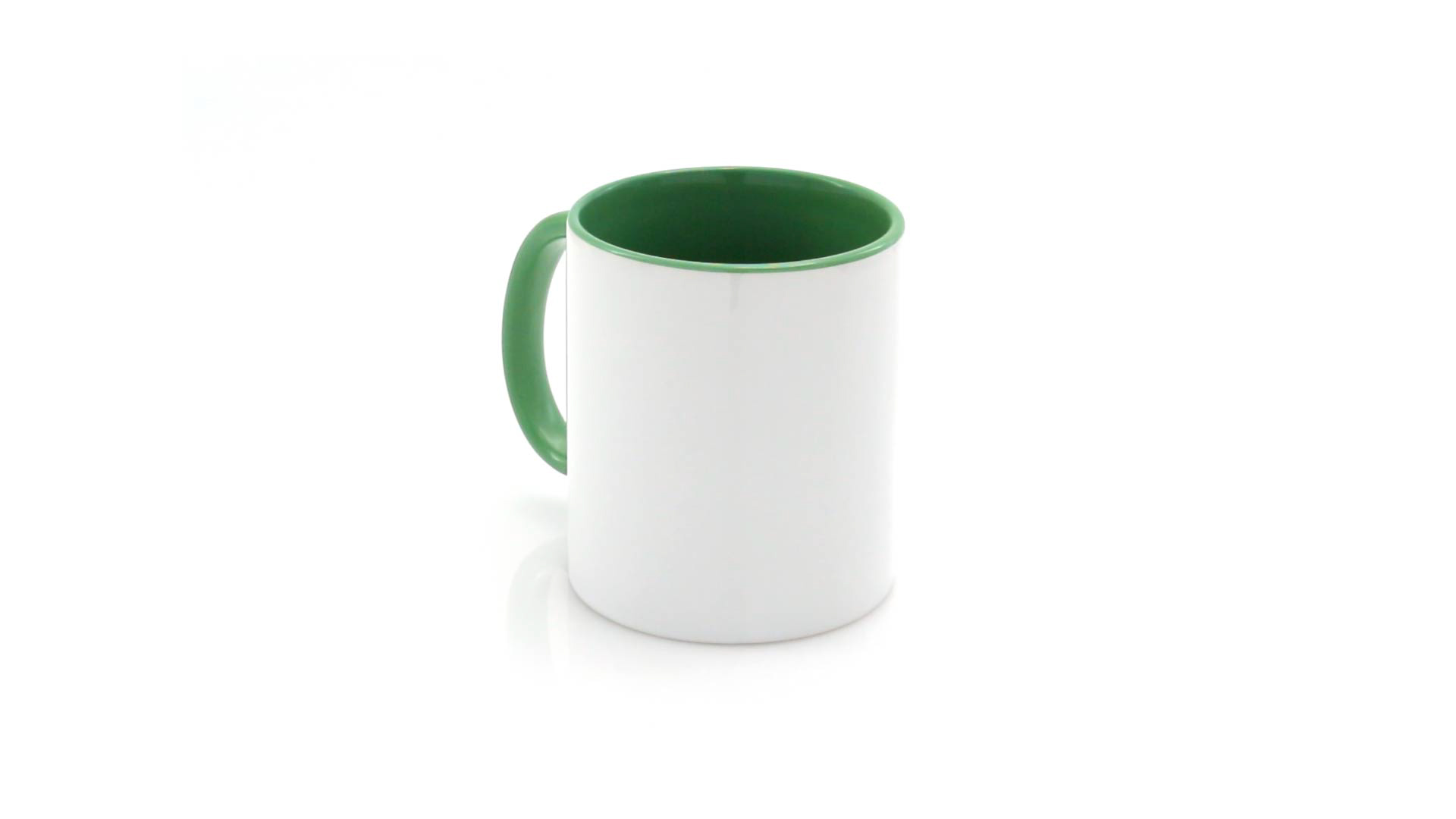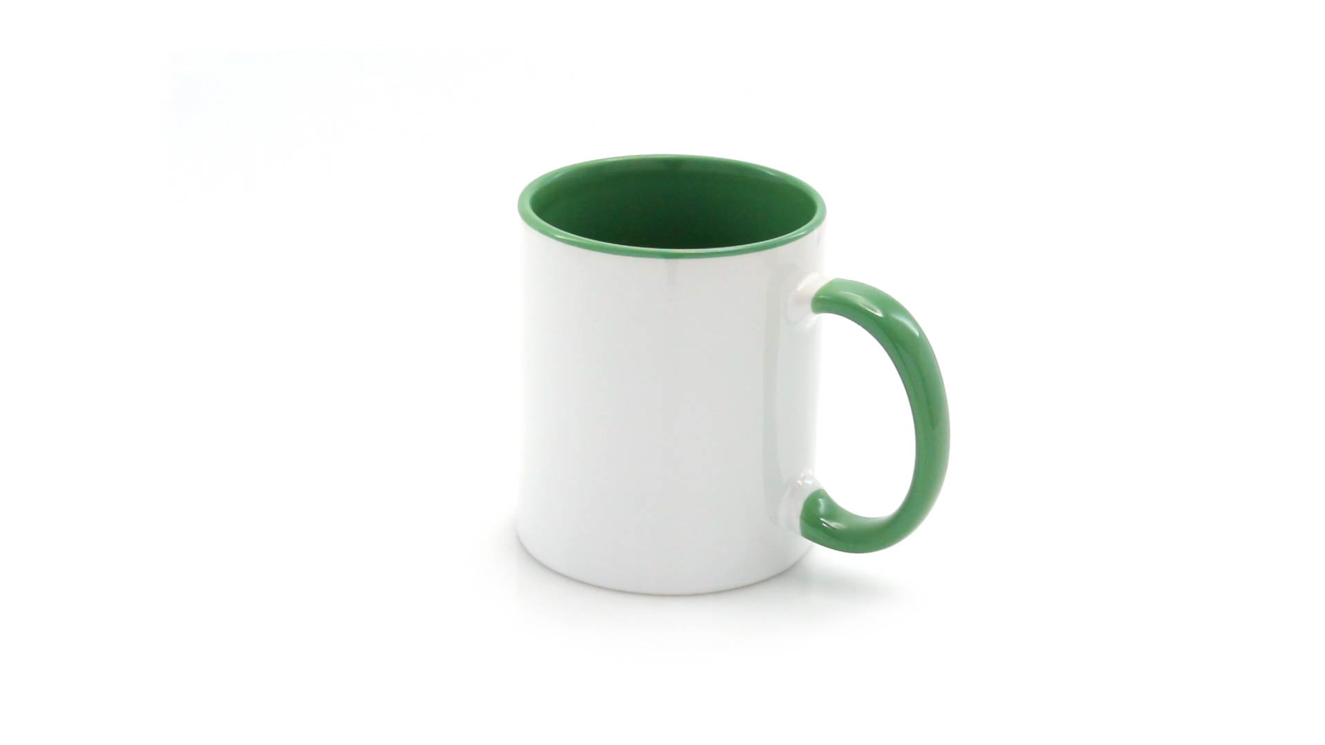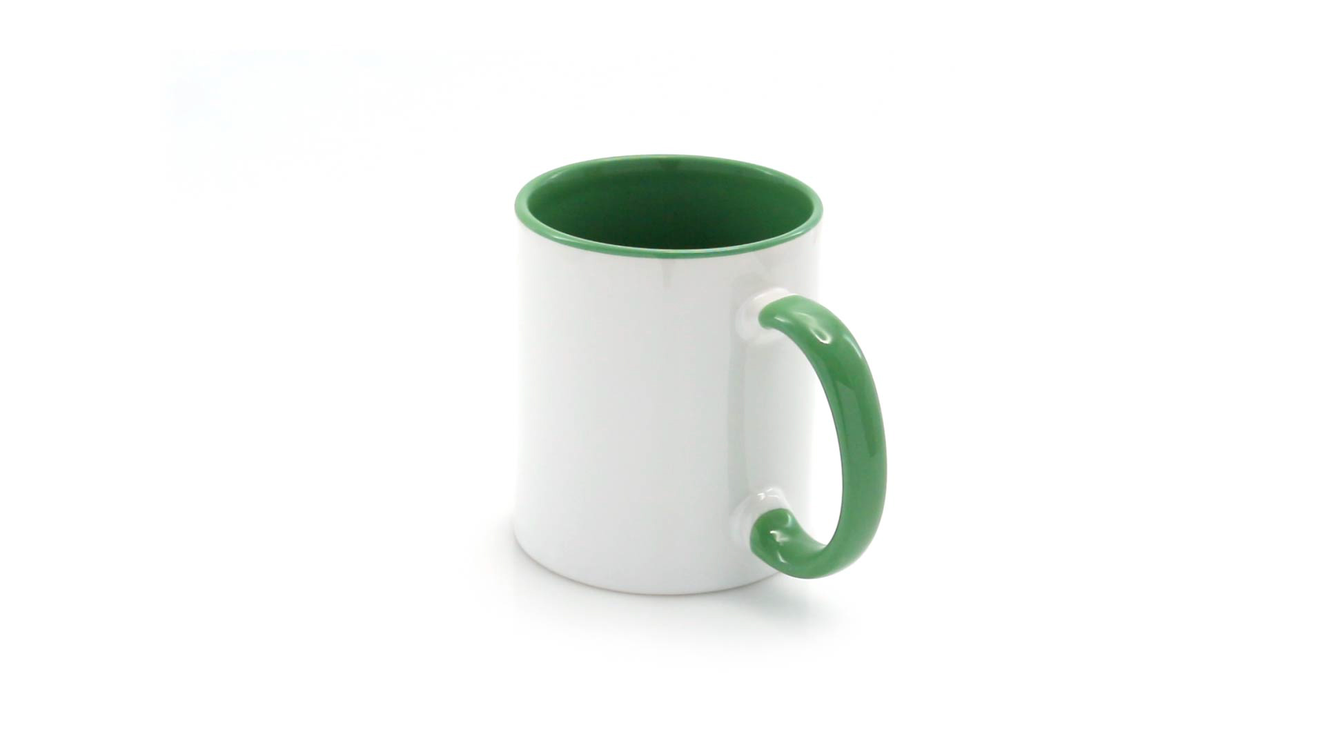 Keramiktasse mit 350 ml Fassungsvermögen. Weisses Aussendesign, das speziell für die Sublimation entwickelt wurde, um alle Arten von Designs in voller Farbe übertragen zu können, und mit einem originellen Griff und einer Innenseite in leuchtenden Farben. Jede Tasse wird in einer individuellen Kraftbox geliefert.