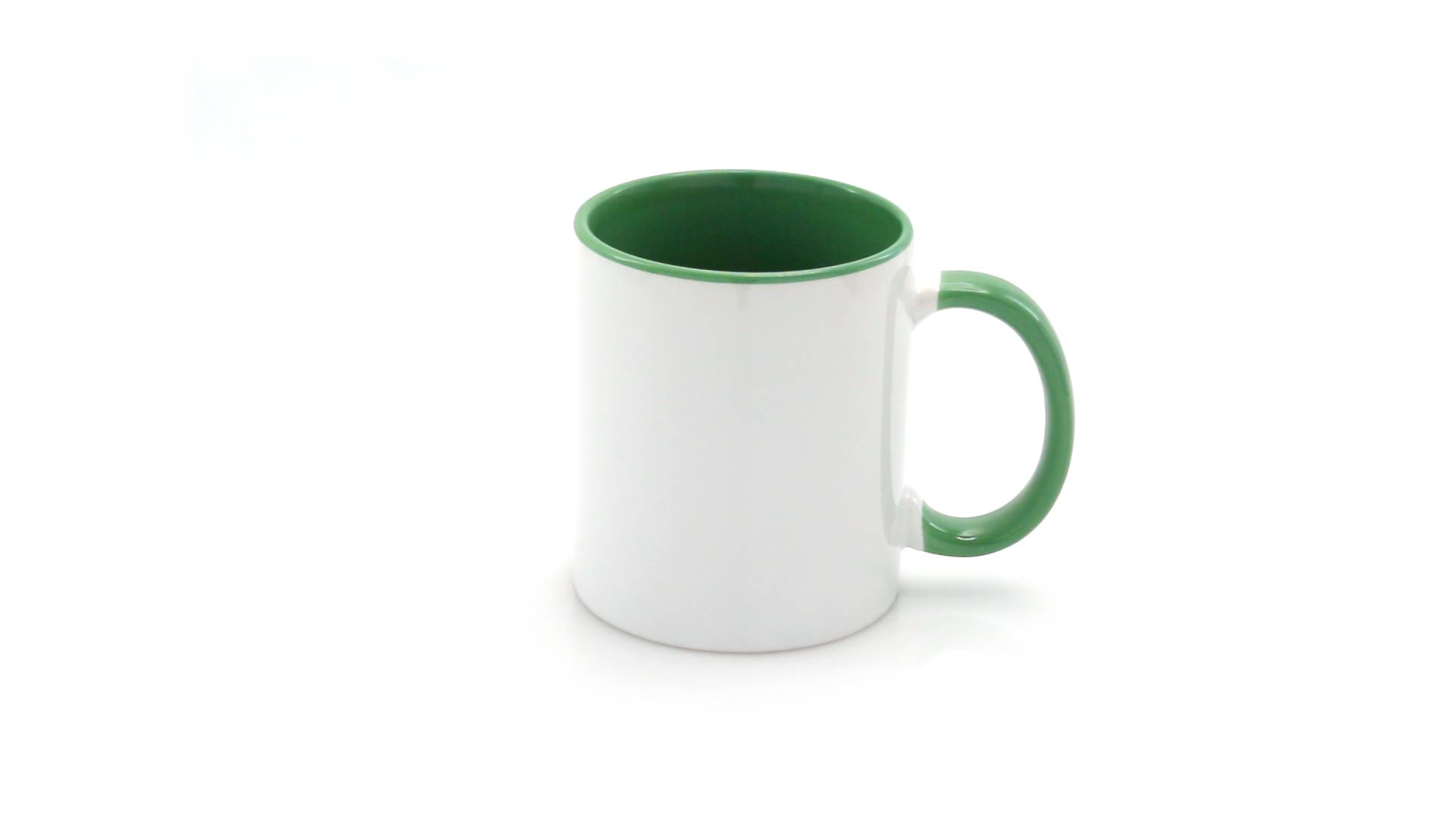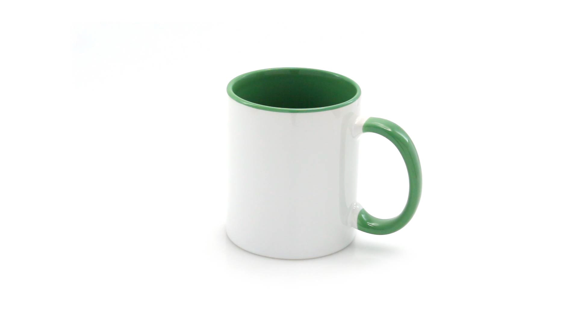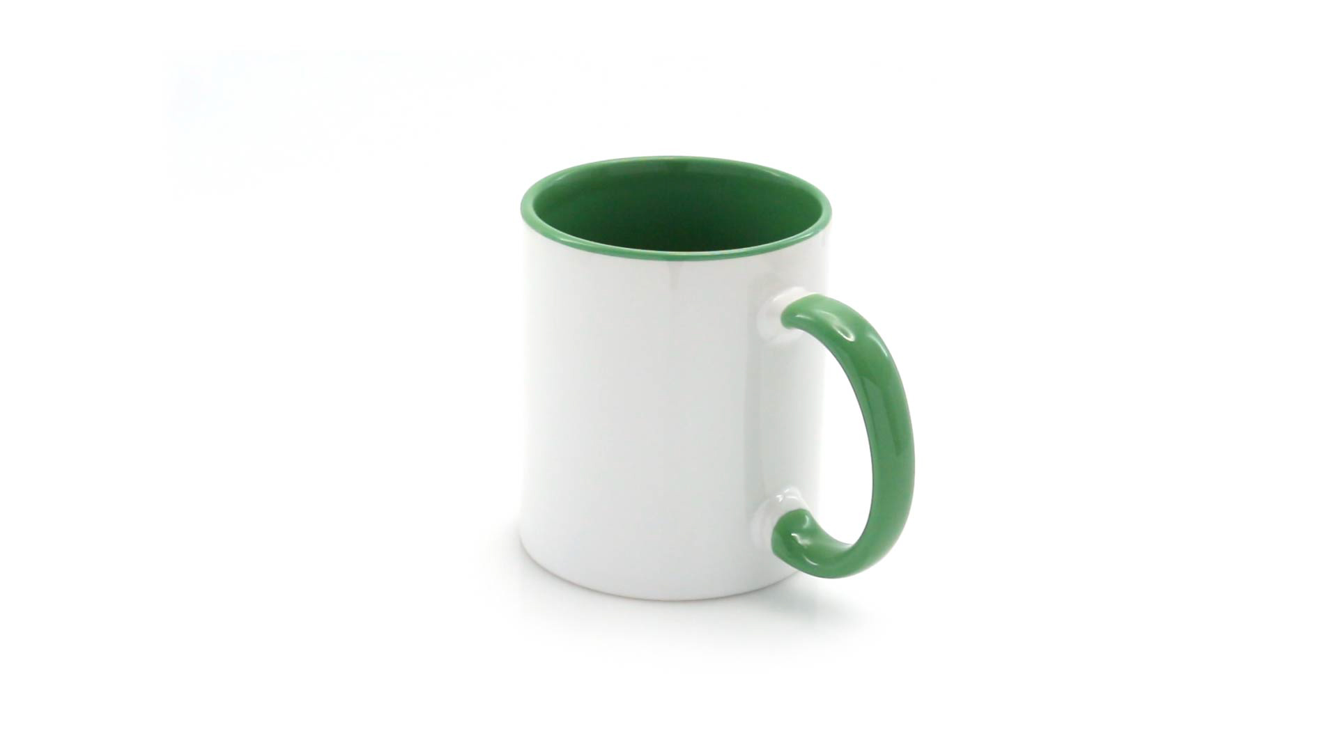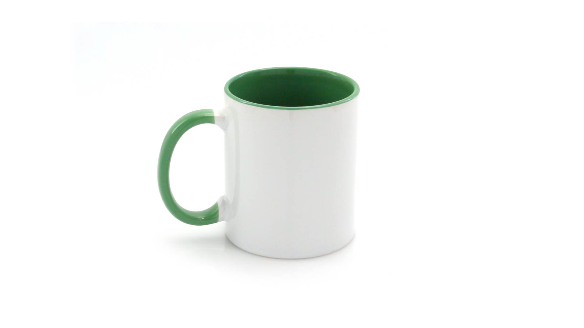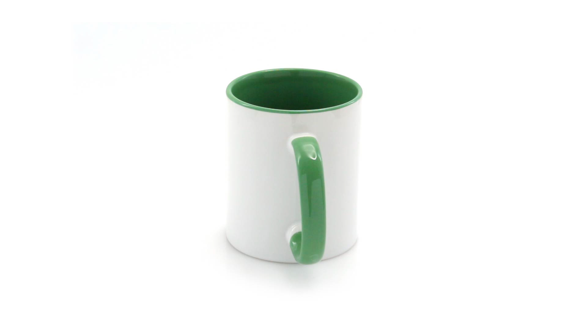 Keramiktasse mit 350 ml Fassungsvermögen. Weisses Aussendesign, das speziell für die Sublimation entwickelt wurde, um alle Arten von Designs in voller Farbe übertragen zu können, und mit einem originellen Griff und einer Innenseite in leuchtenden Farben. Jede Tasse wird in einer individuellen Kraftbox geliefert.