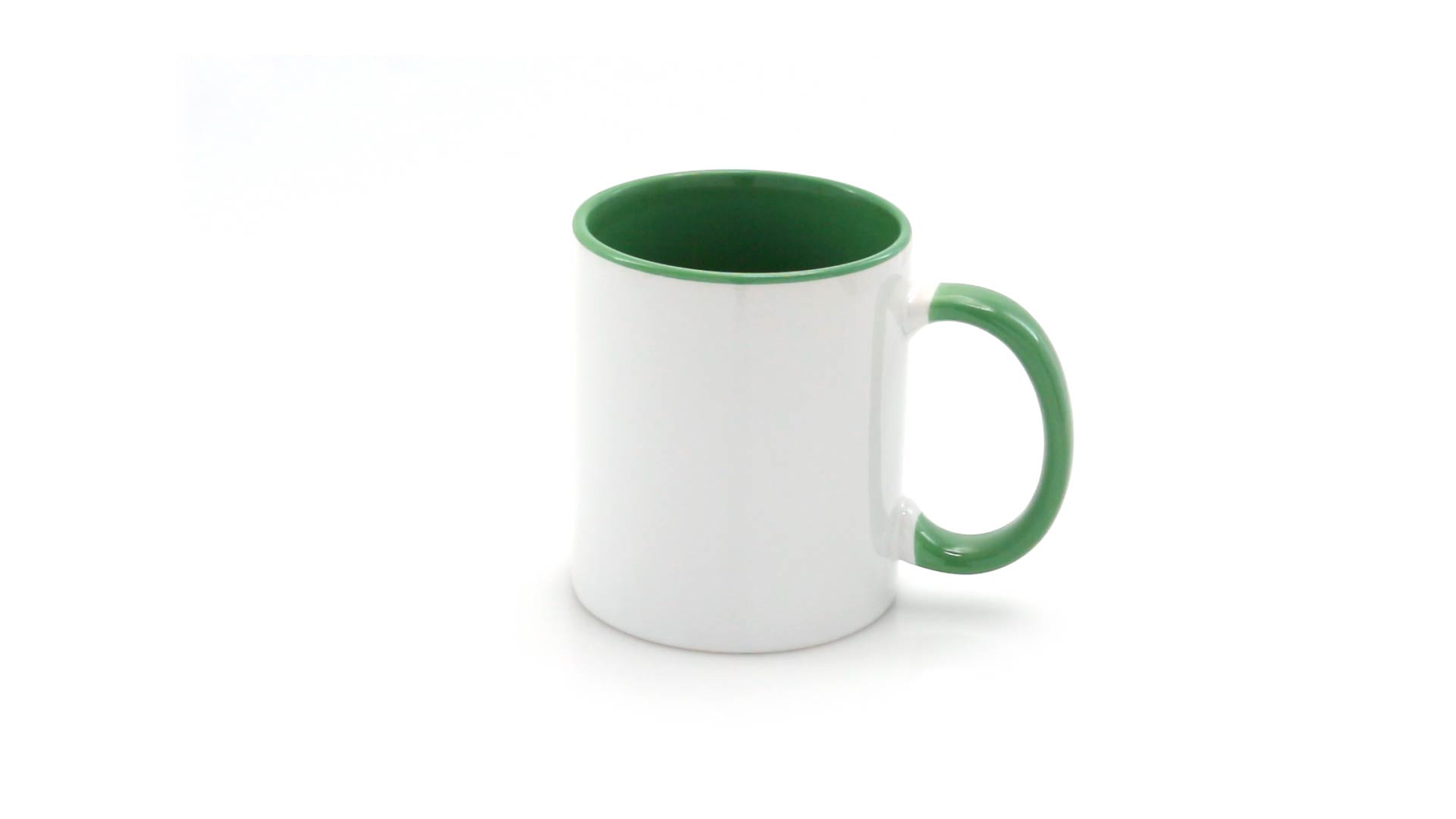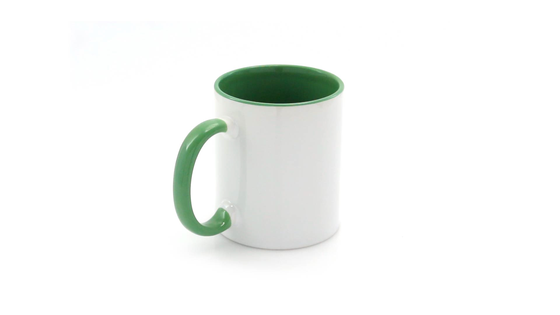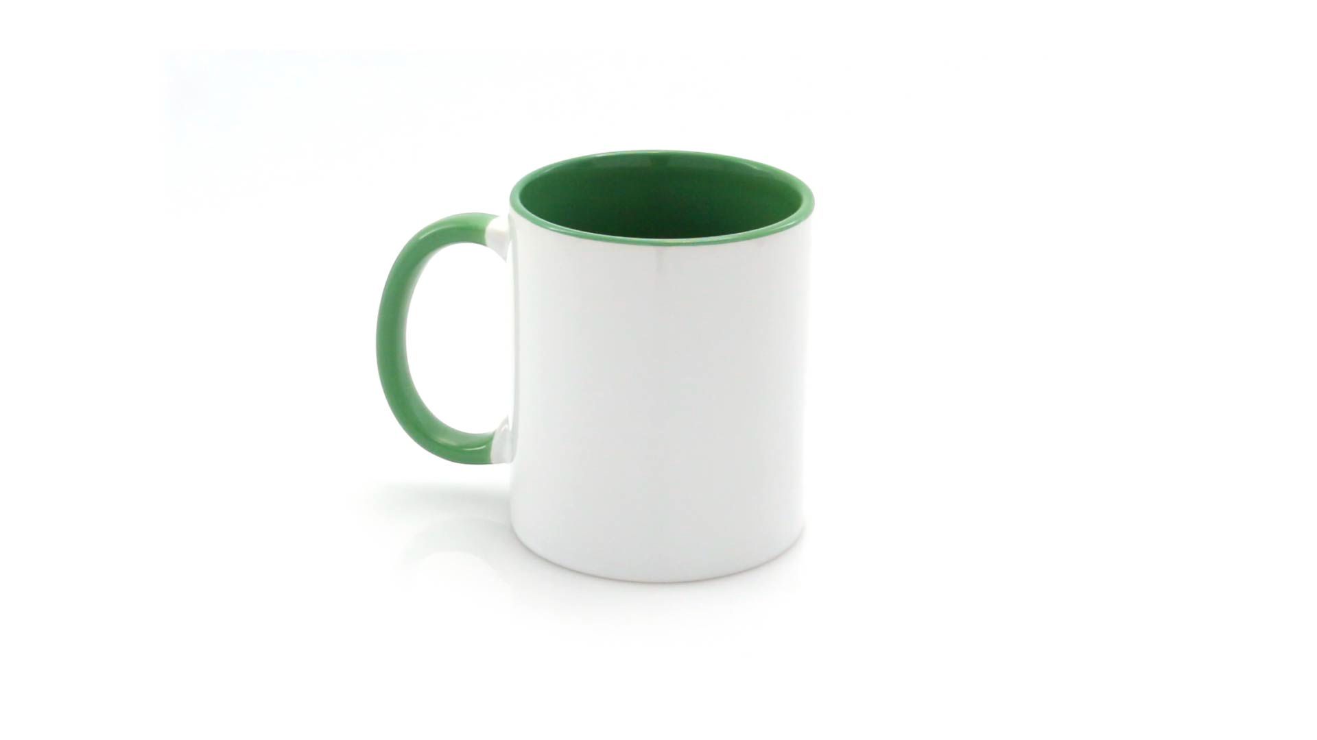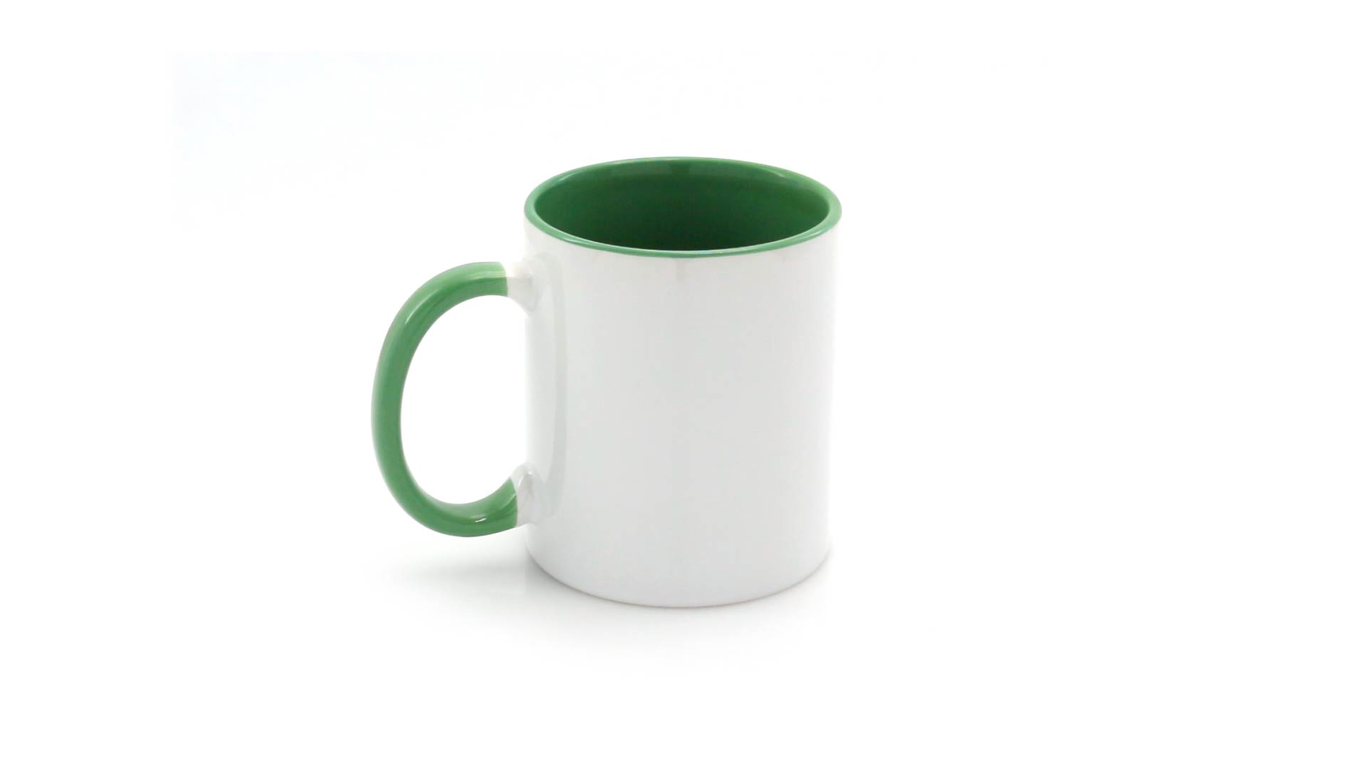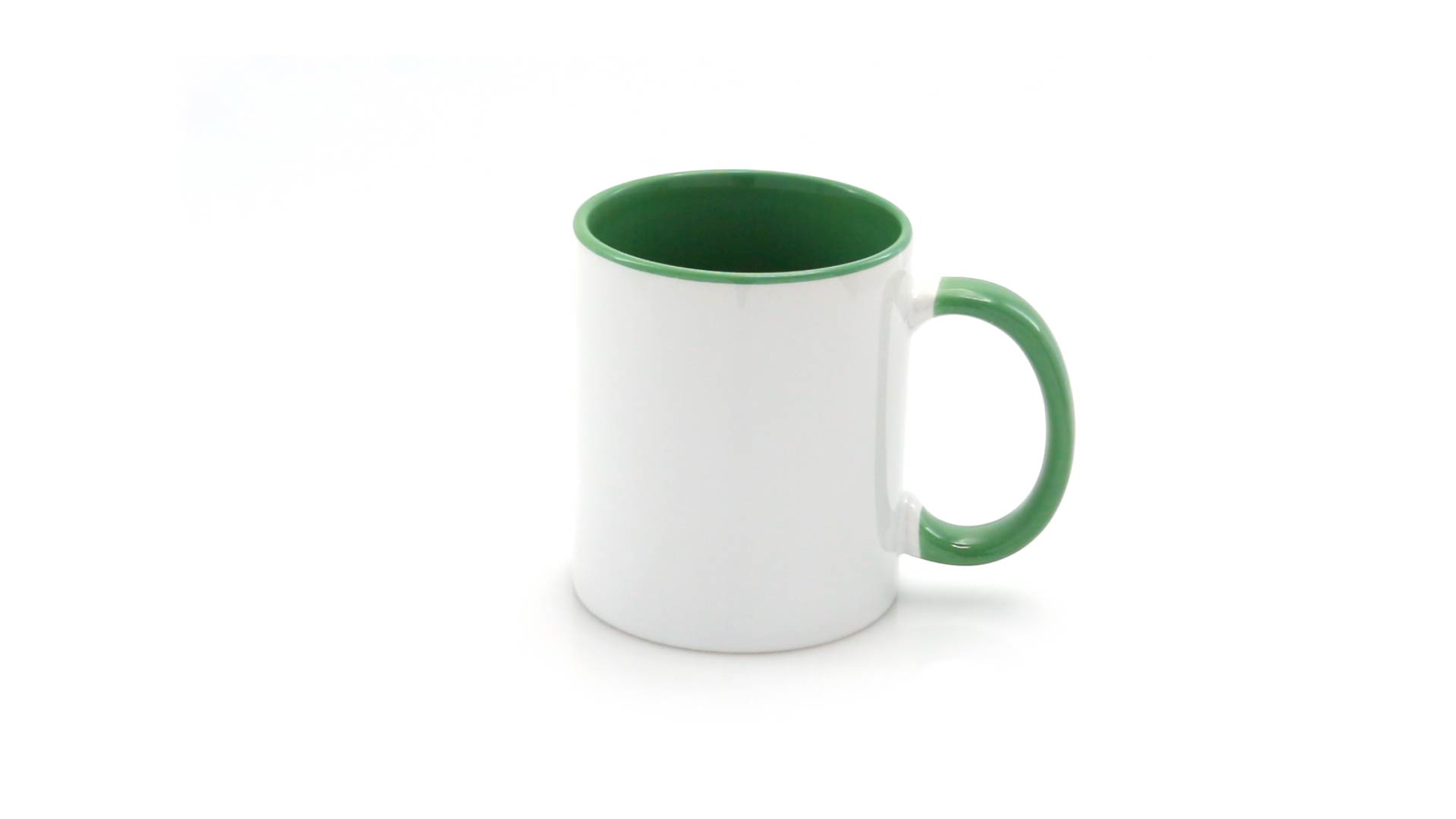 Keramiktasse mit 350 ml Fassungsvermögen. Weisses Aussendesign, das speziell für die Sublimation entwickelt wurde, um alle Arten von Designs in voller Farbe übertragen zu können, und mit einem originellen Griff und einer Innenseite in leuchtenden Farben. Jede Tasse wird in einer individuellen Kraftbox geliefert.