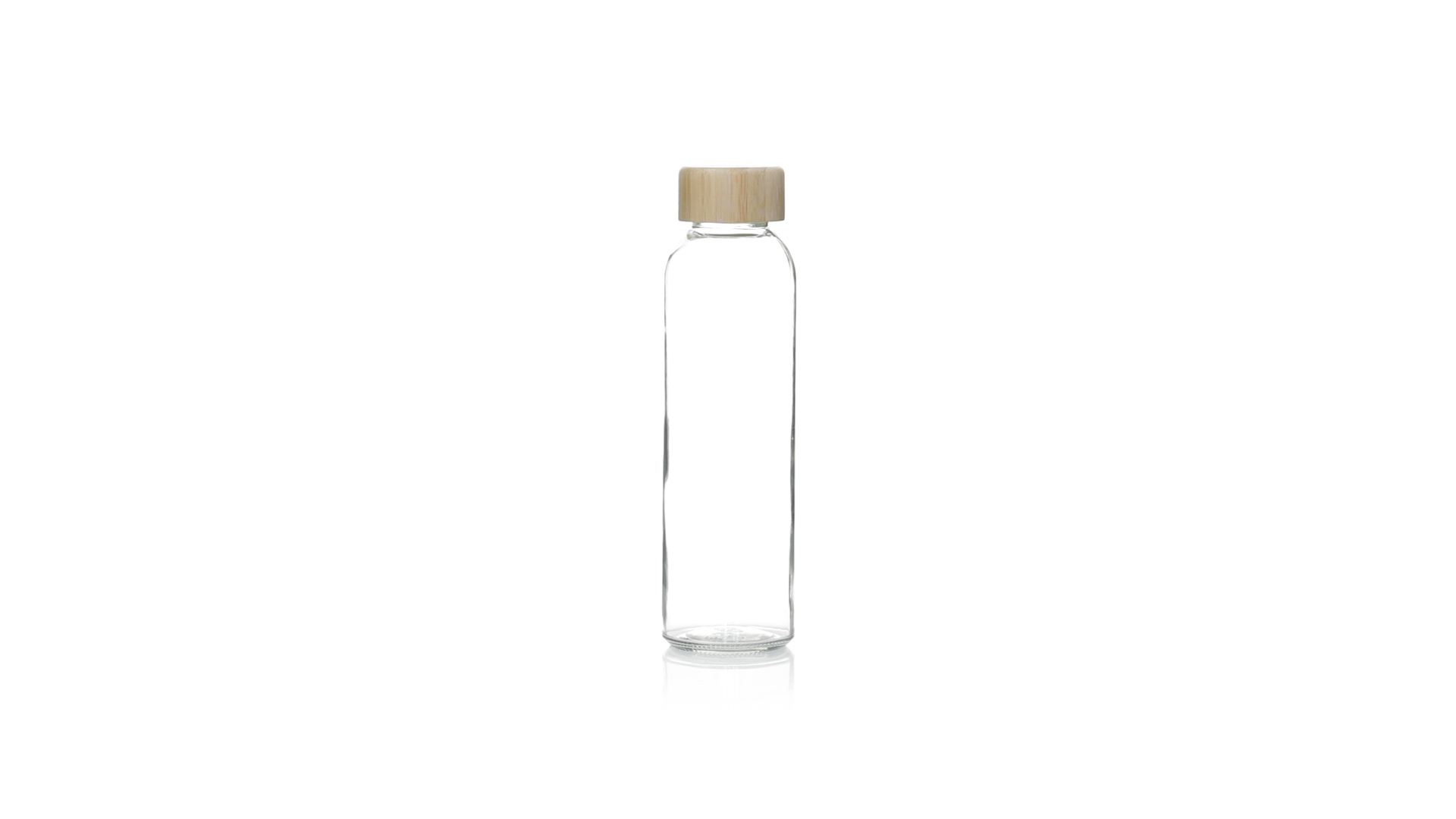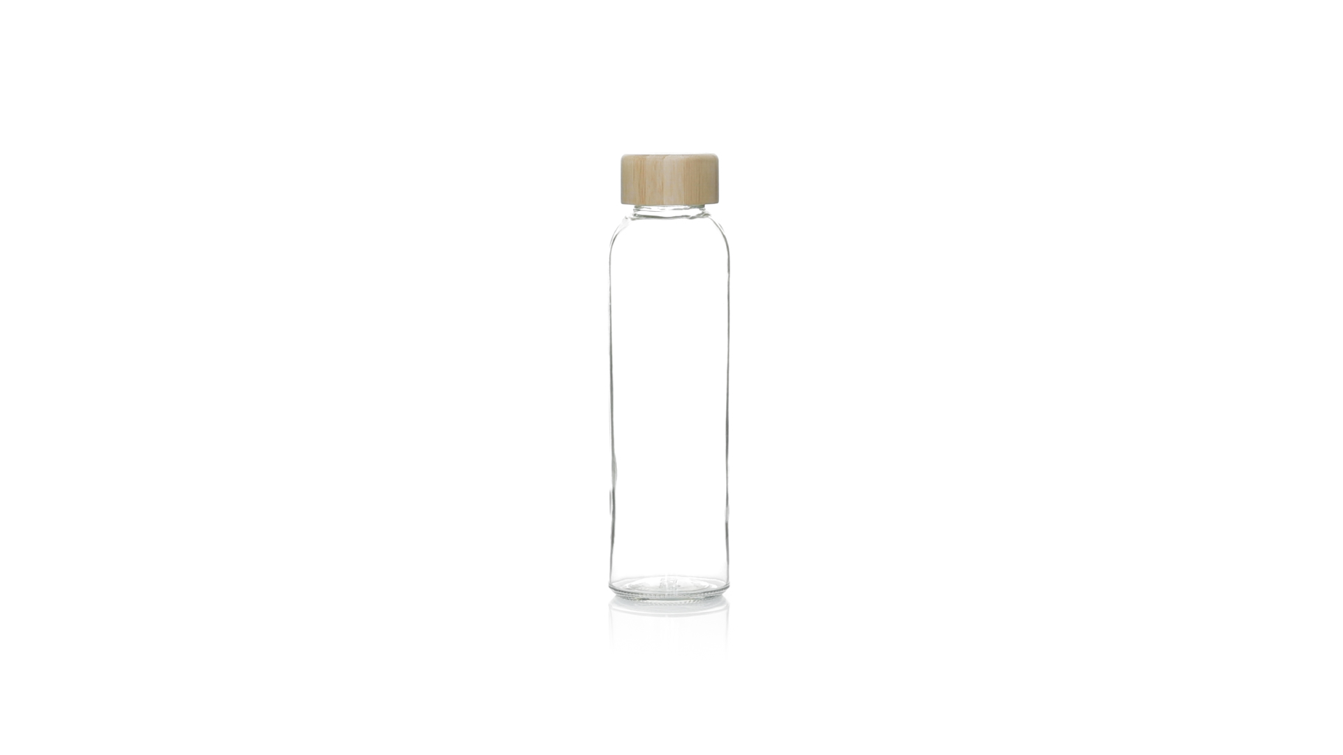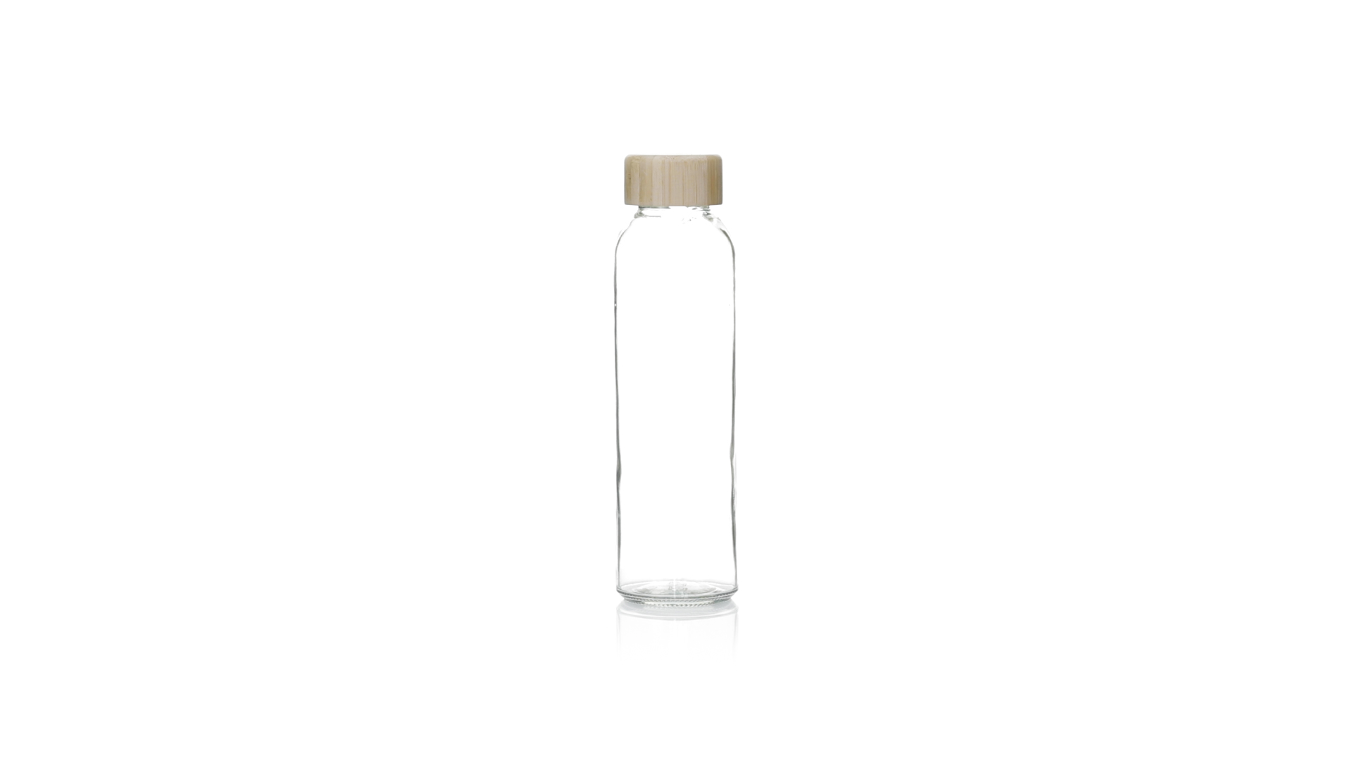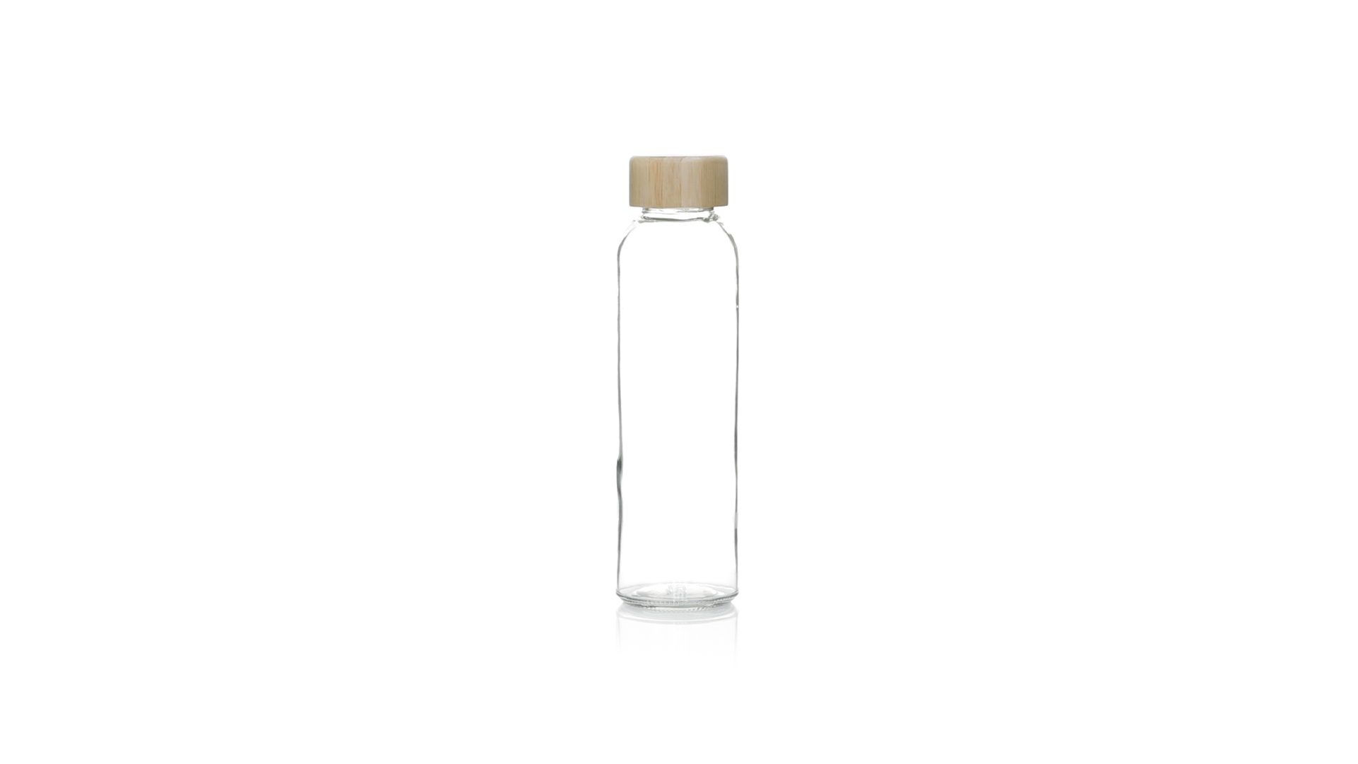 Transparente Glasflasche, 500 ml Fassungsvermögen und Bambus-Schraubverschluss, BPA-frei. Präsentiert in einer attraktiven Kraft-Design-Box.