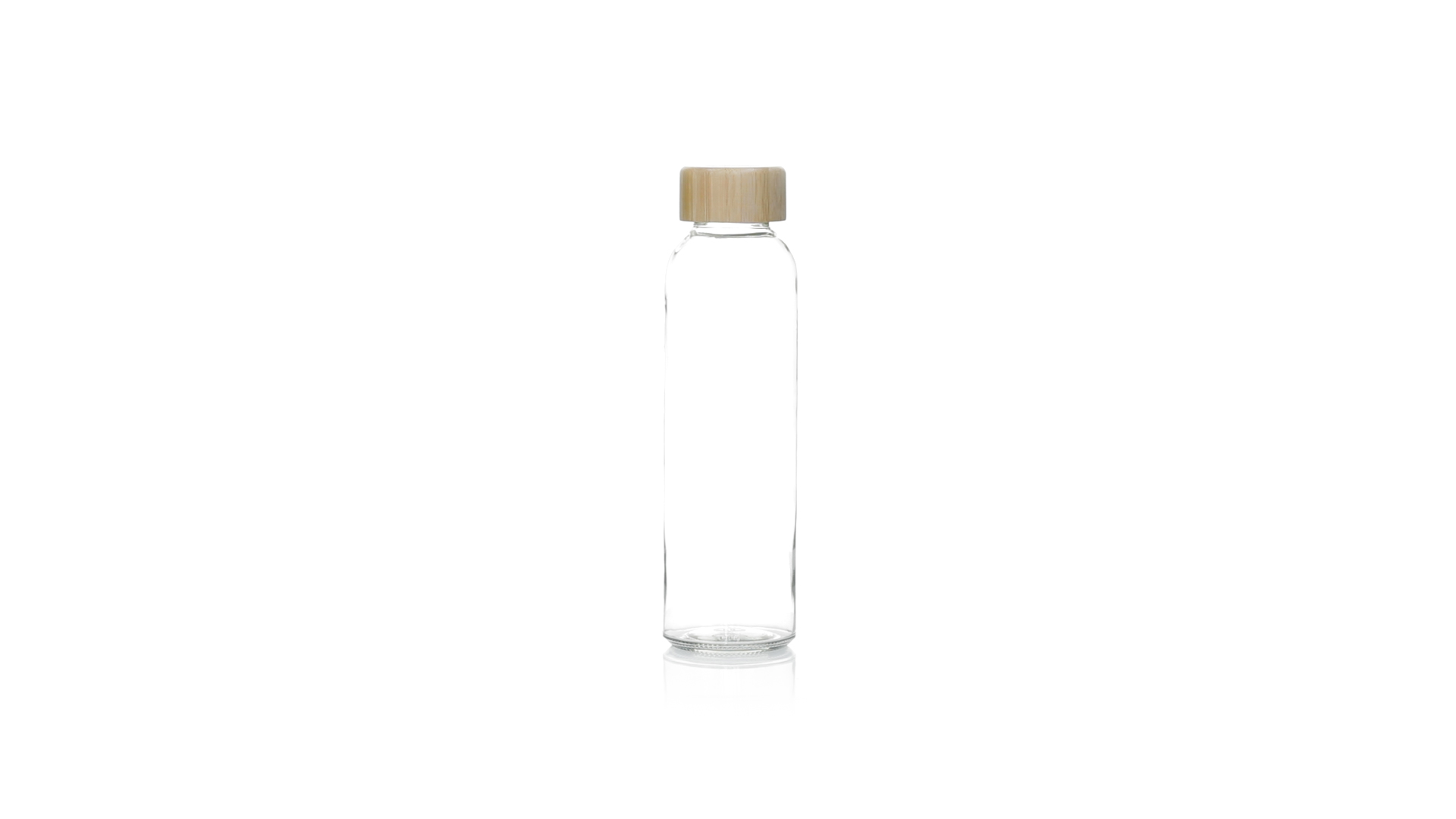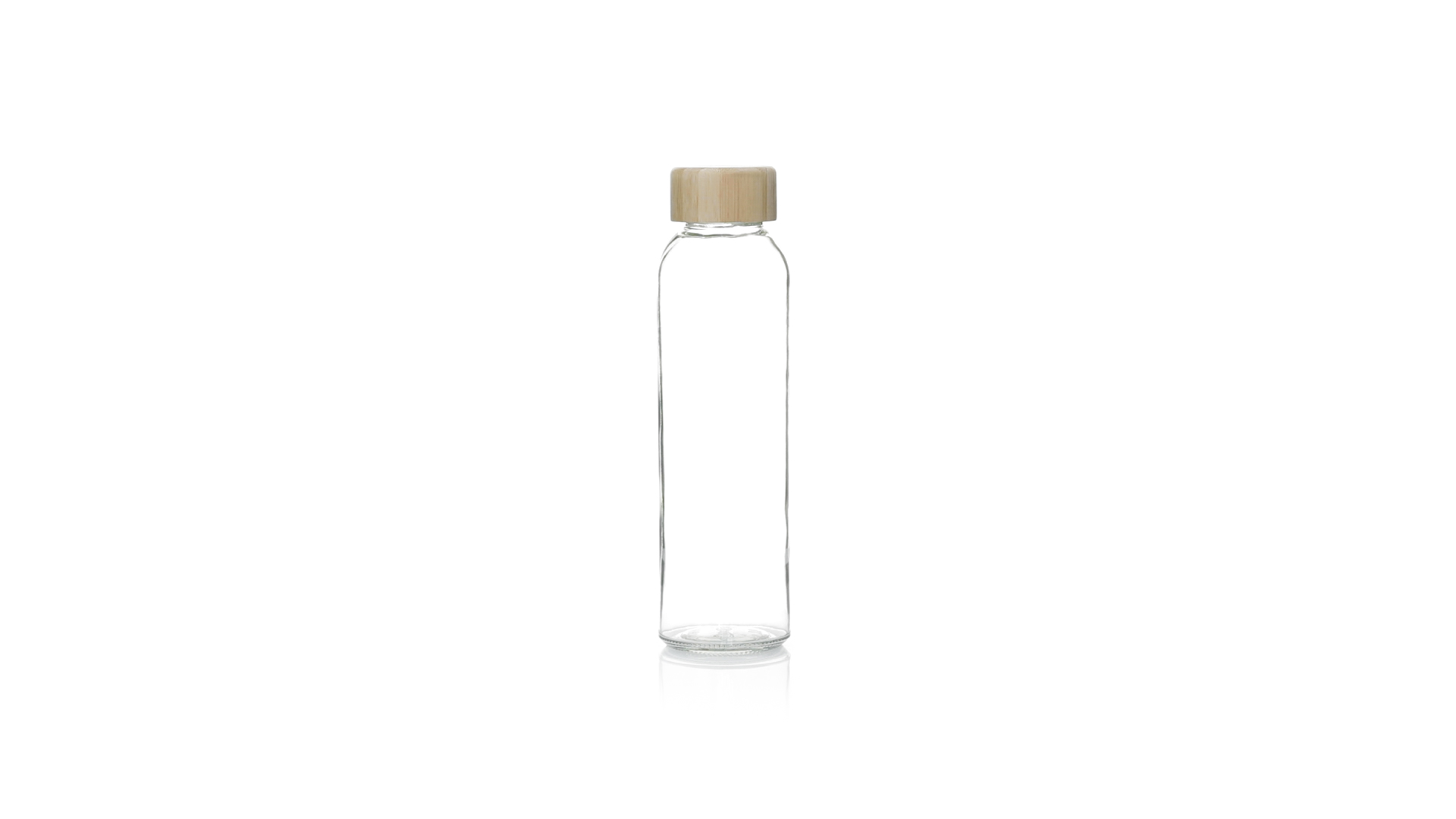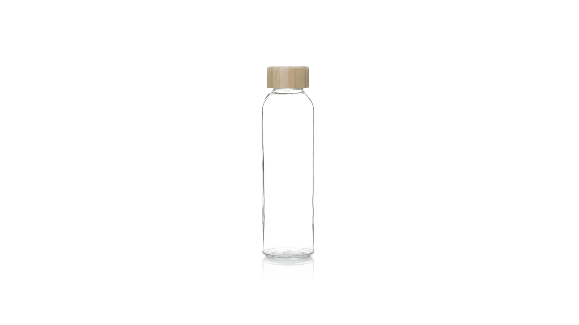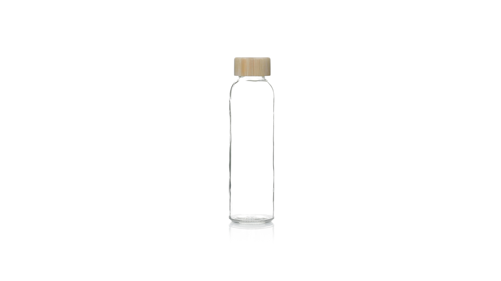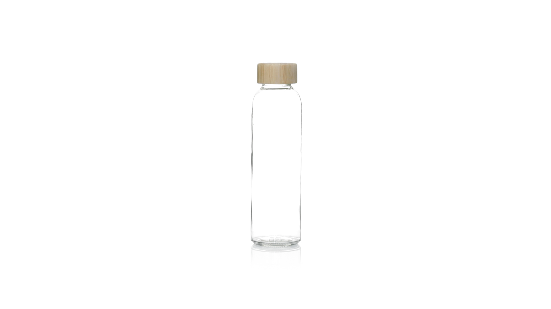 Transparente Glasflasche, 500 ml Fassungsvermögen und Bambus-Schraubverschluss, BPA-frei. Präsentiert in einer attraktiven Kraft-Design-Box.
