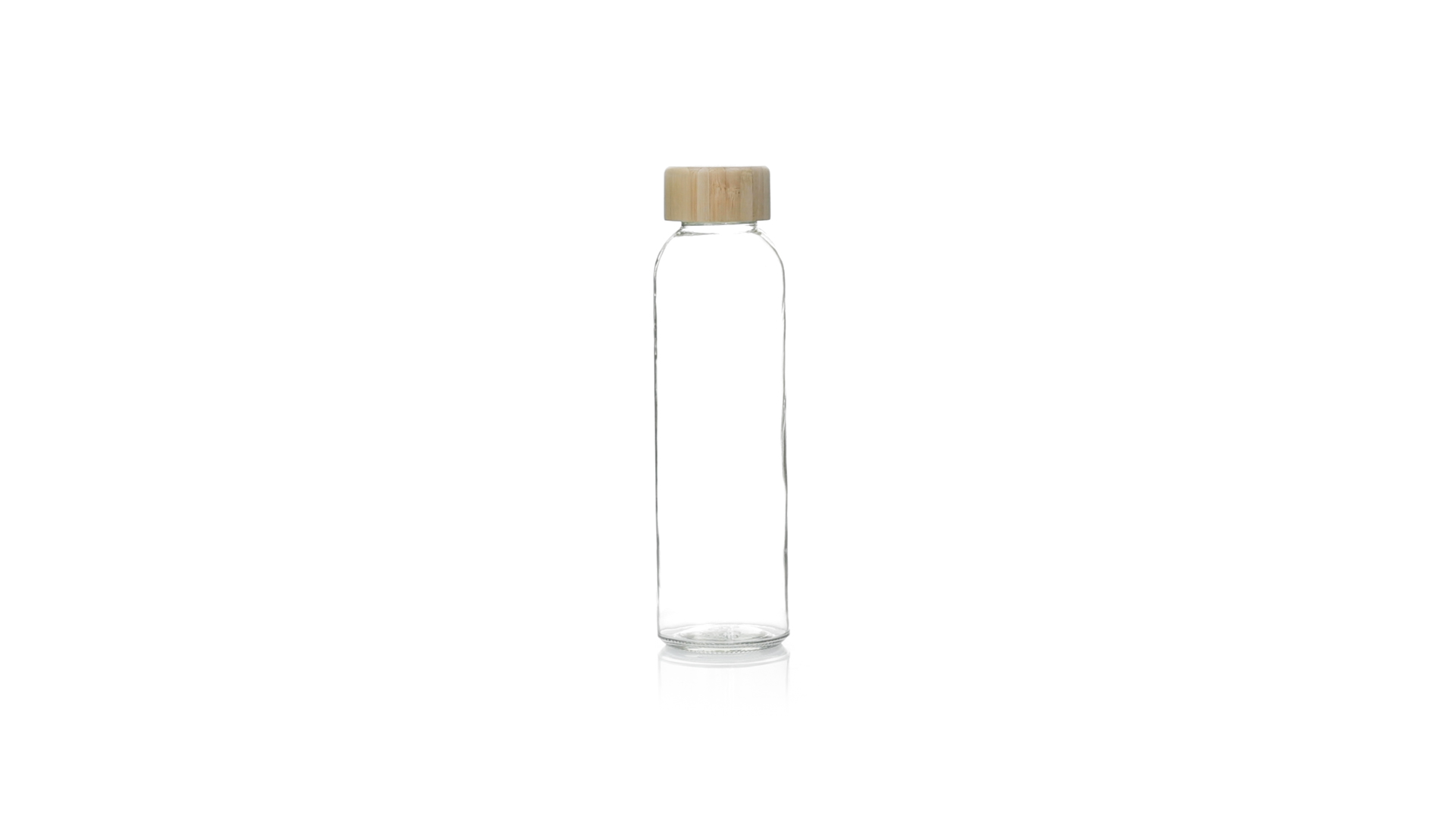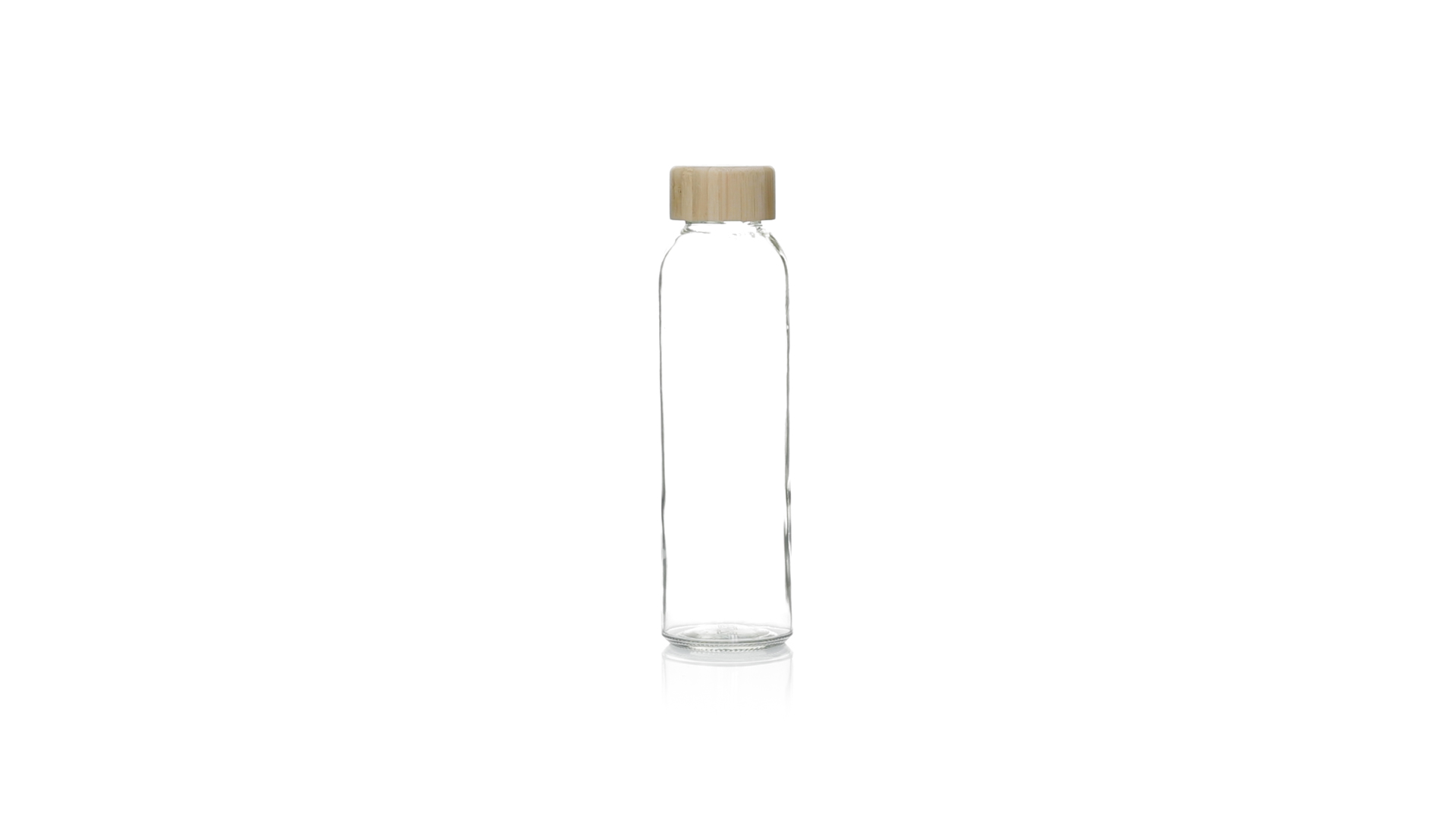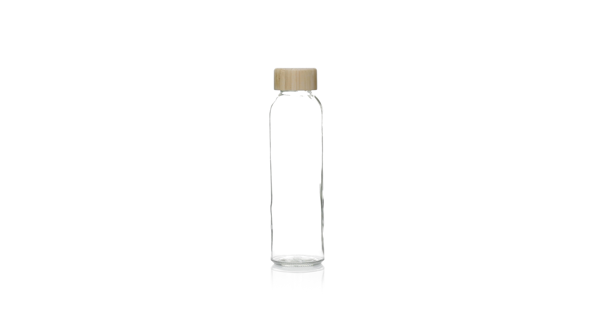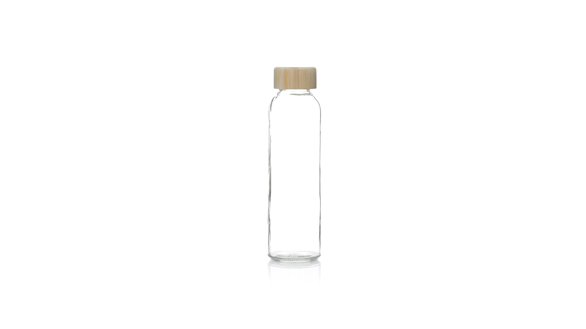 Transparente Glasflasche, 500 ml Fassungsvermögen und Bambus-Schraubverschluss, BPA-frei. Präsentiert in einer attraktiven Kraft-Design-Box.