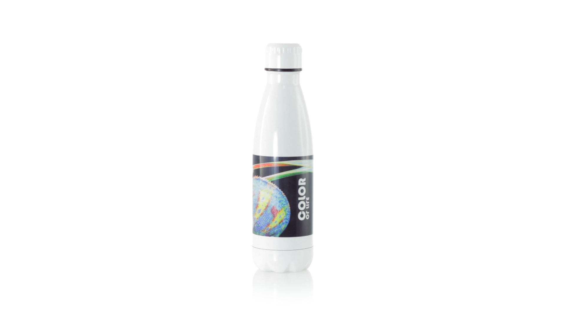 Trinkflasche mit 700 ml Fassungsvermögen. Körper aus Edelstahl in Glänzend Weiss. Mit Sicherheitsverschluss. Präsentiert in einer individuellen, attraktiven Designbox.