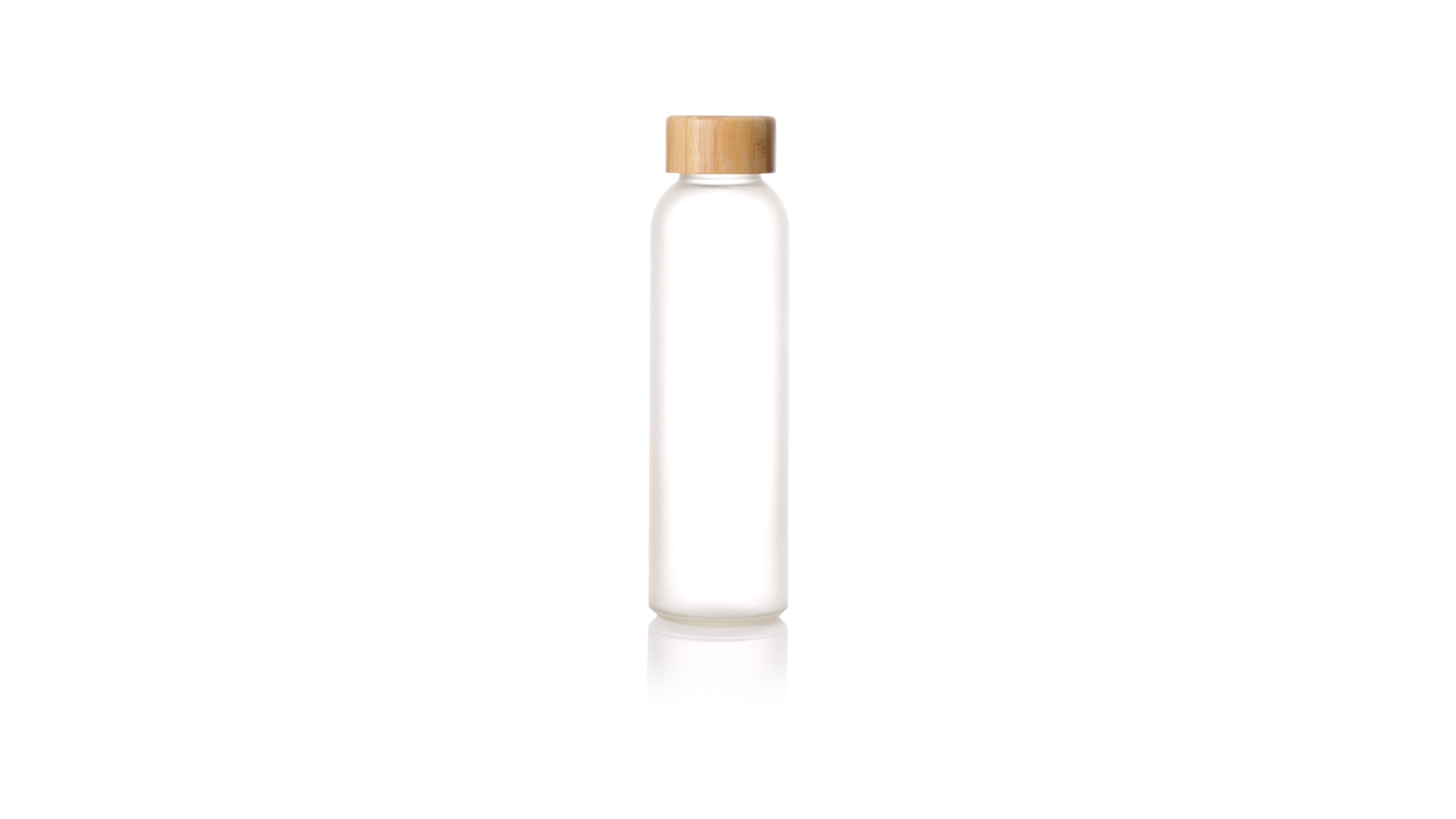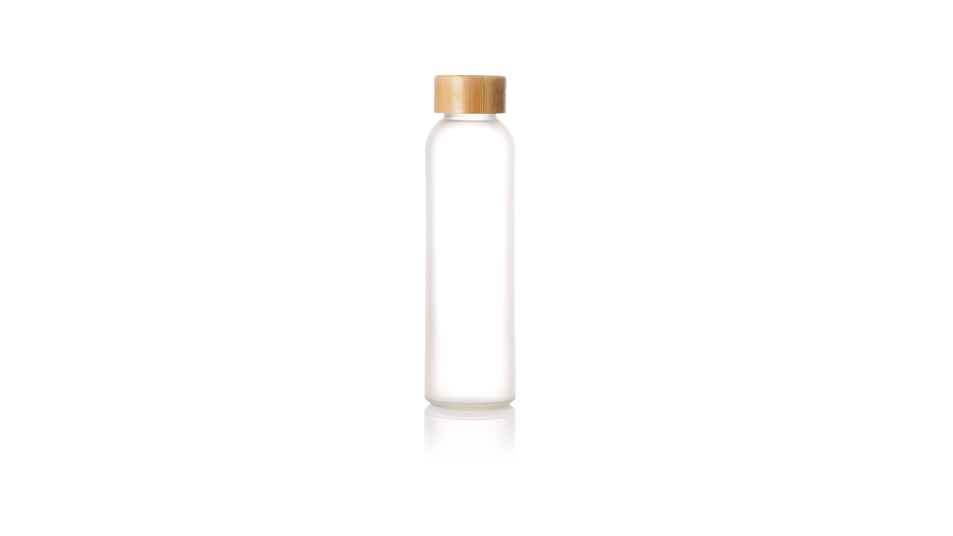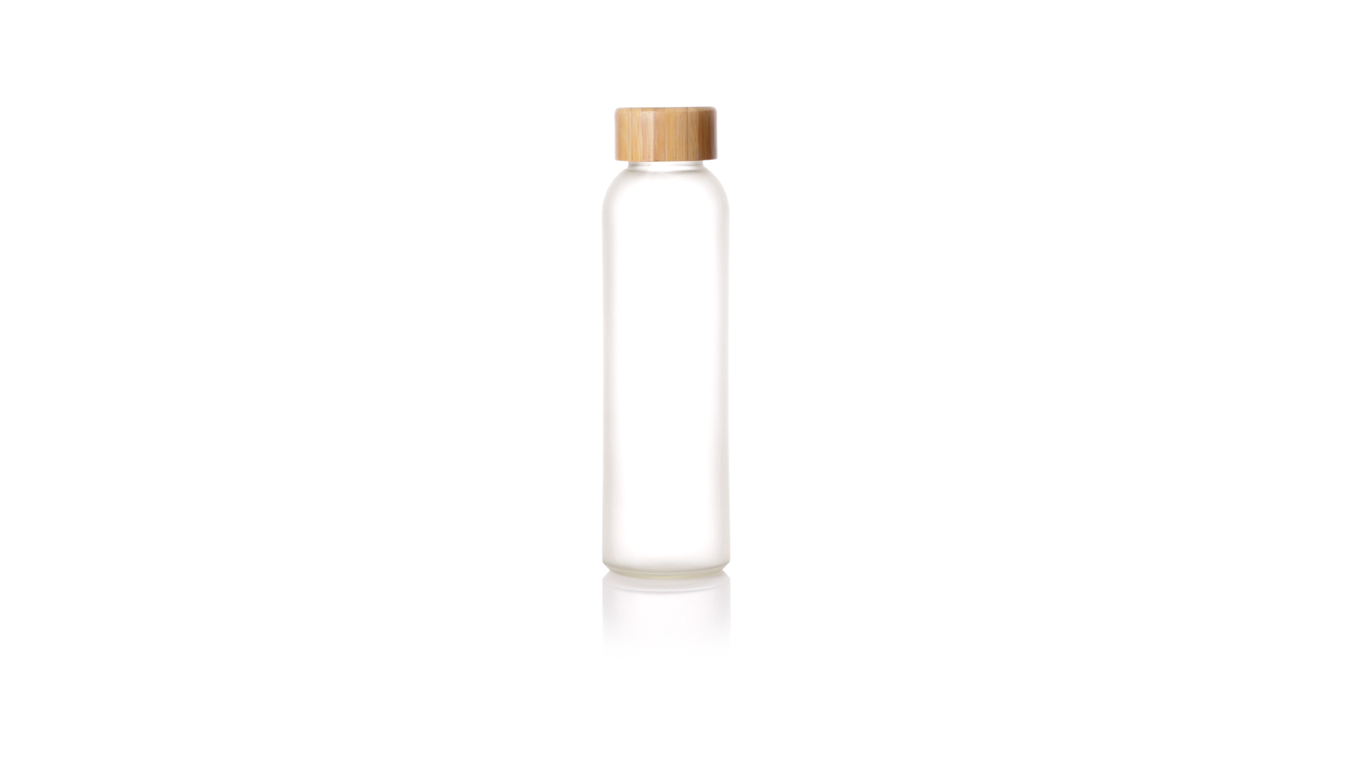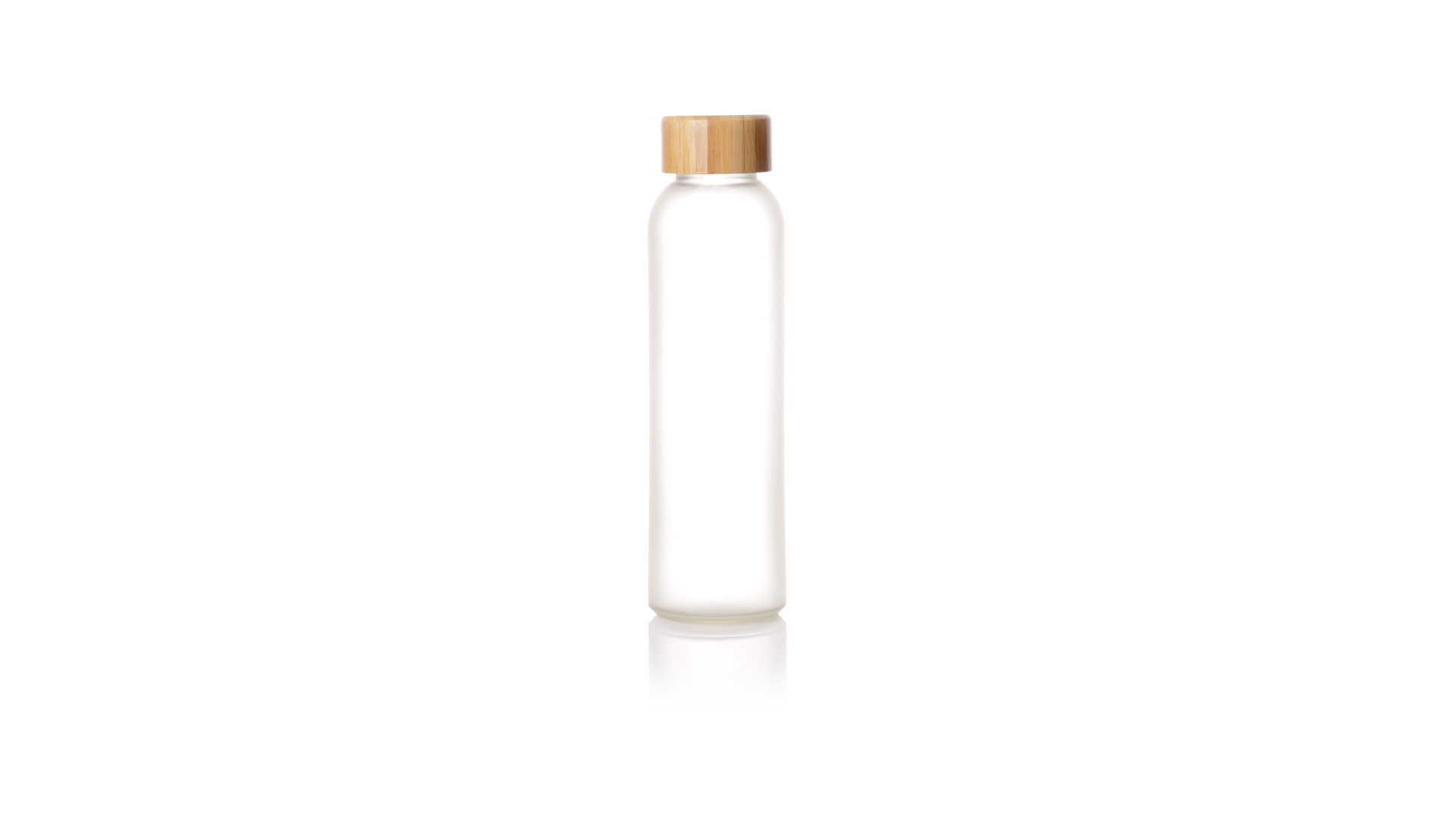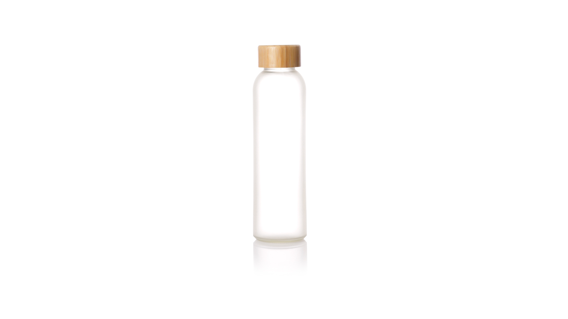 Flasche aus der Nature-Linie mit einem Fassungsvermögen von 500 ml, speziell hergestellt für den Sublimationsdruck. Körper aus Glas, mit Schraubverschluss aus Bambus und BPA-frei. Präsentiert in einer individuellen Ökodesign-Box.