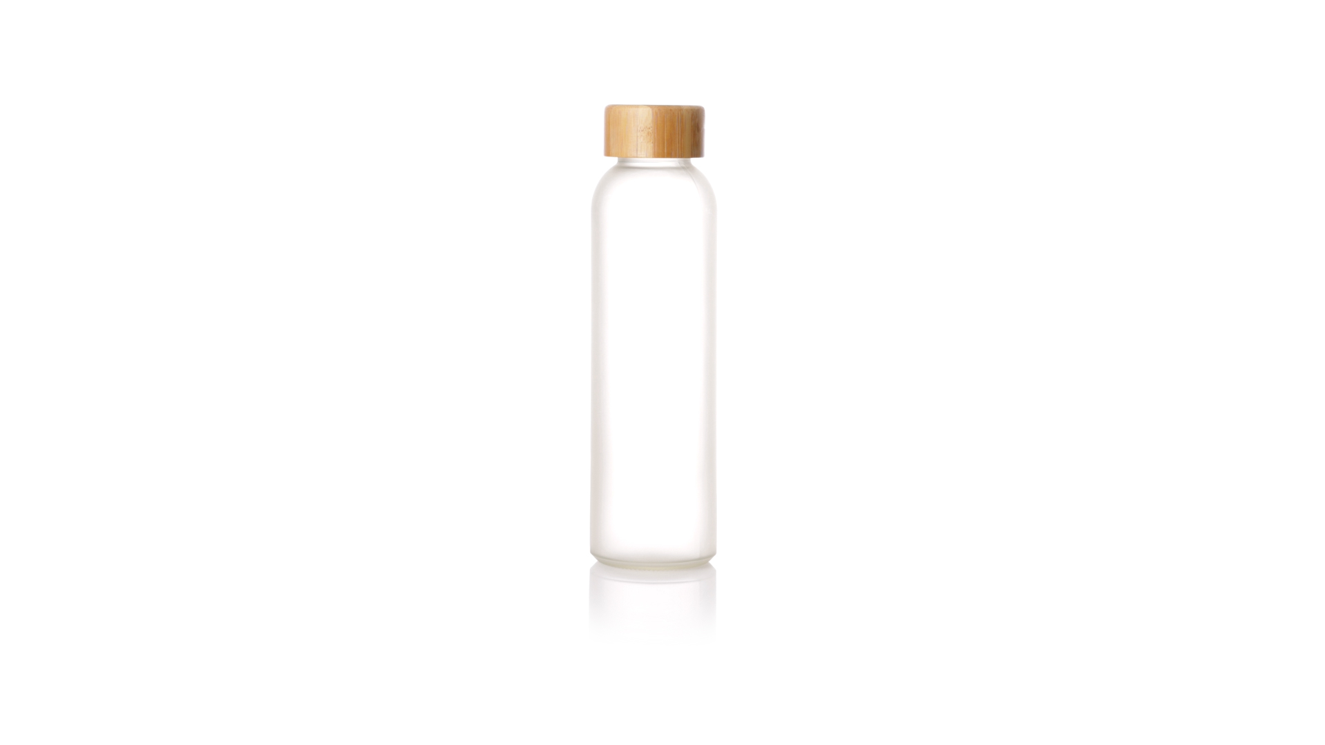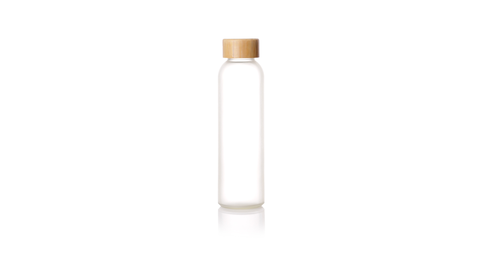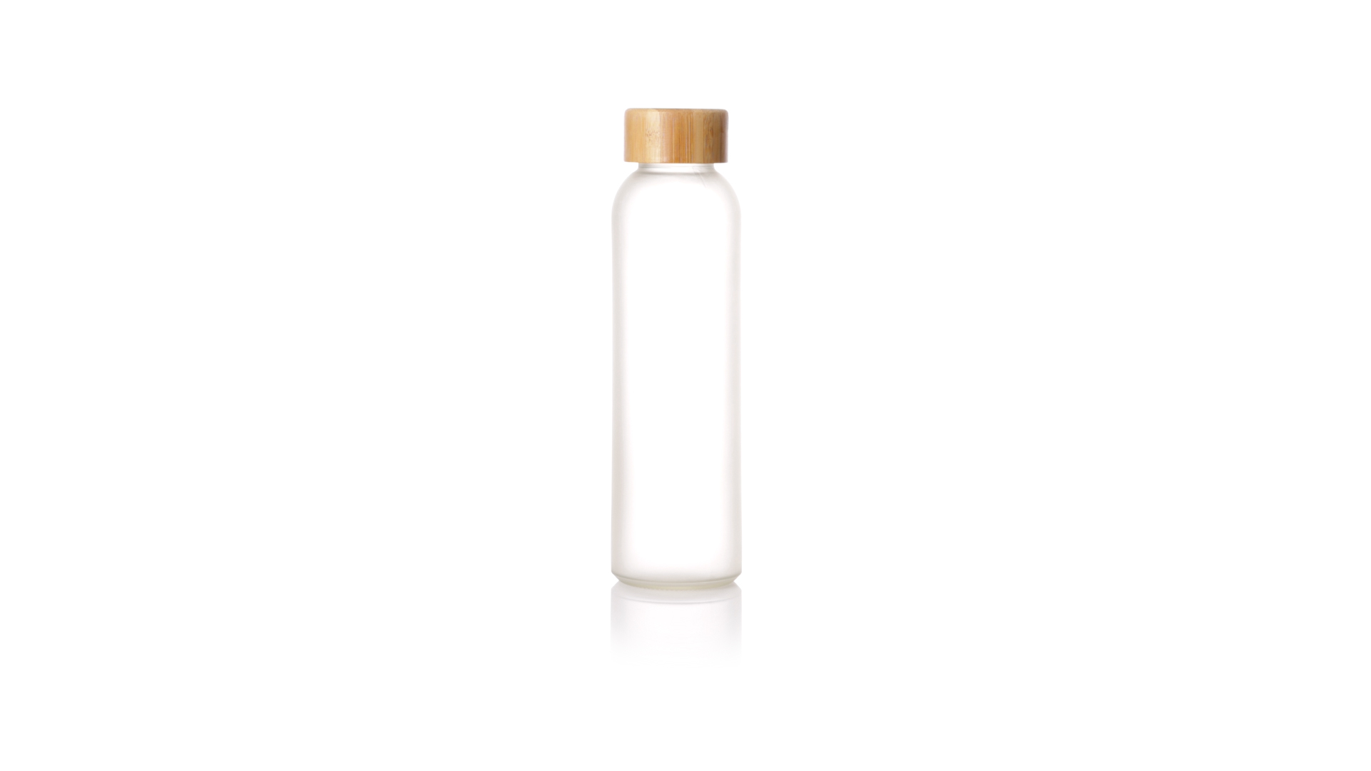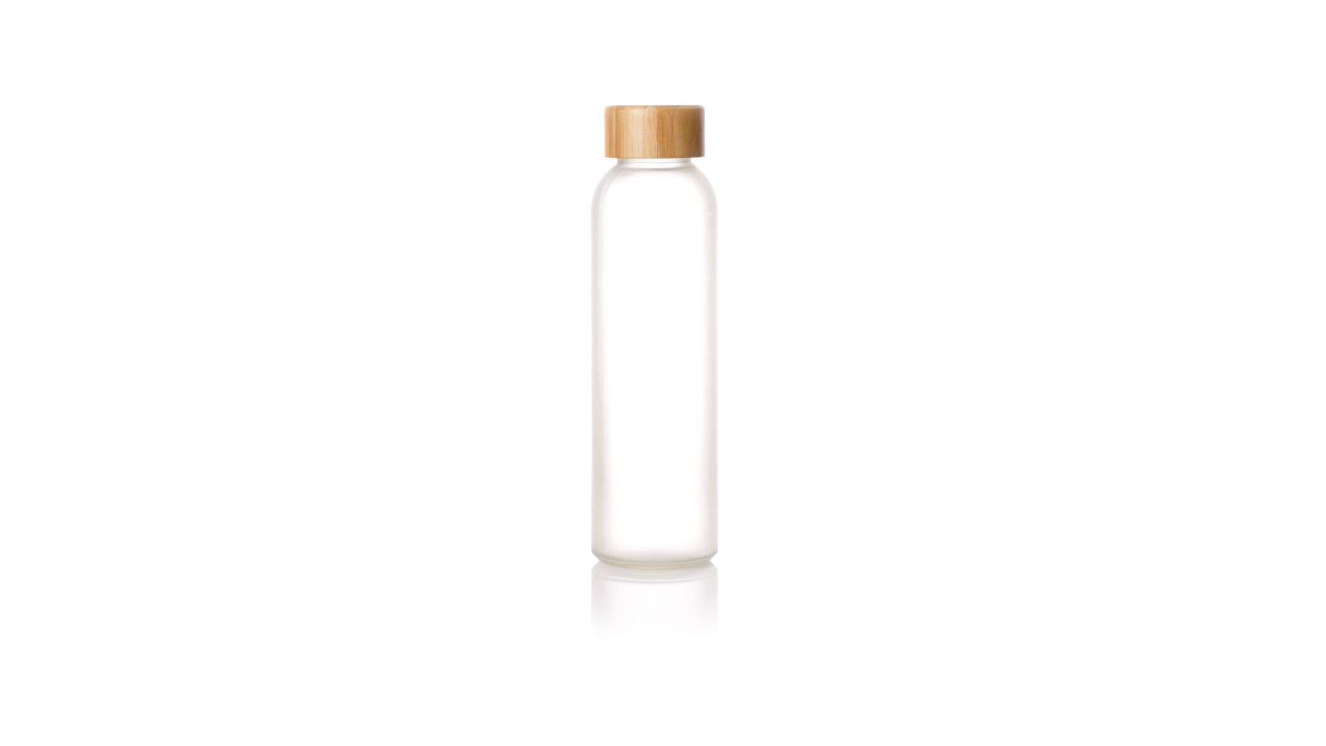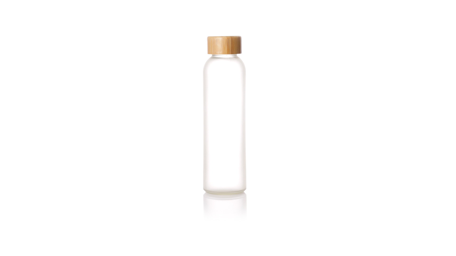 Flasche aus der Nature-Linie mit einem Fassungsvermögen von 500 ml, speziell hergestellt für den Sublimationsdruck. Körper aus Glas, mit Schraubverschluss aus Bambus und BPA-frei. Präsentiert in einer individuellen Ökodesign-Box.