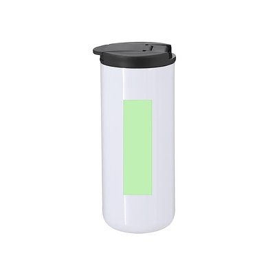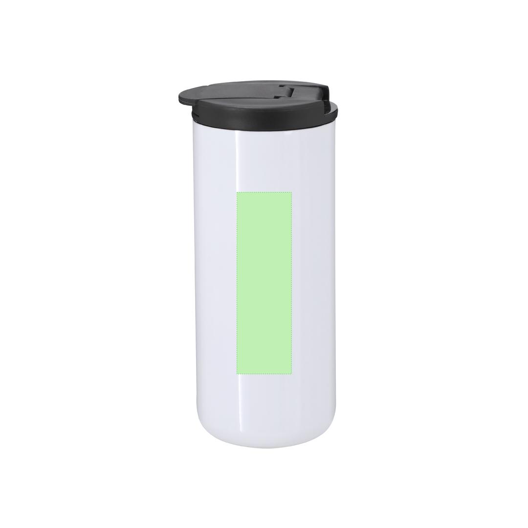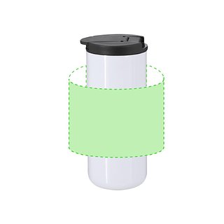 Thermobecher aus doppelwandigem Edelstahl mit 370 ml Fassungsvermögen. Speziell entworfen für Sublimationsdruck, glänzendes Weiss. Ausgestattet mit einem Dosierer auf dem Deckel in Schwarz, der Leckagen verhindert und BPA-frei ist.