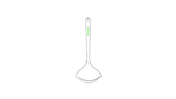Schöpfkelle in verschiedenen lebendigen Farben. Mit langem Griff und ein Loch zum Aufhängen.