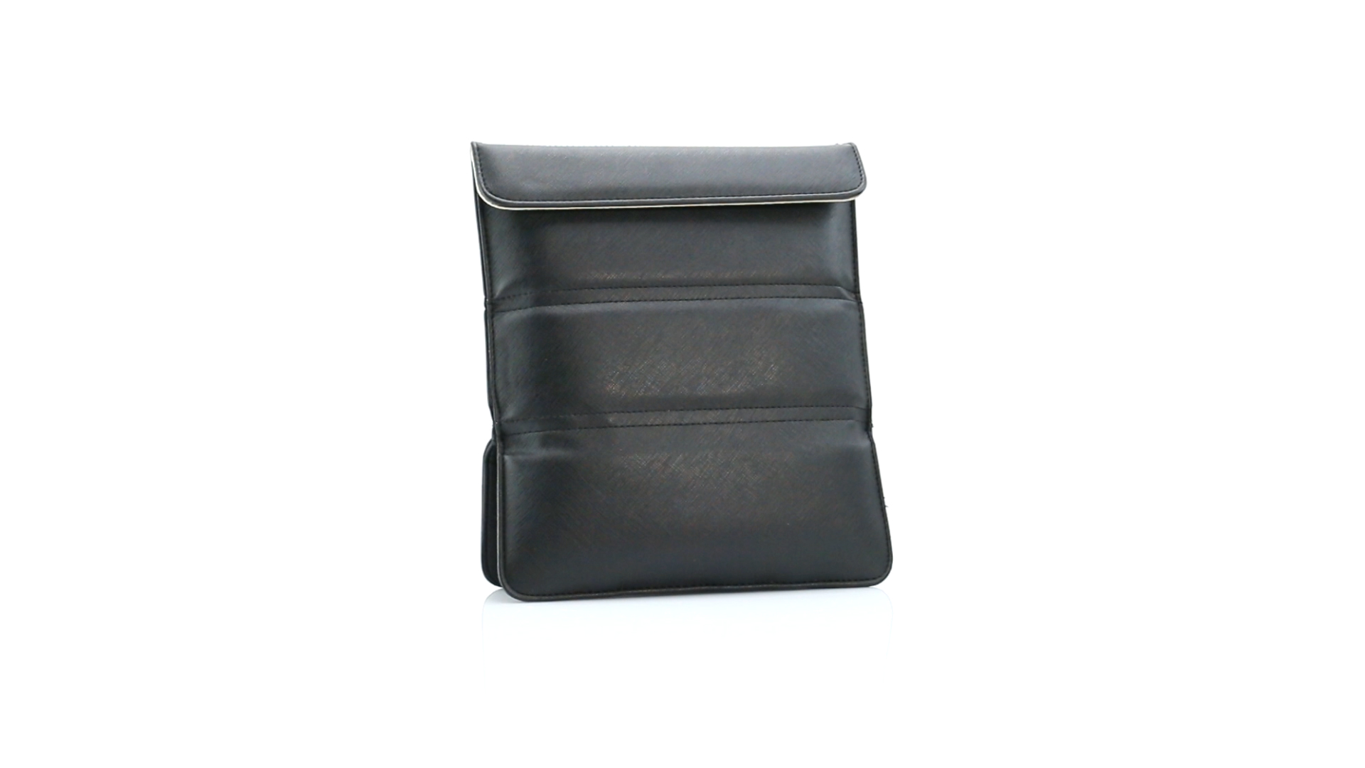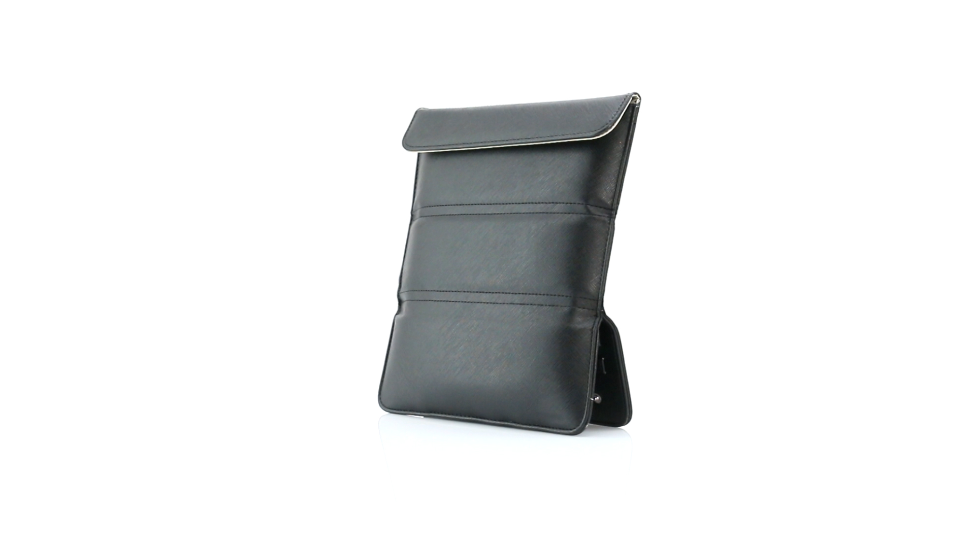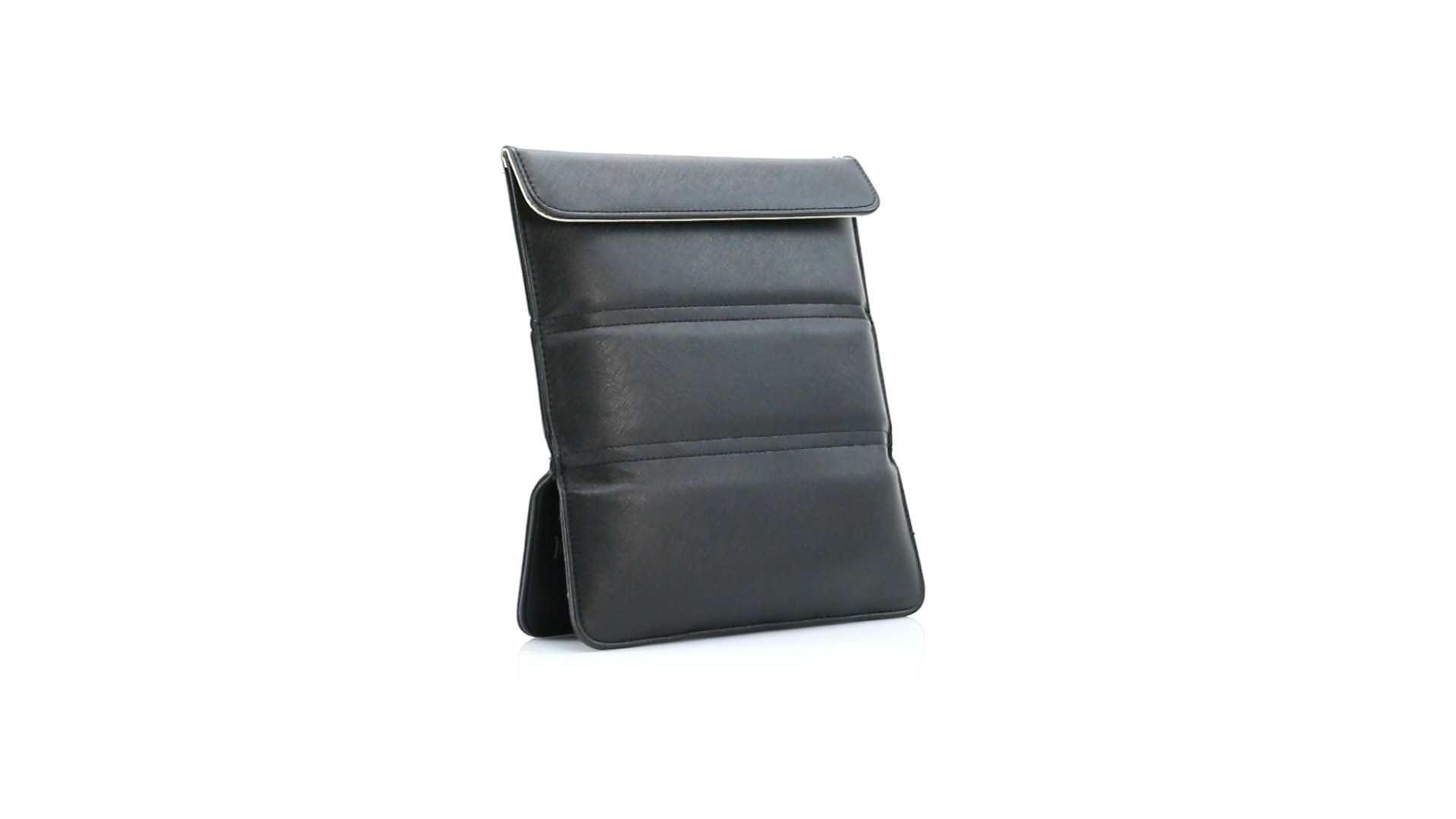 Originelle Schutzhülle aus weichem Kunstleder für Tablets von bis zu 10 Zoll. Nutzbar als Tablet-Support in zwei verschiedenen Positionen - je nach Faltung. Mit zwei Druckknöpfen und praktischem, verstellbarem Schultergurt.