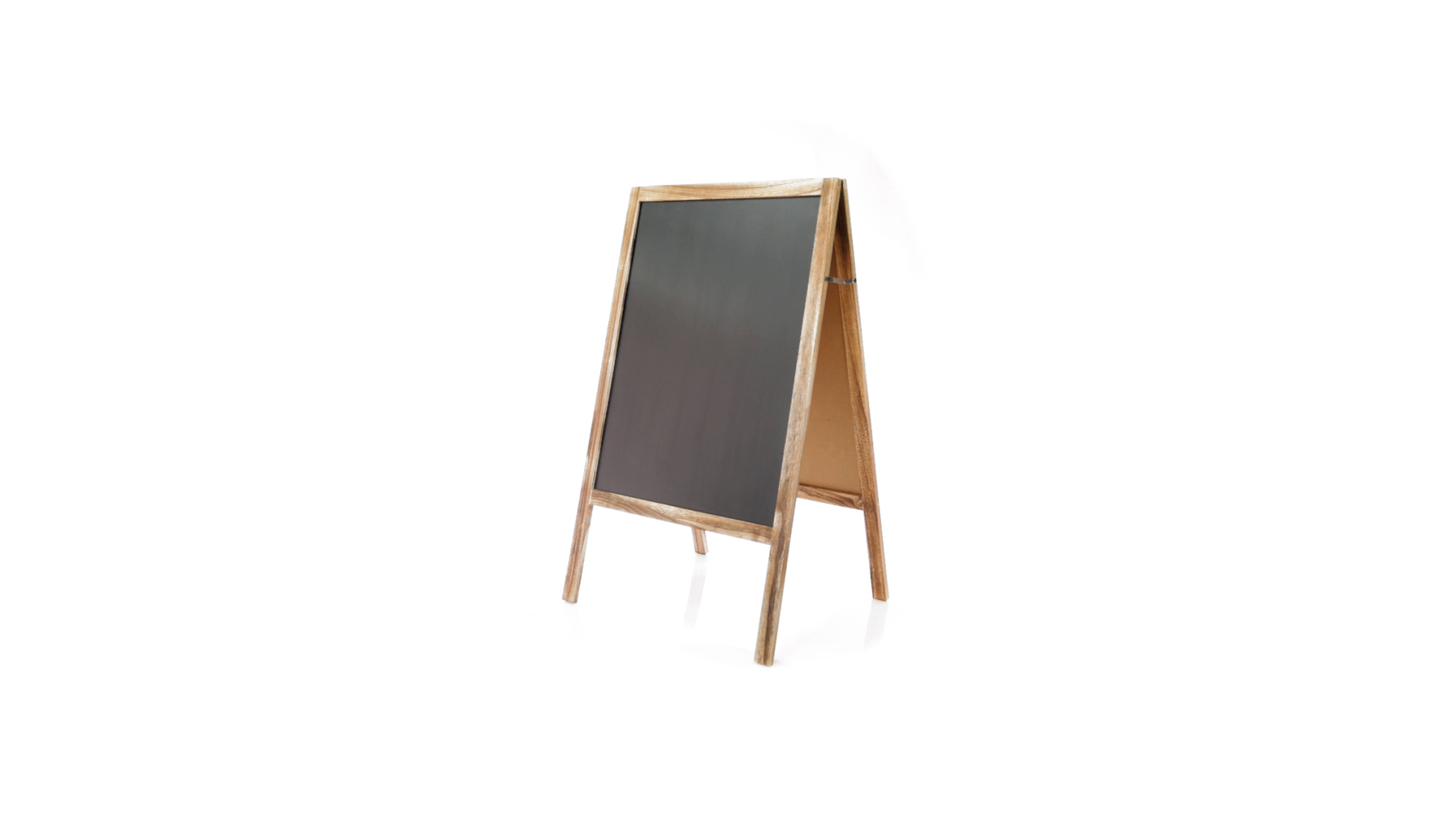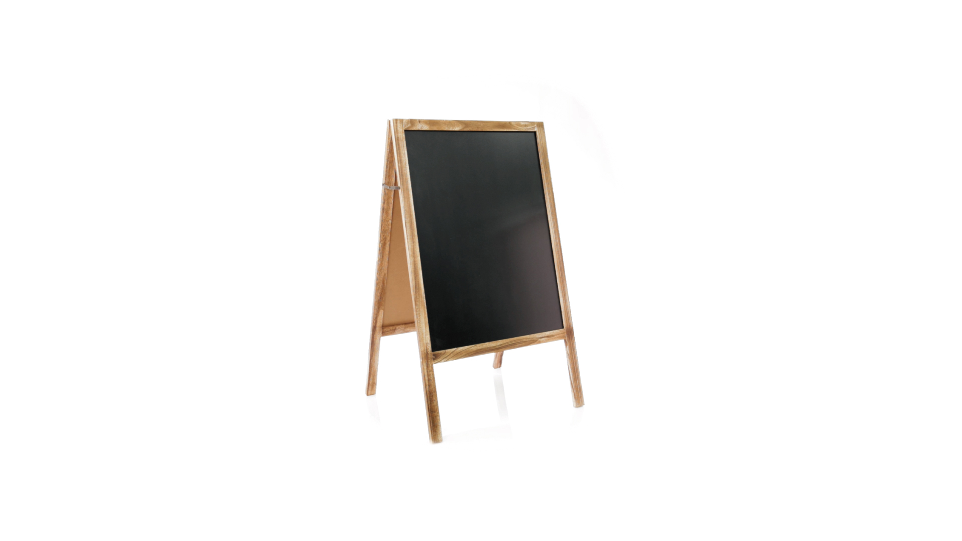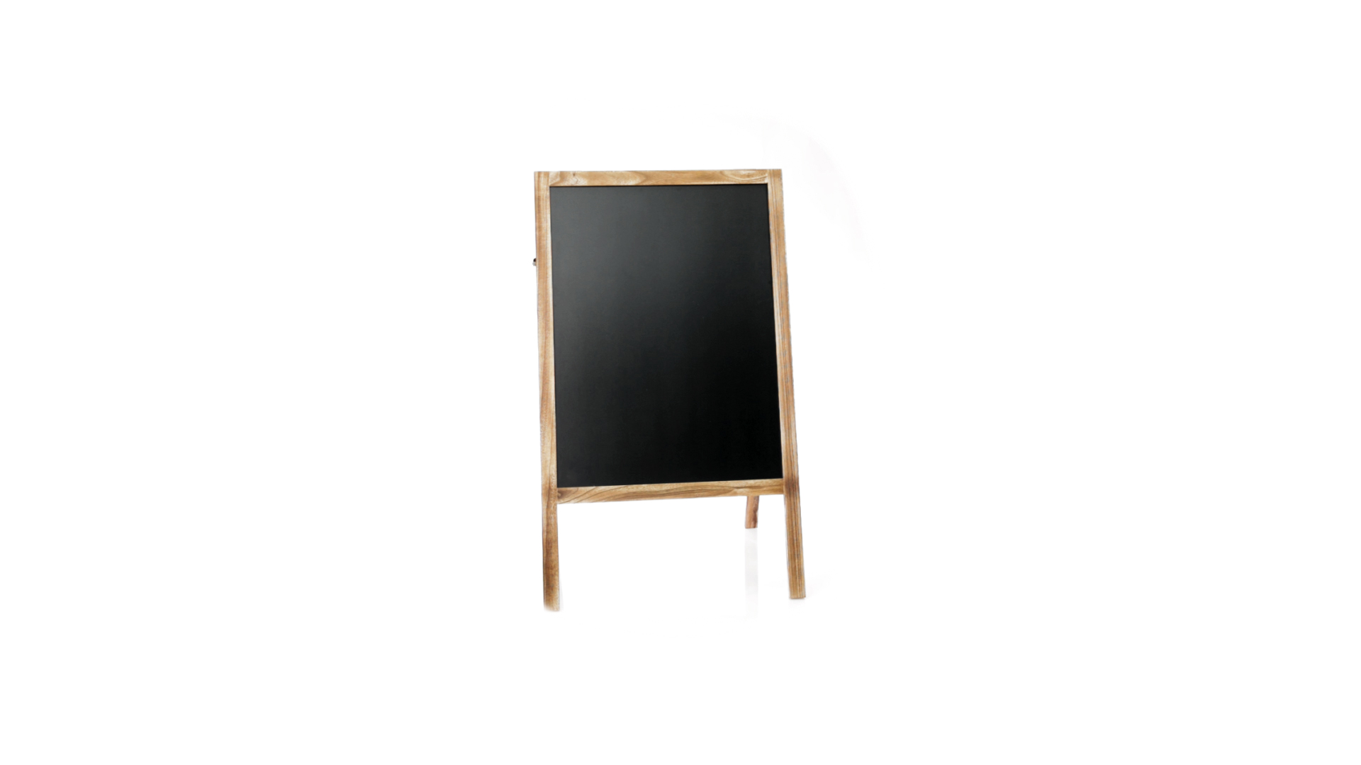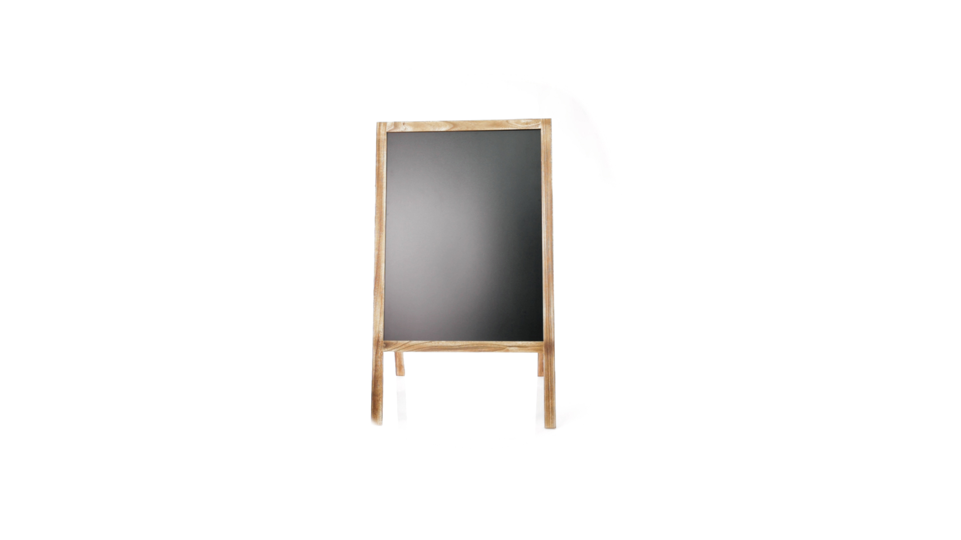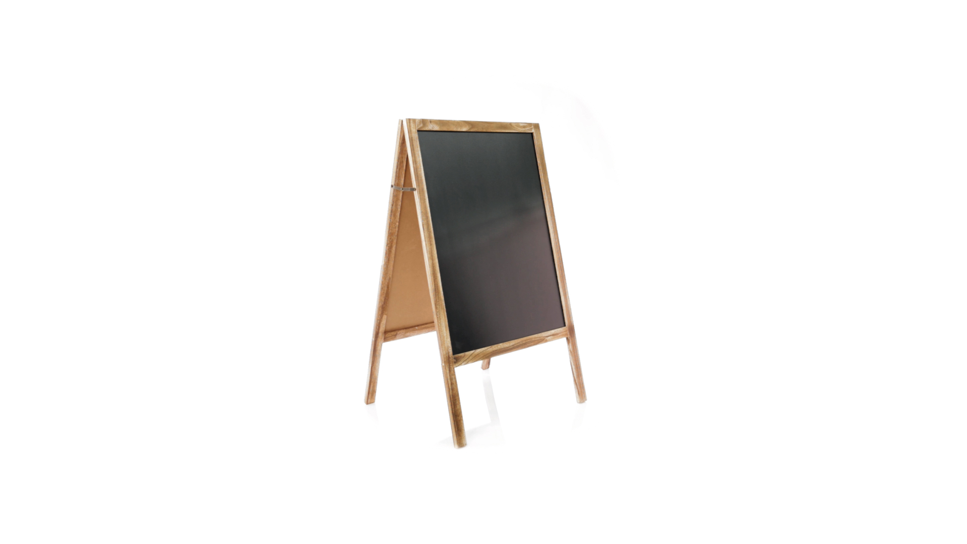 Mehrzwecktafel aus Holz. Passt in jede Umgebung und ist dank der Faltbarkeit leicht zu transportieren. Beidseitig grosse Schreibfläche mit einer Gesamtgrösse von 106 cm Höhe und 59 cm Breite. Präsentiert in einer Kraft-Design-Box.