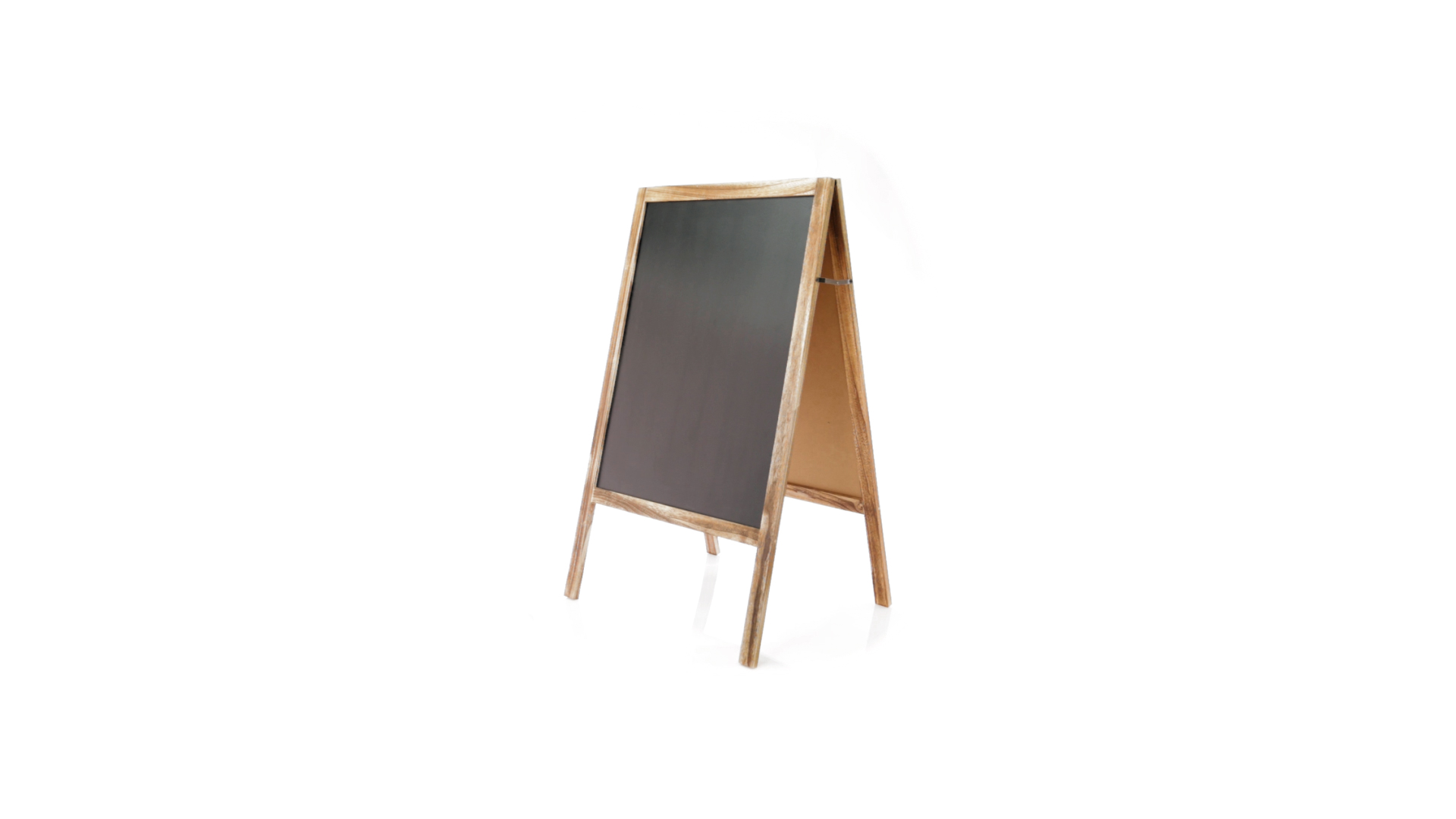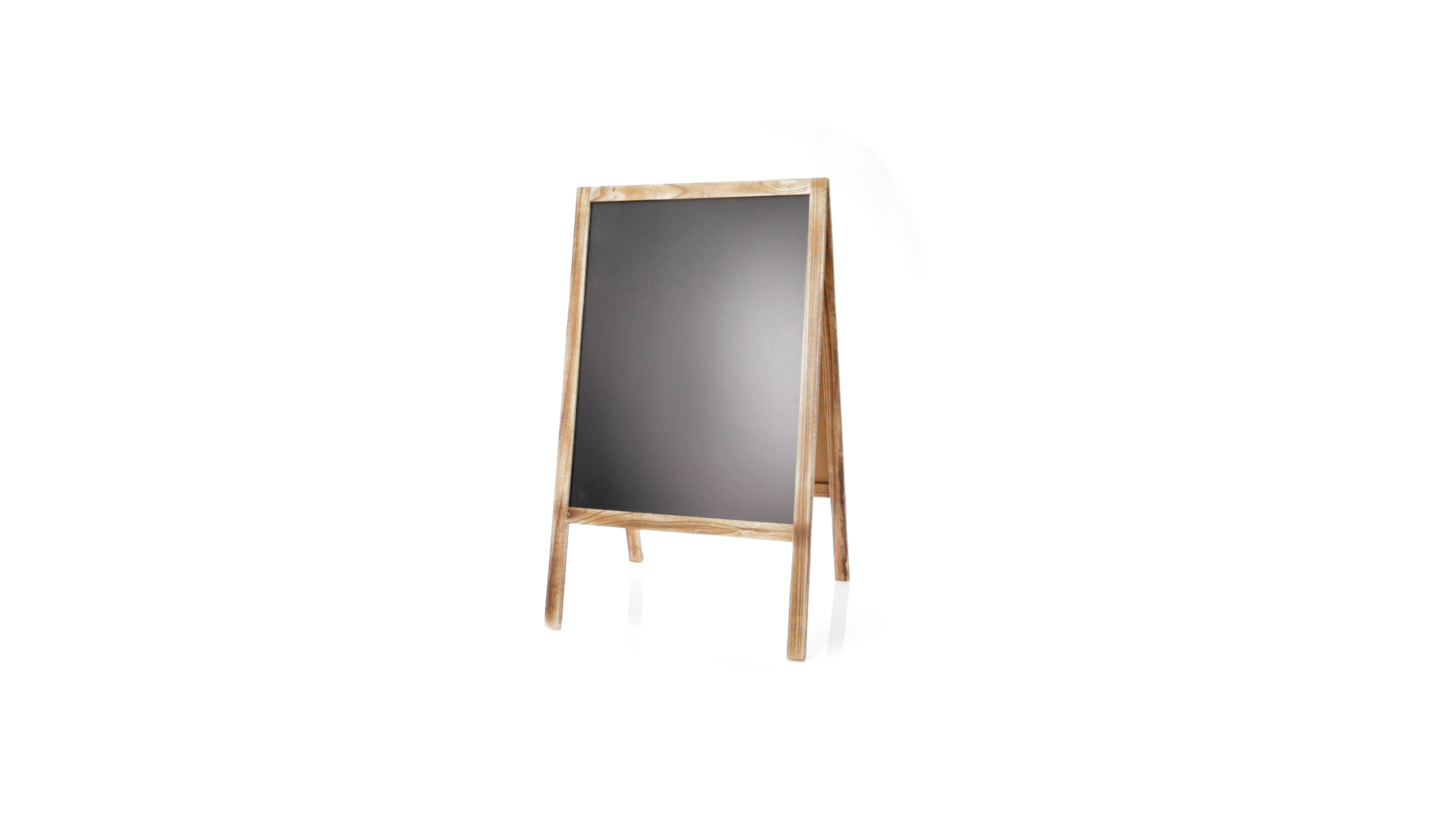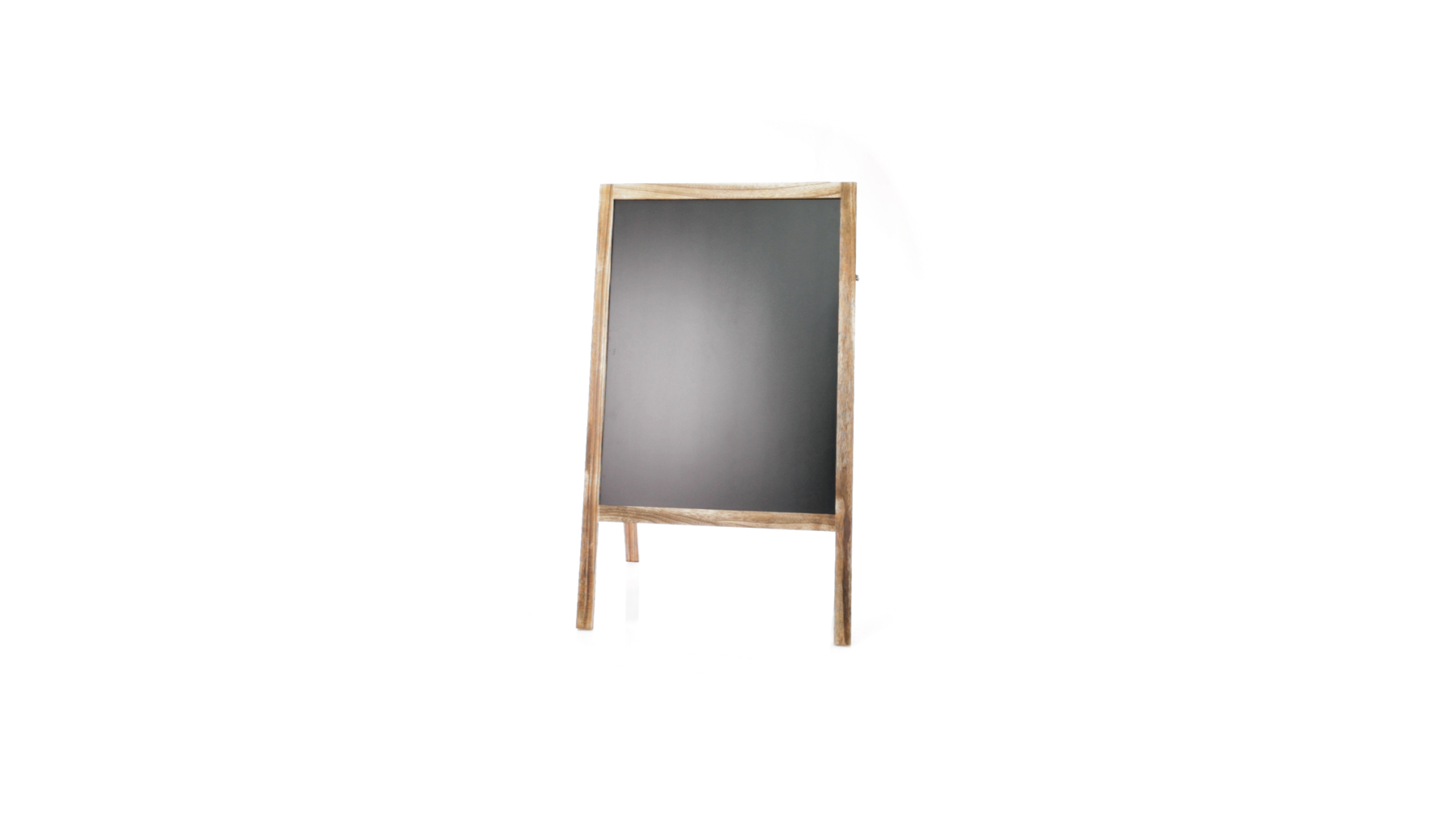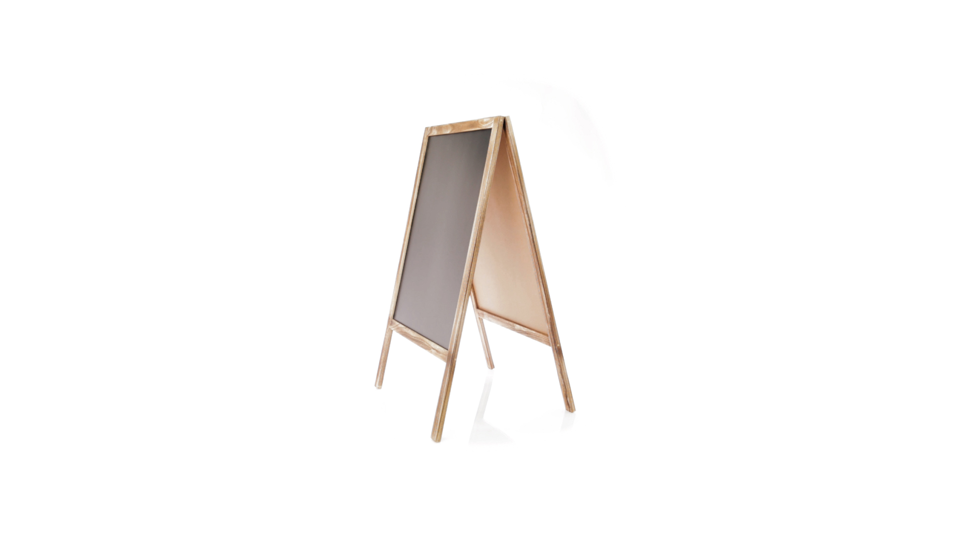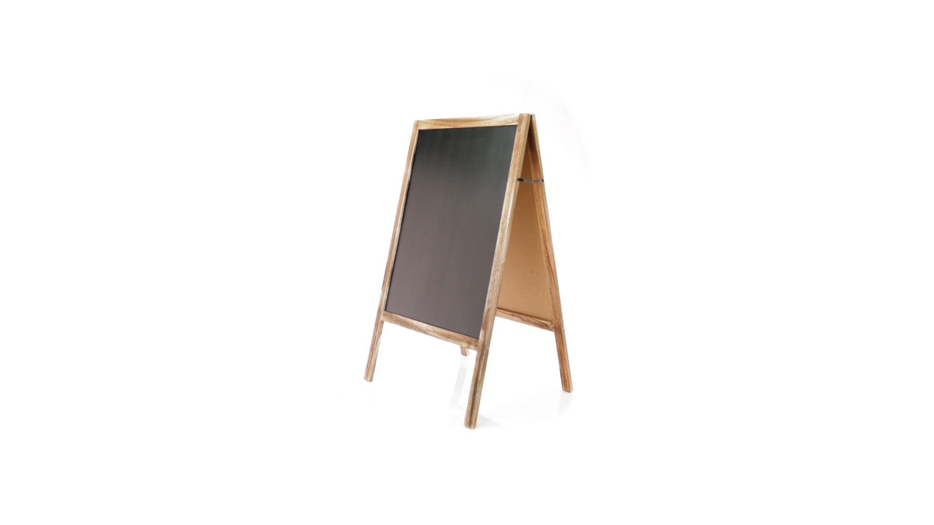 Mehrzwecktafel aus Holz. Passt in jede Umgebung und ist dank der Faltbarkeit leicht zu transportieren. Beidseitig grosse Schreibfläche mit einer Gesamtgrösse von 106 cm Höhe und 59 cm Breite. Präsentiert in einer Kraft-Design-Box.