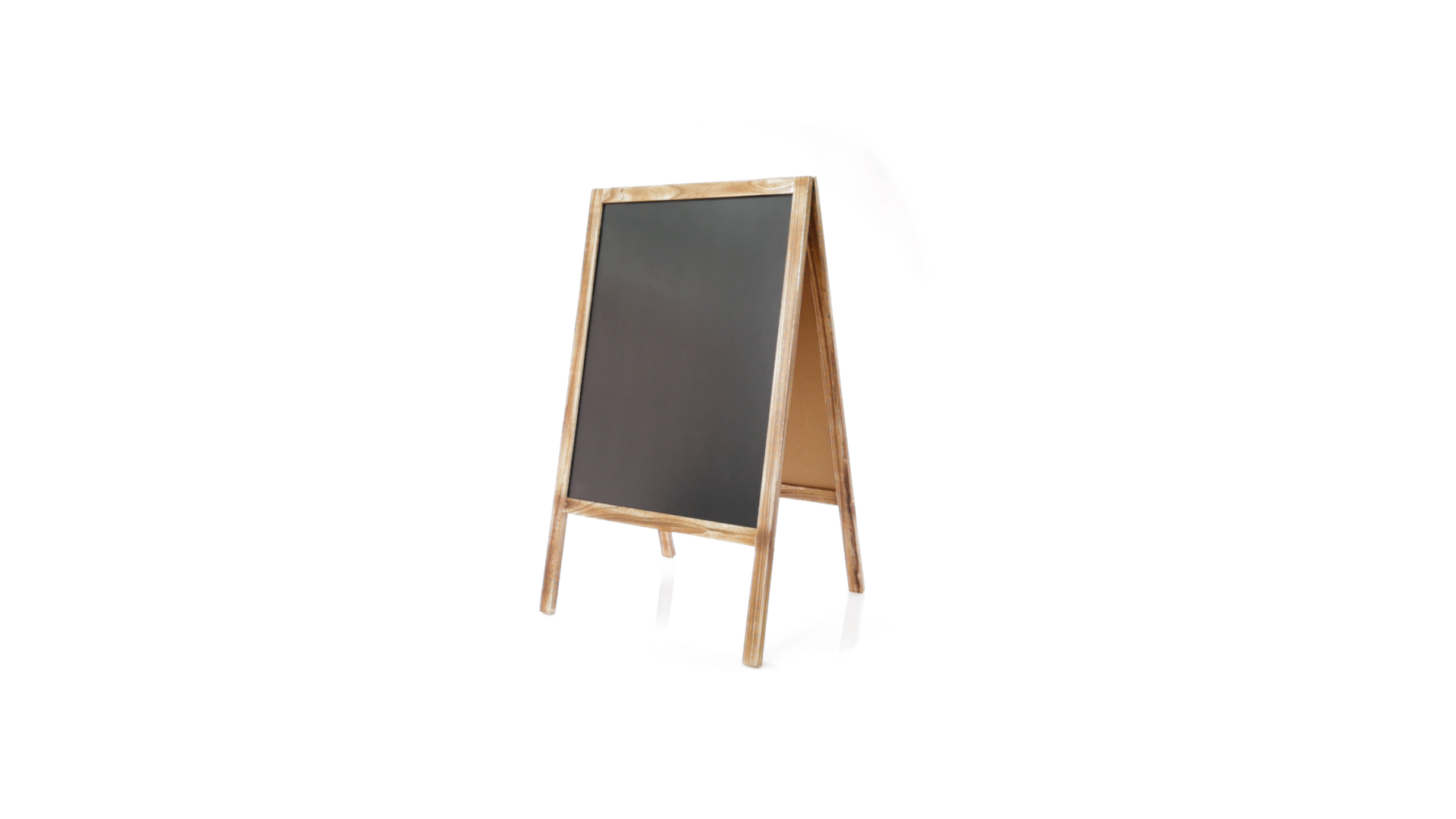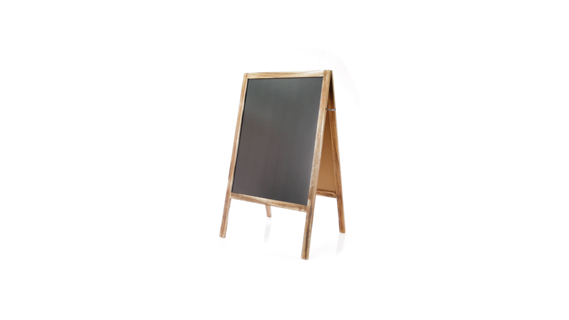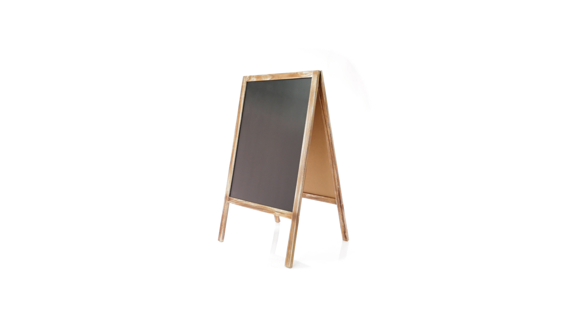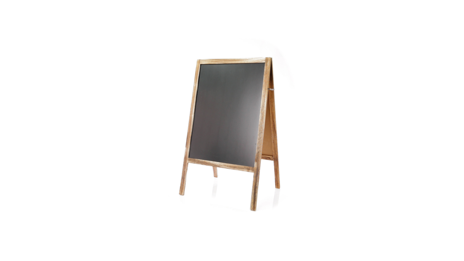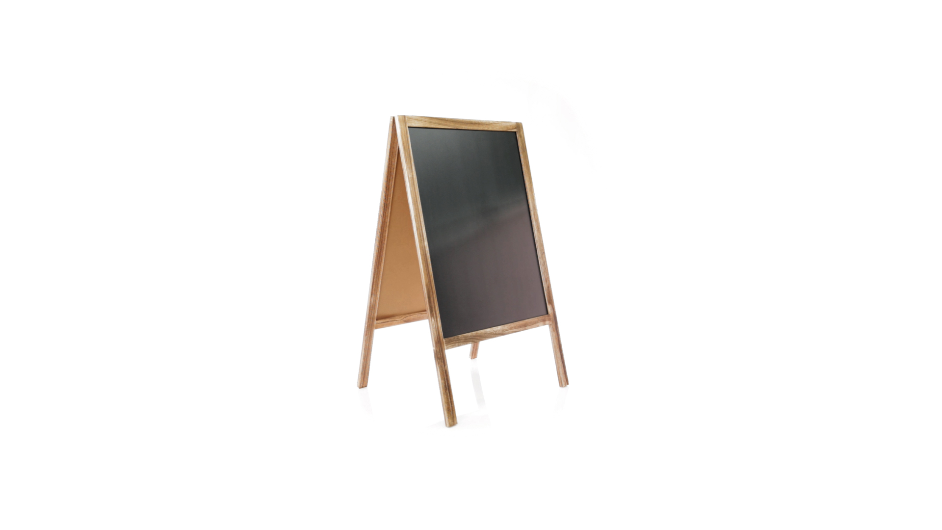 Mehrzwecktafel aus Holz. Passt in jede Umgebung und ist dank der Faltbarkeit leicht zu transportieren. Beidseitig grosse Schreibfläche mit einer Gesamtgrösse von 106 cm Höhe und 59 cm Breite. Präsentiert in einer Kraft-Design-Box.