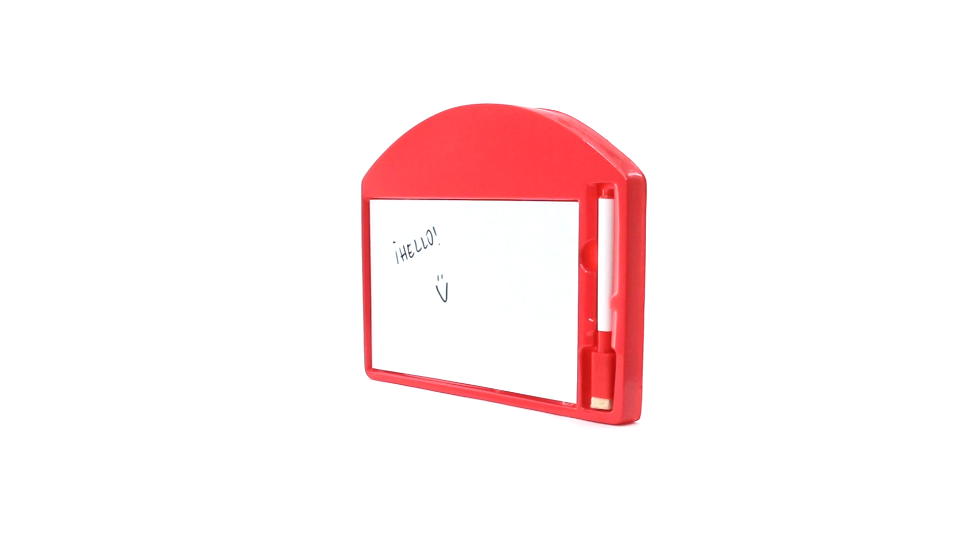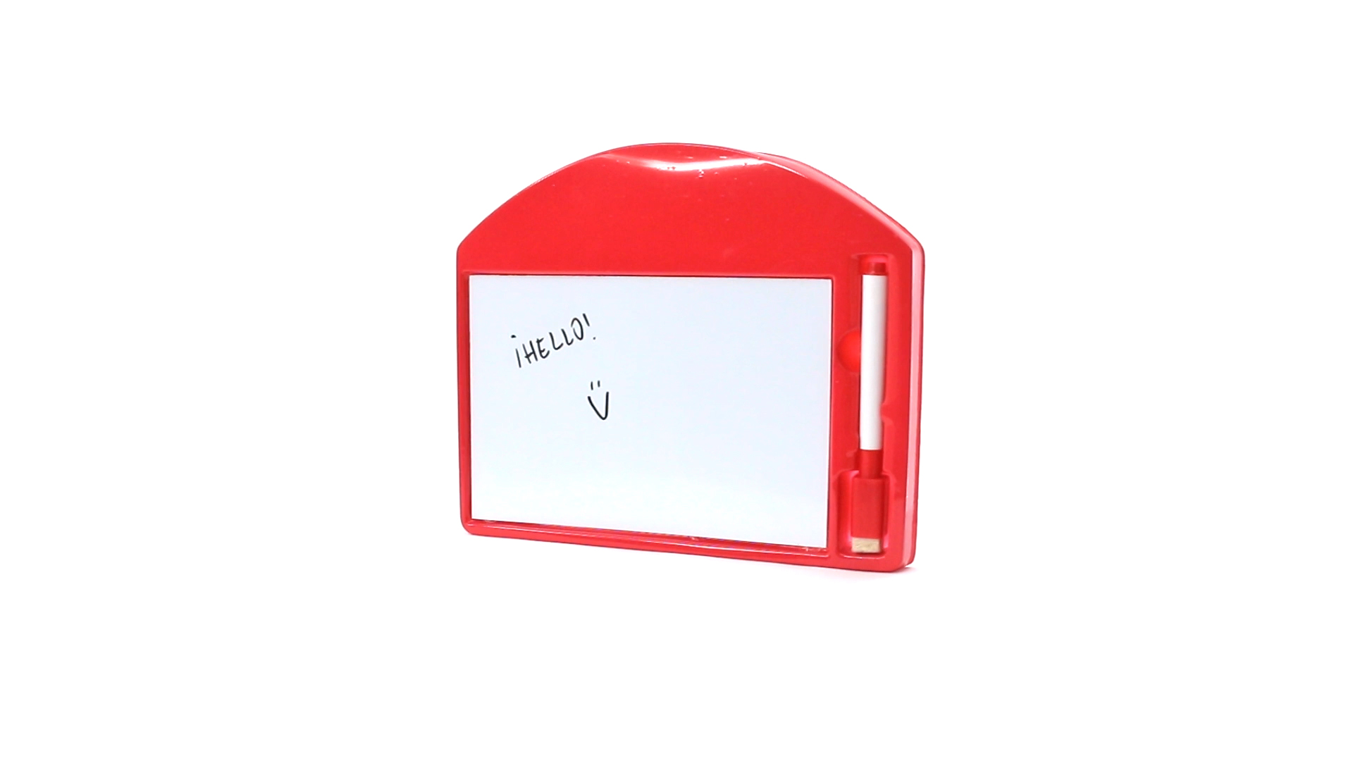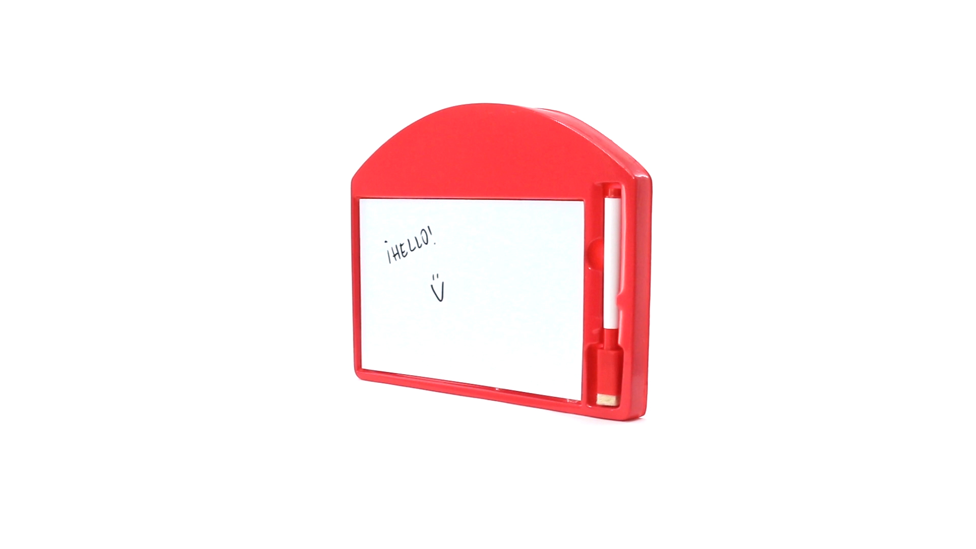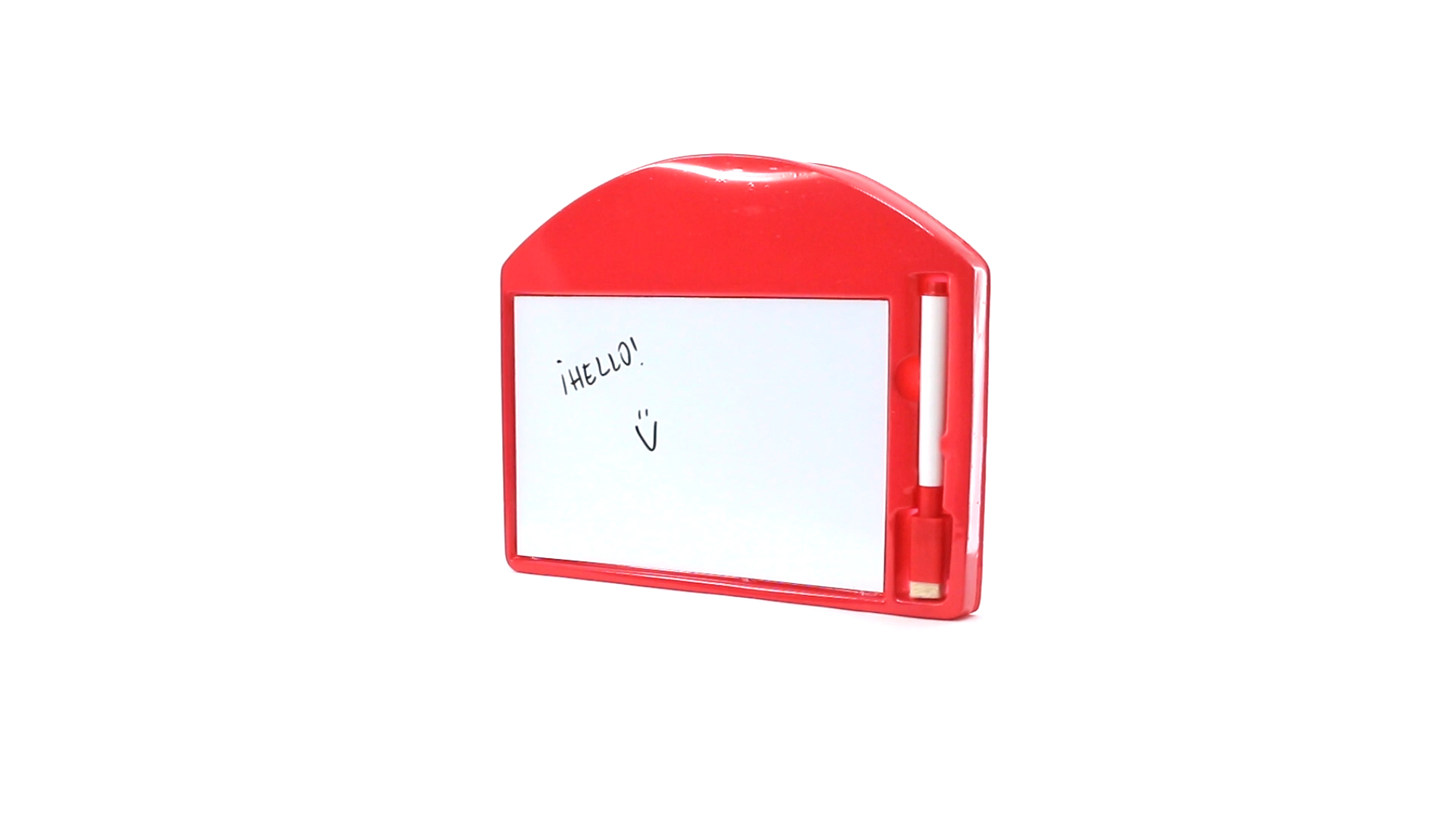Tafel in einer Vielzahl von kräftigen Farben. Mit Stanzung im Rahmen für die Befestigung des Stifts. Magnetischer Stift und Radiergummi inklusive.