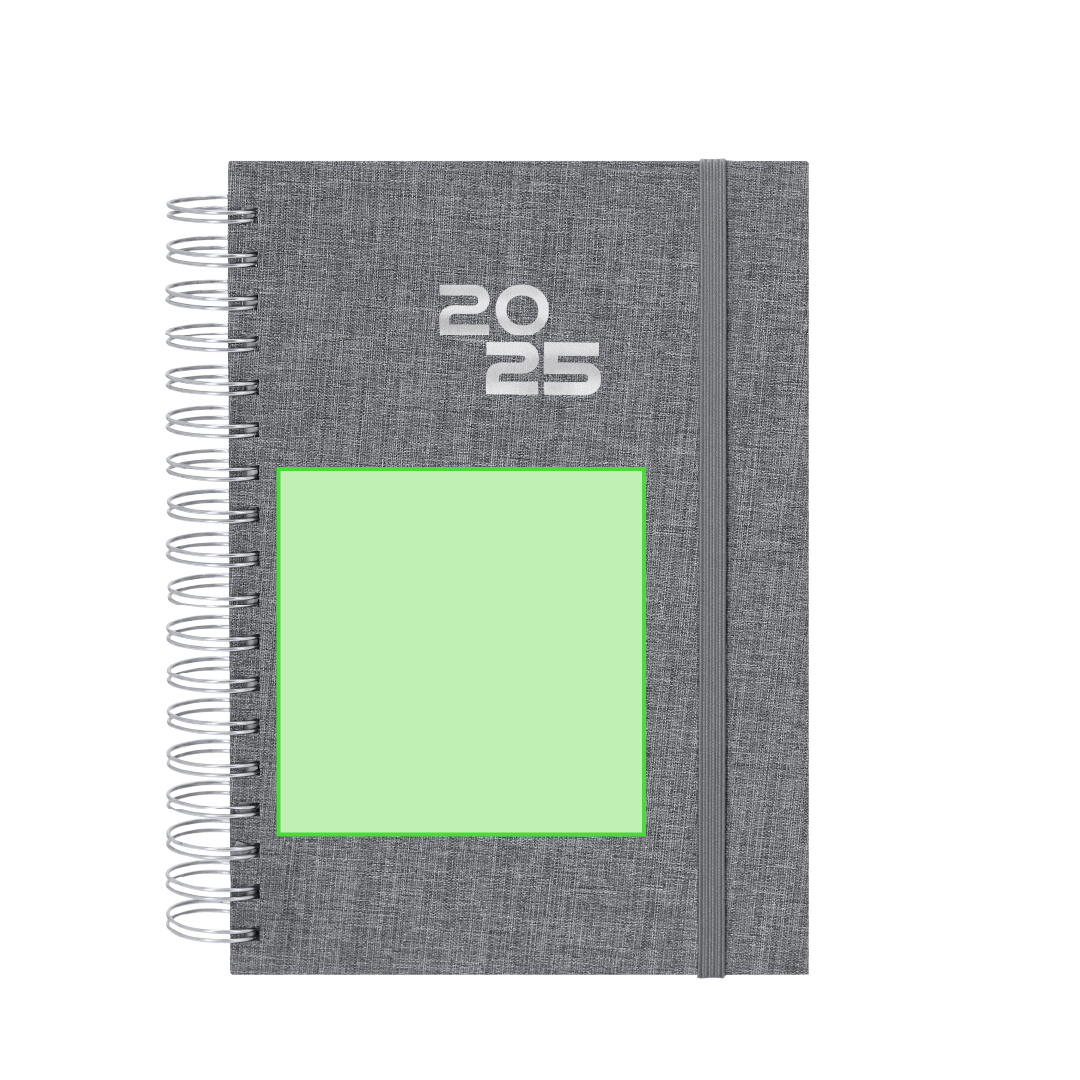 Ringbuch-Tagebuch im B5-Format aus weichem und strapazierfähigem RPET, mit Hartdeckeln und Gummibandverschluss. Inklusive Präsentationsbox aus Kraftpapier und RPET-Logo.Wochenansicht, mit einem Bereich für Notizen und Stofflesezeichen. In 2 Sprachen: Englisch und Spanisch.Das RPET-Material wird aus recyceltem Kunststoff hergestellt, wodurch die Wiederverwendung von Plastikabfällen gefördert und die Nachhaltigkeit des Planeten unterstützt wird.
